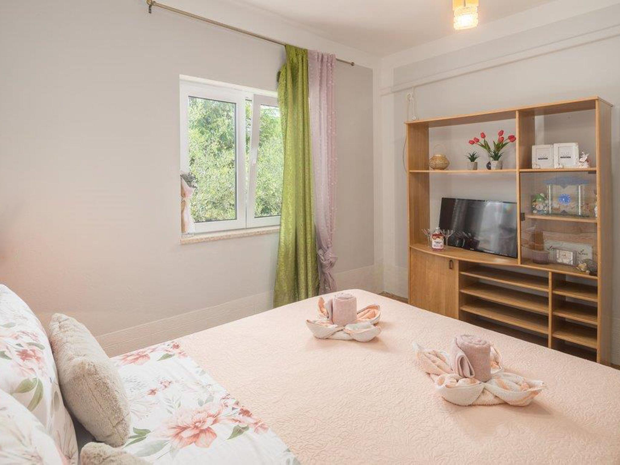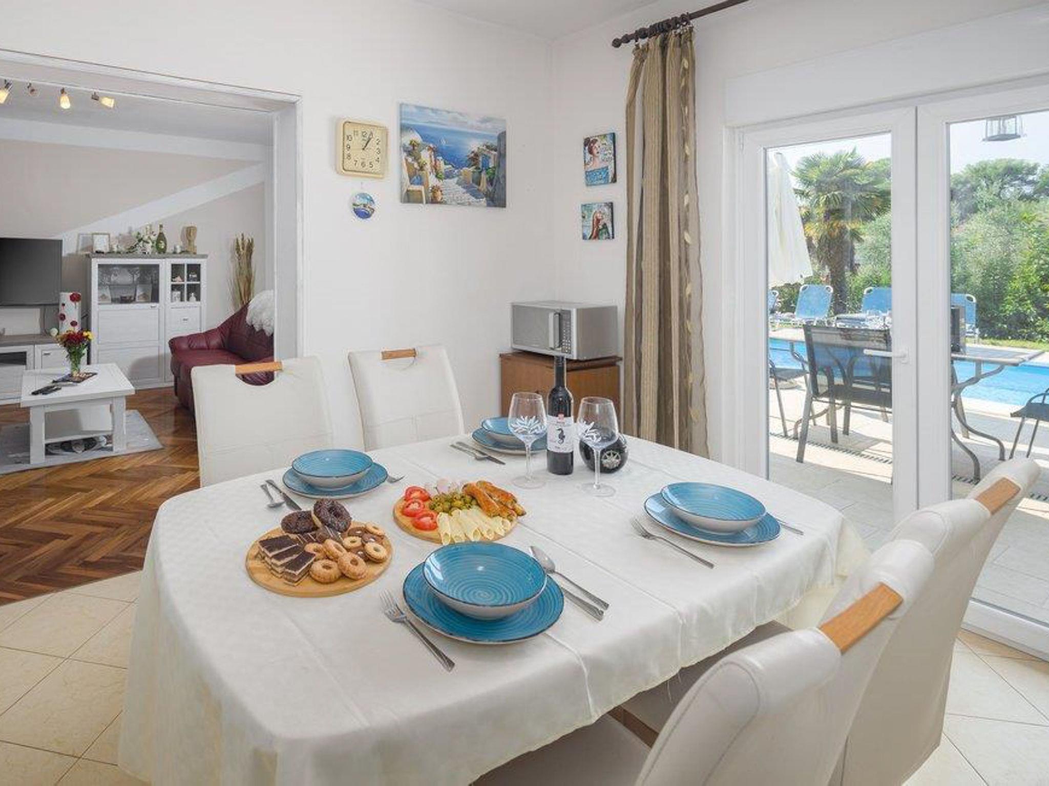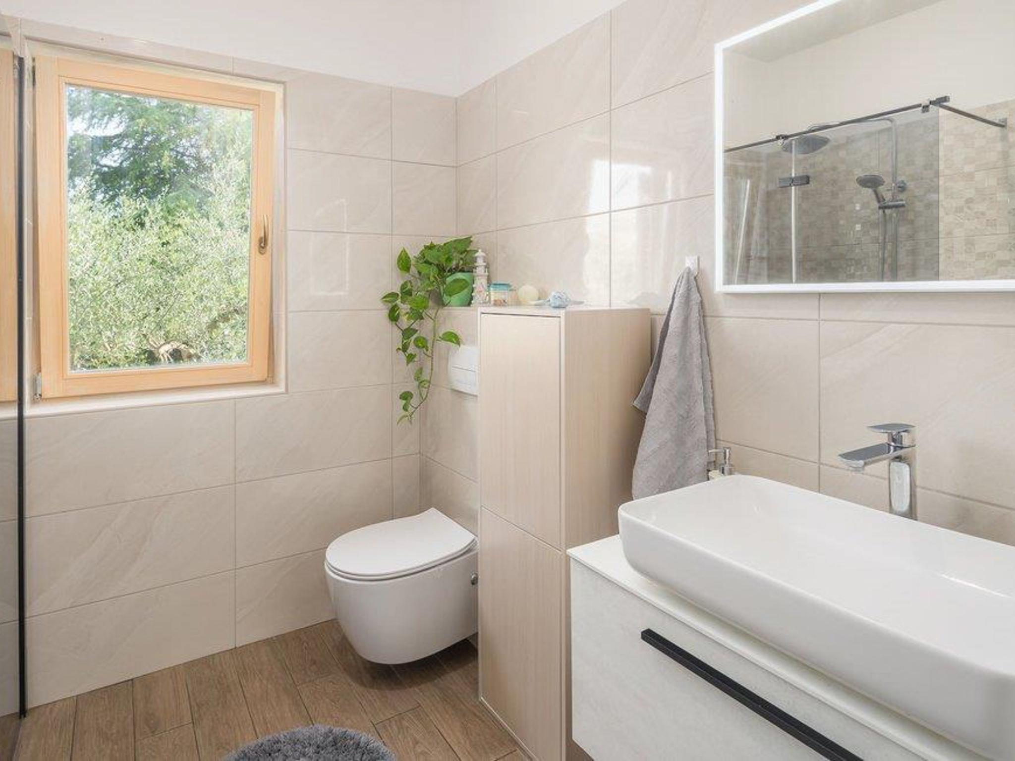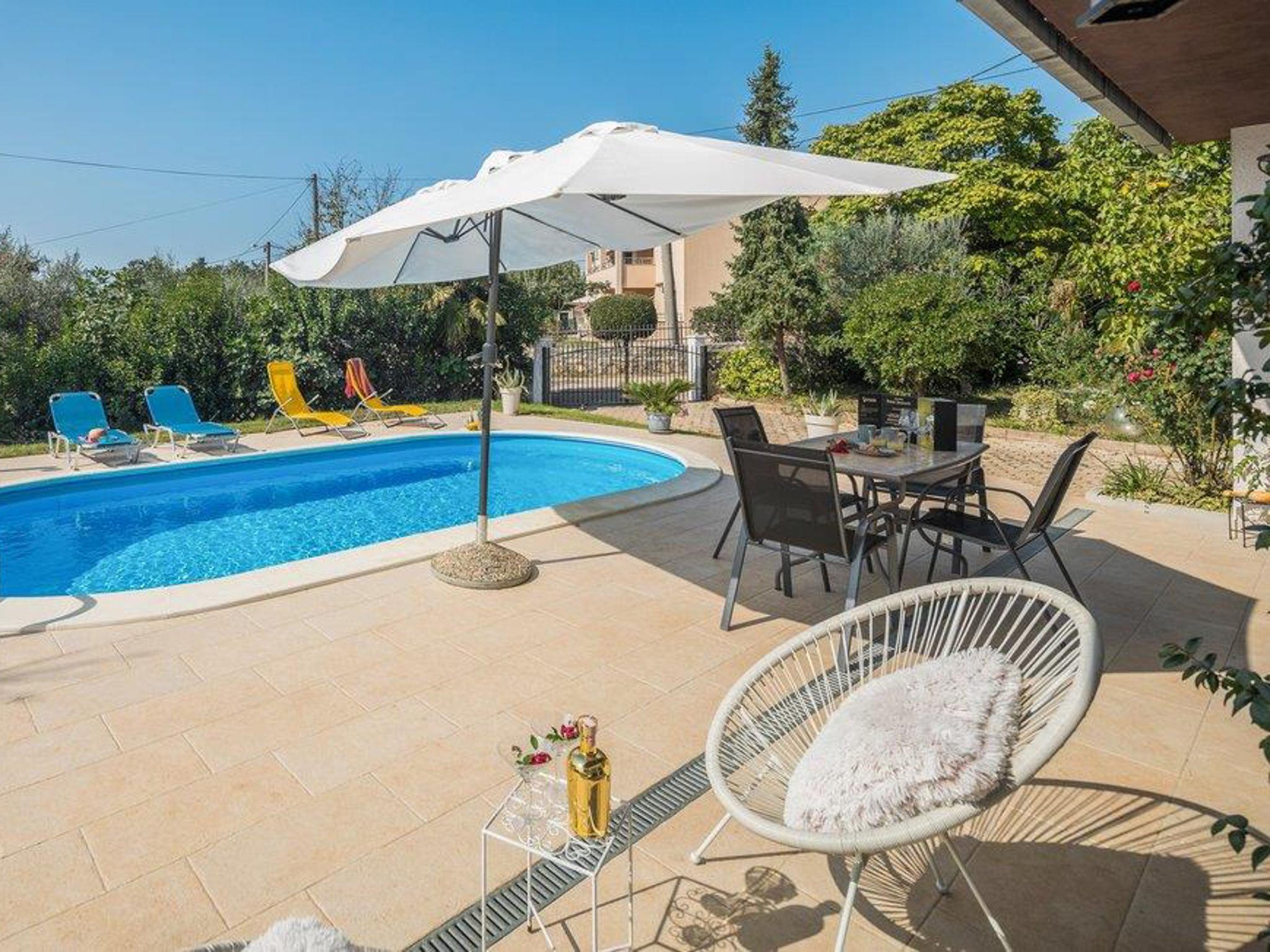 Baderna 13 km from Porec: Single-family house "Nati". In the hamlet Cvitani 4.8 km from the centre of Baderna, in a quiet, sunny position, 18 km from the sea. Private: property 1'000 m2 (fenced) with lawn and wildlife garden, swimming pool (21 m2, depth 135 cm, seasonal availability: 01.May. - 30.Sep.). Outdoor shower, garden furniture, barbecue. In the house: internet access, washing machine. Parking at the house on the premises. Shop 4.8 km, supermarket 11 km, restaurant 5 km, bus stop 5.2 km, pebble beach 18 km, rocky beach 18 km, public bathing area 18 km, concrete beach 18 km. The owner does not accept any youth groups. Please note: 1st floor is closed and not occupied.
