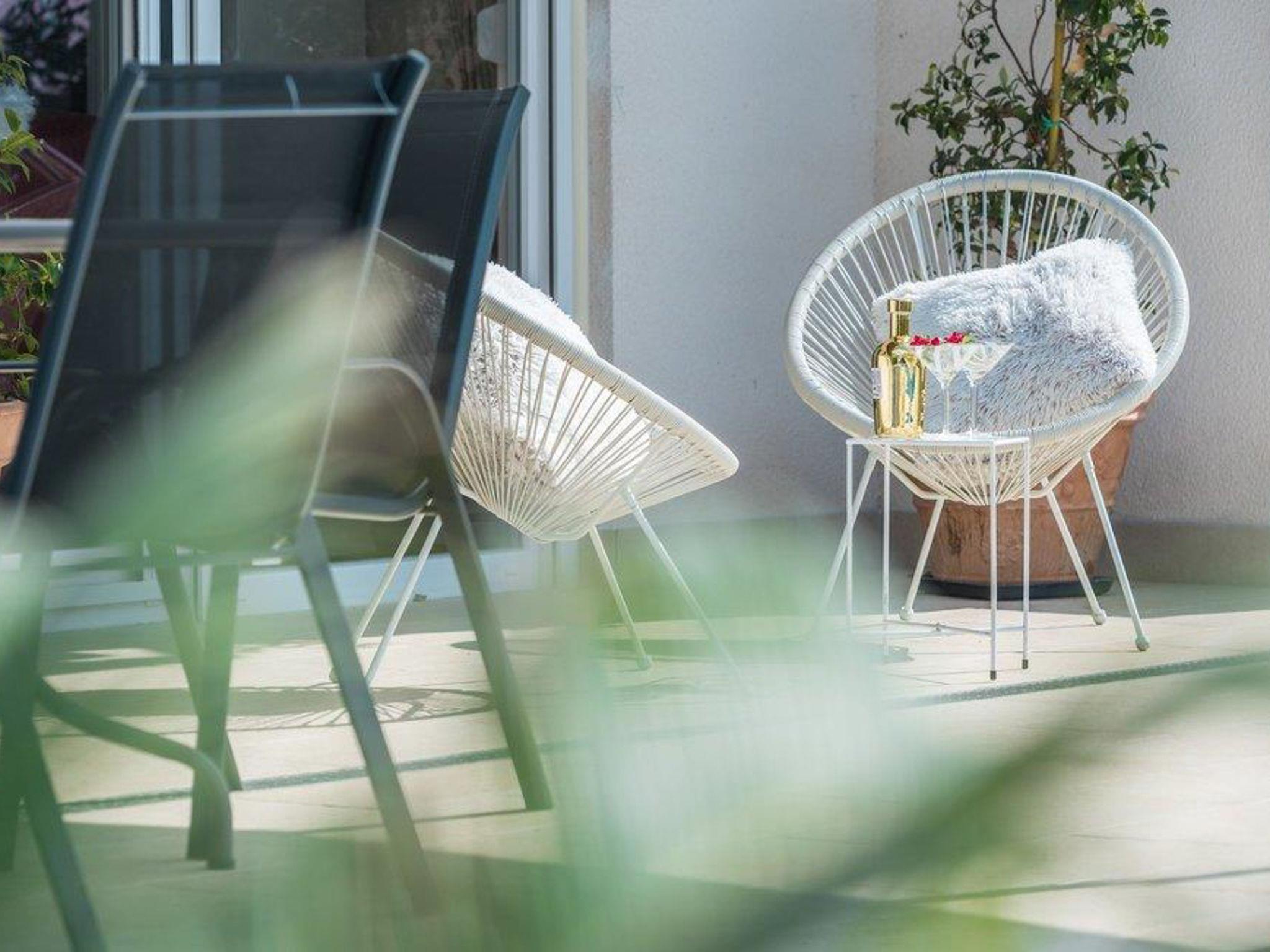 3-room house 105 m2. Living/dining room with 1 sofabed (80 cm, length 200 cm), satellite TV (flat screen), air conditioning. Exit to the terrace. Entrance hall with air conditioning. 1 room with 1 french bed (180 cm, length 200 cm). 1 room with 1 french bed (180 cm, length 200 cm), satellite TV (flat screen). Open kitchen (1 hot plate, oven, dishwasher, 3 gas rings, kettle, freezer, electric coffee machine). Exit to the terrace. Shower/WC. No heating option. Terrace 15 m2. Terrace furniture, deck chairs. View of the swimming pool. Facilities: hair dryer. Internet (WiFi, free). 1 pet/ dog allowed.