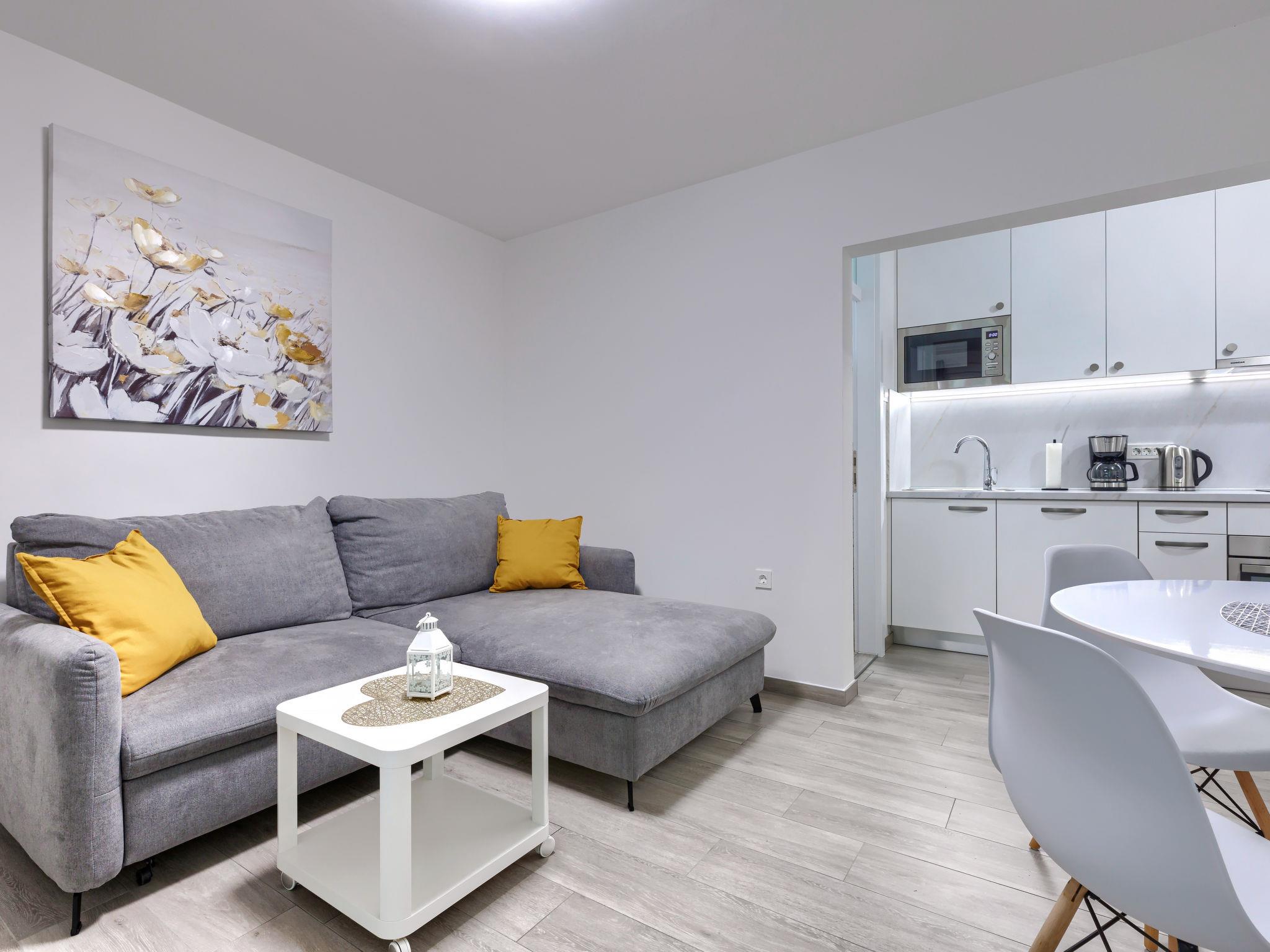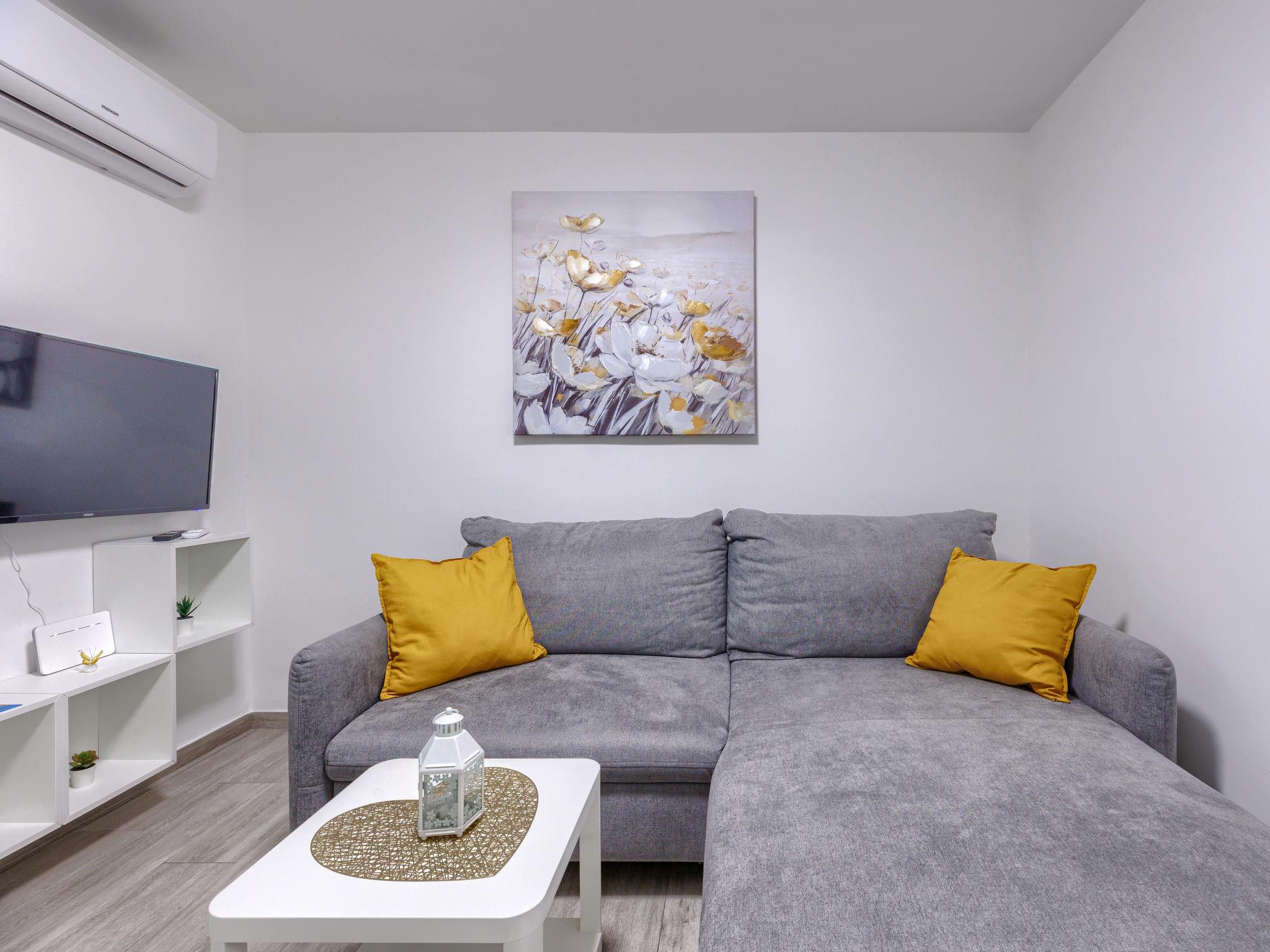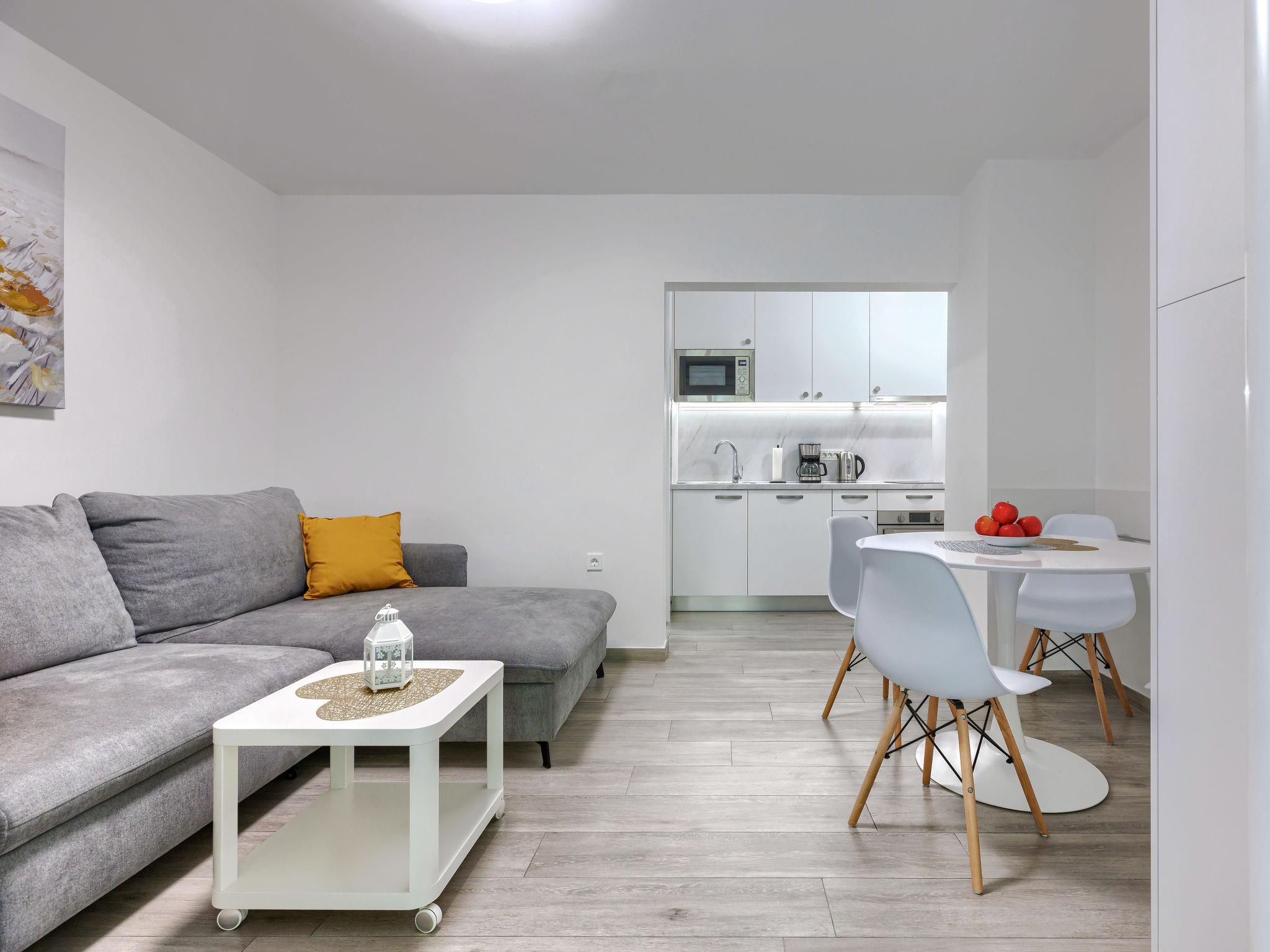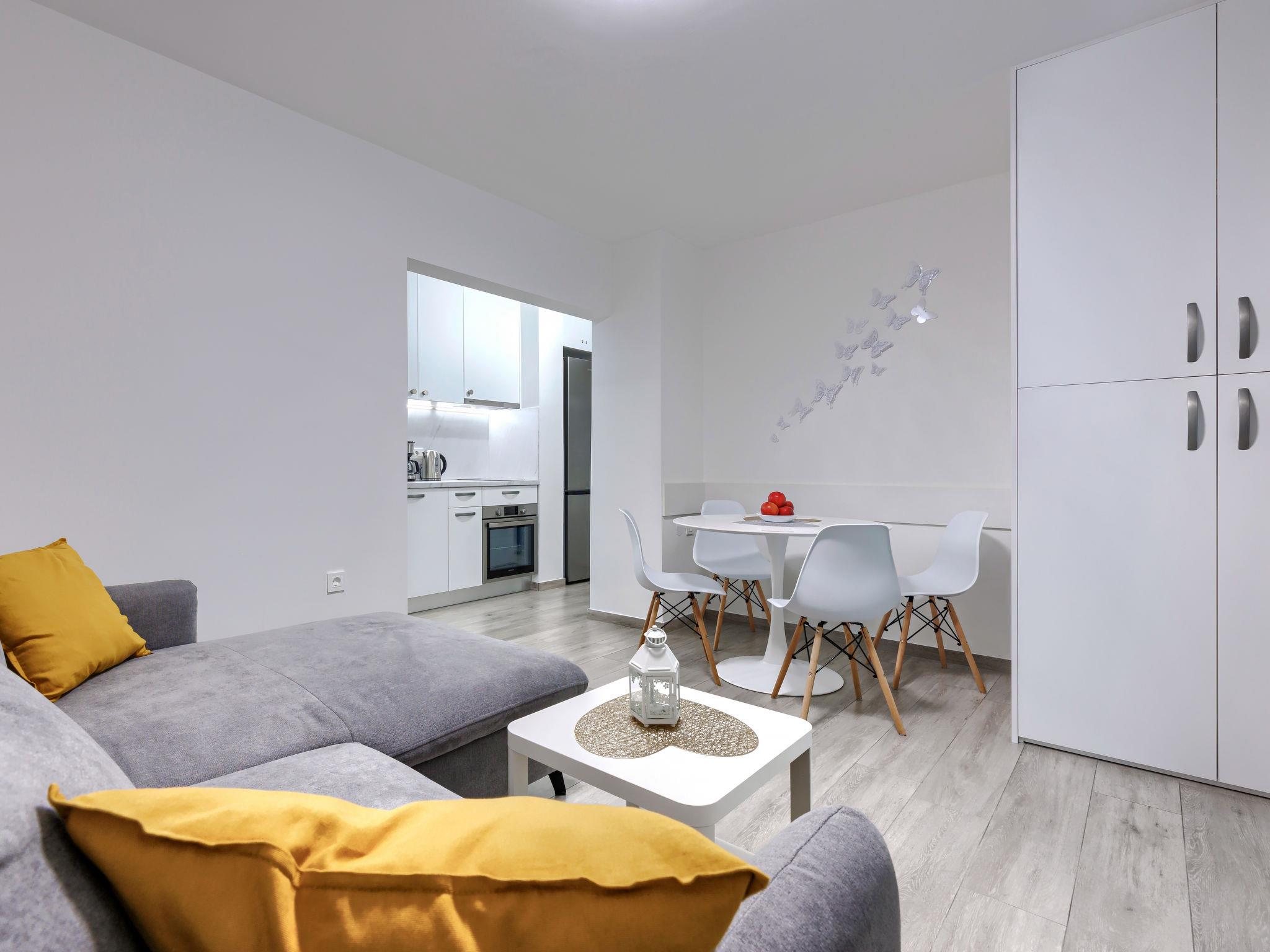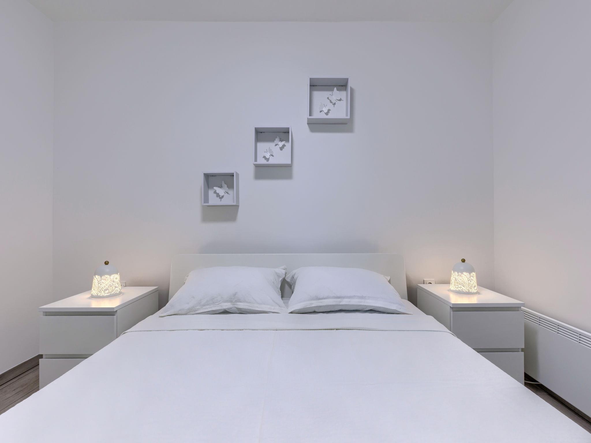 2-room apartment 35 m2, on the ground floor. Beautiful furnishings: living/sleeping room with 1 double sofabed (140 cm, length 200 cm), TV and air conditioning. Exit to the terrace. 1 room with 1 french bed (160 cm, length 200 cm). Open kitchen (oven, dishwasher, 2 ceramic glass hob hotplates, toaster, kettle, microwave, freezer, electric coffee machine). Exit to the terrace. Shower/WC. Forced-air heating. Terrace 20 m2 partly. Terrace furniture, barbecue. Facilities: hair dryer. Internet (WiFi, free). Please note: fire extinguisher. 6527/1