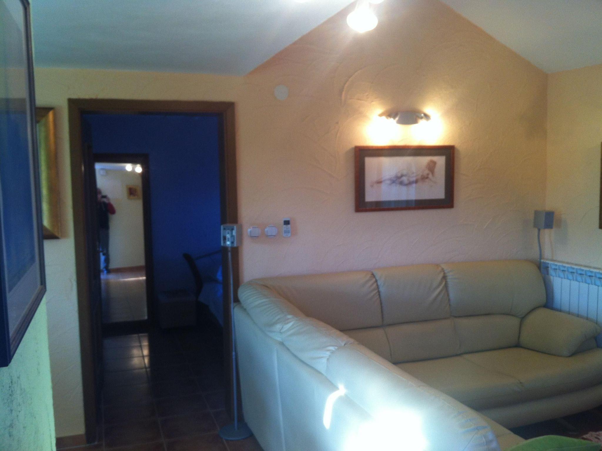The very spacious villa of 250m² is on two floors and can accommodate a maximum of nine guests. The ground floor has a living room with a rustic ceiling, with a fireplace, air conditioning, leather sofas and a flatscreen TV with satellite channels. Next to it is the dining room with a big dining table and the adjoining open kitchen, which is fully-equipped and includes a hob, microwave, coffee machine and a big fridge. On the ground floor there are also two bedrooms, each with a double bed 180cm wide, and there is a bathroom with a shower. The first floor has a big bedroom (22m²) with a terrace with a sea view and a bathroom with a bath. The fourth bedroom is in a separate apartment with a living room, a bathroom with a shower, a kitchen and a terrace.