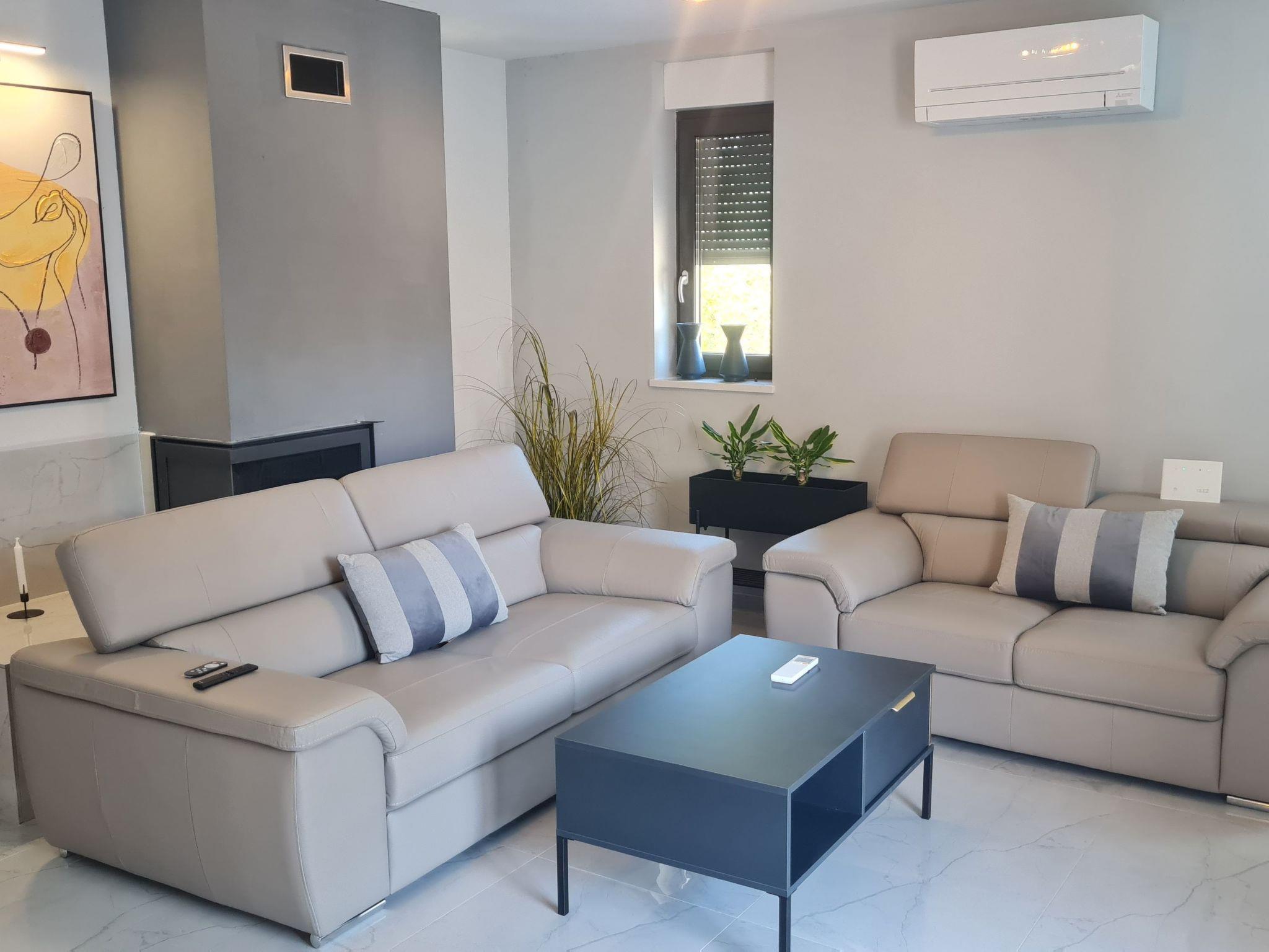 The interior is designed with your utmost comfort in mind, featuring air conditioning in every room, underfloor heating in selected areas, and Wi-Fi and TV for entertainment in each bedroom. The living space is complemented by a well-equipped kitchen, including an induction hob, dishwasher, electric kettle, and all the necessary equipment for your culinary exploits. For added convenience, a washing machine is available for your sole use within the property. The villa doesn't stop there; it also offers a private fitness room and sauna for your wellness needs, ensuring a relaxing and rejuvenating stay.