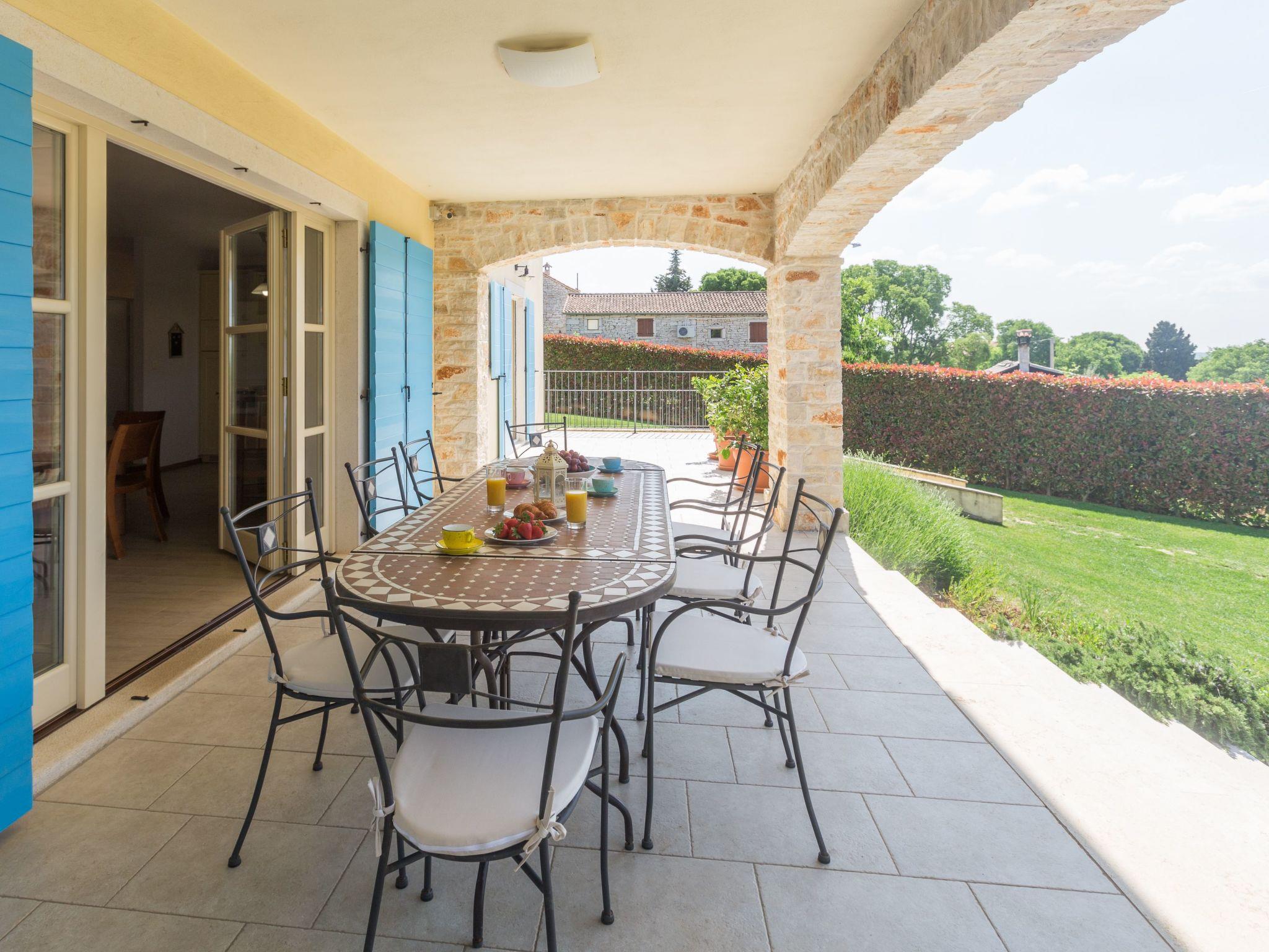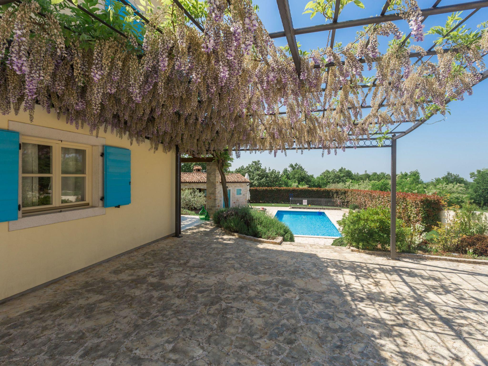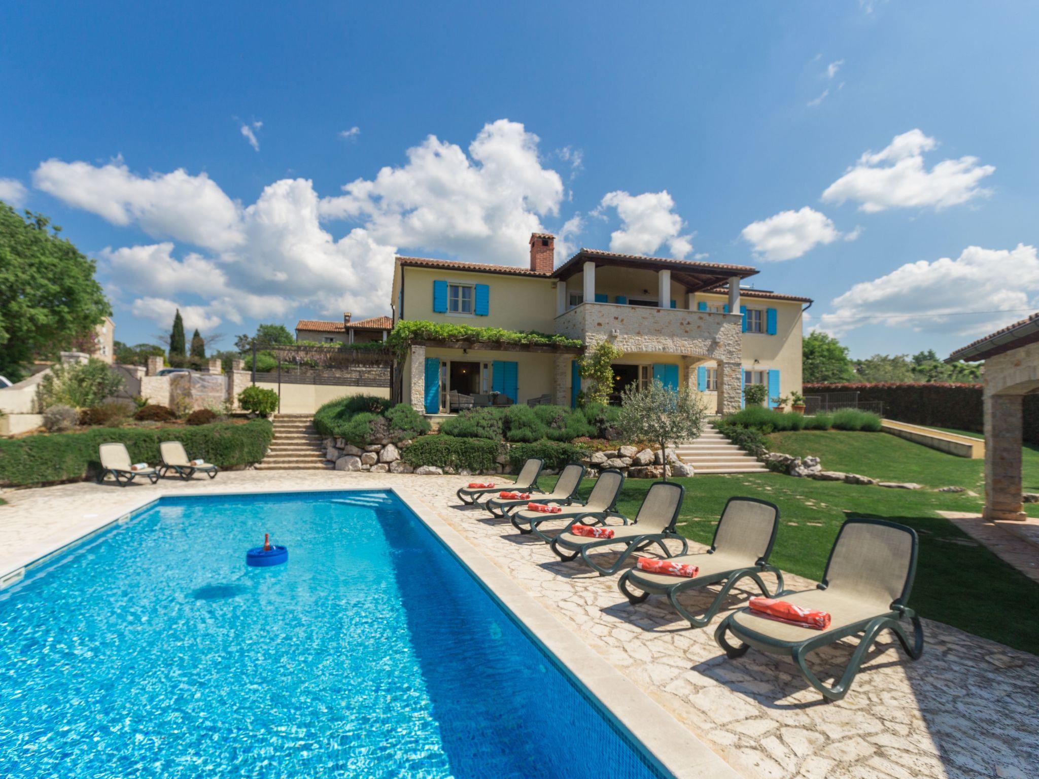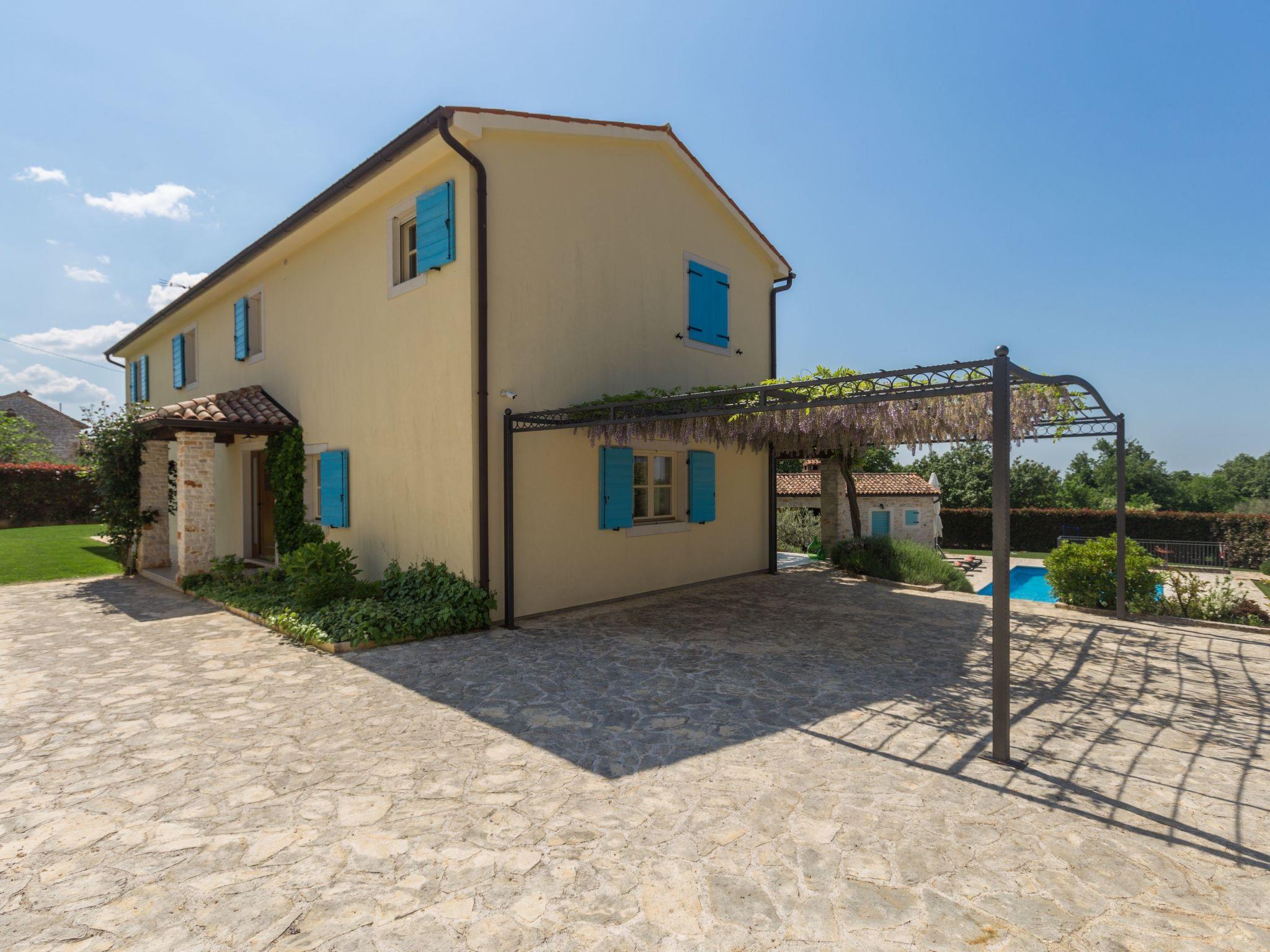 Villa Vista Azurra is situated in a village Heraki in the green interior of Istria distant only 15 km from Porec and its beaches. The next restaurant and shop are only 2km in Sveti Lovrec away. On its own enclosed garden of 1500 sqm with a lovely lawn the guests can enjoy a number of Mediterranean aromatic plants such as rosemary and lavender, and during the warmer periods of the year here flourish numerous floral species. At the guests disposal are also a private pool of 66 sqm, four parking spaces, poolhouse with a summer kitchen, shower/toilet, open fireplace, sun loungers and a table and chairs for outdoor dining. Built in 2014, the villa offers to its guests remarkable comfort thanks to unique decorating style.For those who prefer to spend their holidays in the not too hot months before or after the season, the pool can be heated on request. The property is fully fenced and offers plenty of space for your pet friend.