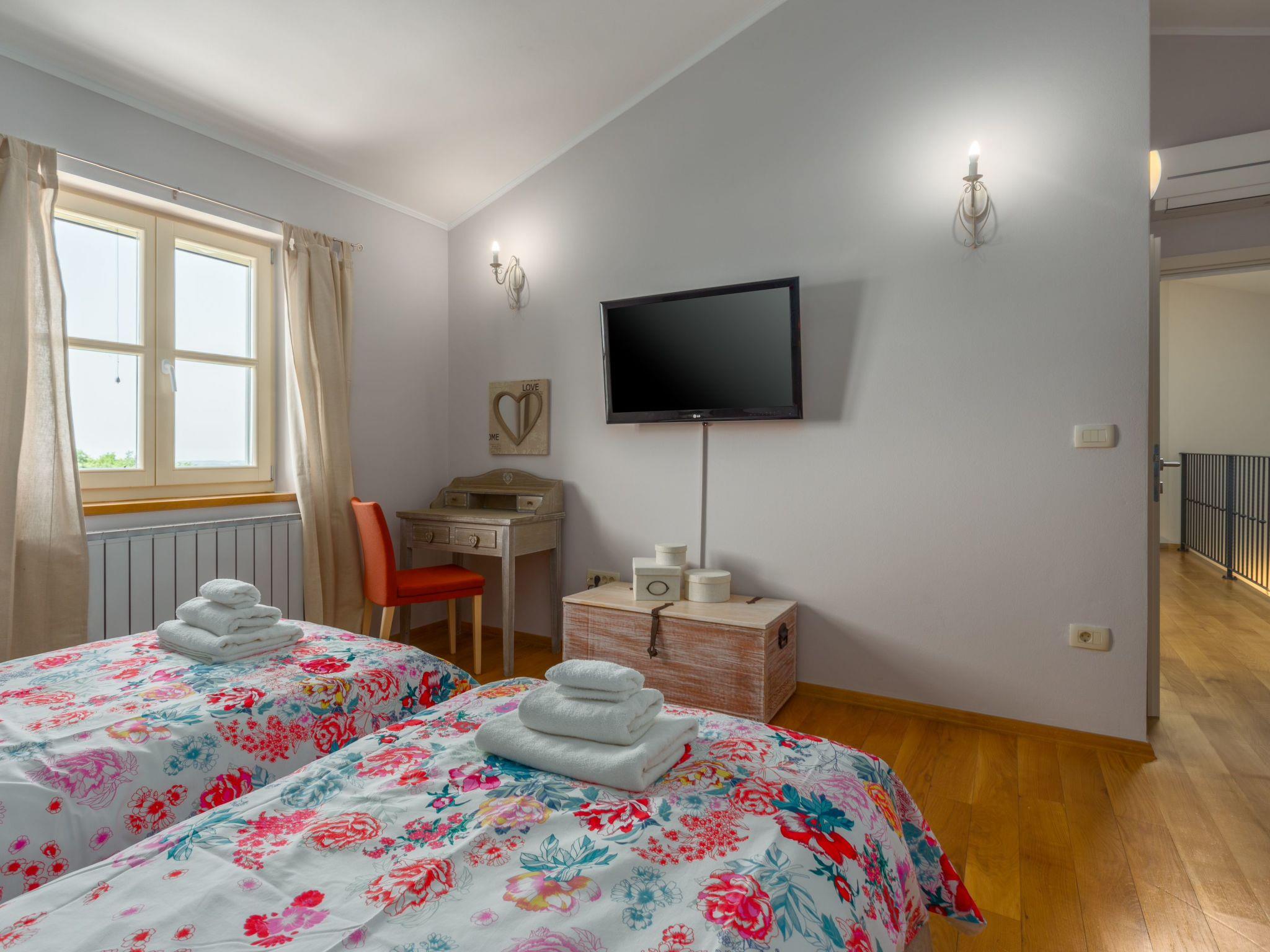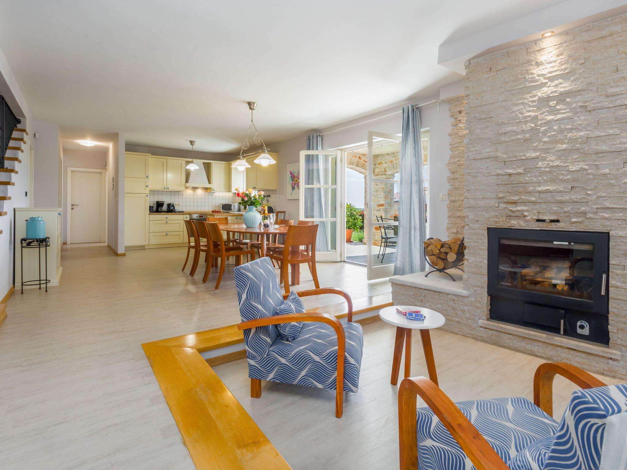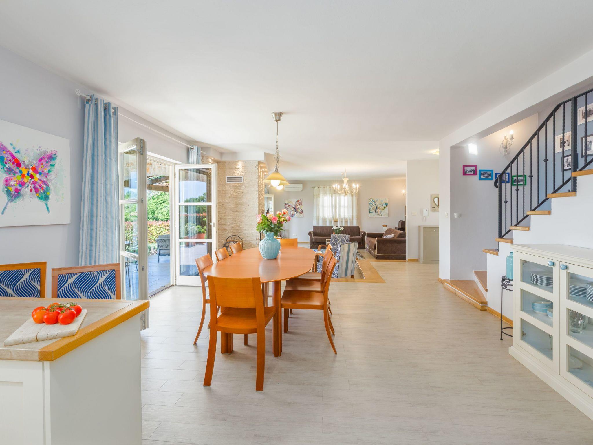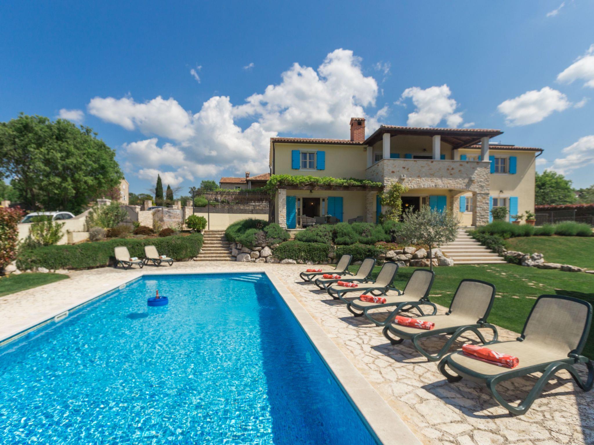 Villa Vista Azurra is situated in a village Heraki in the green interior of Istria distant only 15 km from Porec and its beaches. The next restaurant and shop are only 2km in Sveti Lovrec away. On its own enclosed garden of 1500 sqm with a lovely lawn the guests can enjoy a number of Mediterranean aromatic plants such as rosemary and lavender, and during the warmer periods of the year here flourish numerous floral species. At the guests disposal are also a private pool of 66 sqm, four parking spaces, poolhouse with a summer kitchen, shower/toilet, open fireplace, sun loungers and a table and chairs for outdoor dining. Built in 2014, the villa offers to its guests remarkable comfort thanks to unique decorating style.For those who prefer to spend their holidays in the not too hot months before or after the season, the pool can be heated on request. The property is fully fenced and offers plenty of space for your pet friend.