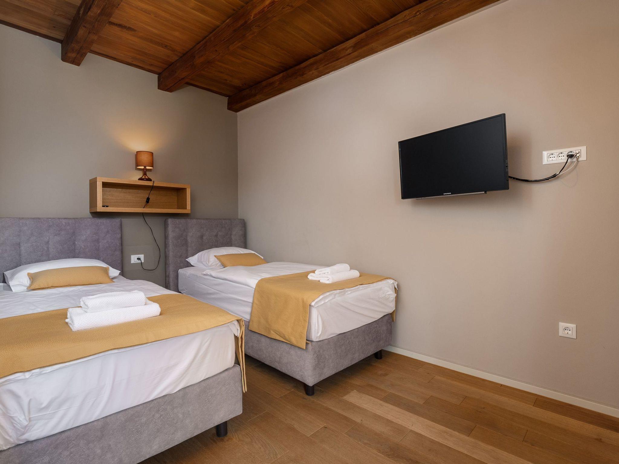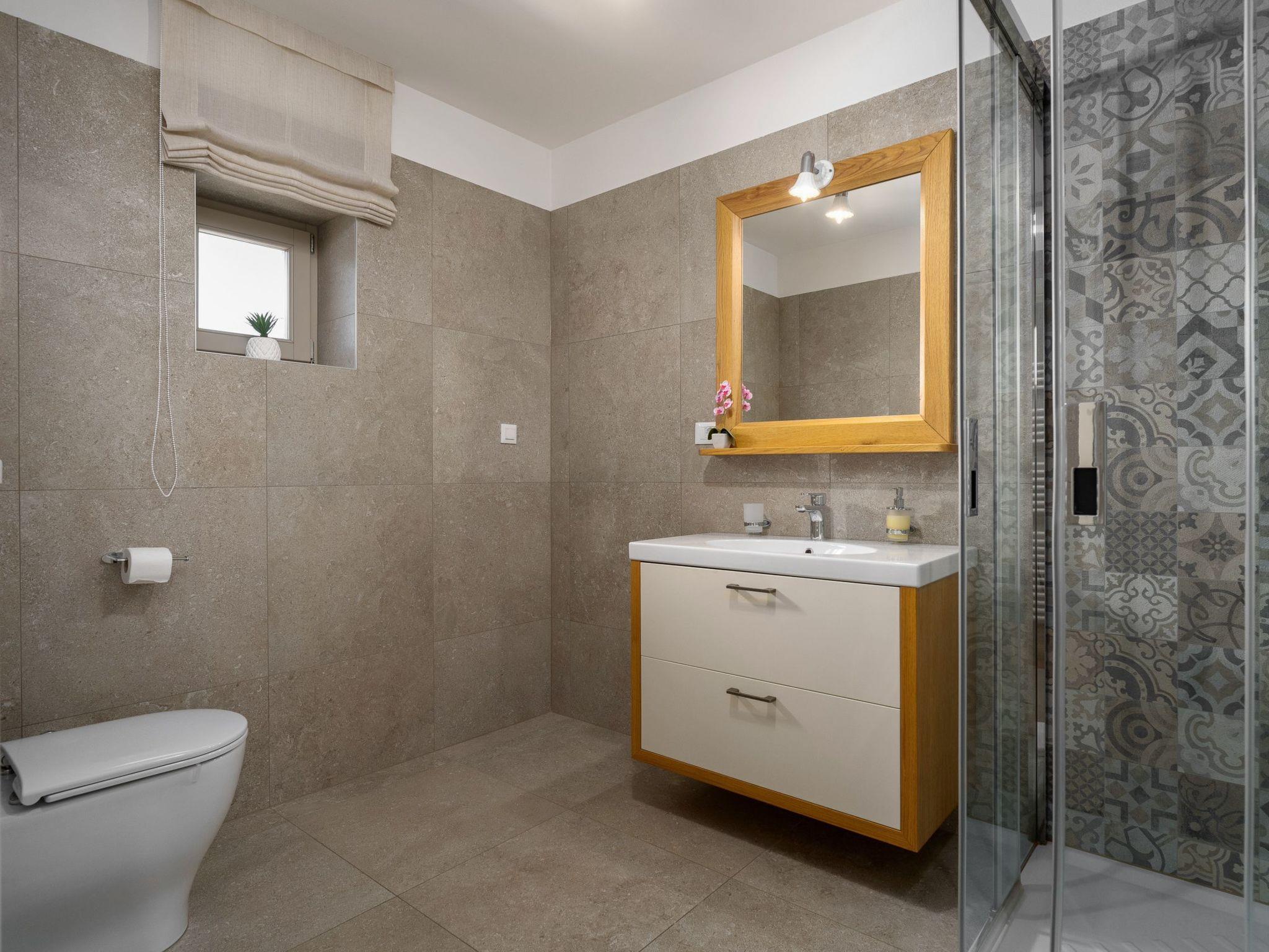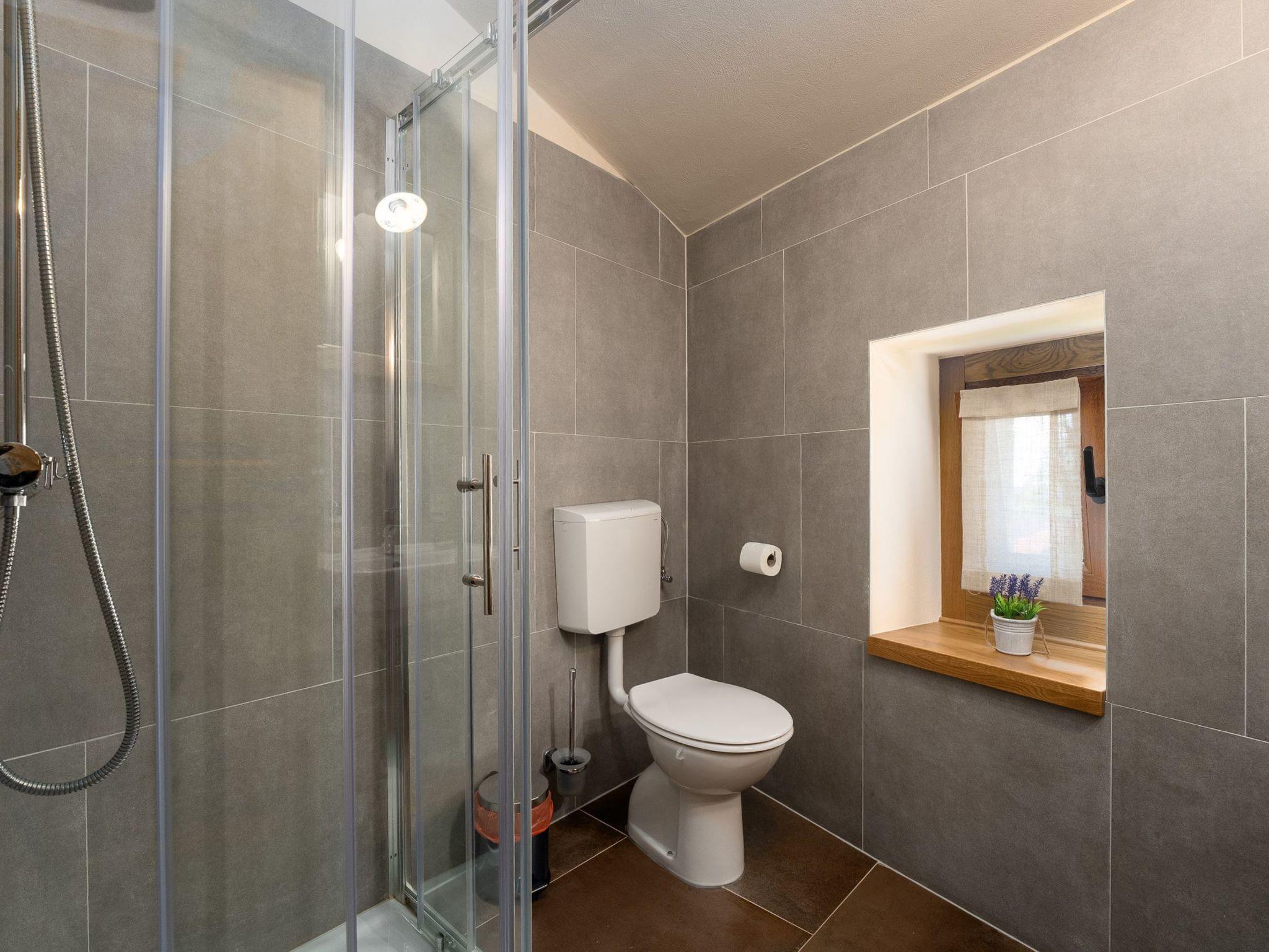 The second unit is located on the first floor and has a spacious living area in typical Istrian style with a fully equipped kitchen, a large dining table for 12 people, a seating area and a separate toilet. At the entrance there is a beautiful covered terrace with garden furniture and upstairs there are two bedrooms with double beds, each with its own bathroom.