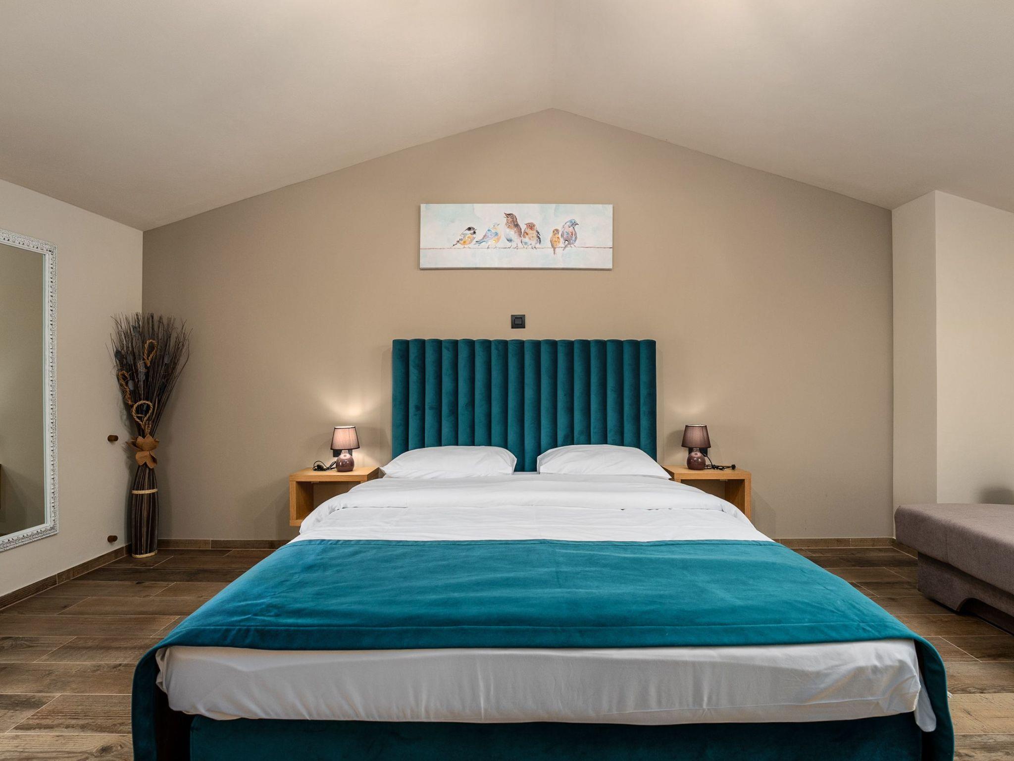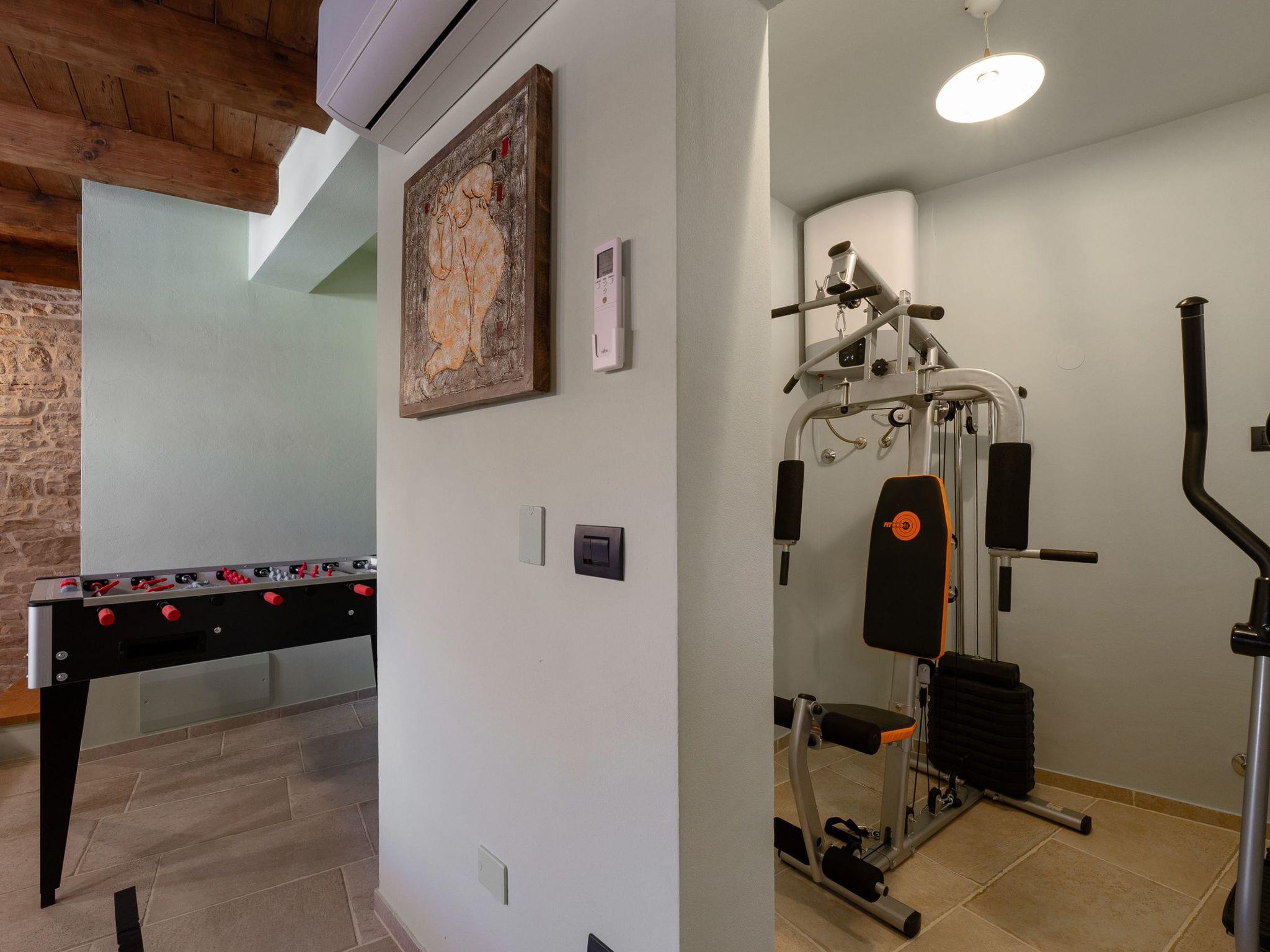 In the second part of the courtyard there is a third unit consisting of a ground floor with billiards, darts, table tennis and a small gym, while on the first floor there is a spacious bedroom with double bed and sofa bed for 1 person and a bathroom with shower/WC. The entire house is air-conditioned and equipped with WLAN.