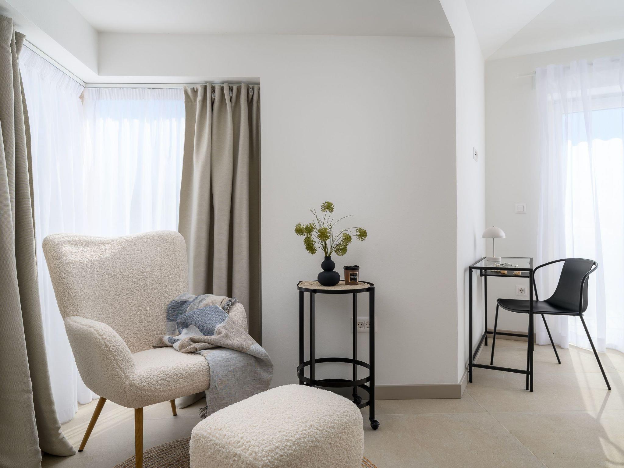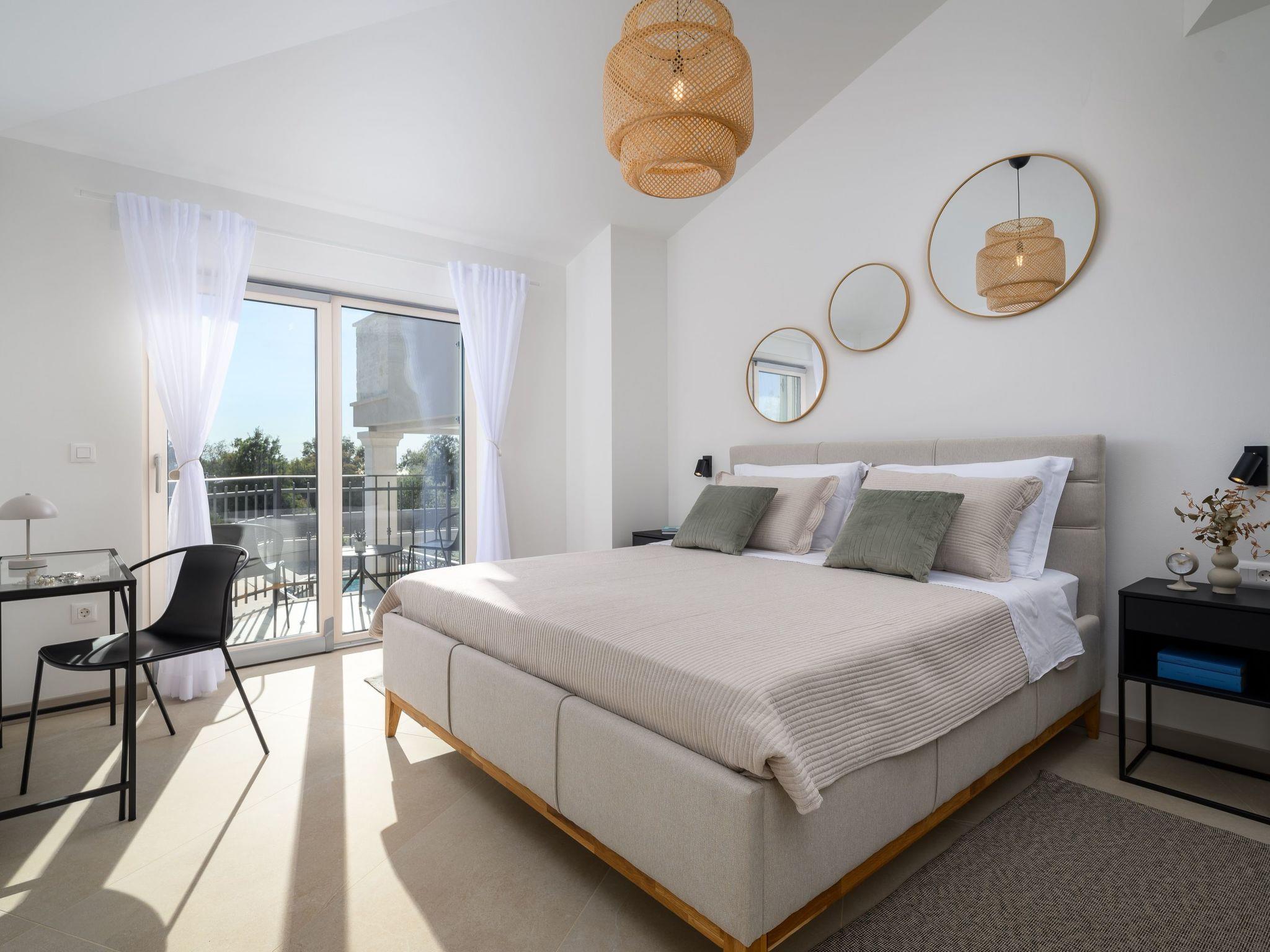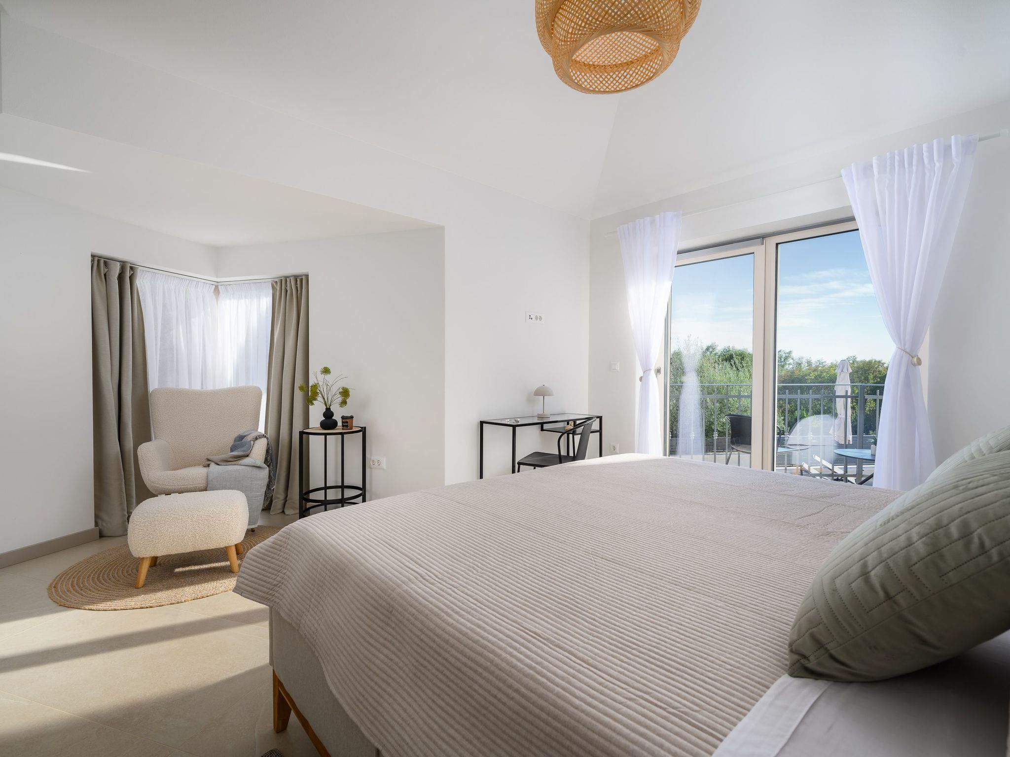 The villa is spread over two floors, the ground floor features a fully equipped kitchen, an elegant dining and living room opening onto a covered terrace, and one bedroom with its own bathroom and terrace. A hallway and separate toilet complete this level. The first floor features three beautifully designed bedrooms, each with its own bathroom and private terrace. Built in 2023, Villa Natalia is fully air-conditioned for maximum comfort.