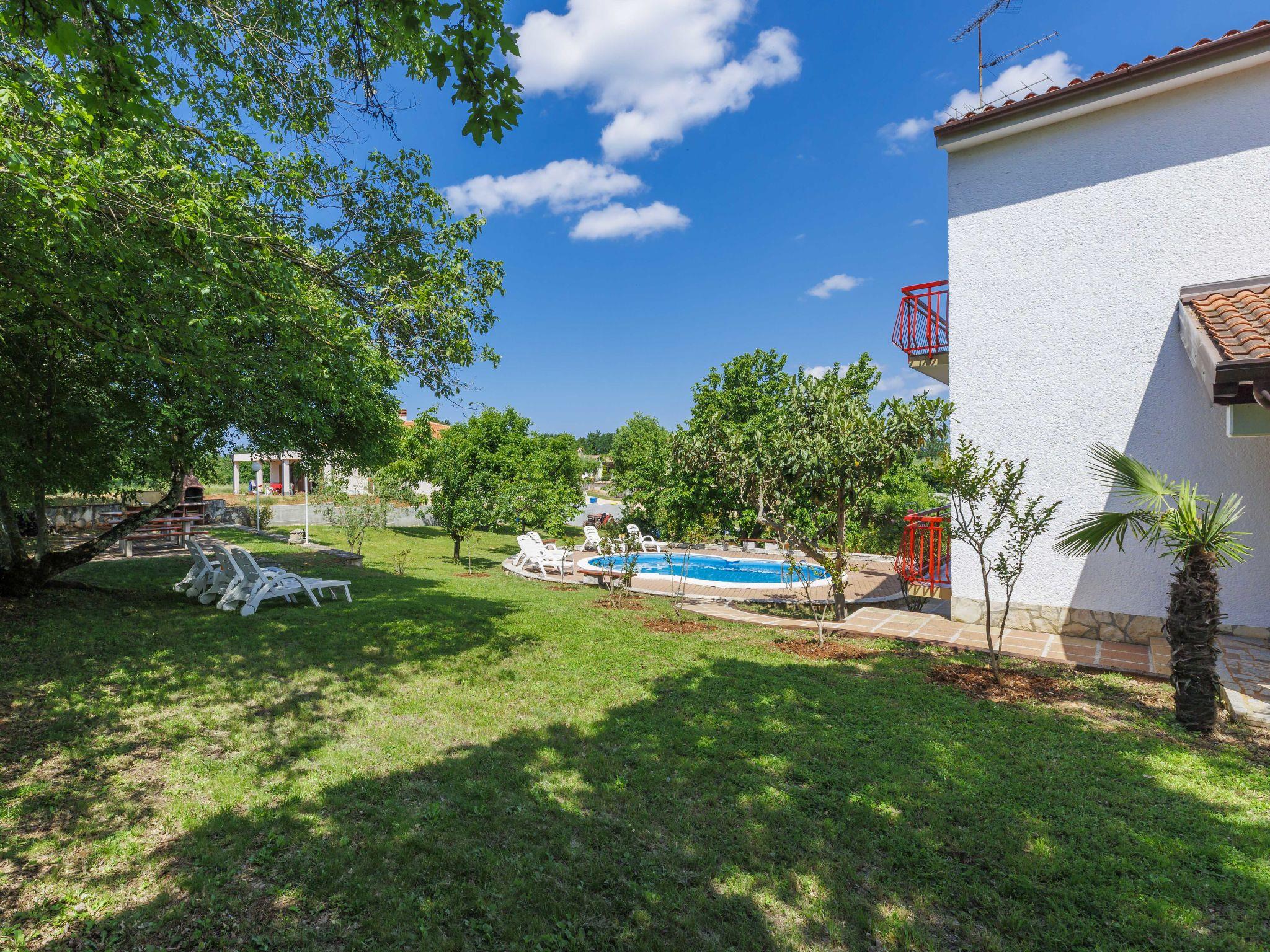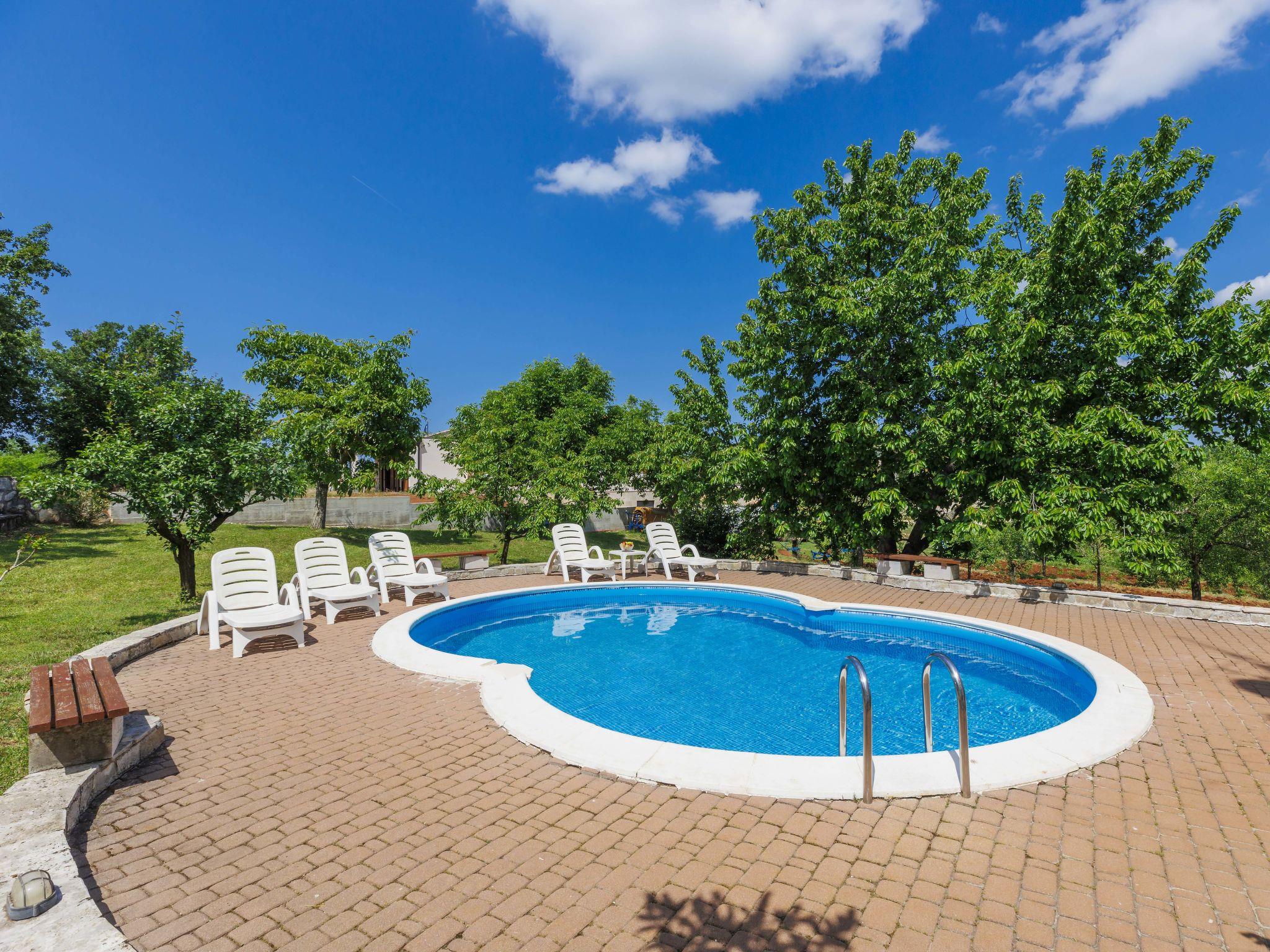Jehnici 8 km from Porec: 3-family house " Ana". In a quiet, sunny position, 11 km from the sea, in the countryside. For shared use: property 3'000 m2, plants and trees, meadow, swimming pool (7 x 5 m, depth 150 cm, seasonal availability: 25.May. - 21.Sep.). Outdoor shower, garden furniture, barbecue. In the house: internet access. Parking at the house on the premises. Shop 3 km, restaurant 3 km, bus stop 10 km, public bathing area 8 km. Please note: suitable for families. Additional accommodations can be booked. Youth groups are not allowed. The swimming pool is oval shaped.