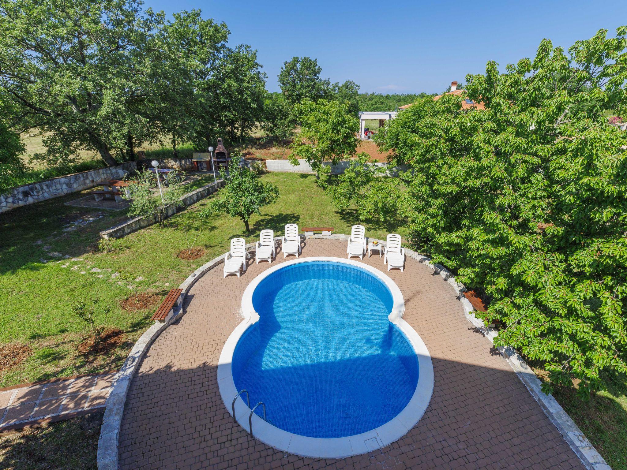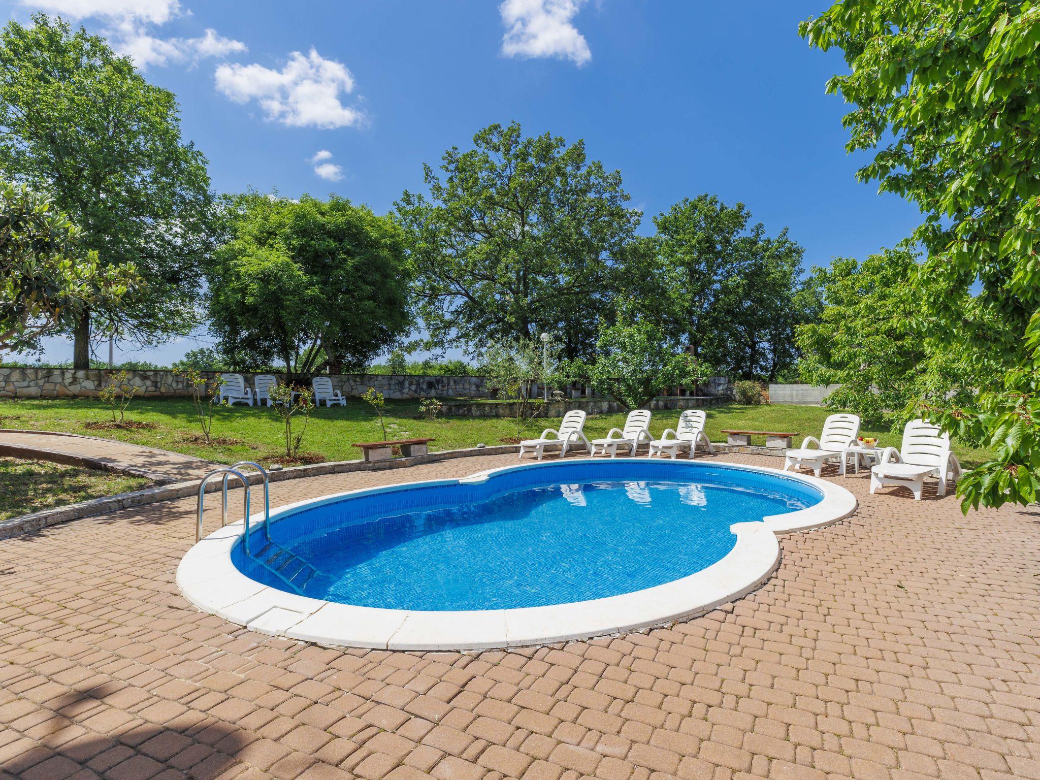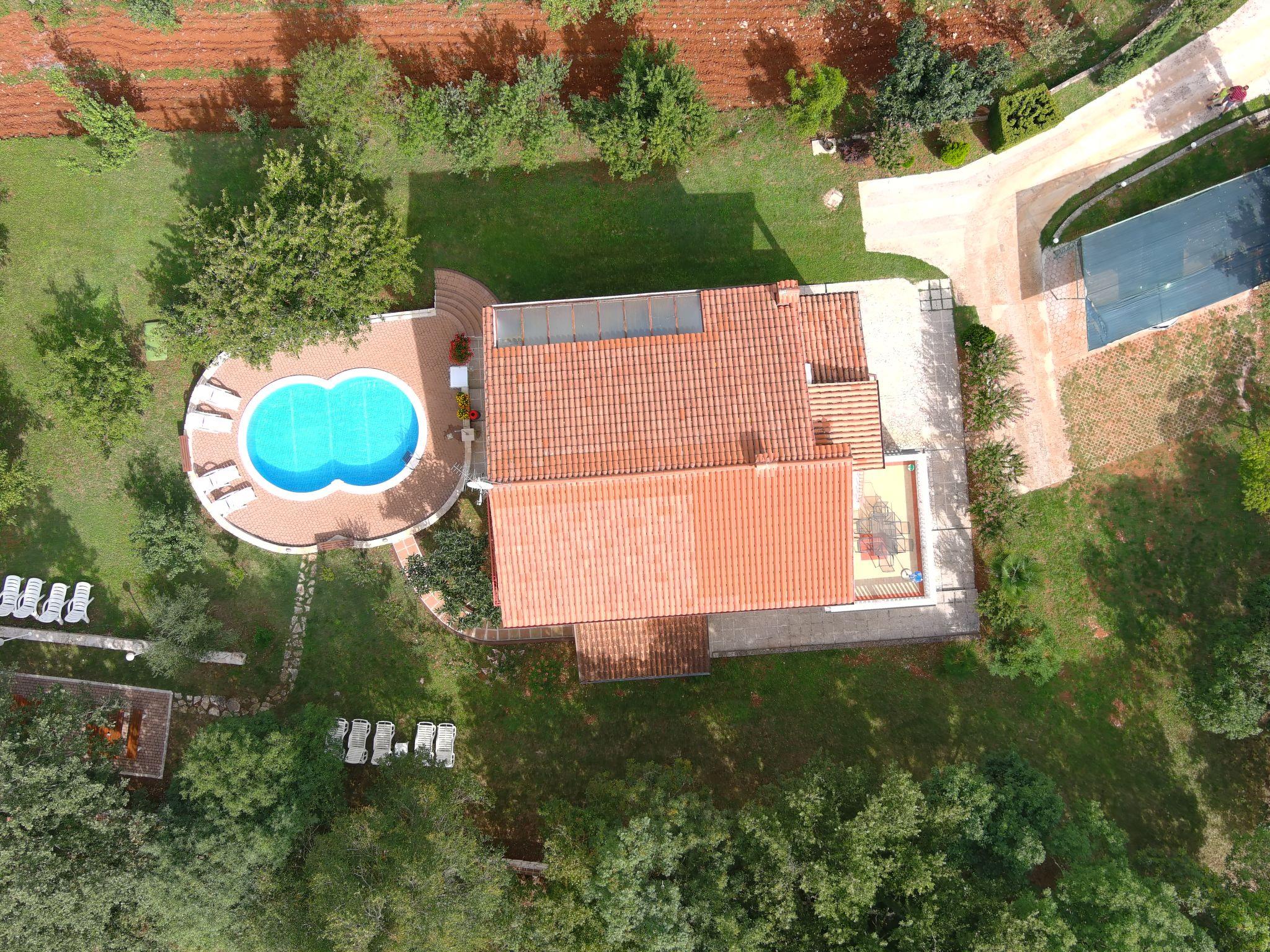 Jehnici 8 km from Porec: 3-family house " Ana". In a quiet, sunny position, 11 km from the sea, in the countryside. For shared use: property 3'000 m2, plants and trees, meadow, swimming pool (7 x 5 m, depth 150 cm, seasonal availability: 25.May. - 21.Sep.). Outdoor shower, garden furniture, barbecue. In the house: internet access. Parking at the house on the premises. Shop 3 km, restaurant 3 km, bus stop 10 km, public bathing area 8 km. Please note: suitable for families. Additional accommodations can be booked. Youth groups are not allowed. The swimming pool is oval shaped.