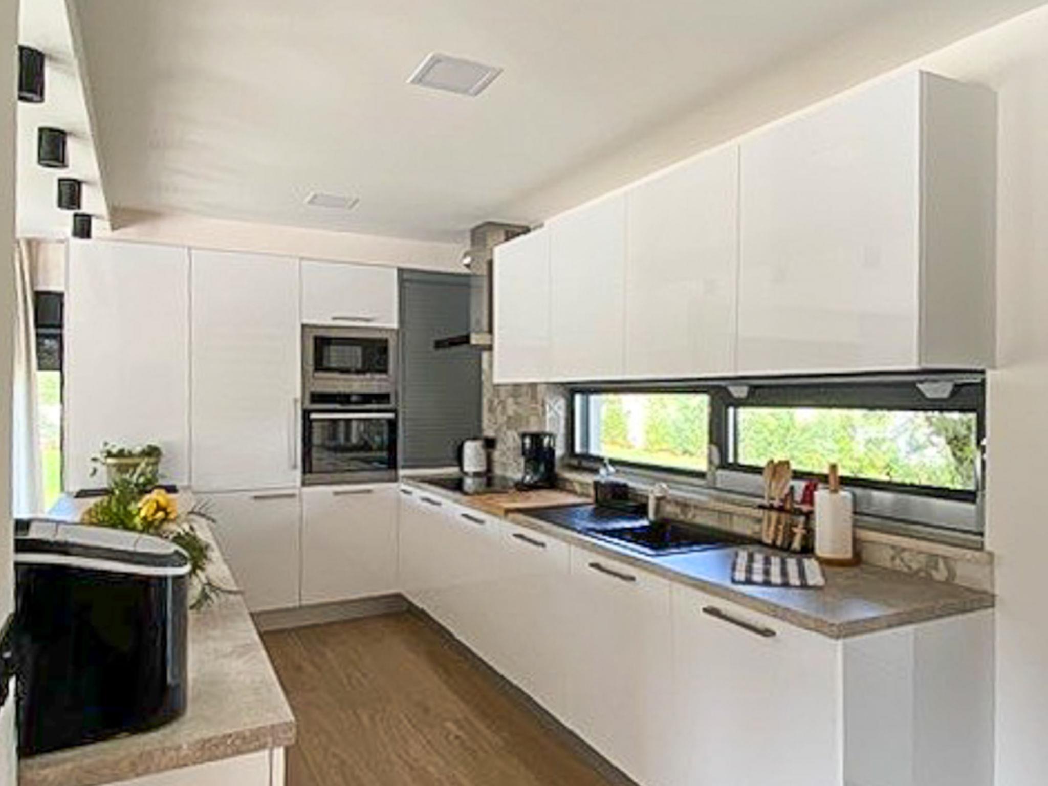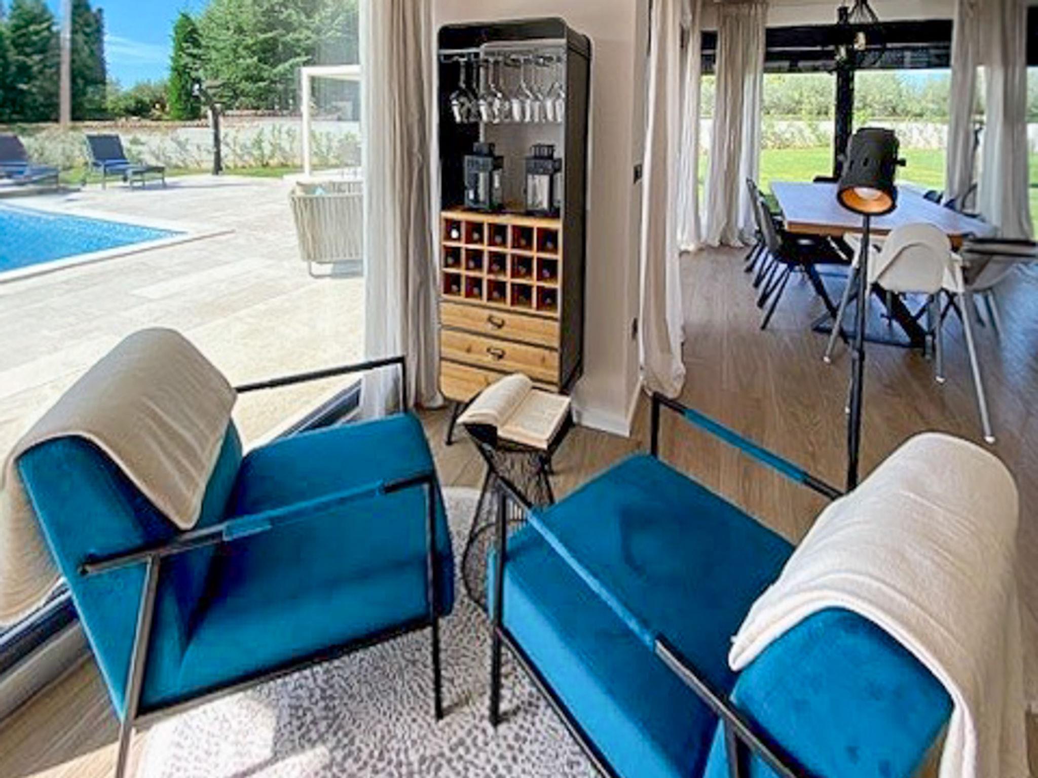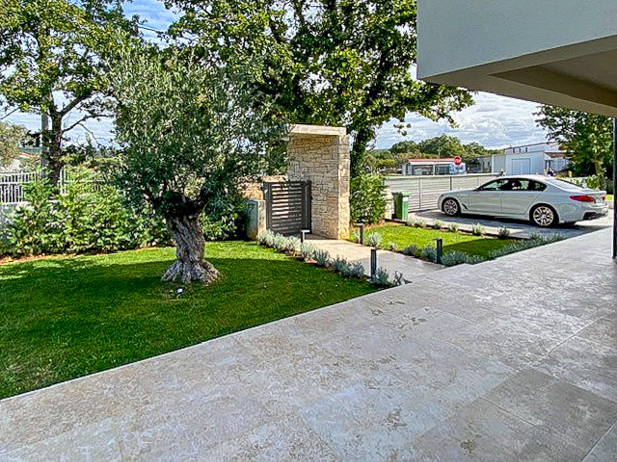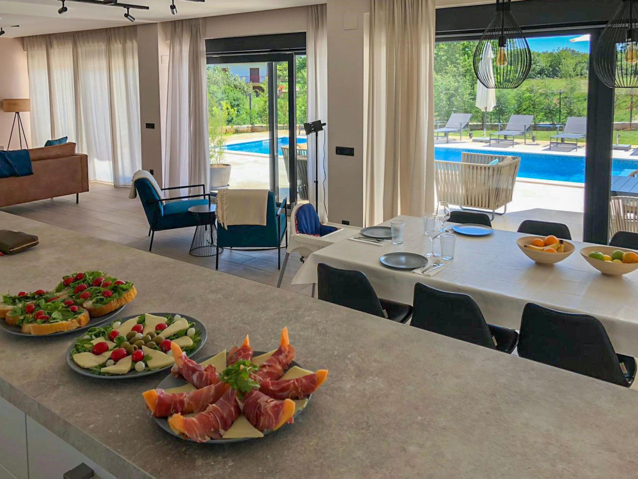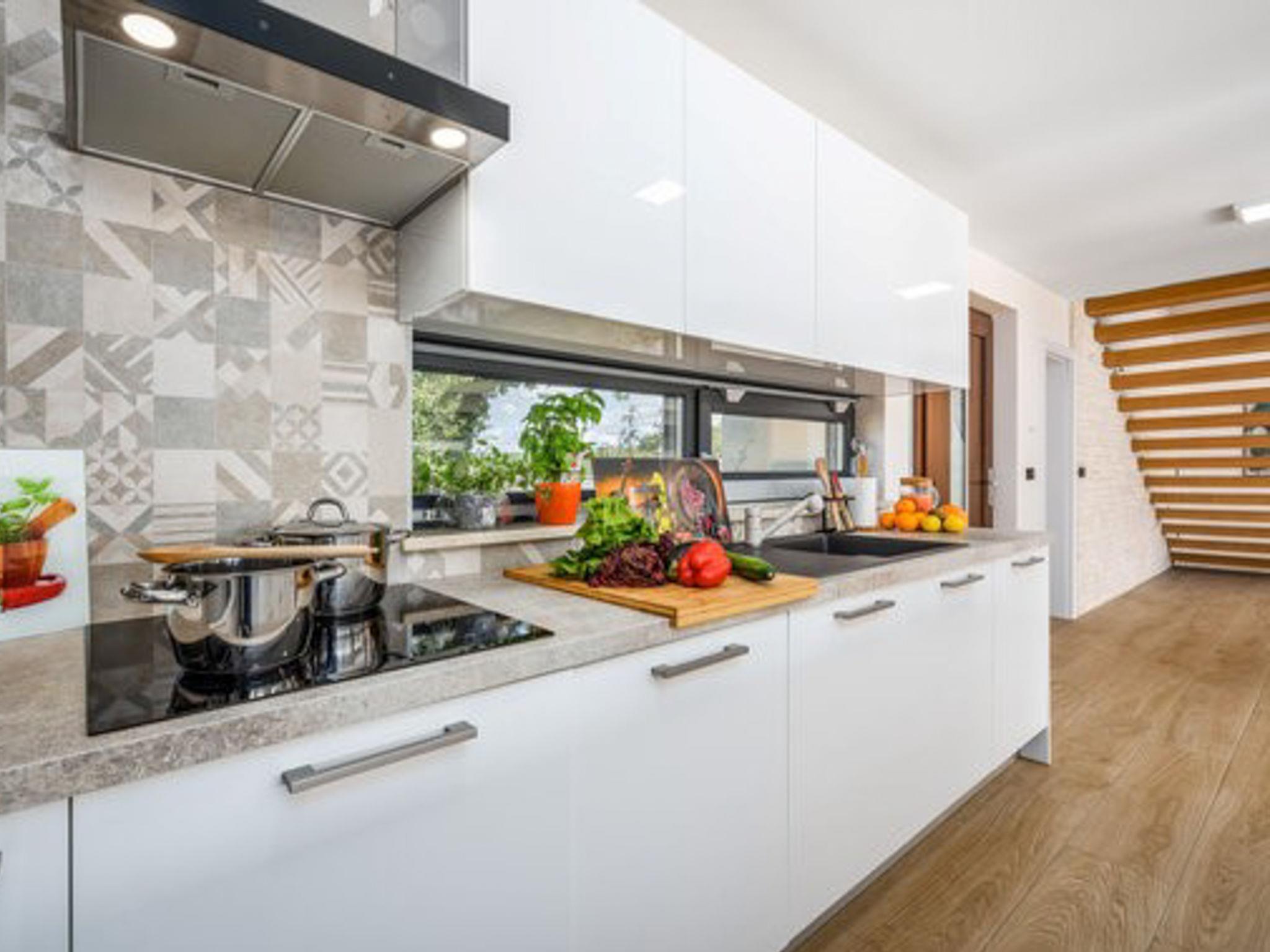 Jehnici 8 km from Porec: Luxurious villa "Frani", 2 storeys. In a quiet, sunny position, 11 km from the sea. Private: property 950 m2 (fenced) with lawn, swimming pool angular, heated (3 x 10 m, depth 150 cm, seasonal availability: 12.Apr. - 01.Nov.) with internal staircase. Outdoor shower, barbecue, children's playground (slide, swing). In the house: internet access, table tennis, washing machine, tumble dryer. Parking (for 3 cars) at the house on the premises. Shop 3 km, restaurant 3 km, bus stop 3.5 km, public bathing area 11 km. Walking paths from the house 100 m, cycle lane 150 m. Nearby attractions: Aquapark 11 km. The owner does not accept any youth groups. Swimming pool heated (extra).
