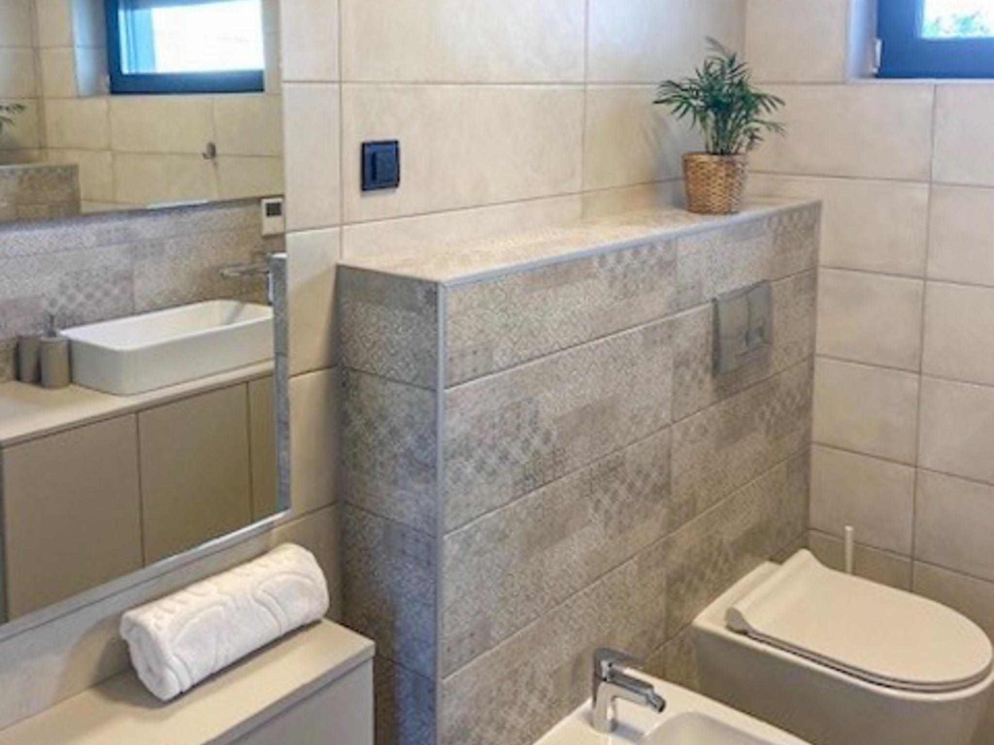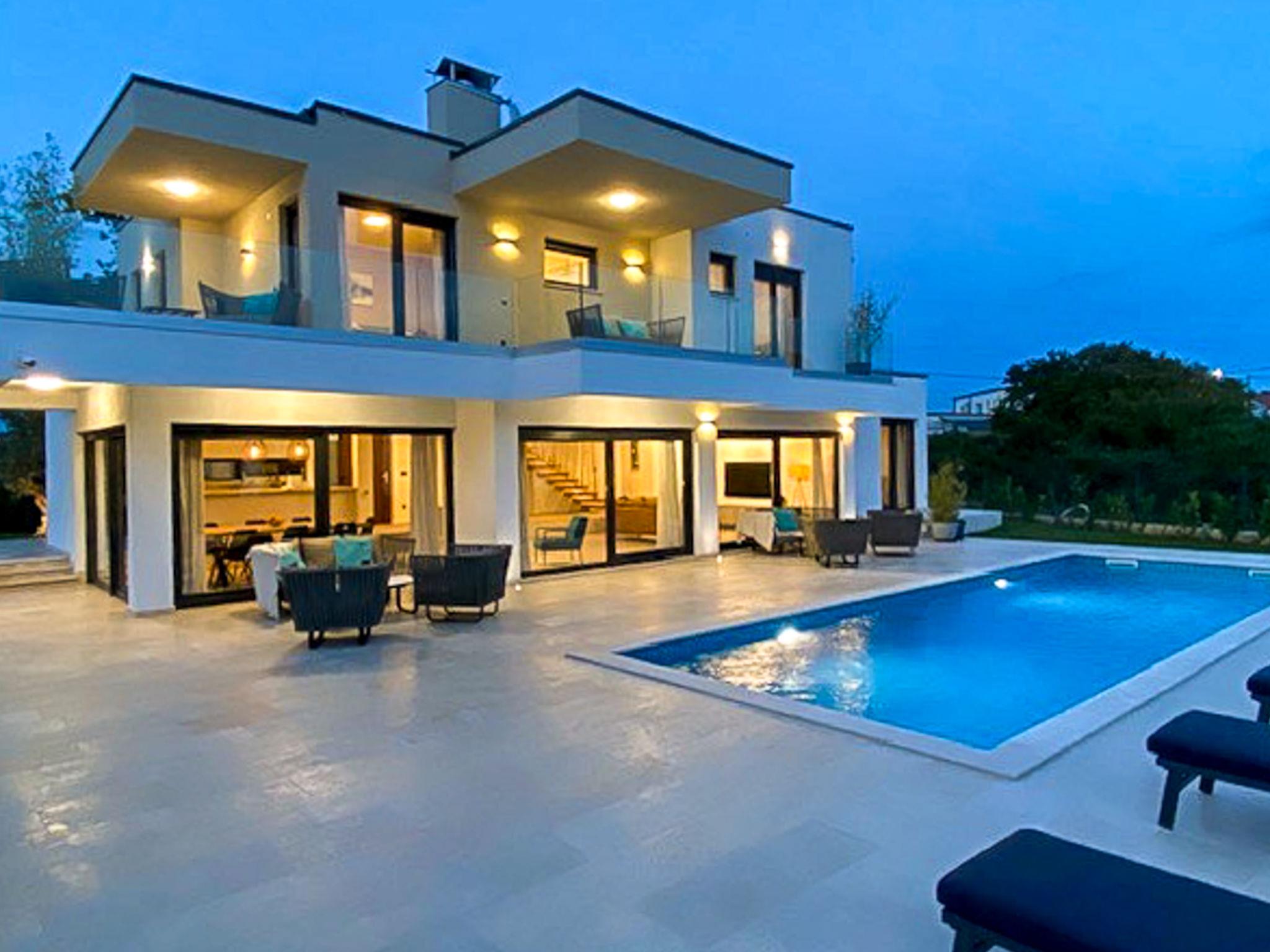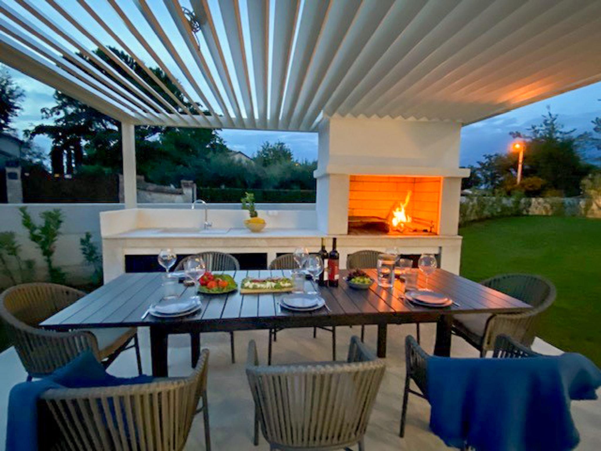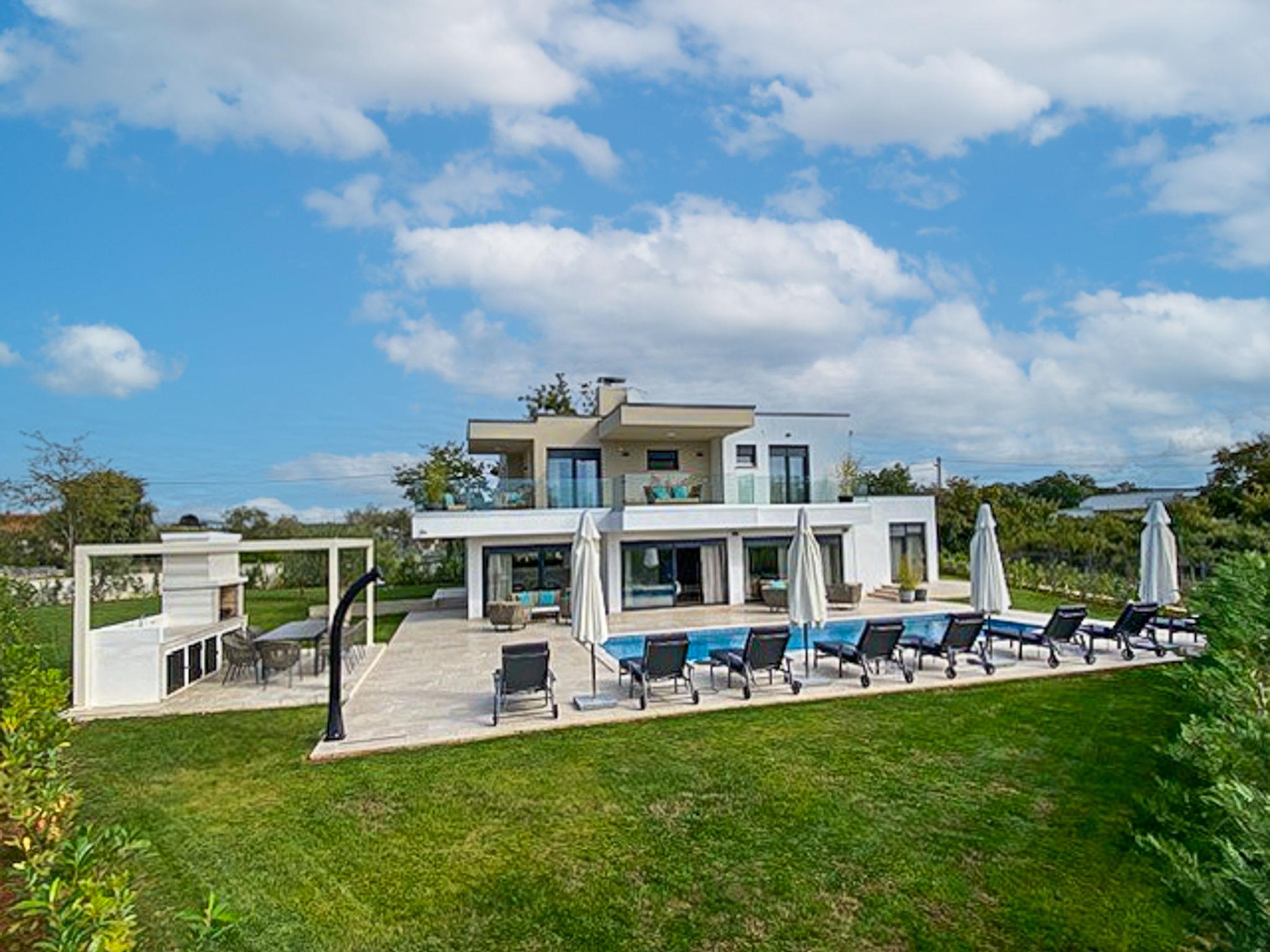 Jehnici 8 km from Porec: Luxurious villa "Frani", 2 storeys. In a quiet, sunny position, 11 km from the sea. Private: property 950 m2 (fenced) with lawn, swimming pool angular, heated (3 x 10 m, depth 150 cm, seasonal availability: 12.Apr. - 01.Nov.) with internal staircase. Outdoor shower, barbecue, children's playground (slide, swing). In the house: internet access, table tennis, washing machine, tumble dryer. Parking (for 3 cars) at the house on the premises. Shop 3 km, restaurant 3 km, bus stop 3.5 km, public bathing area 11 km. Walking paths from the house 100 m, cycle lane 150 m. Nearby attractions: Aquapark 11 km. The owner does not accept any youth groups. Swimming pool heated (extra).