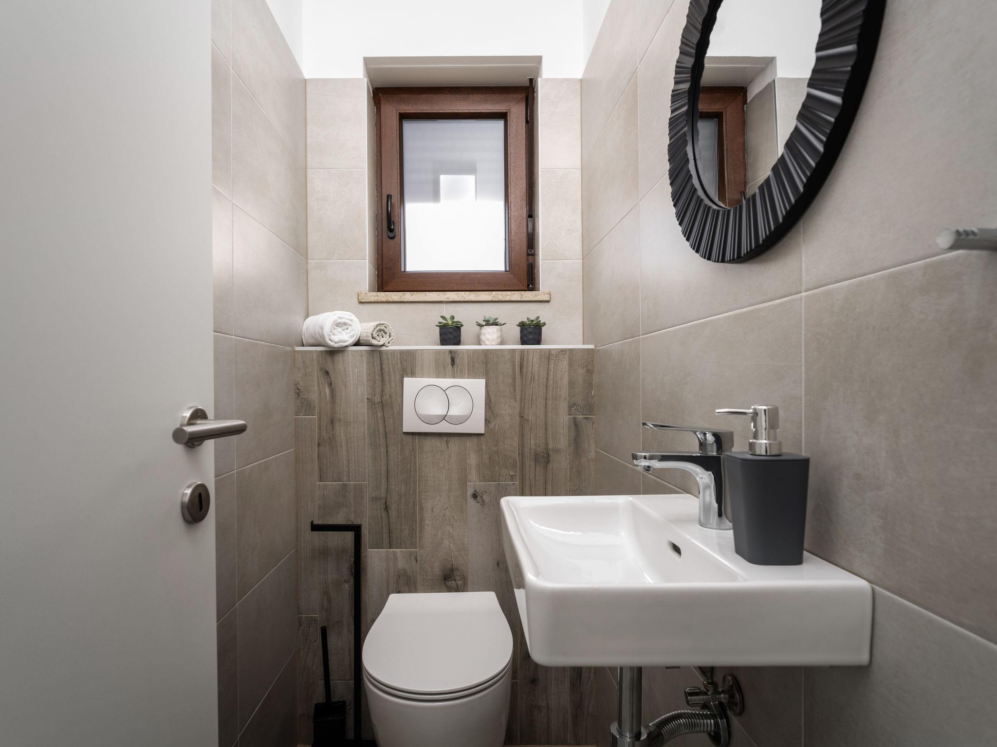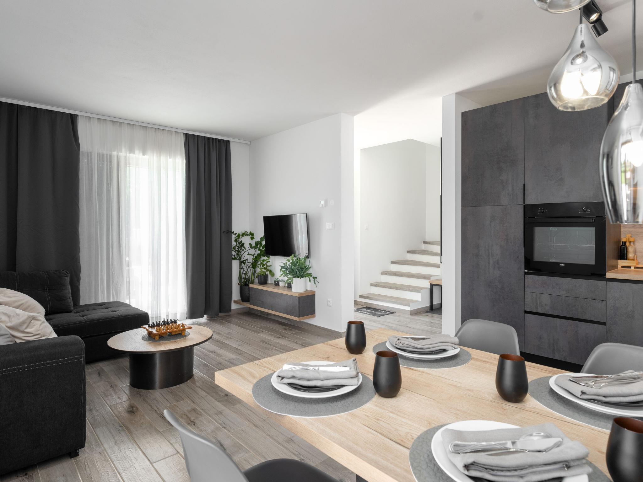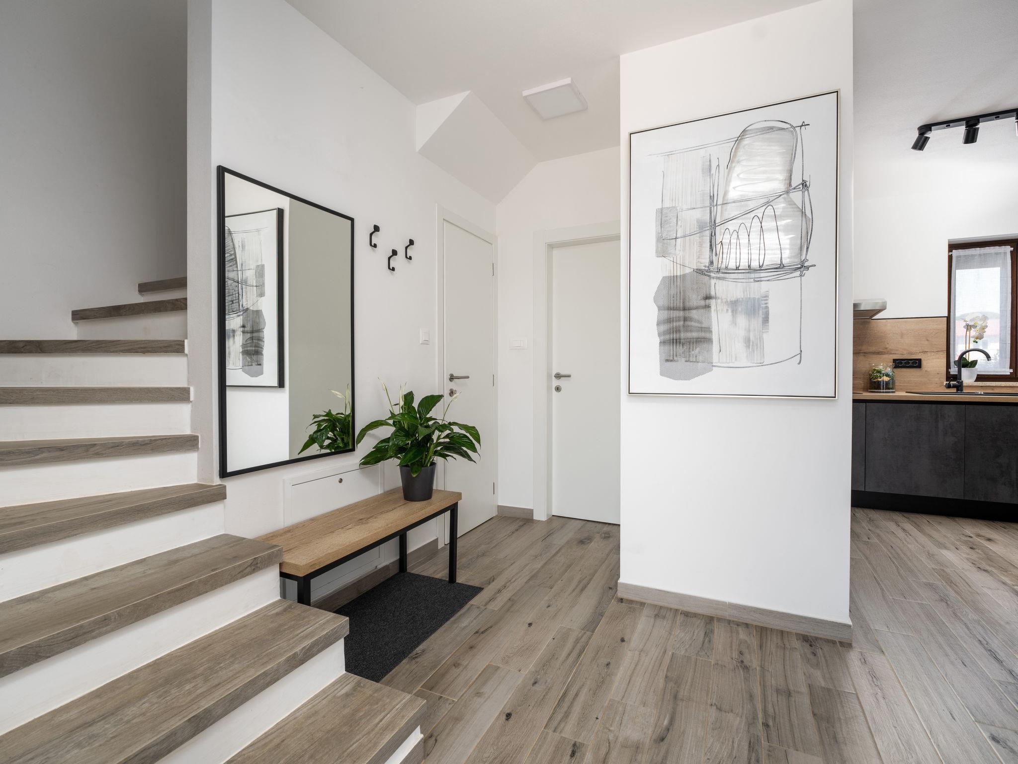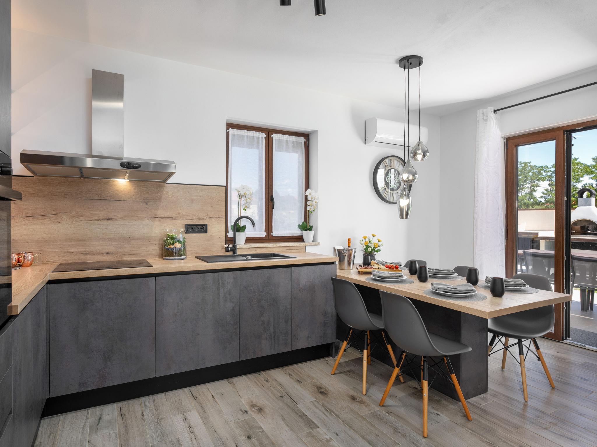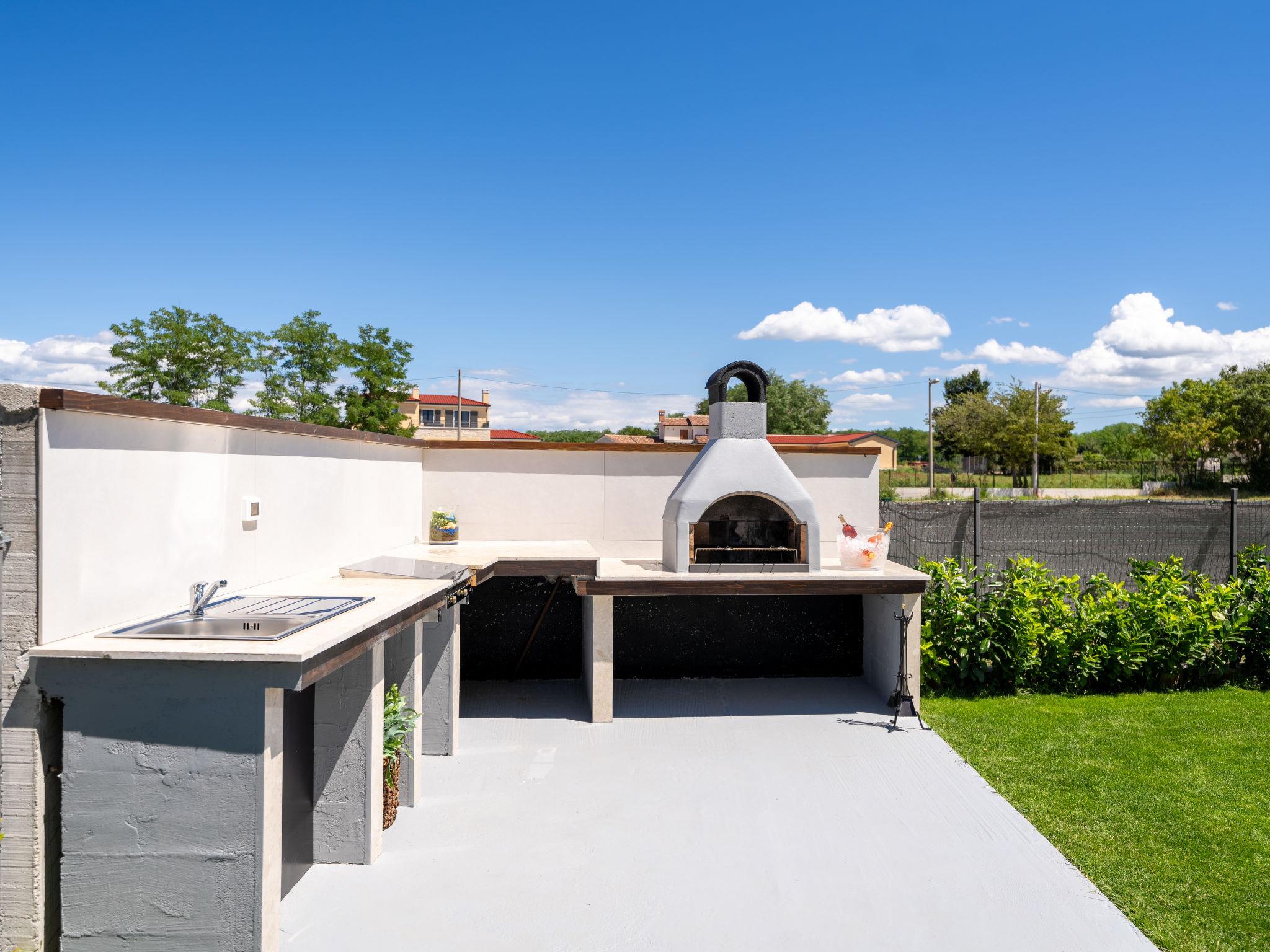Beautiful terraced house "Aria Blue", 2 storeys. In the hamlet Krancici 500 m from the centre of Kaštelir, 15 km from the centre of Porec, in a sunny position, 10 km from the sea. Private: property 275 m2 (fenced), swimming pool angular (7 x 4 m, depth 145 cm, seasonal availability: 01.Mar. - 10.Dec.) with internal staircase. Outdoor shower, table tennis, terrace (10 m2), garden furniture, barbecue. In the house: internet access, washing machine. Parking (for 2 cars) at the house. Shop 500 m, restaurant 2 km, bus stop 6.1 km, pebble beach 10 km, rocky beach 10 km. Walking paths from the house 100 m, cycle lane 150 m. Please note: suitable for families. The owner does not accept any youth groups.