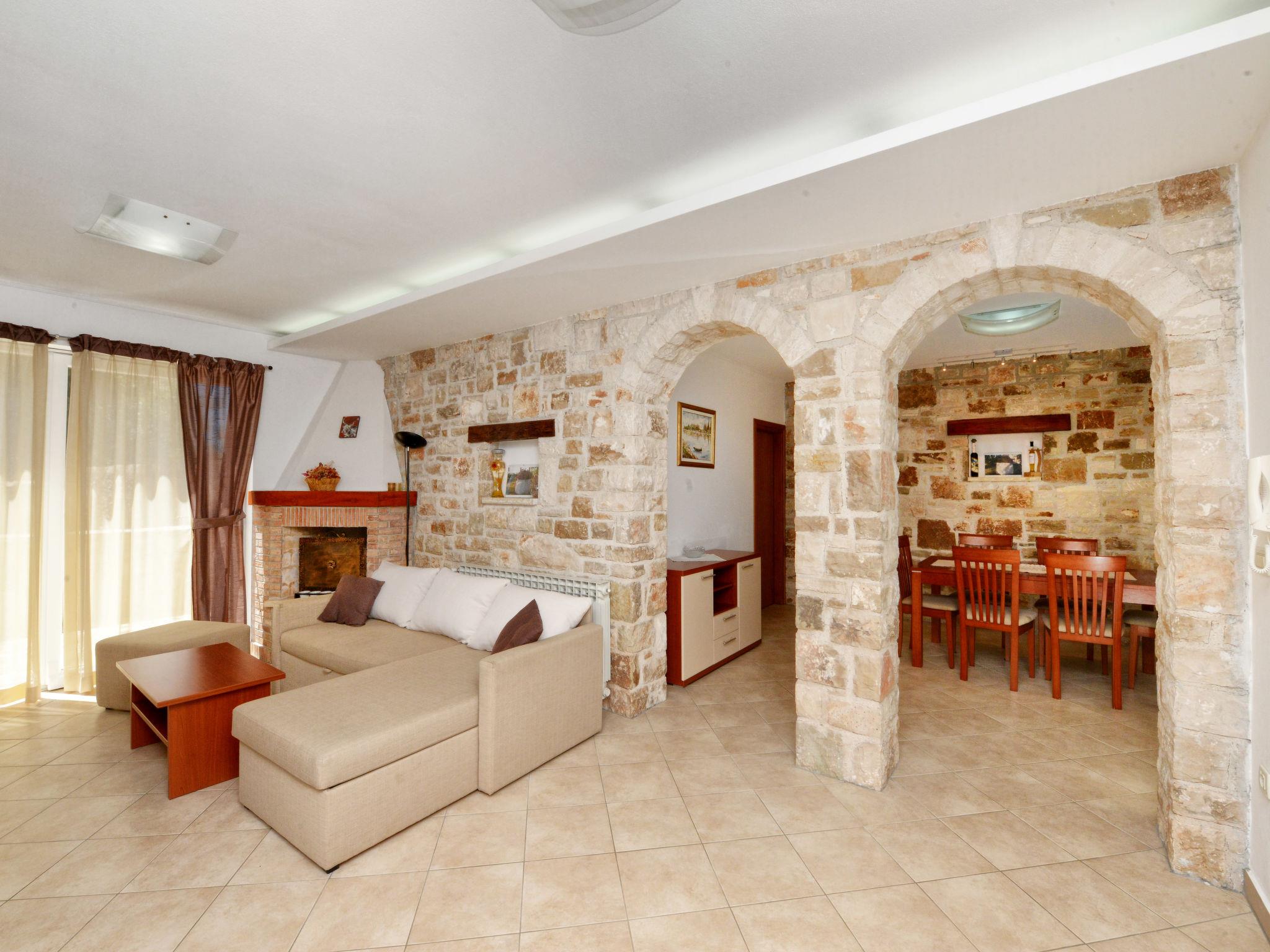 3-room house 120 m2 on 2 levels. Living/dining room with 1 double sofabed (160 cm, length 200 cm), open-hearth fireplace (only for decoration), satellite TV. Exit to the terrace. Open kitchen (oven, dishwasher, 4 ceramic glass hob hotplates, toaster, kettle, microwave, freezer, electric coffee machine). Bath/bidet/WC. Oil heating. Upper floor: entrance hall with air conditioning. 1 room with 1 french bed (160 cm, length 200 cm), shower/WC. Exit to the terrace. 1 room with 1 sofabed and 1 french bed (160 cm, length 200 cm), shower/WC. Exit to the terrace. Heating (extra). Terrace. Deck chairs. Facilities: baby cot (extra). Internet (WiFi, free). Please note: non-smoking house. Maximum 1 pet/ dog allowed. KLASA: UP/I-335-03/11-01/3, URBROJ: 2163-11-03-11-
