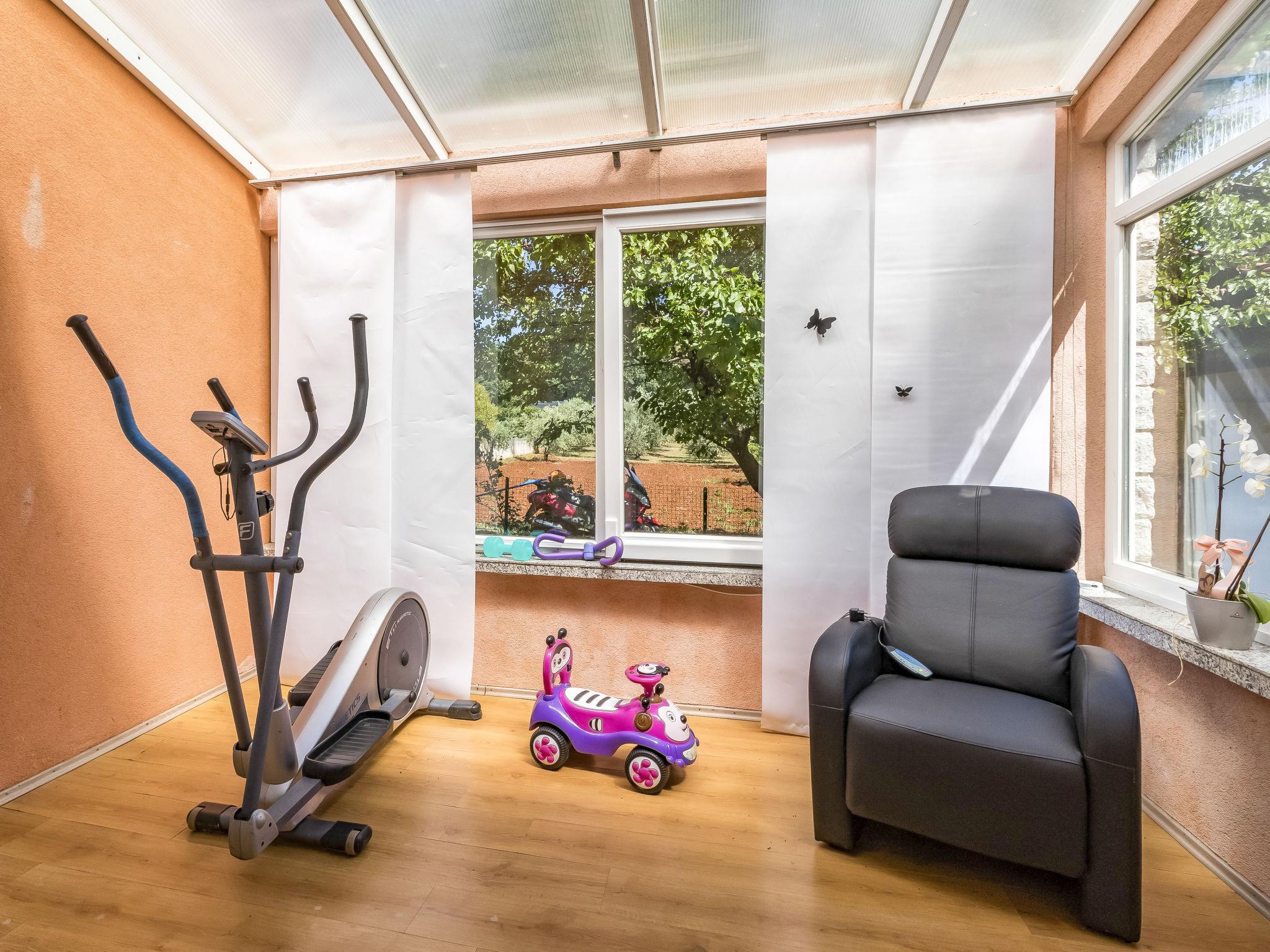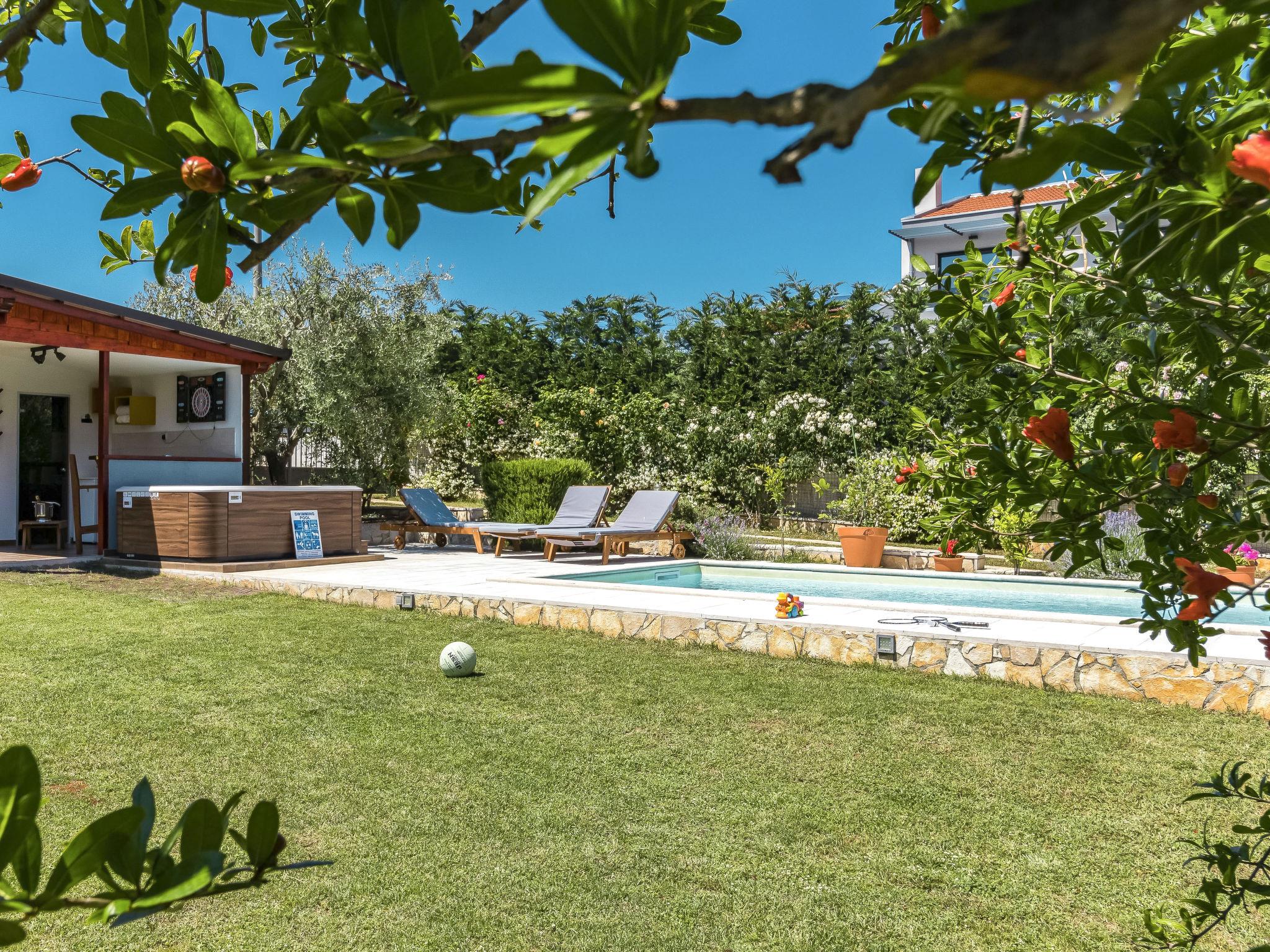 Single-family house "Petar", 2 storeys. In the hamlet Rogovici 2 km from the centre of Tar, 4 km from the centre of Kaštelir, 13 km from the centre of Porec, 4.5 km from the sea, 4.5 km from the beach. Private: property 1'000 m2 (fenced) with lawn and trees, swimming pool (7 x 3 m, depth 135 cm, seasonal availability: 01.May. - 30.Sep.) with internal staircase. Shower/WC in the pool area, outdoor shower, hot tub, table tennis, basketball, arbour, terrace, garden furniture, barbecue, barbecue house, pool maintenance by the owner/gardener. In the house: internet access, sauna, roof terrace, washing machine. Available: bicycles (2). Parking (for 3 cars) on the premises. Supermarket 2 km, restaurant 2 km, bus stop 10 km, railway station 40 km, pebble beach 4.5 km, rocky beach 4.5 km. Children's playground 50 m. The owner does not accept any youth groups.