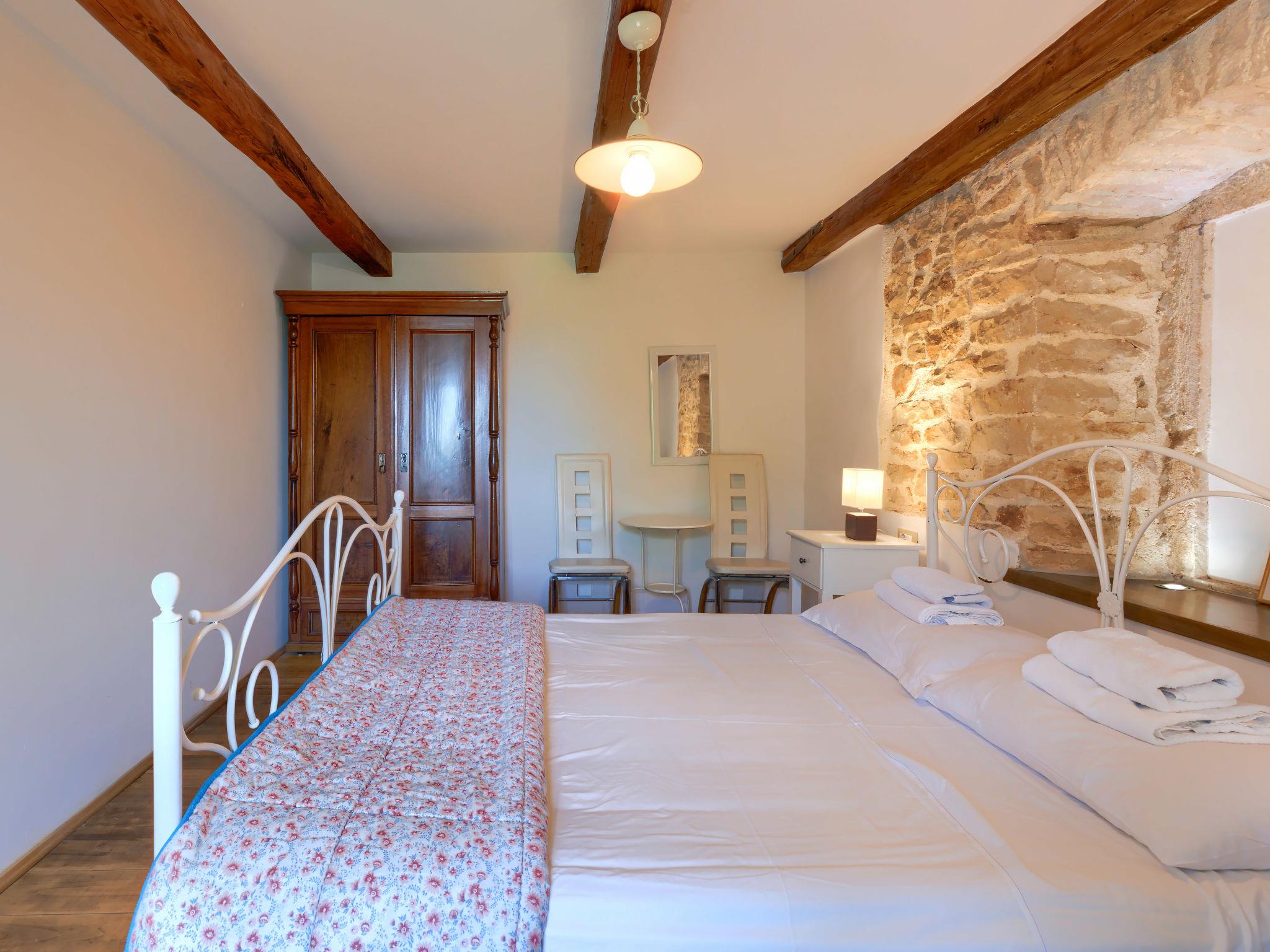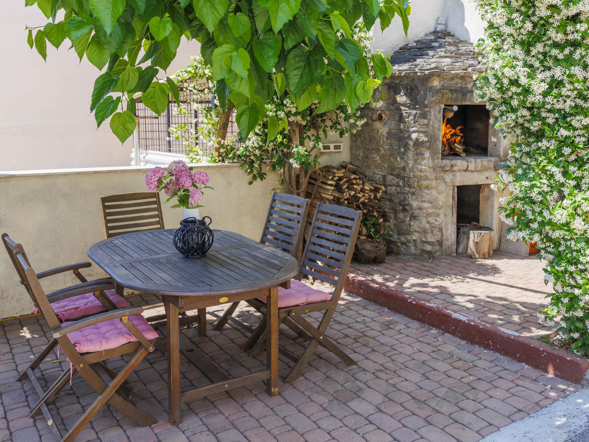 Terraced house "Pinia". 100 m from the centre of Kaštelir, 10 km from the centre of Porec, 10 km from the sea. For shared use: property 4'200 m2 with trees, meadow, swimming pool (above ground) round (5 m diameter, depth 100 cm, seasonal availability: 01.May. - 15.Oct.). Terrace, garden furniture. In the house: internet access. Parking (for 4 cars) on the premises. Shop 200 m, supermarket 10 km, bus stop 6.6 km, rocky beach 10 km. Marina 13 km. Please note: the owner lives in the same residence.