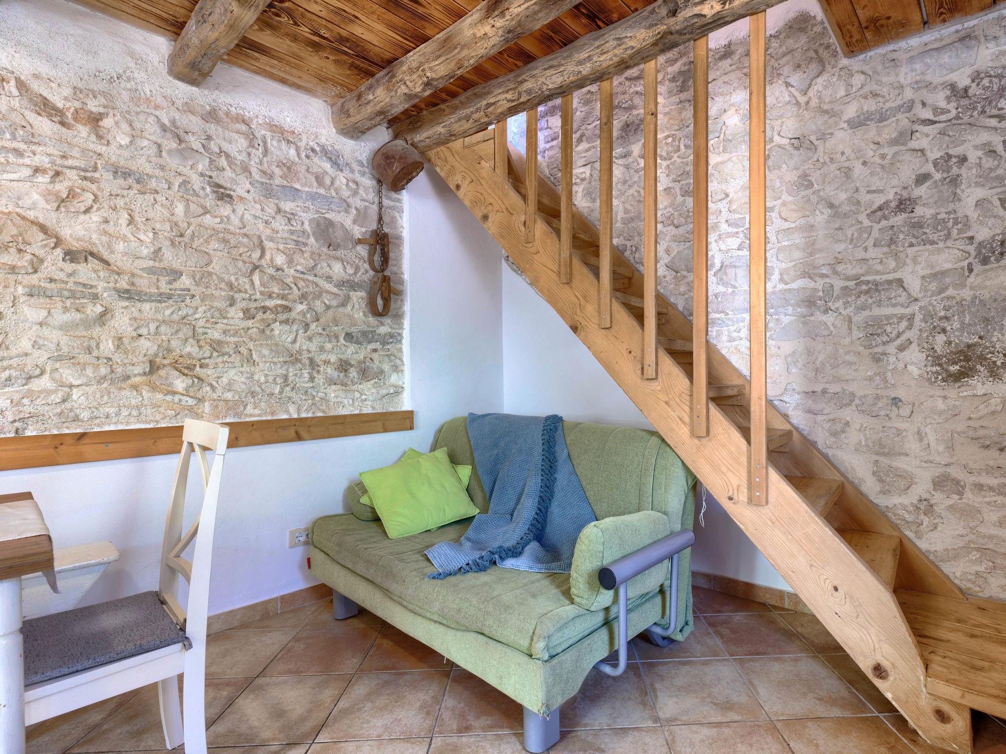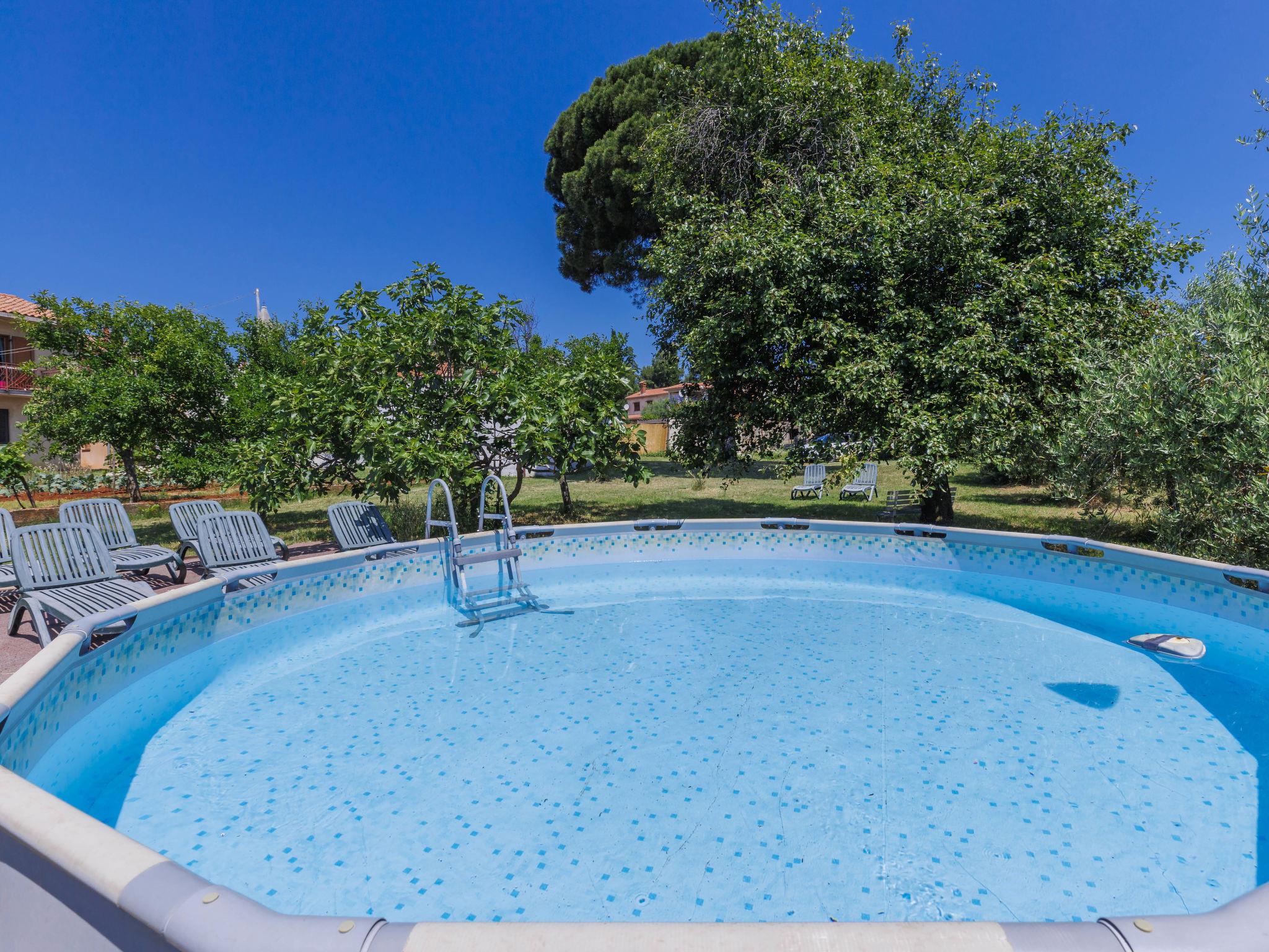 Terraced house "Pinia". 100 m from the centre of Kaštelir, 10 km from the centre of Porec, 10 km from the sea. For shared use: property 4'200 m2 with trees, meadow, swimming pool (above ground) round (5 m diameter, depth 100 cm, seasonal availability: 01.May. - 15.Oct.). Terrace, garden furniture. In the house: internet access. Parking (for 4 cars) on the premises. Shop 200 m, supermarket 10 km, bus stop 6.6 km, rocky beach 10 km. Marina 13 km. Please note: the owner lives in the same residence.