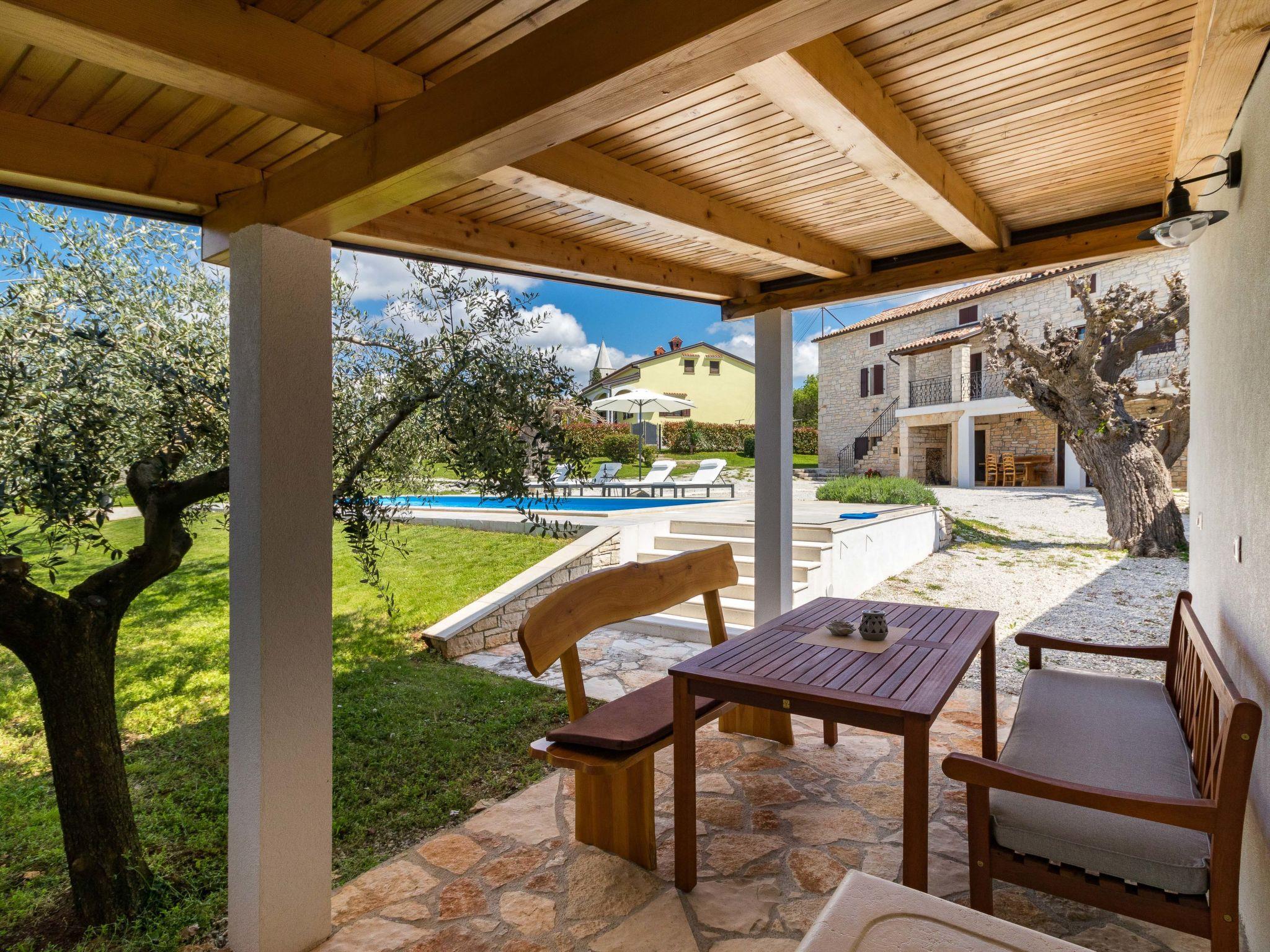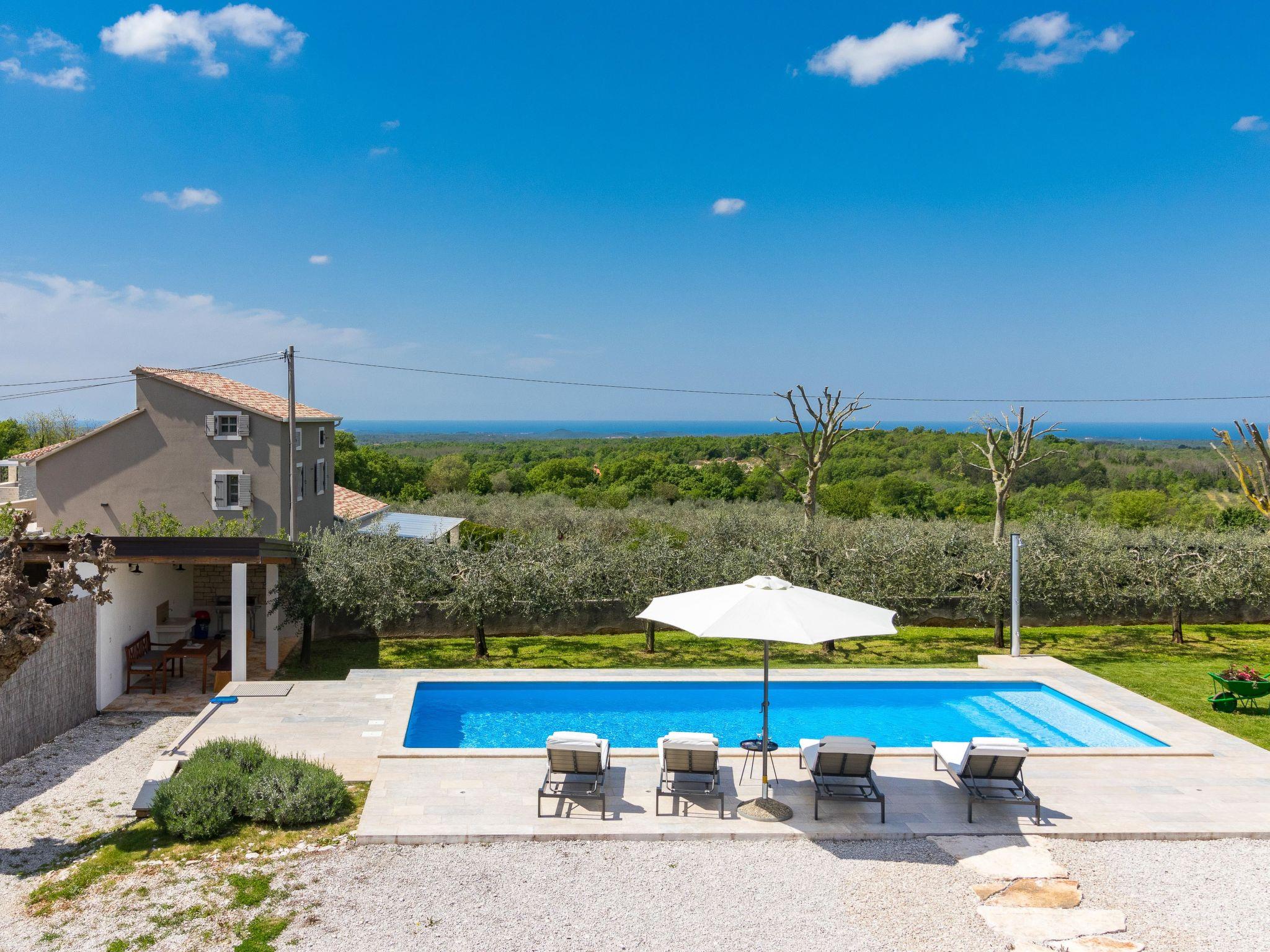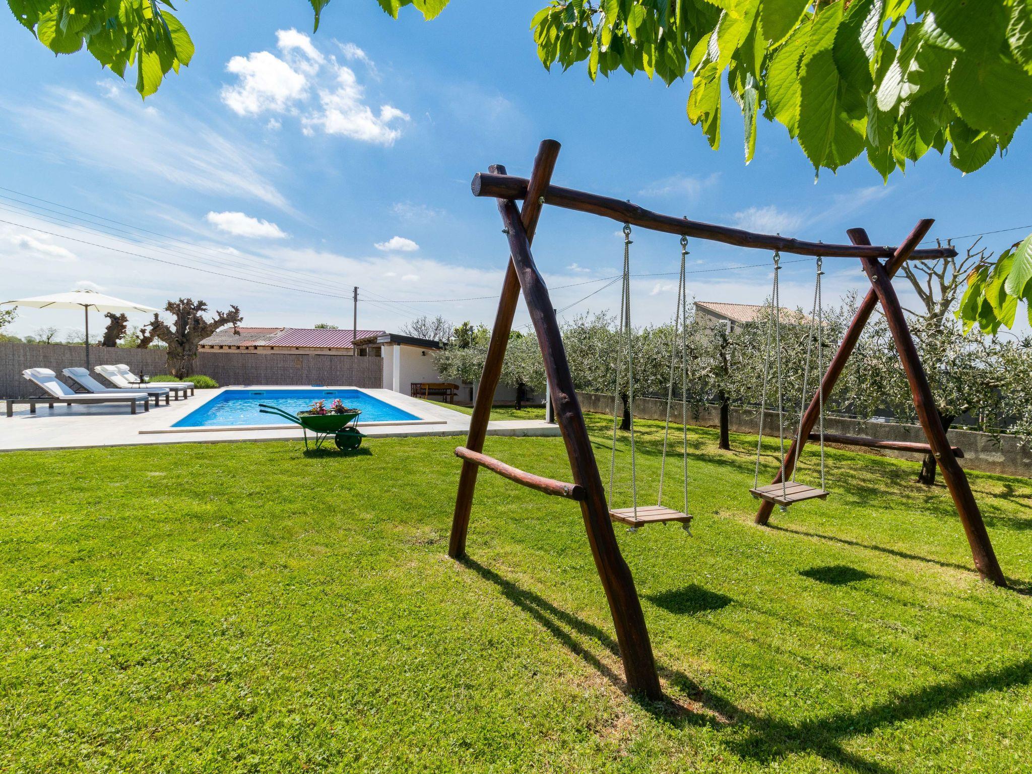 Single-family house "Vera", 2 storeys. In the hamlet Sveti Ivan 15 km from the centre of Kaštelir, 6 km from the centre of Višnjan, 17 km from the centre of Porec, 17 km from the sea. Private: property 2'000 m2 (fenced) with lawn and trees, swimming pool angular (10 x 4 m, depth 150 cm, seasonal availability: 27.Apr. - 15.Oct.) with internal staircase. Outdoor shower, terrace (24 m2), garden furniture (swing). In the house: internet access, table football, washing machine. Parking (for 3 cars) at the house on the premises. Shop 2.5 km, supermarket 6 km, bus stop 3.3 km, pebble beach 17 km. The owner does not accept any youth groups. Please note: 1st floor is closed and not occupied.