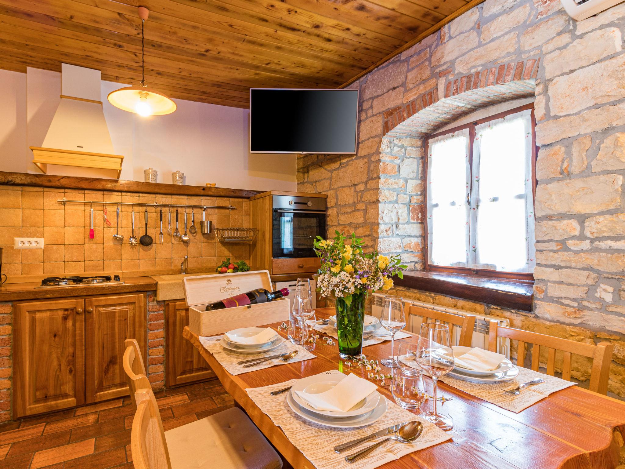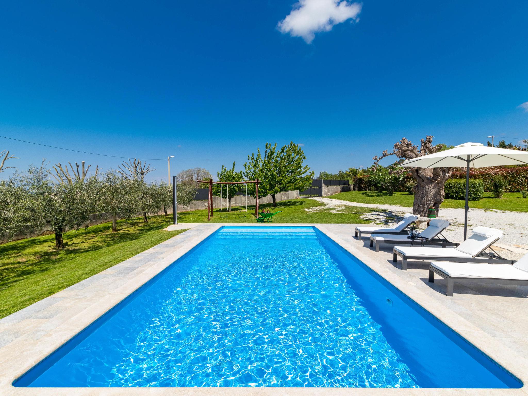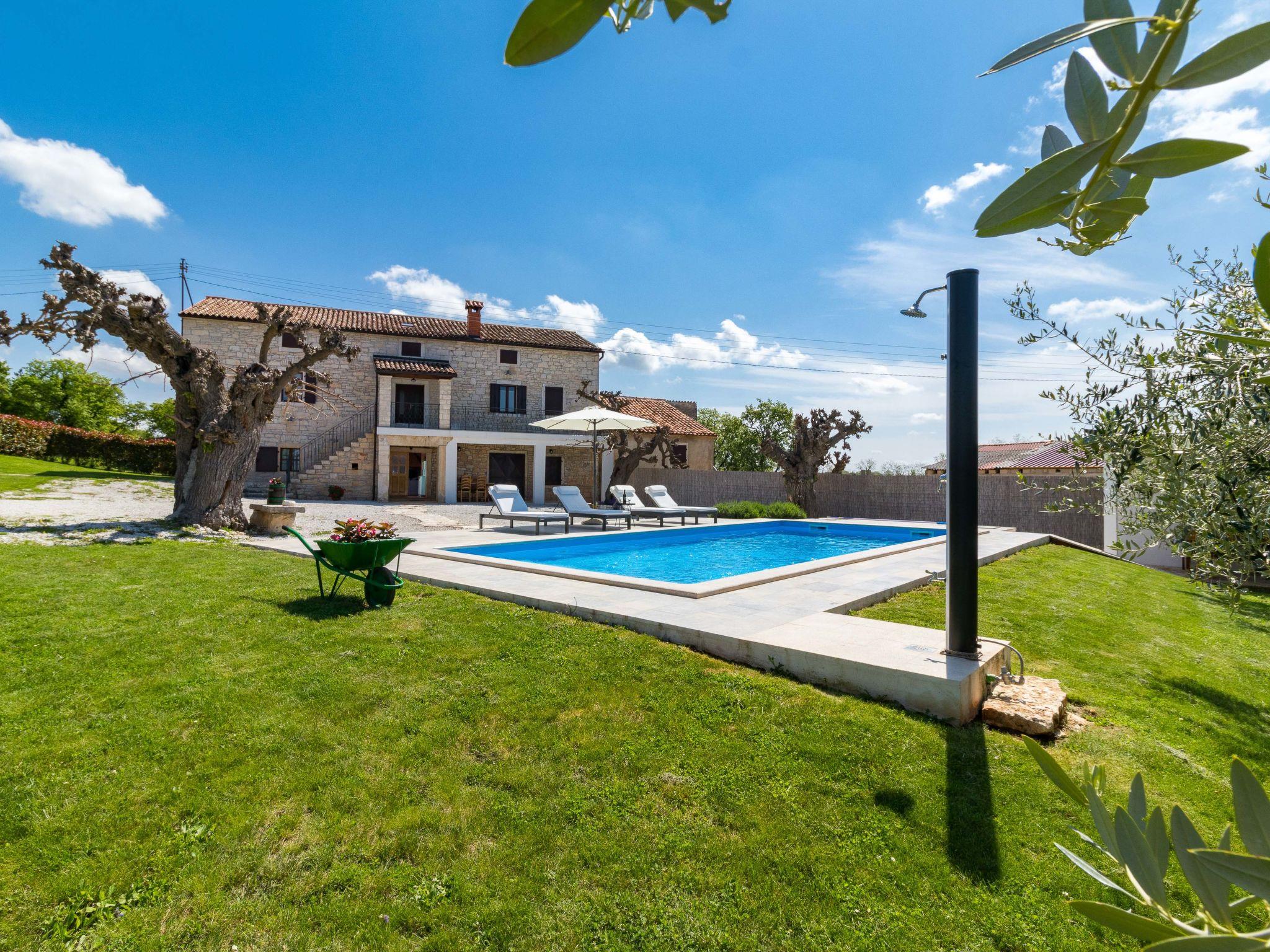Single-family house "Vera", 2 storeys. In the hamlet Sveti Ivan 15 km from the centre of Kaštelir, 6 km from the centre of Višnjan, 17 km from the centre of Porec, 17 km from the sea. Private: property 2'000 m2 (fenced) with lawn and trees, swimming pool angular (10 x 4 m, depth 150 cm, seasonal availability: 27.Apr. - 15.Oct.) with internal staircase. Outdoor shower, terrace (24 m2), garden furniture (swing). In the house: internet access, table football, washing machine. Parking (for 3 cars) at the house on the premises. Shop 2.5 km, supermarket 6 km, bus stop 3.3 km, pebble beach 17 km. The owner does not accept any youth groups. Please note: 1st floor is closed and not occupied.