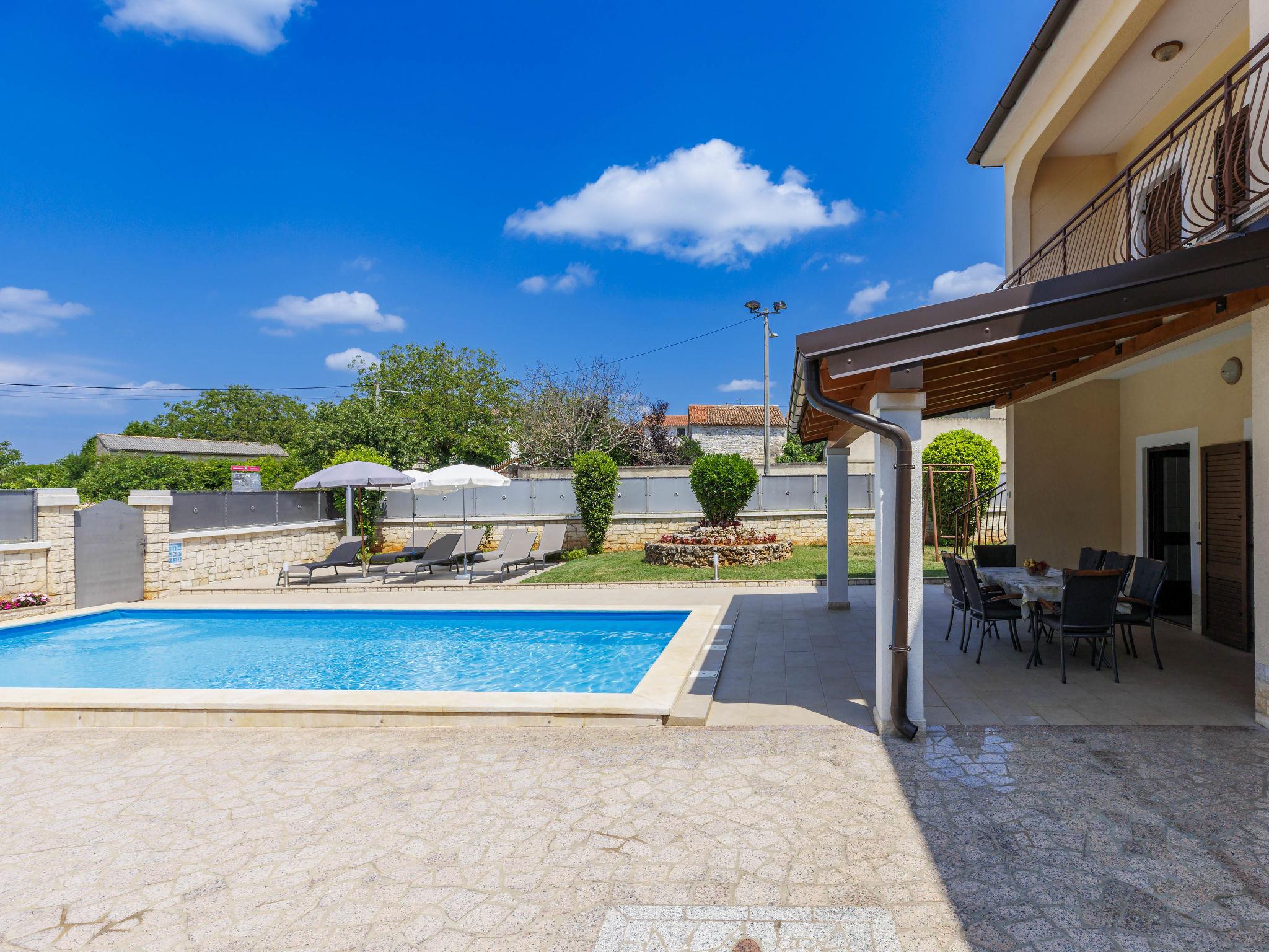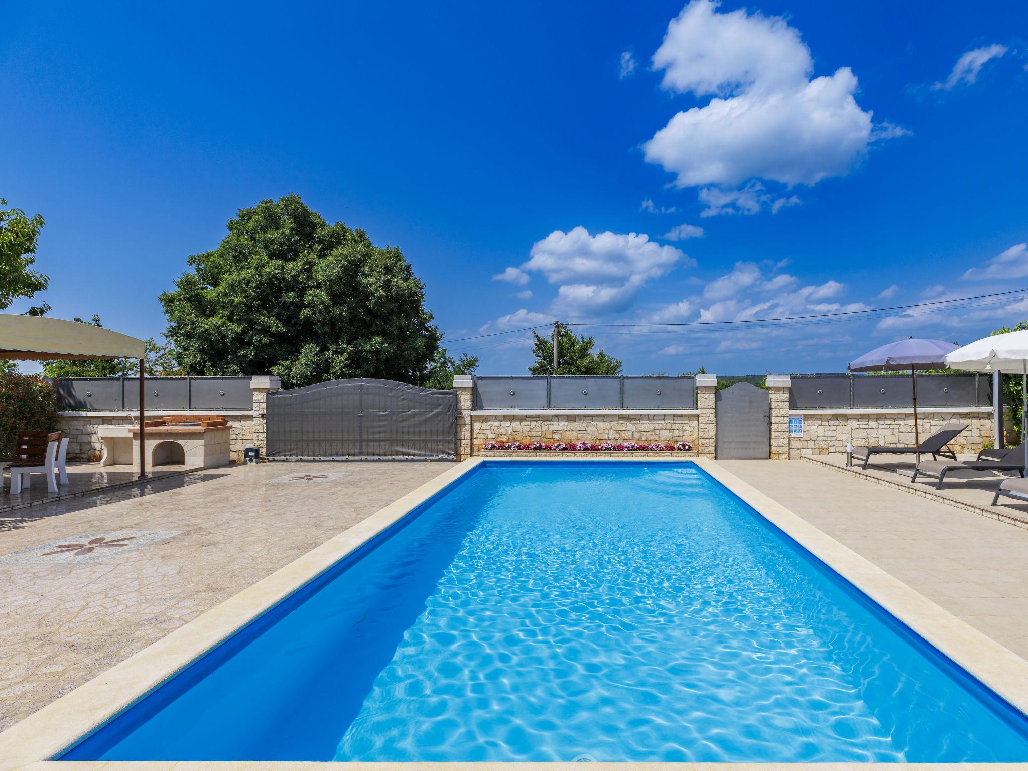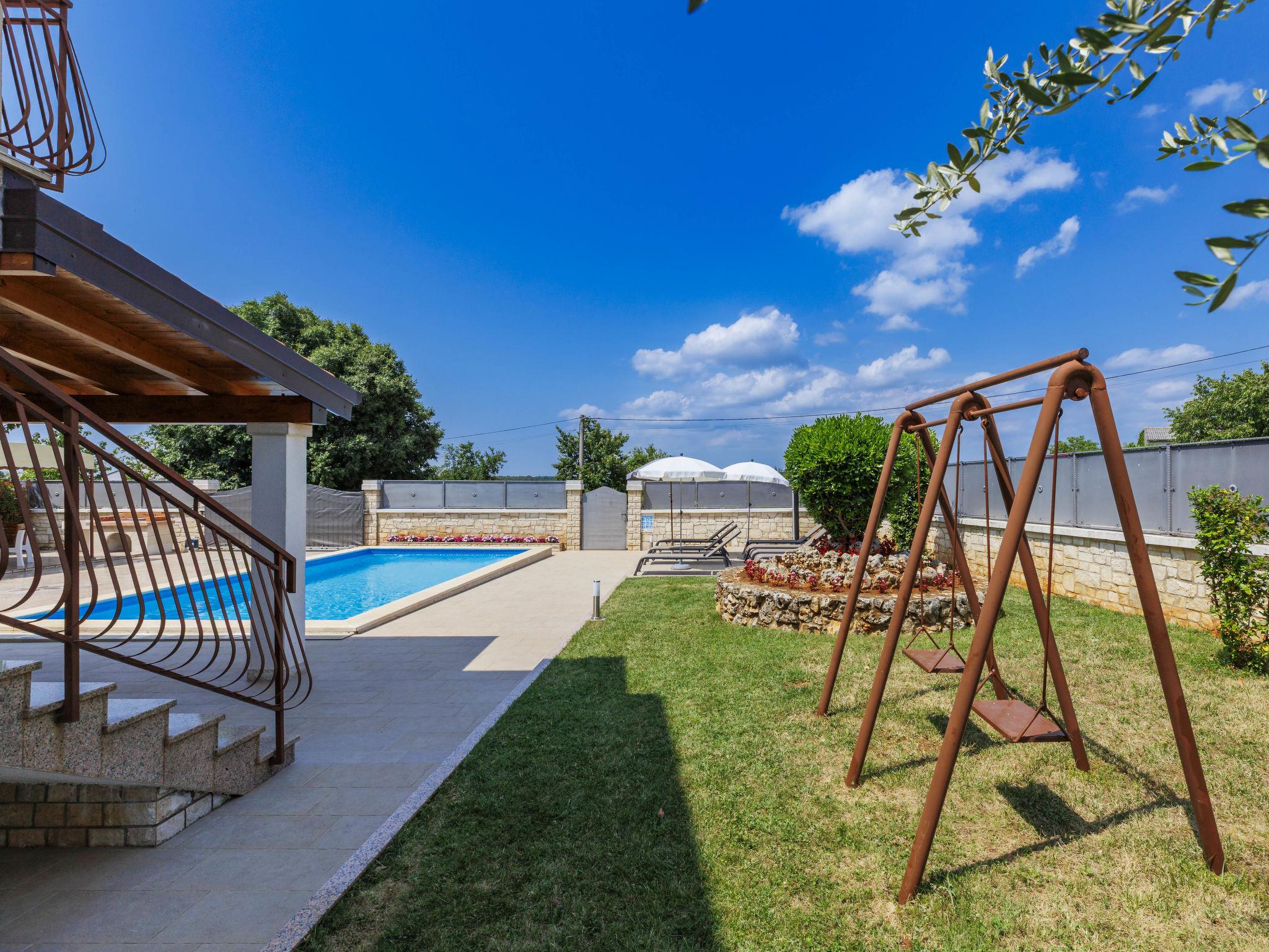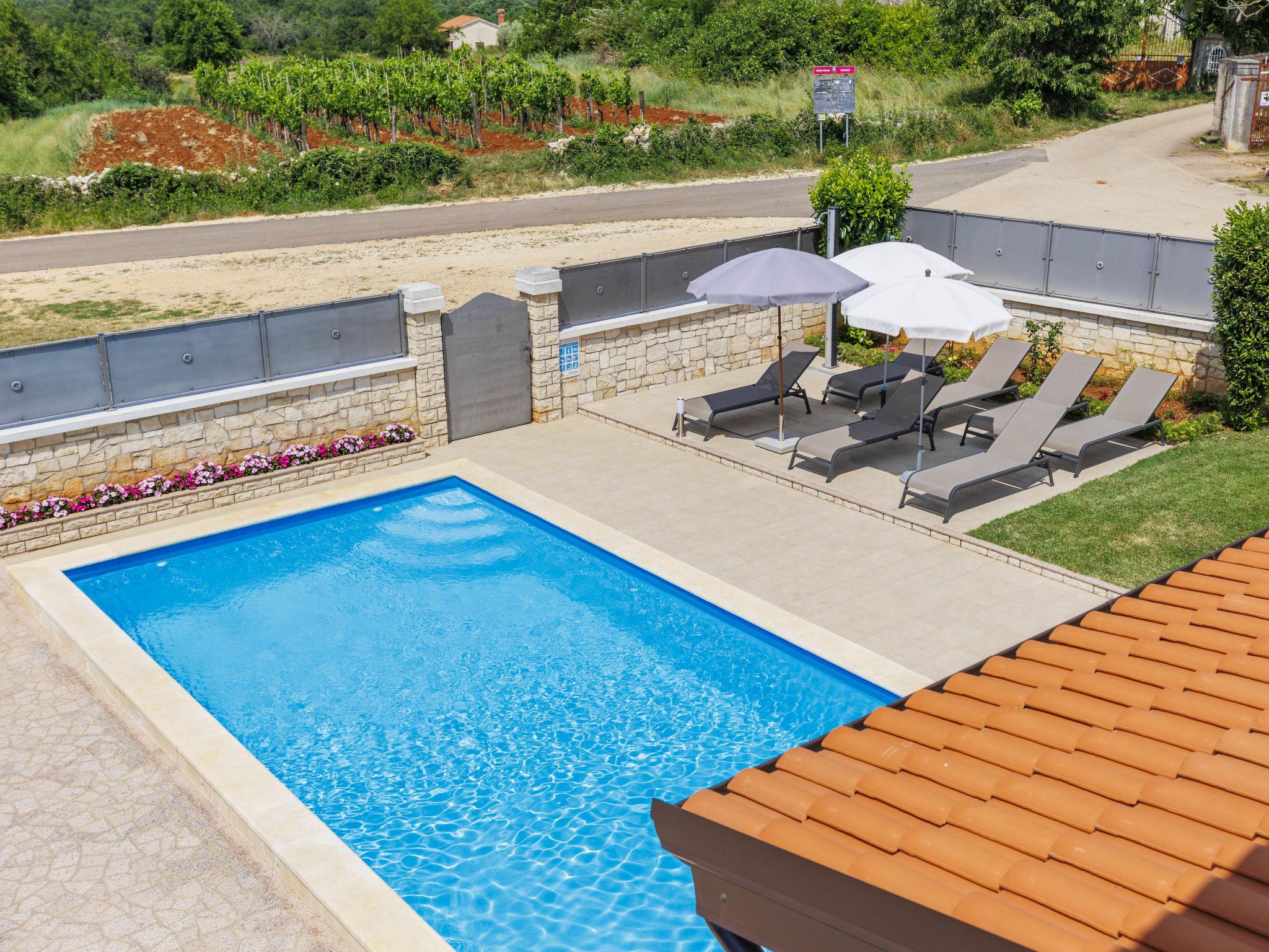 Single-family house "Kristina", 2 storeys. In the hamlet Radovani 11 km from the centre of Kaštelir, 5 km from the centre of Višnjan, 13 km from the centre of Porec, 13 km from the sea. Private: property 800 m2 (fenced) with lawn and trees, swimming pool angular (8 x 4 m, depth 150 cm, seasonal availability: 01.May. - 30.Sep.) with internal staircase. Outdoor shower, terrace (16 m2), garden furniture, barbecue (swing), pool maintenance by the owner/gardener. In the house: internet access, washing machine. Parking (for 2 cars) at the house on the premises. Shop 5 km, bus stop 5.3 km, pebble beach 13 km. Please note: suitable for families. The owner does not accept any youth groups. The house consists of 2 apartments rented as one unit. Each apartment with external and separate entrance.