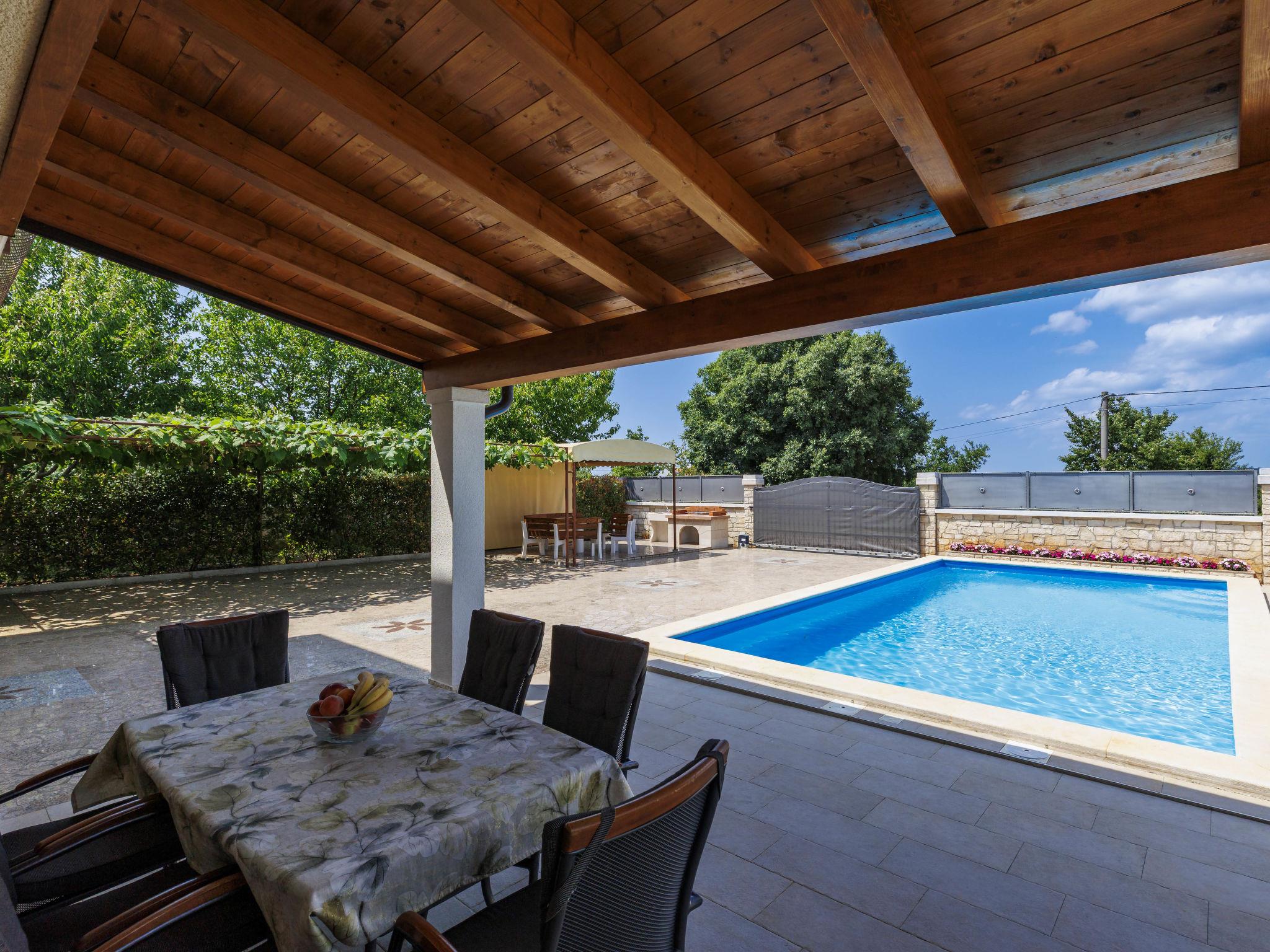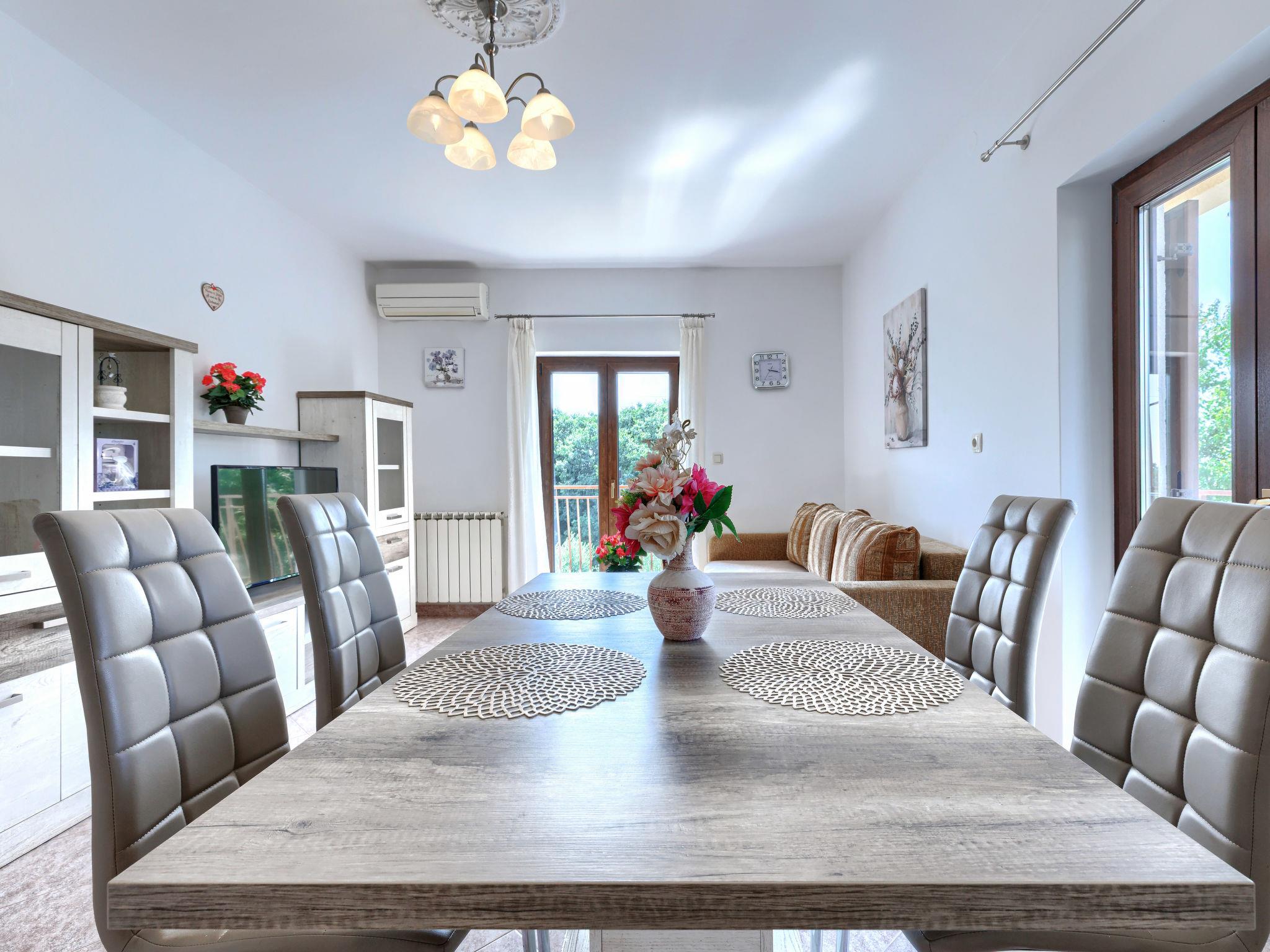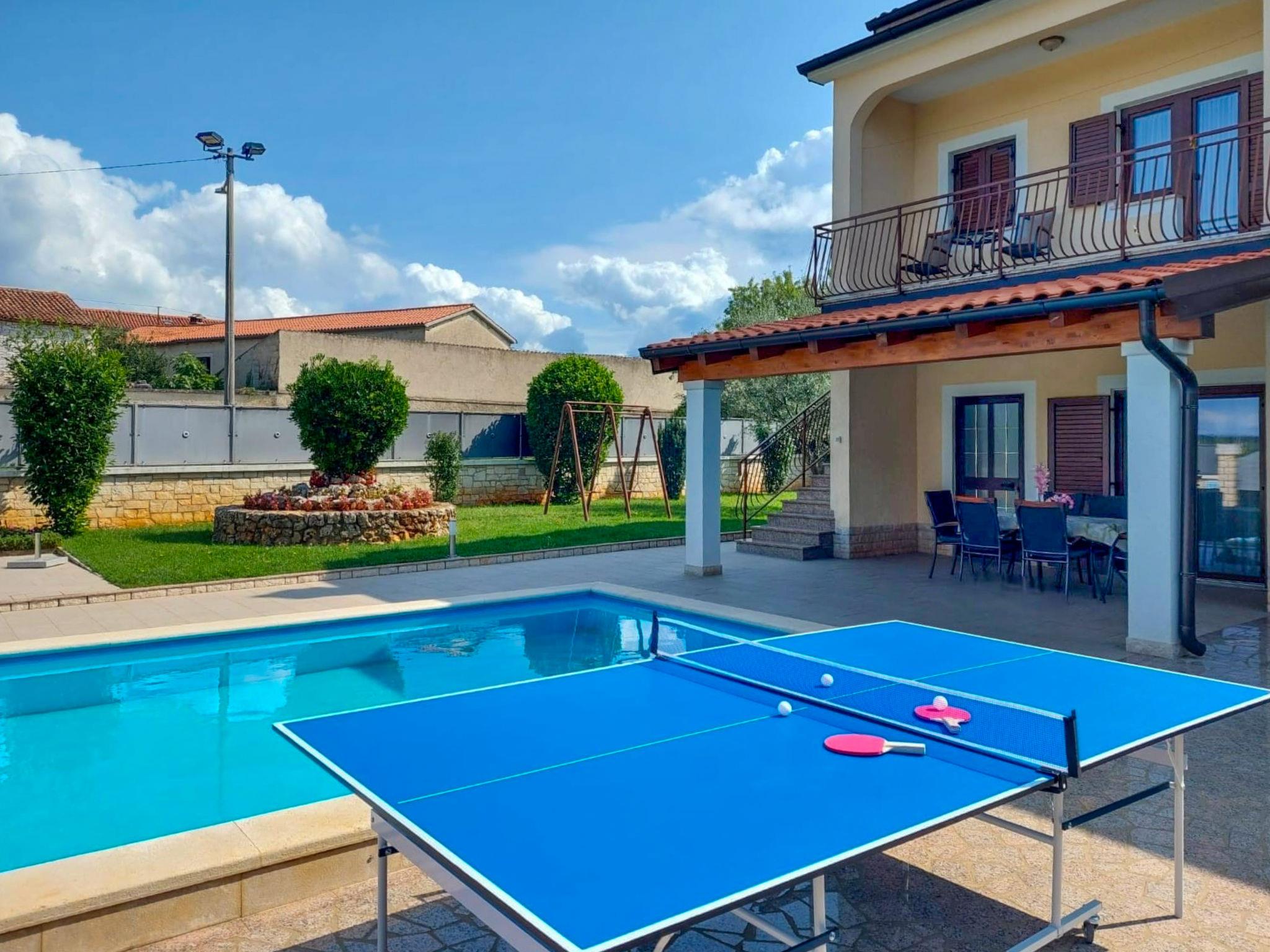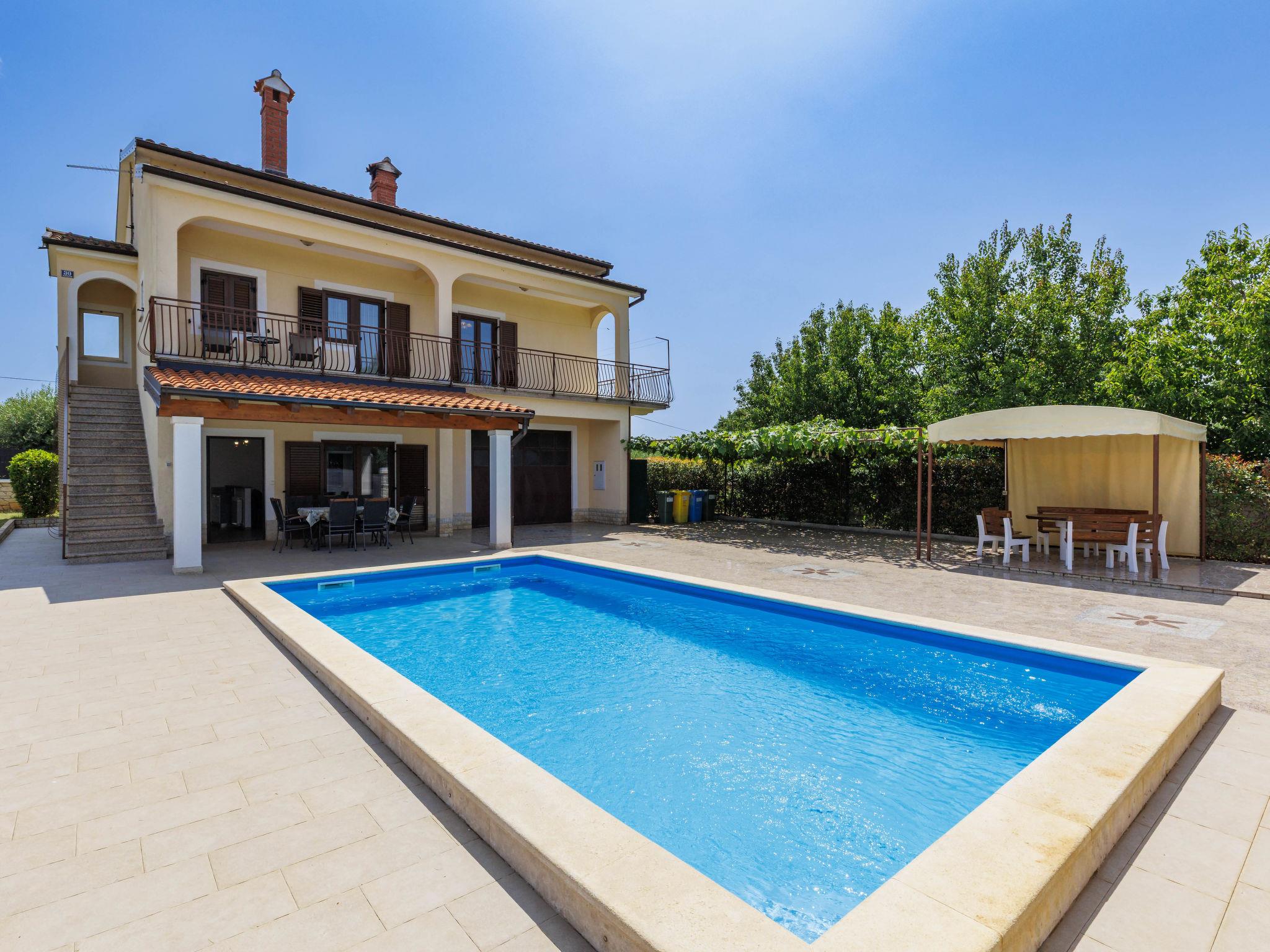 Single-family house "Kristina", 2 storeys. In the hamlet Radovani 11 km from the centre of Kaštelir, 5 km from the centre of Višnjan, 13 km from the centre of Porec, 13 km from the sea. Private: property 800 m2 (fenced) with lawn and trees, swimming pool angular (8 x 4 m, depth 150 cm, seasonal availability: 01.May. - 30.Sep.) with internal staircase. Outdoor shower, terrace (16 m2), garden furniture, barbecue (swing), pool maintenance by the owner/gardener. In the house: internet access, washing machine. Parking (for 2 cars) at the house on the premises. Shop 5 km, bus stop 5.3 km, pebble beach 13 km. Please note: suitable for families. The owner does not accept any youth groups. The house consists of 2 apartments rented as one unit. Each apartment with external and separate entrance.