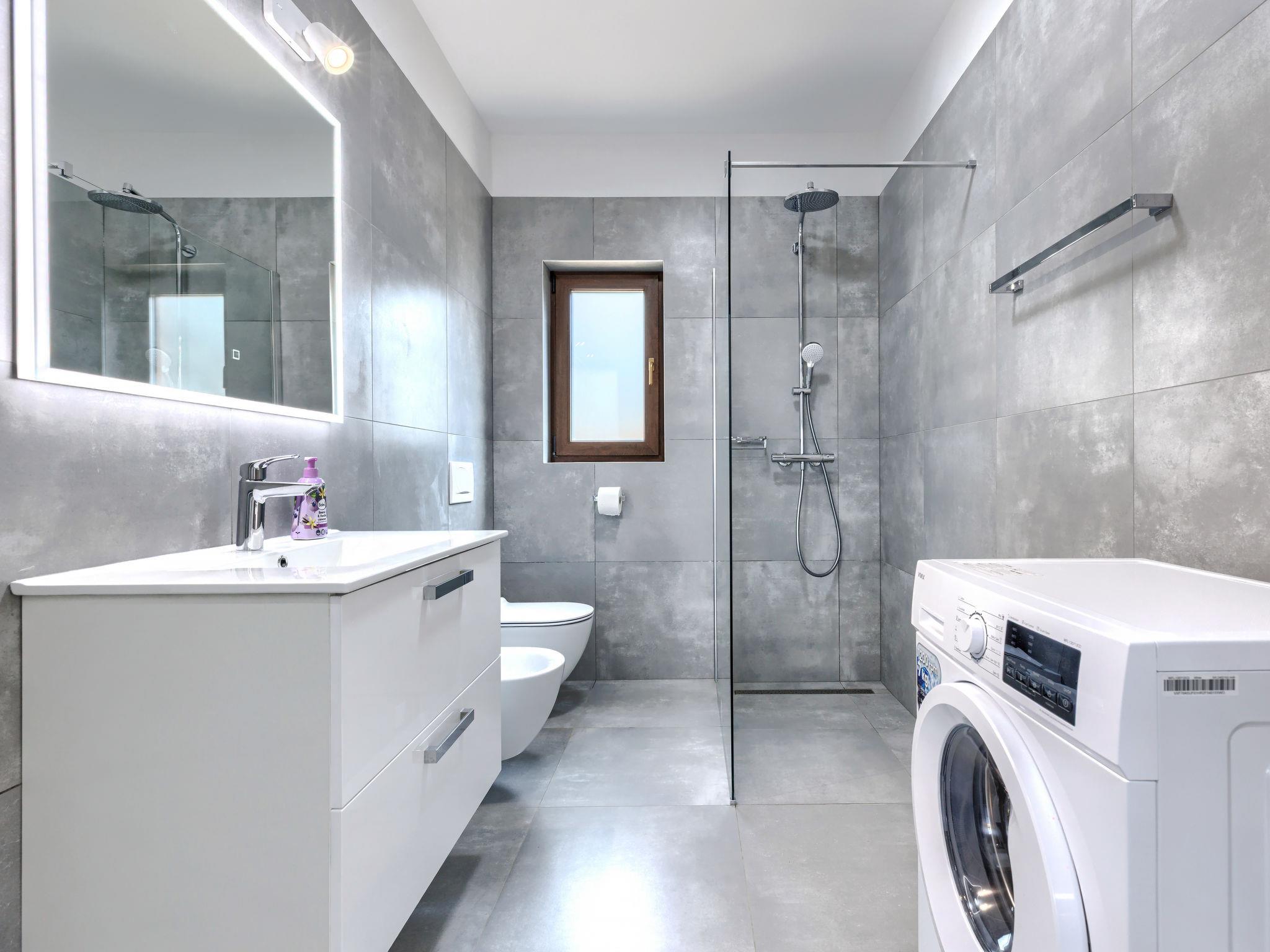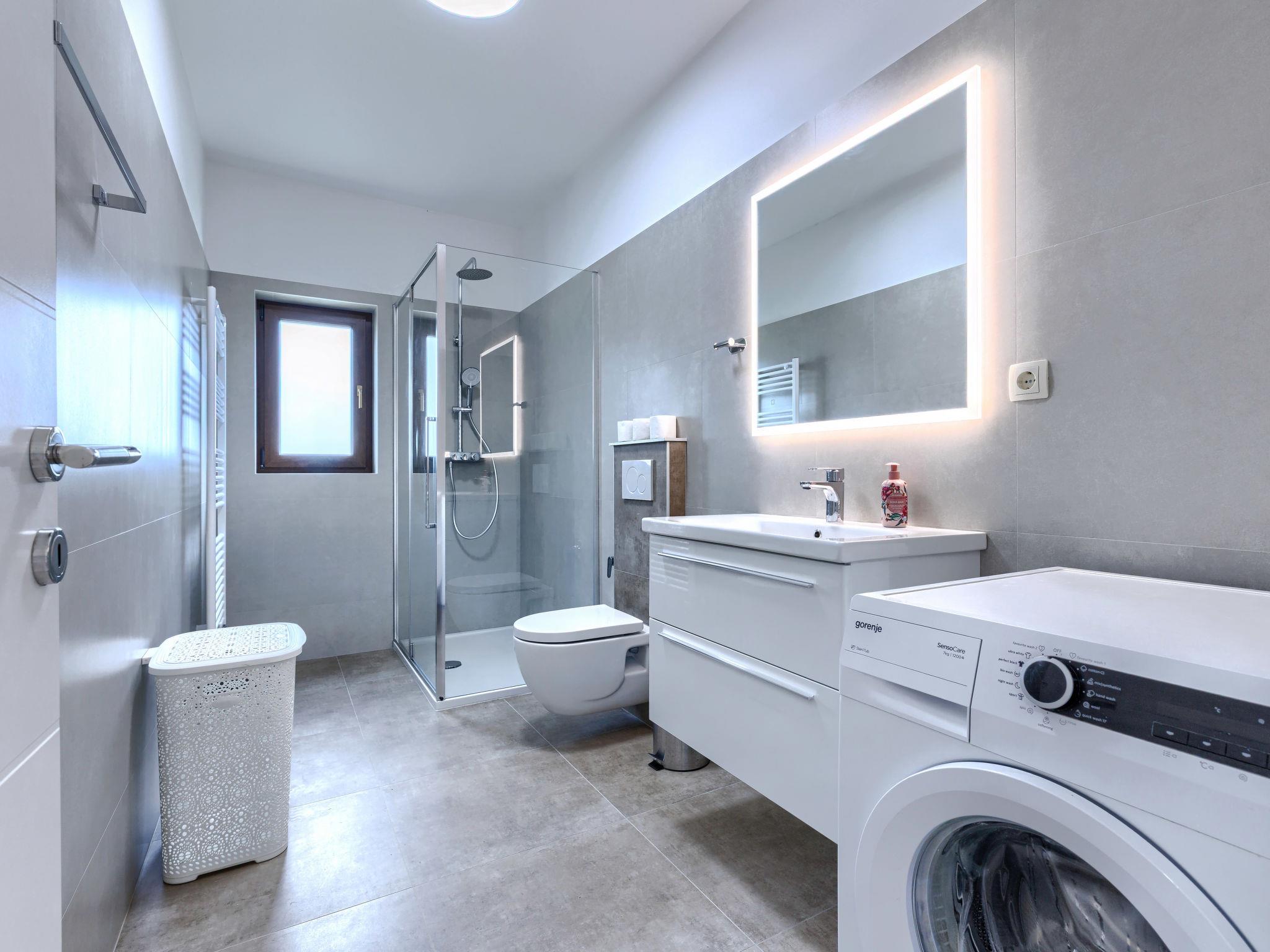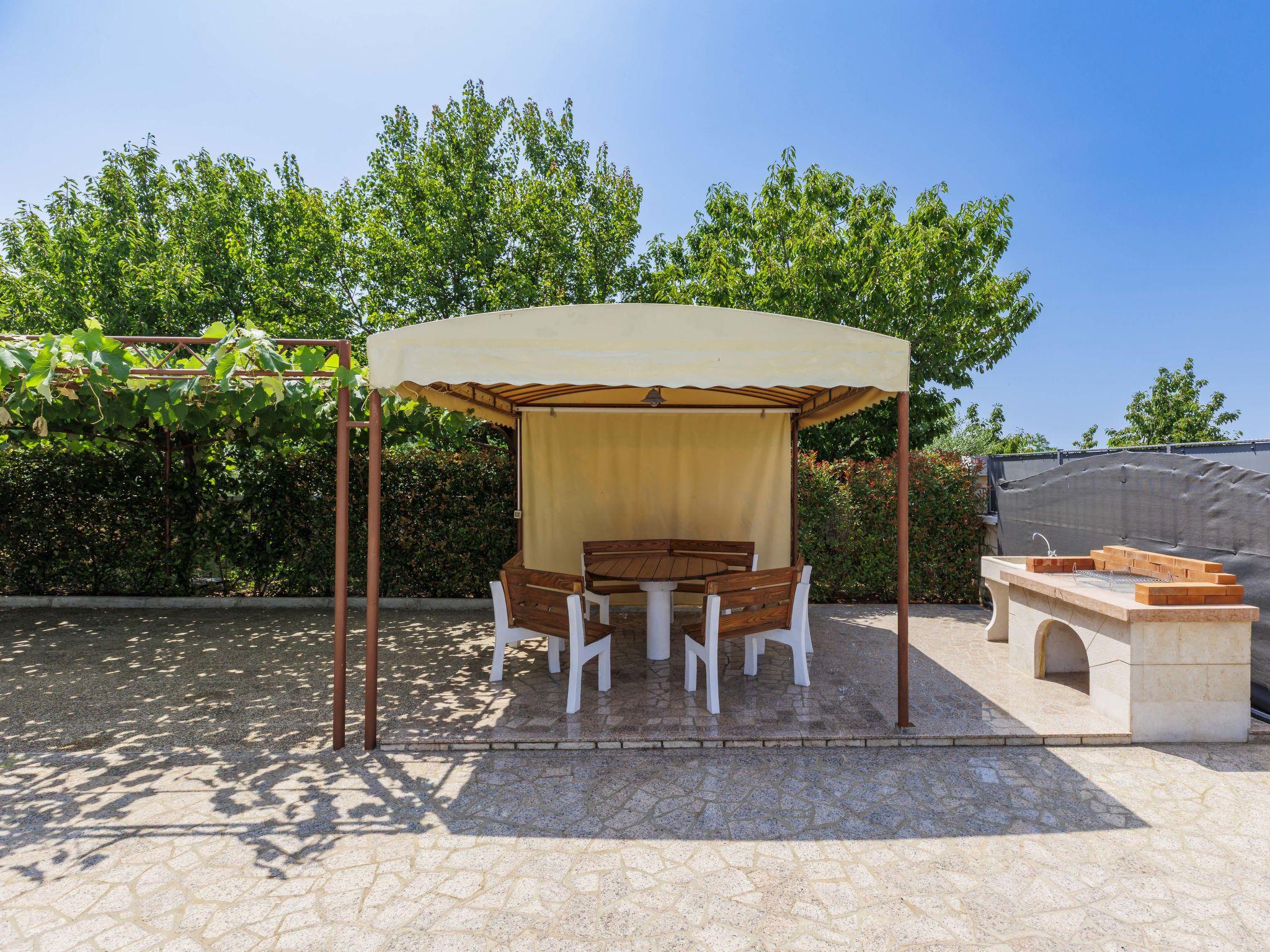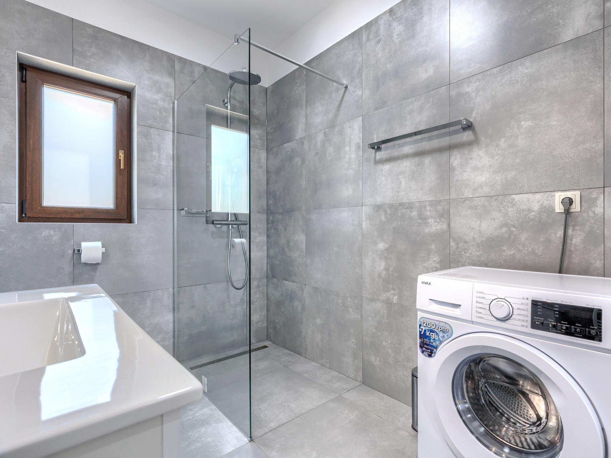 Single-family house "Kristina", 2 storeys. In the hamlet Radovani 11 km from the centre of Kaštelir, 5 km from the centre of Višnjan, 13 km from the centre of Porec, 13 km from the sea. Private: property 800 m2 (fenced) with lawn and trees, swimming pool angular (8 x 4 m, depth 150 cm, seasonal availability: 01.May. - 30.Sep.) with internal staircase. Outdoor shower, terrace (16 m2), garden furniture, barbecue (swing), pool maintenance by the owner/gardener. In the house: internet access, washing machine. Parking (for 2 cars) at the house on the premises. Shop 5 km, bus stop 5.3 km, pebble beach 13 km. Please note: suitable for families. The owner does not accept any youth groups. The house consists of 2 apartments rented as one unit. Each apartment with external and separate entrance.