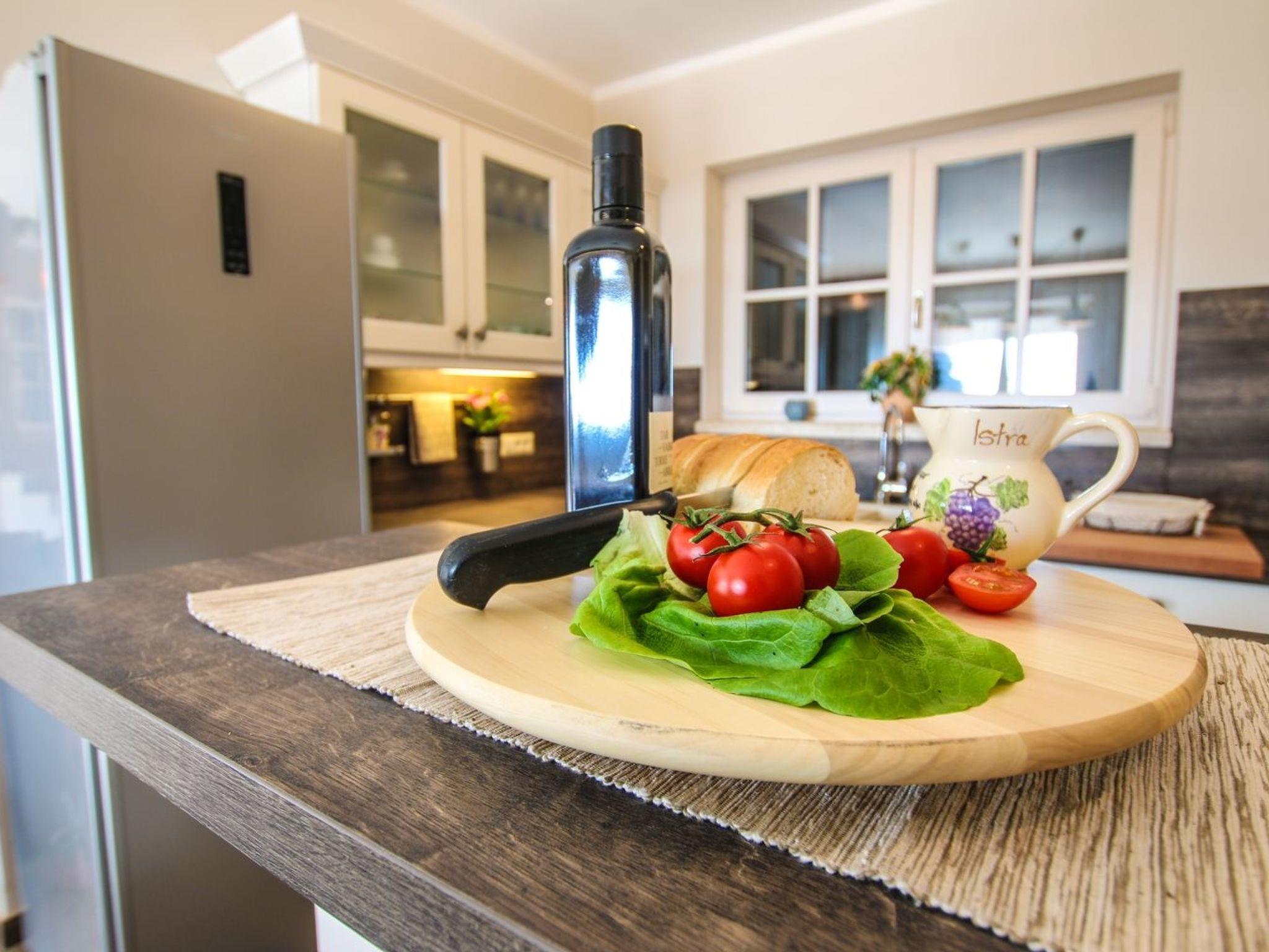 Inside Villa Elizabet, guests are greeted by a thoughtful arrangement that caters to leisure and comfort. The house is equipped with air conditioning throughout, ensuring a cool respite from the warm Istrian sun. Daily conveniences are taken care of, with a fully equipped kitchen that includes a dishwasher, electric kettle, and coffee machine for those morning brews. Entertainment is readily available with a games console for engaging evenings, and a washing machine on-site for hassle-free long stays. Each of the three bedrooms is matched with its own bathroom, making it a comfortable setting for up to 6 persons.