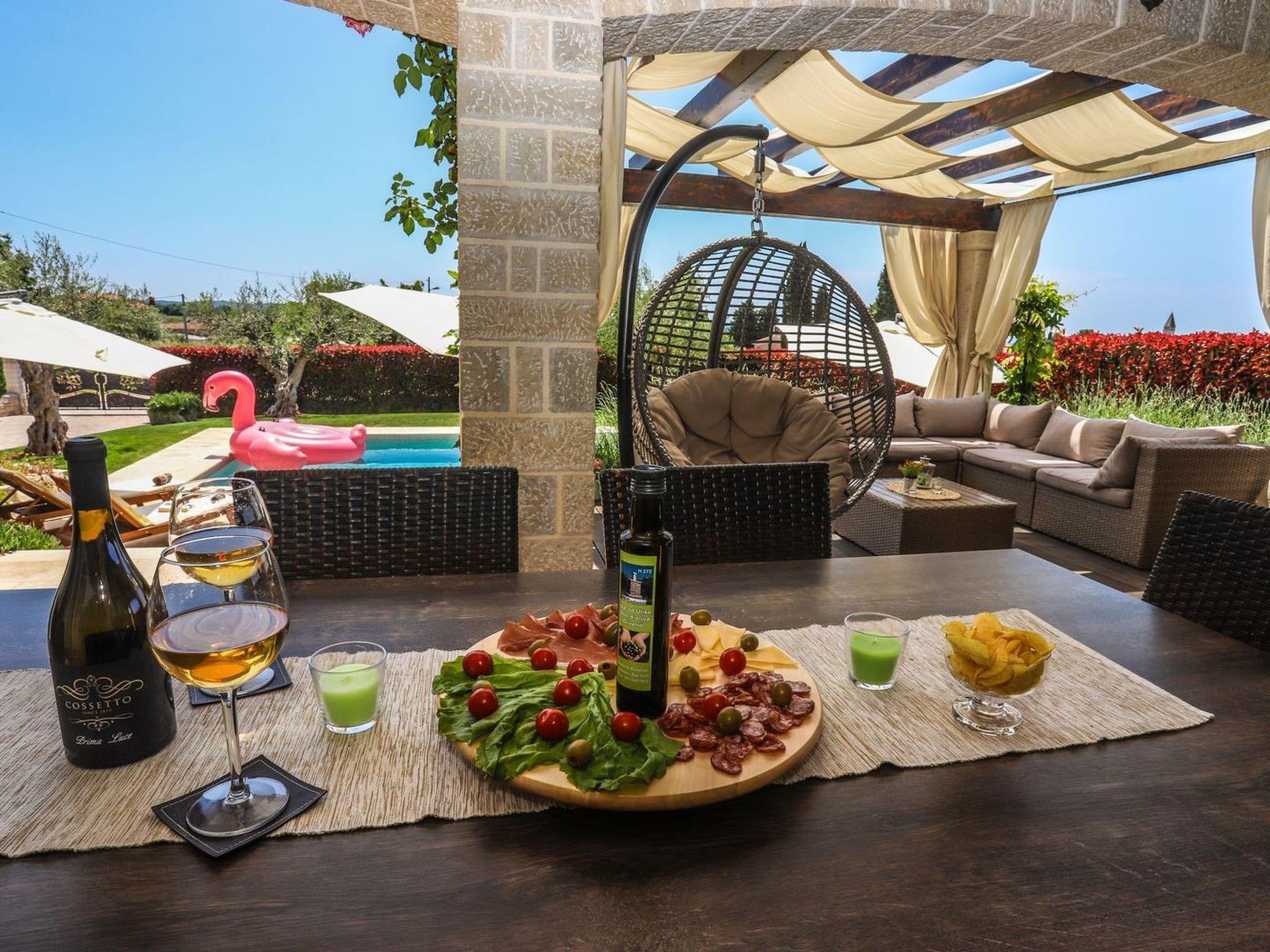 Villa Elizabet's location in Babici, Istrien, is an ideal starting point for exploring Istria. Positioned conveniently near Porec, the villa is just a short drive from other picturesque towns like Novigrad, Motovun, and Višnjan. The beach and the sea are a mere 5km away, making it easy to indulge in coastal pleasures. For daily necessities, a grocery store is conveniently located within 500m of the villa. Whether you're keen on historical expeditions in Pula, Umag, and Rovinj or simply wish to soak in the local Mediterranean atmosphere, Villa Elizabet places you in the heart of it all.
