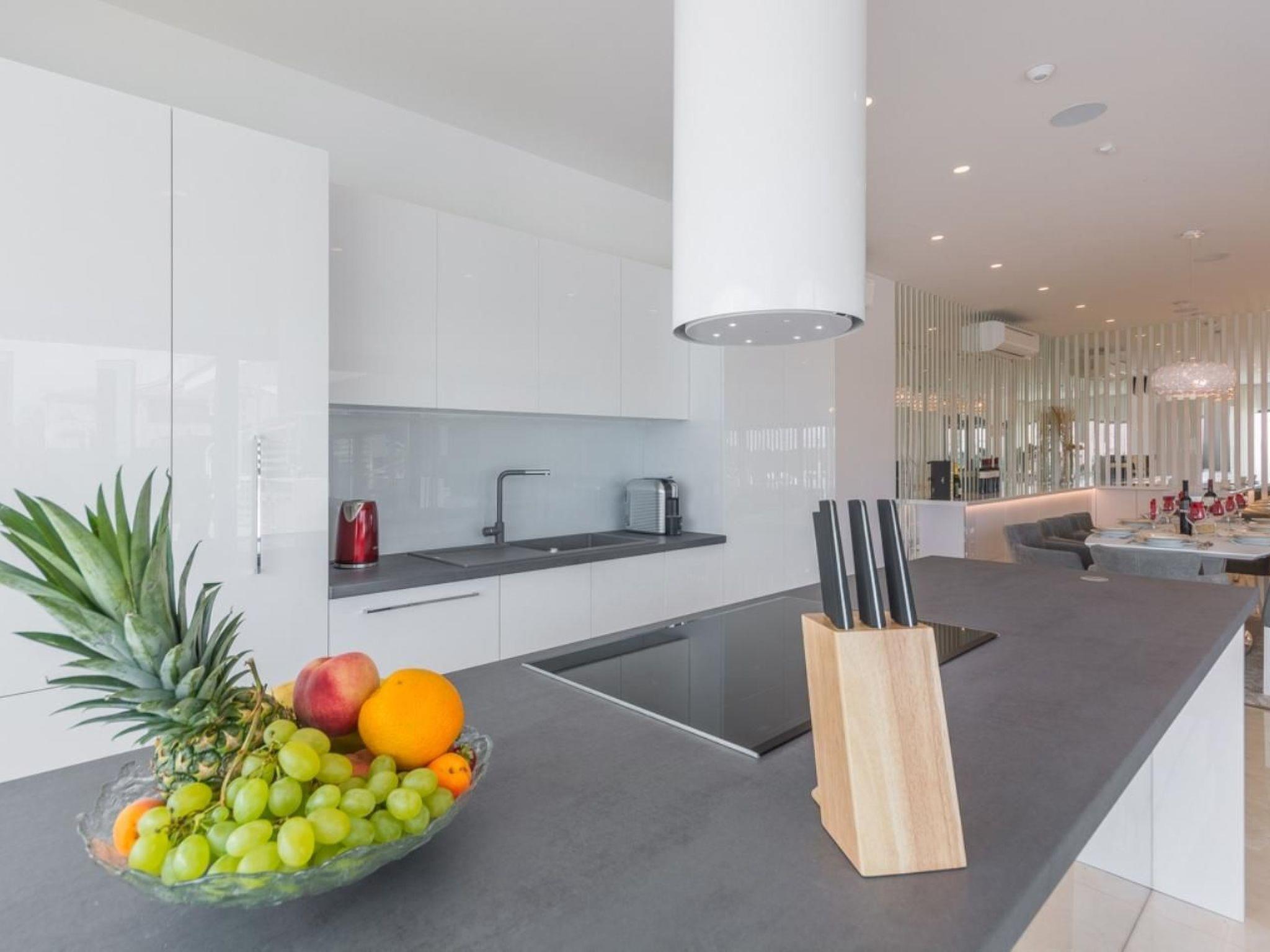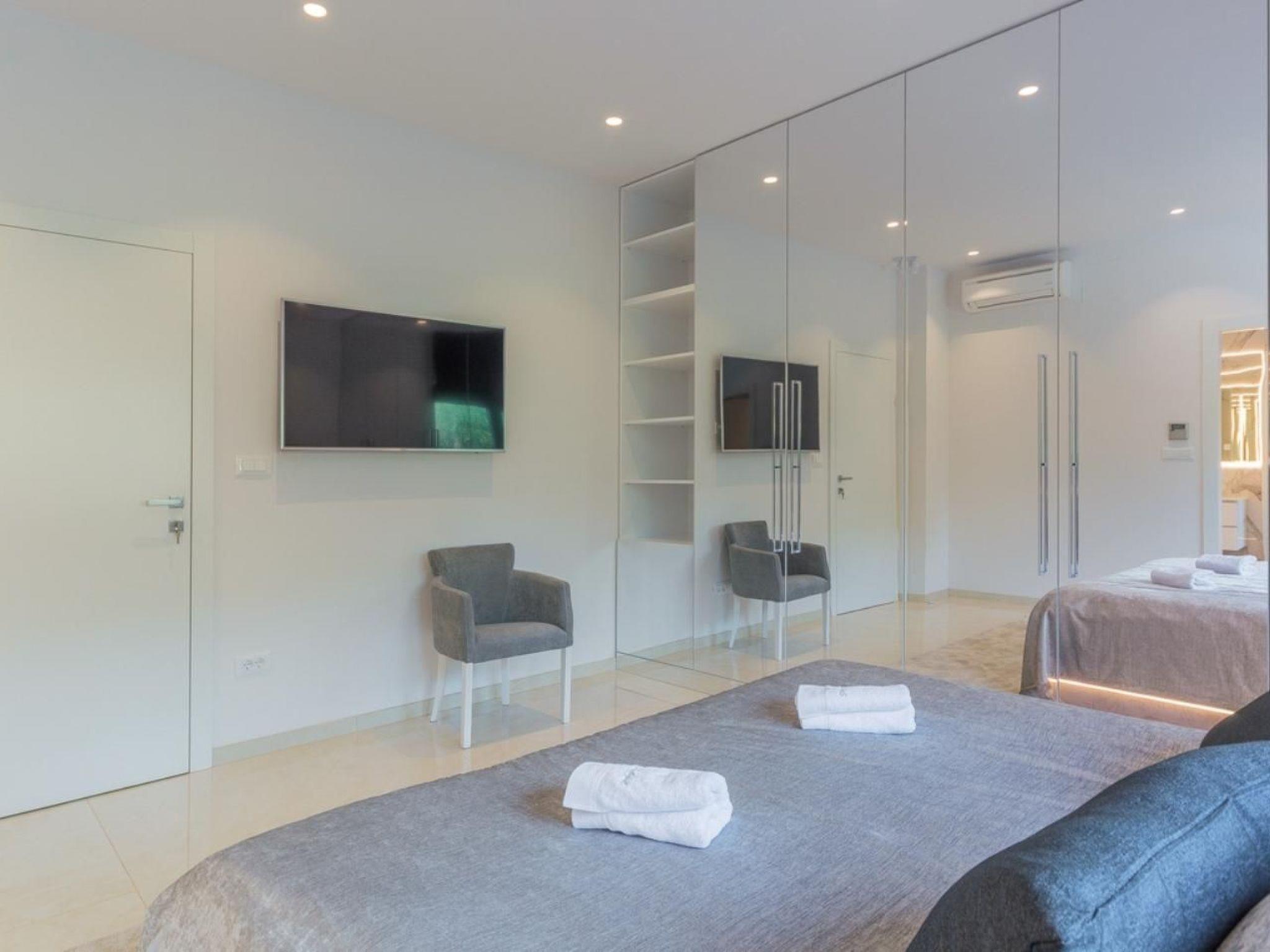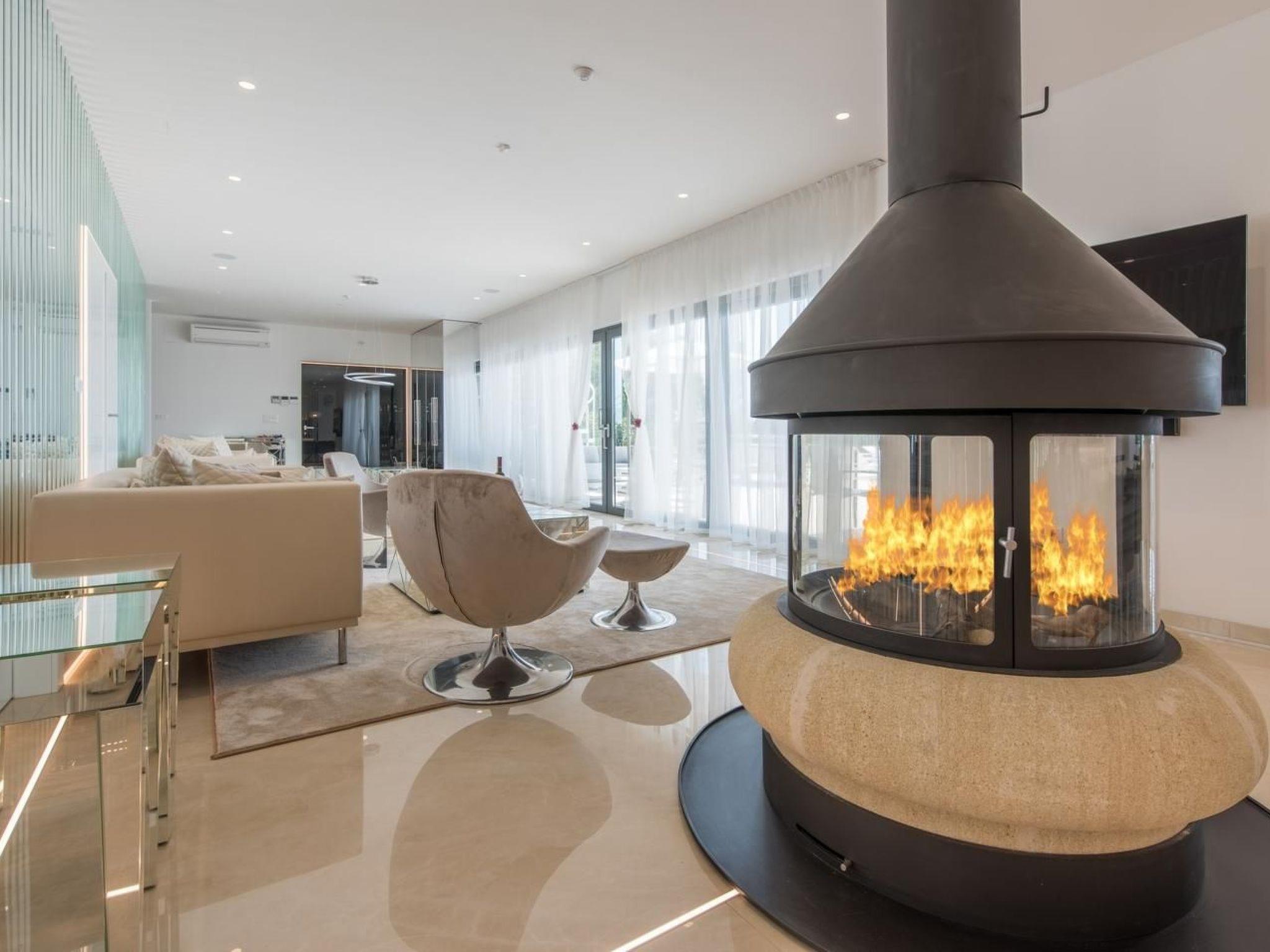 This villa is luxuriously decorated and spreads over 400 m2 of indoor space for a maximum of 10 people, and the 1200 m2 space with a fully fenced yard provides complete privacy.The villa has five luxuriously equipped double rooms, each with air conditioning and TV. There are three en-suite bathrooms, and the other two are outside the room. At your disposal is a fully equipped kitchen, as well as modernly designed outdoor and indoor dining rooms. You can relax in the spacious living room with a modern indoor fireplace. You can have fun with table tennis, and if you travel with your baby, we will prepare a cot for you.
