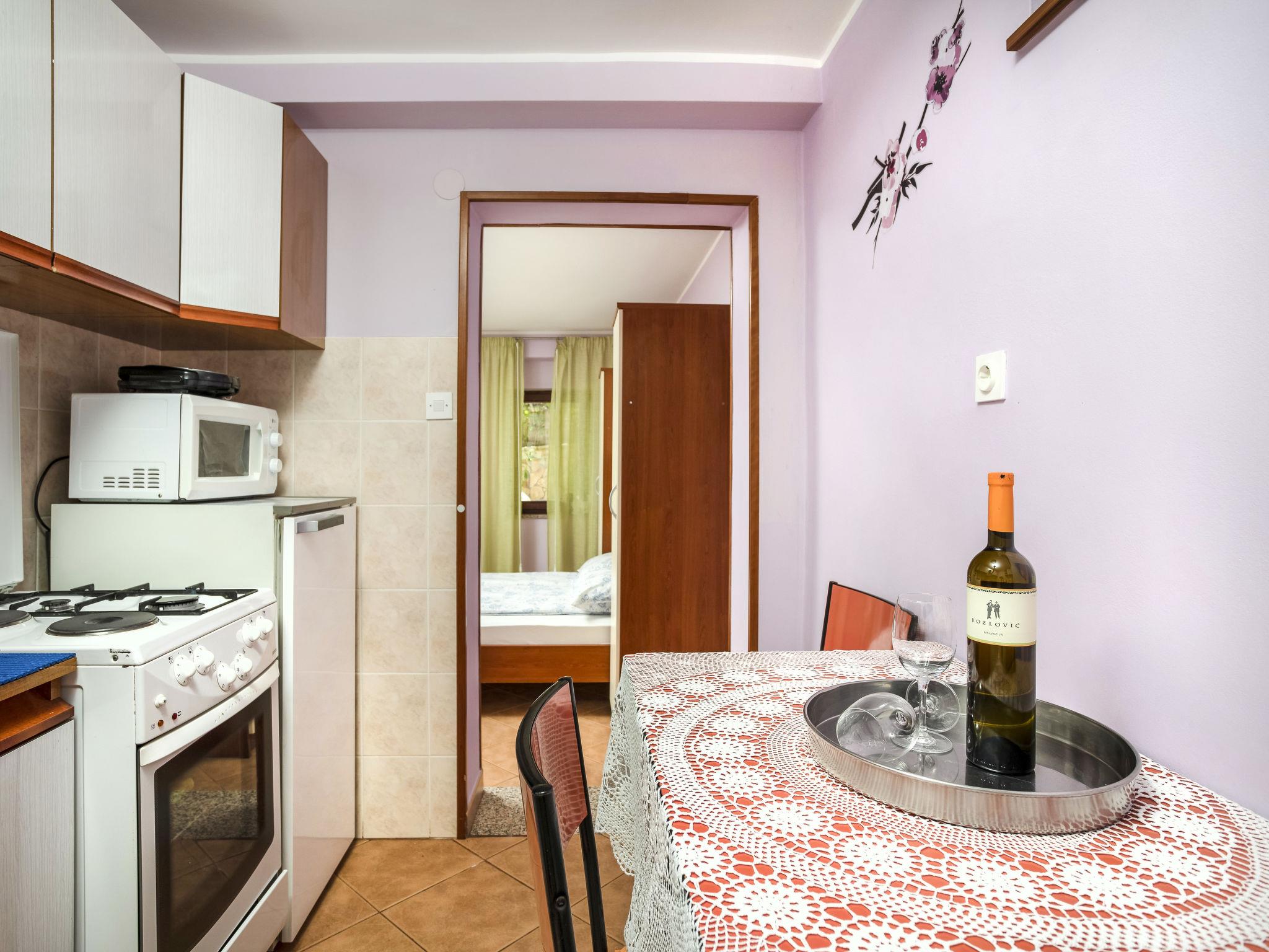 "Jukic", 1-room apartment 23 m2, on the ground floor. 1 room with 1 double bed and satellite TV. Exit to the terrace. Open kitchen (2 hot plates, oven, dishwasher, 2 gas rings, toaster, kettle, microwave, electric coffee machine) with dining table. Shower/WC. Oil heating. Facilities: Internet (WiFi, free).