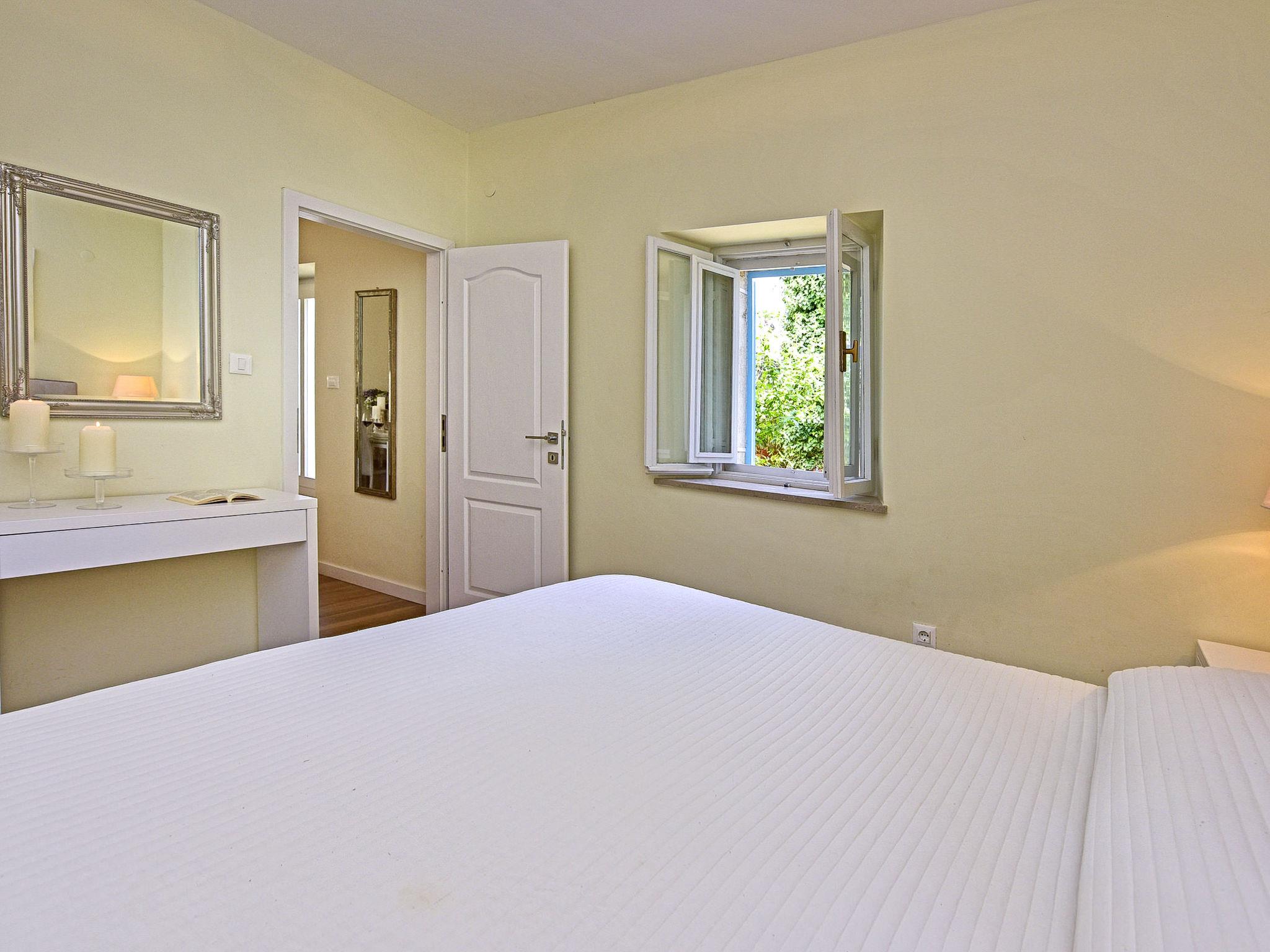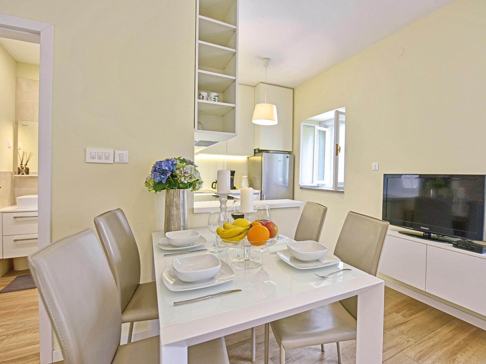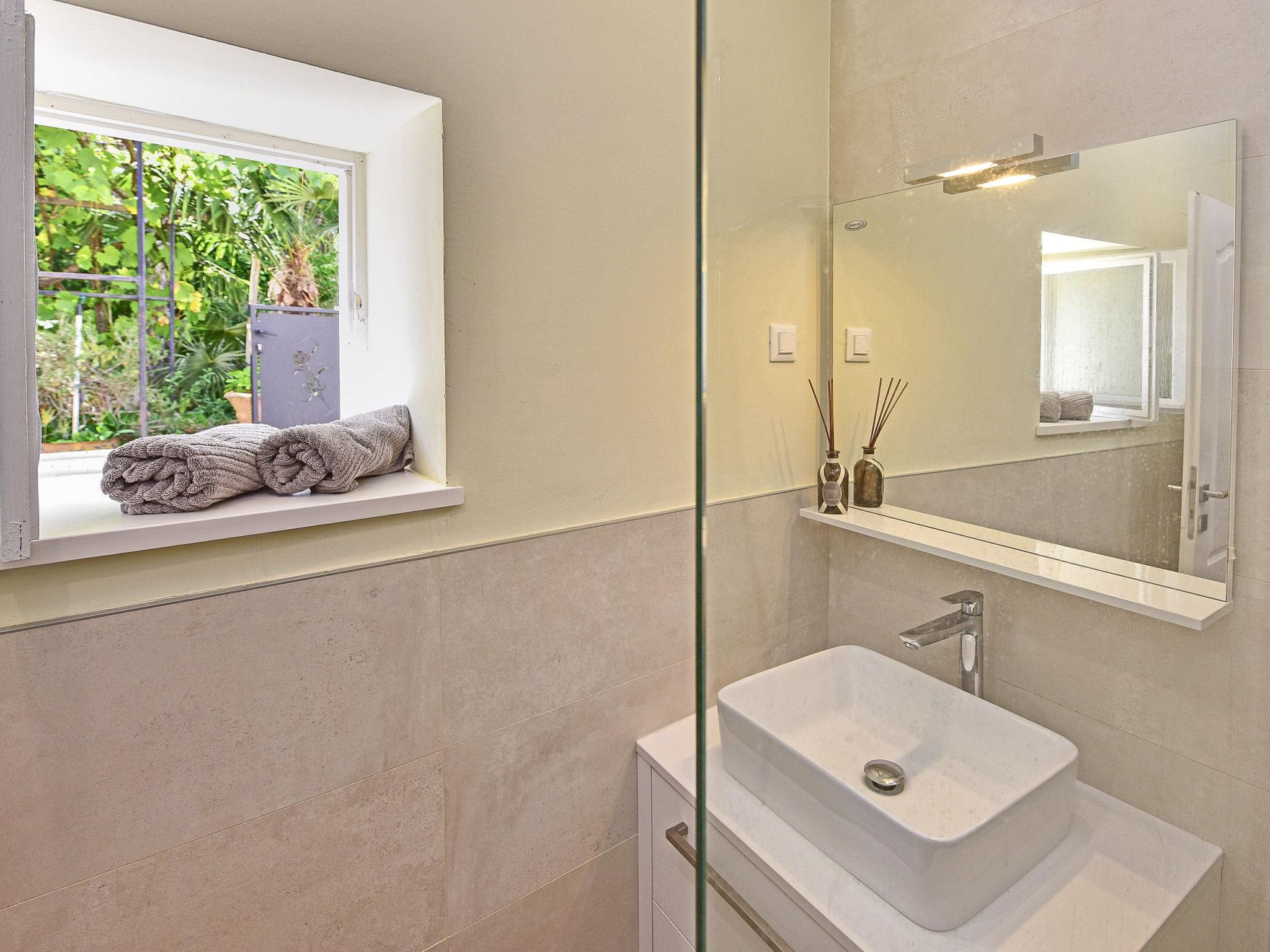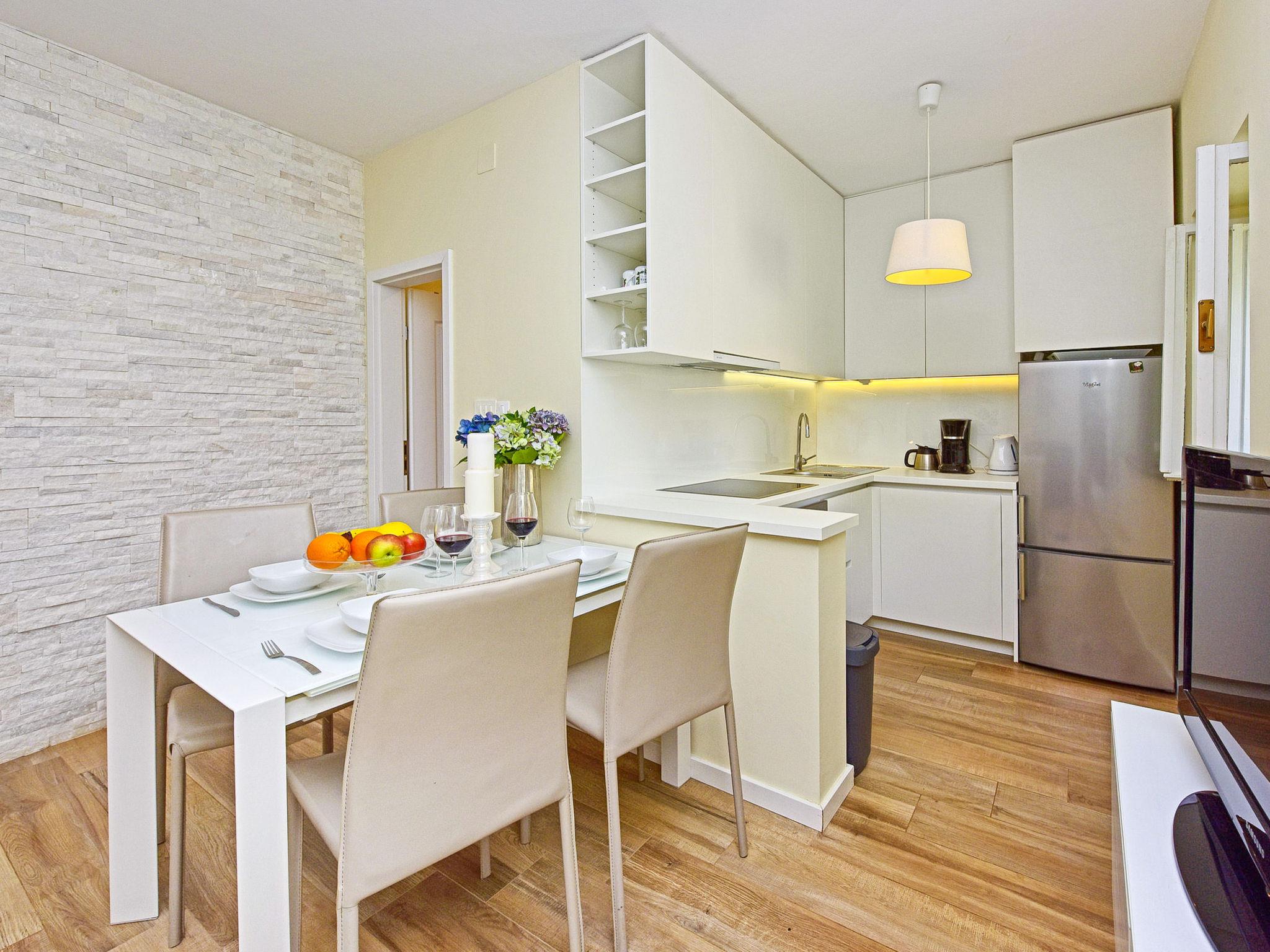 "Glicinia", 2-room semi-detached house 35 m2, on the ground floor. Living/dining room with 1 double sofabed and satellite TV (flat screen), air conditioning. 1 room with 1 double bed. Open kitchen (oven, dishwasher, 4 ceramic glass hob hotplates, kettle, microwave, freezer, electric coffee machine). Shower/WC. Heating (extra), air-conditioning (extra). Facilities: washing machine. Internet (WiFi, free). Please note: non-smoking house.