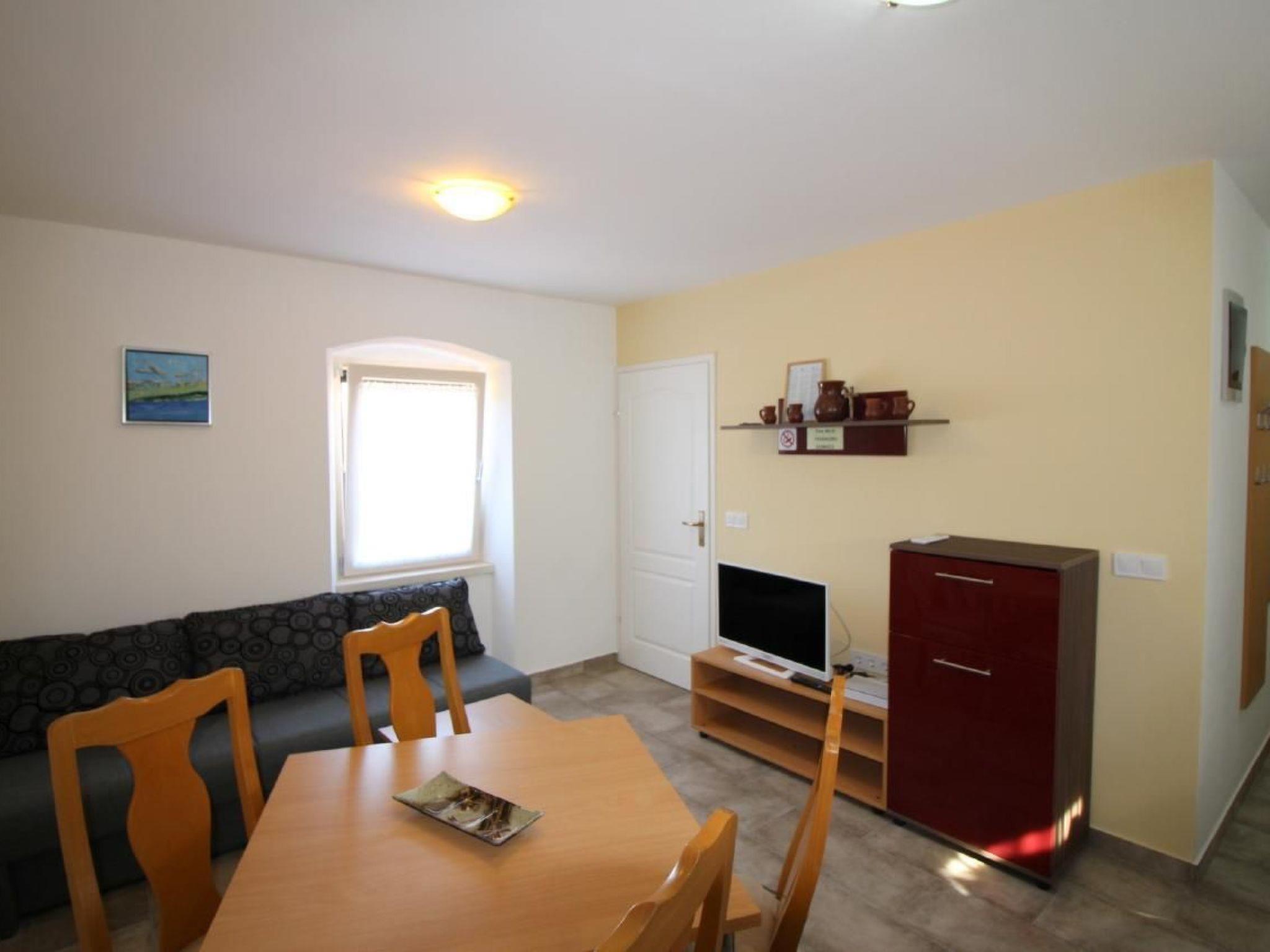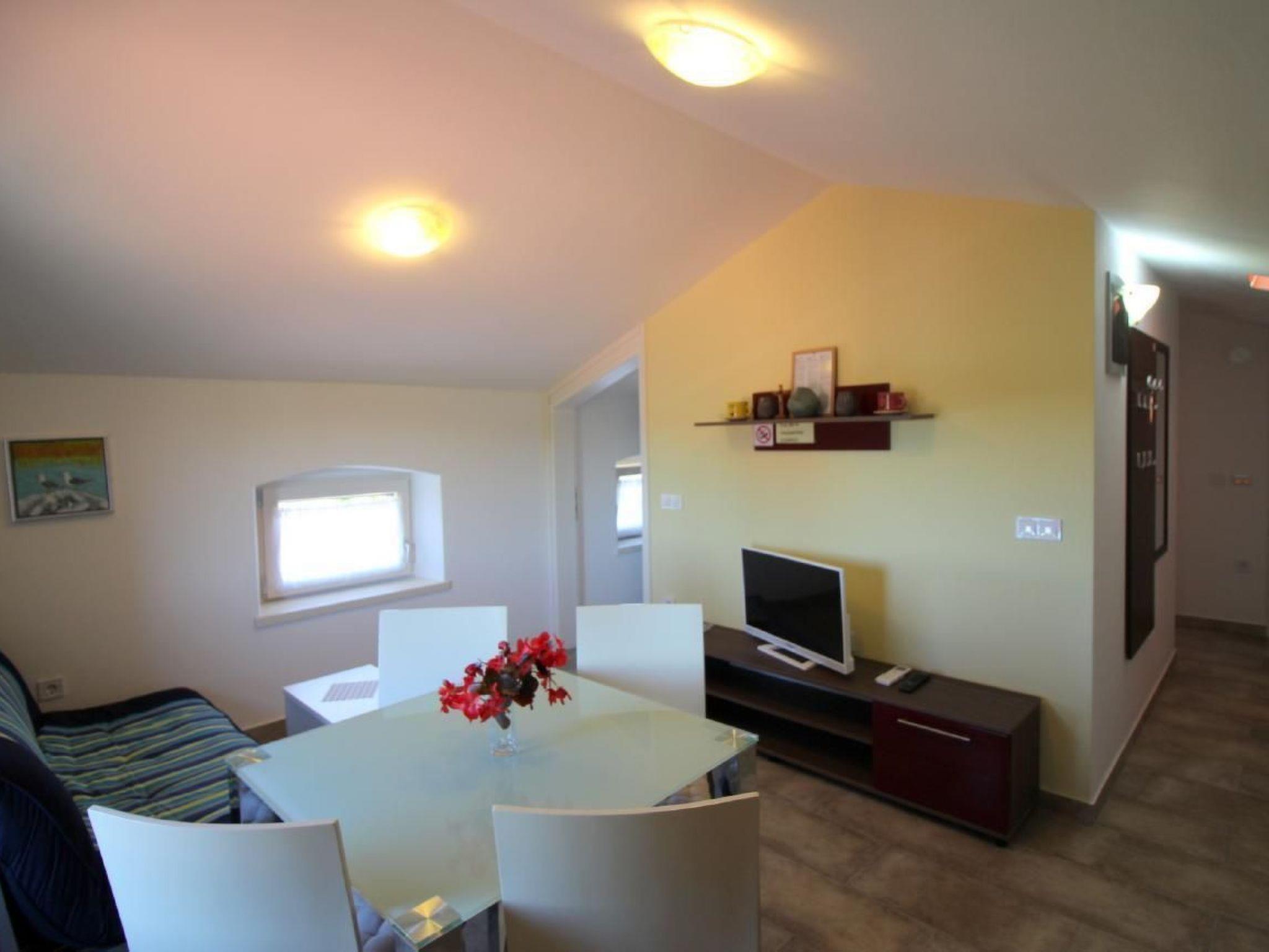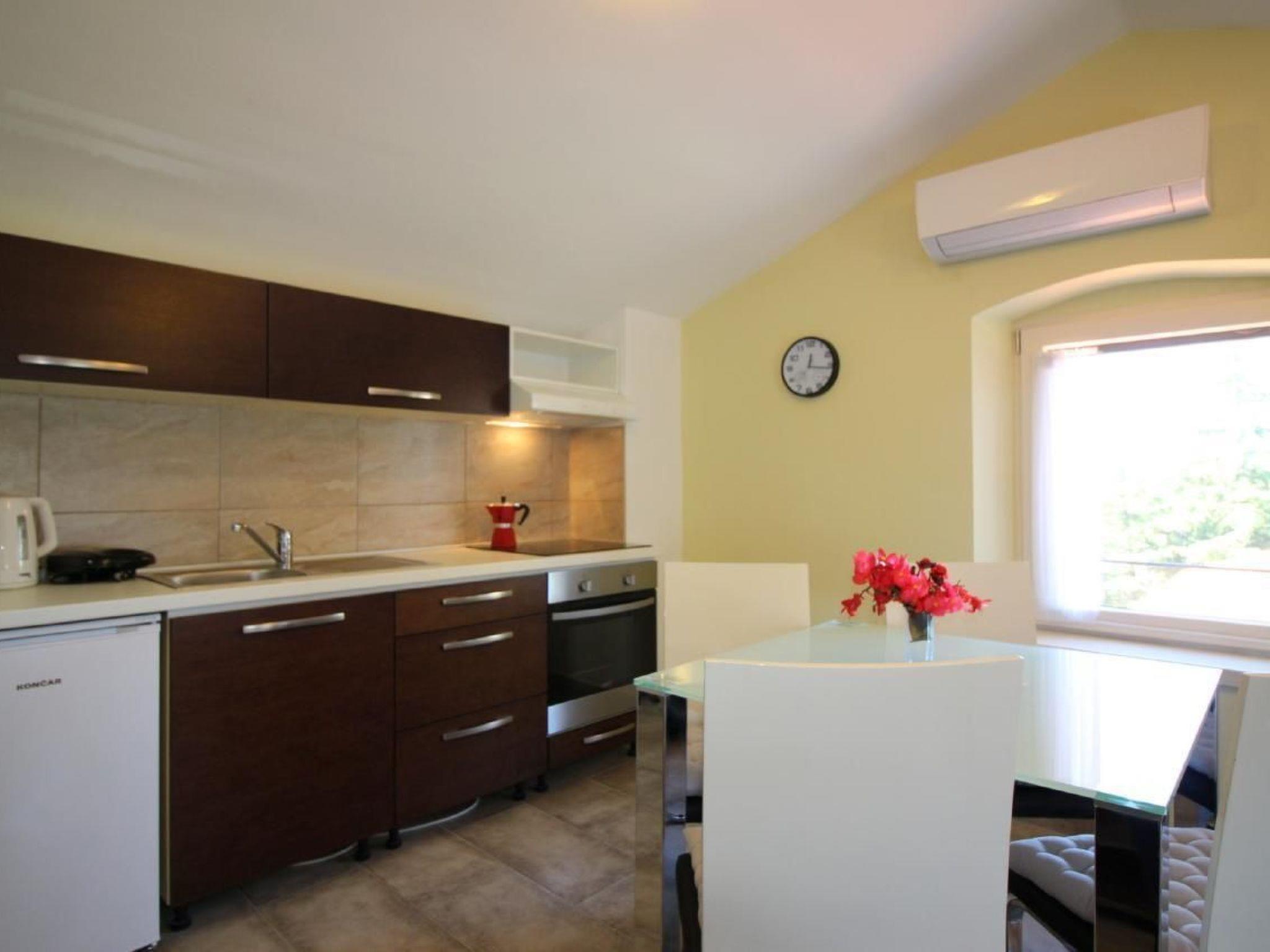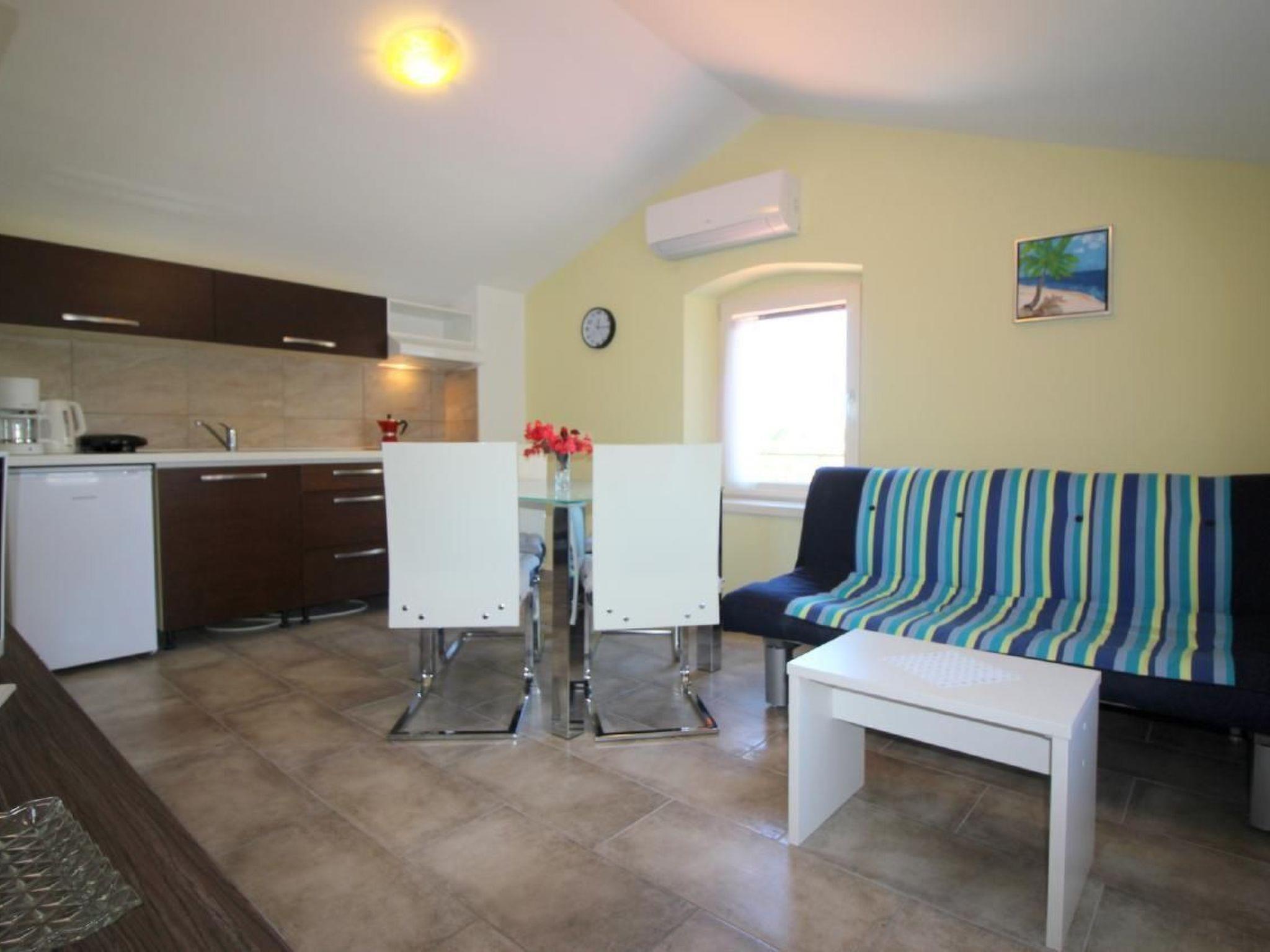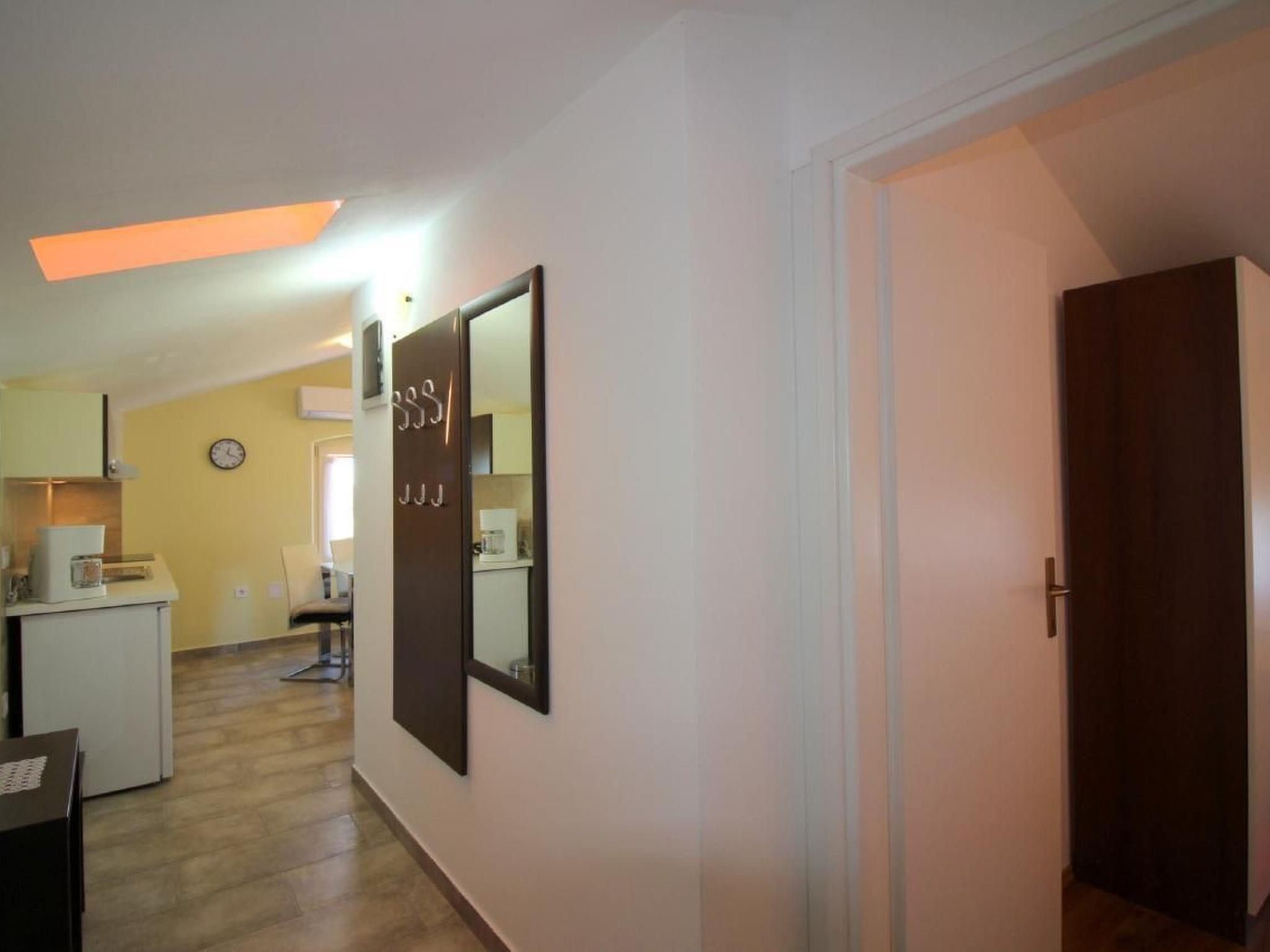 The semi-detached house has a total of 140m2 of living space spread over three floors and offers space for up to 12 people in three holiday flats, all accessible from the hallway with internal stairs. Each holiday flat is furnished for 2-4 people and has a 40m2 living area with kitchen, dining table and pull-out couch, double bedroom and bathroom with shower/WC. All flats are air-conditioned and Wi-Fi is available.