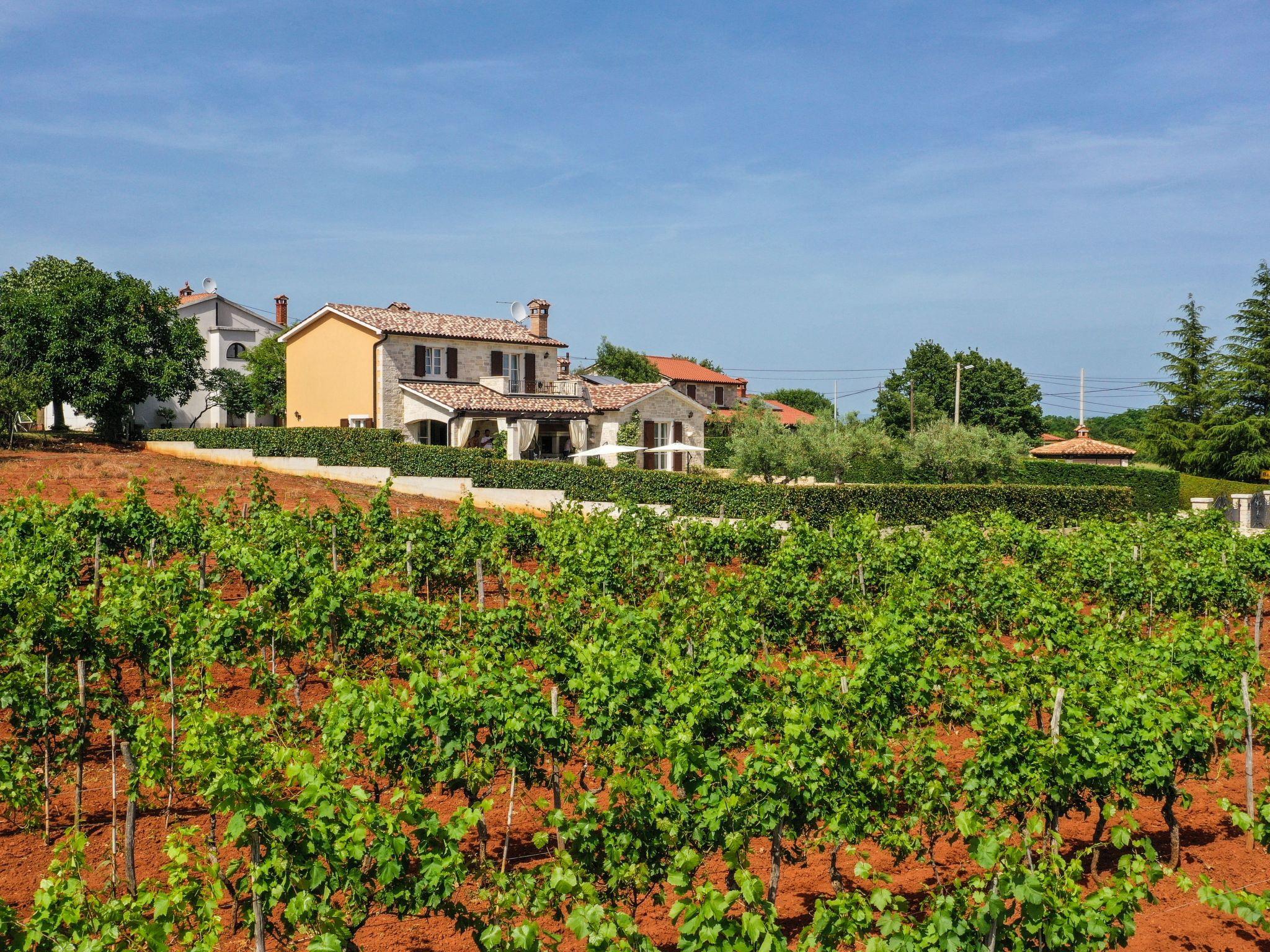 Villa Elizabet is located in the village of Babici, not far from the center of Kastelir in the interior of Istria, on a small hill, from where there is a beautiful panoramic view of Kastelir, overgrown hills and the sea. The house is only a 10 minute drive to the resort of Lanterna and the beach, sports and entertainment venues. Guests are offered a variety of gastronomic experiences in the several taverns in the area, as well as various wine cellars, shops, cafes and many cycling and walking routes.