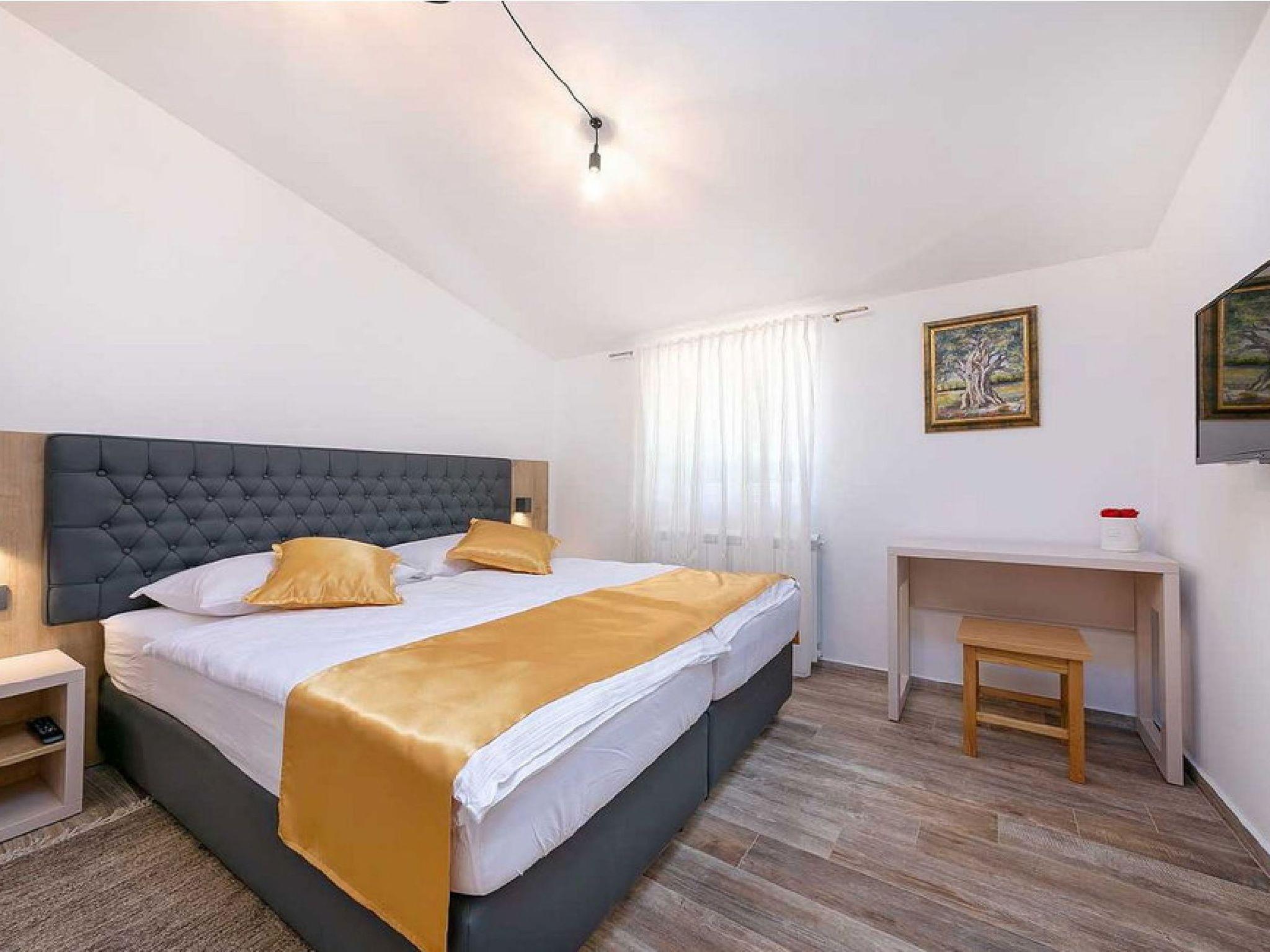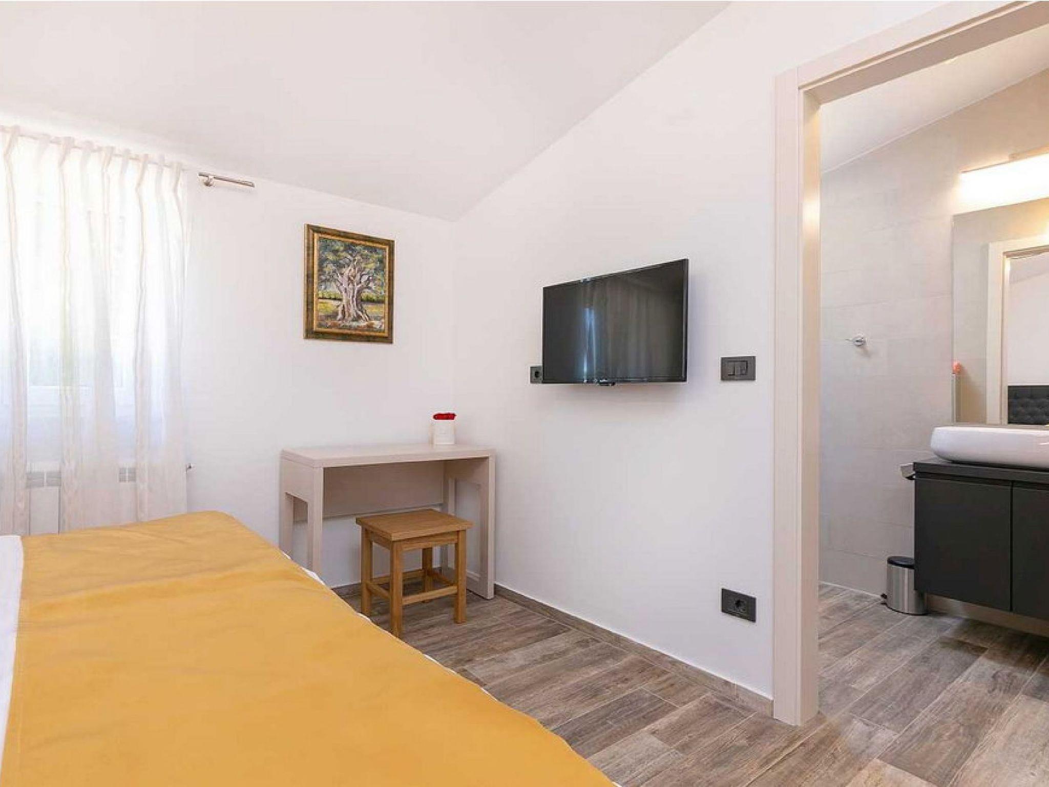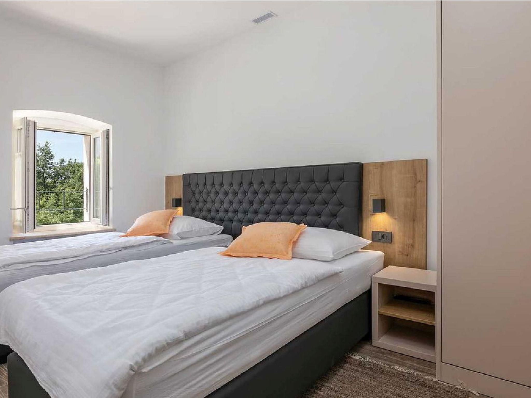Villa Casa Denis offers space for up to 14 people on a total of 400m2 of living space, it consists of two separate accommodation units and is ideal for larger groups or several families. On the ground floor of the larger accommodation unit there is a spacious living room with a fully equipped kitchen, dining table and access to a covered terrace overlooking the pool and garden, a separate toilet and a spacious bedroom with its own bathroom which is adapted for the disabled. In the upper part of the house there are three bedrooms, each with its own bathroom and double bed, one of which has a covered balcony. All rooms offer a beautiful view of the olive grove and the garden.
