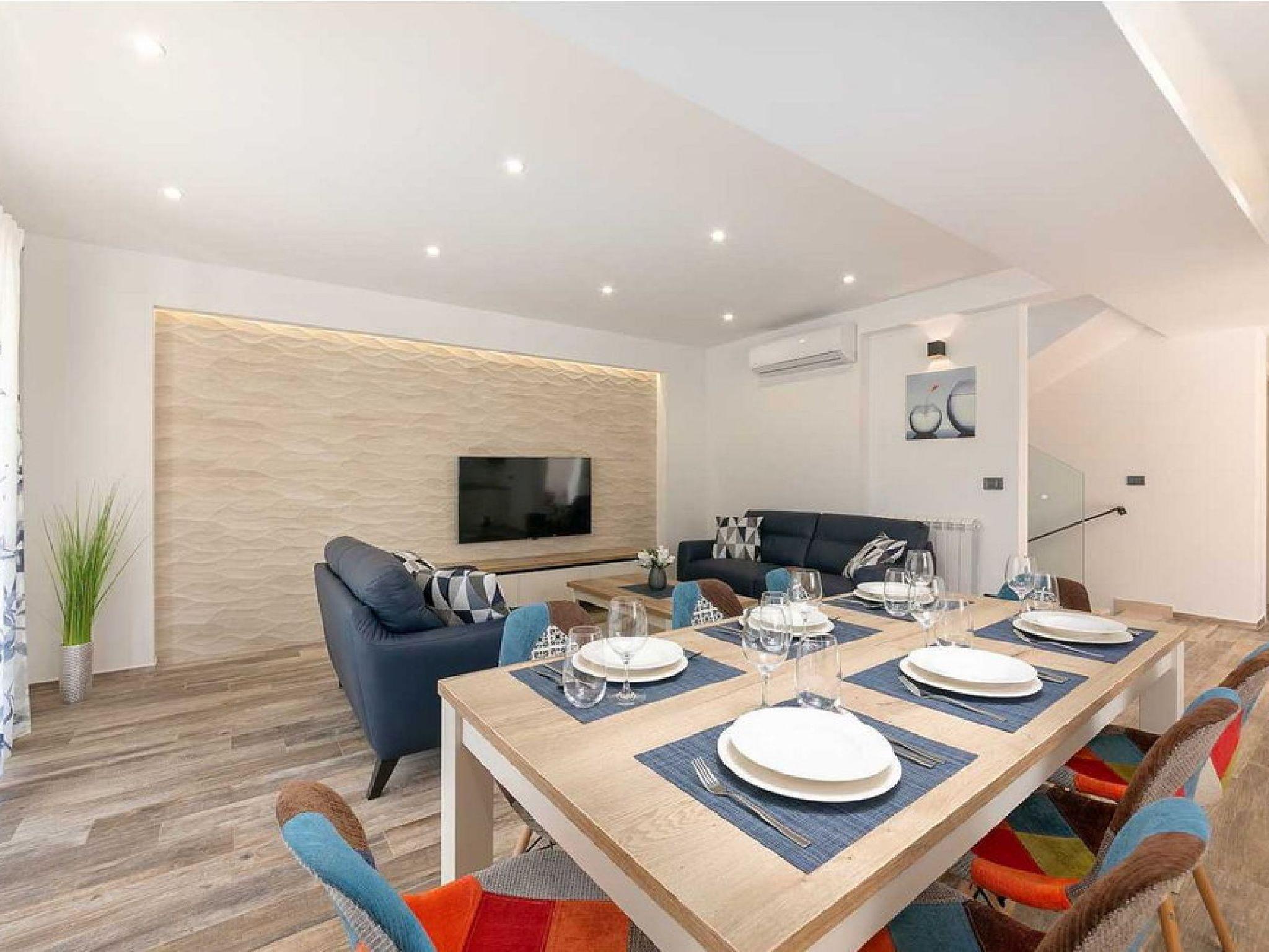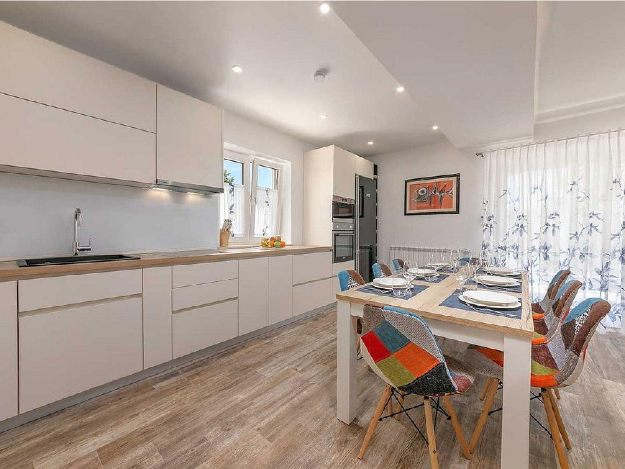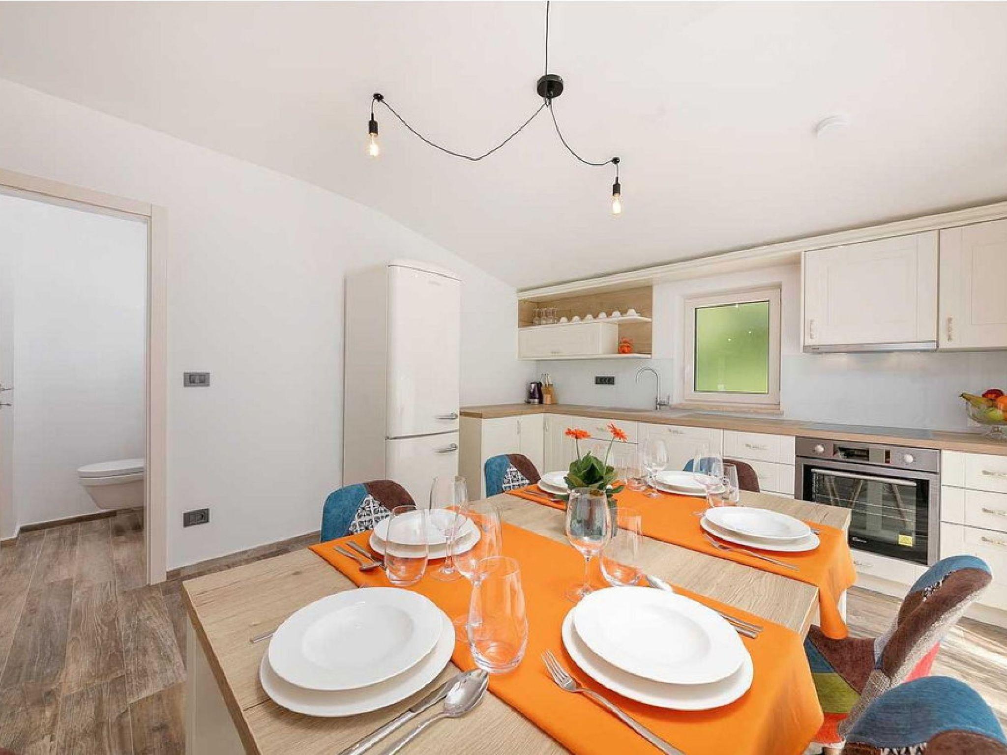 Villa Casa Denis offers space for up to 14 people on a total of 400m2 of living space, it consists of two separate accommodation units and is ideal for larger groups or several families. On the ground floor of the larger accommodation unit there is a spacious living room with a fully equipped kitchen, dining table and access to a covered terrace overlooking the pool and garden, a separate toilet and a spacious bedroom with its own bathroom which is adapted for the disabled. In the upper part of the house there are three bedrooms, each with its own bathroom and double bed, one of which has a covered balcony. All rooms offer a beautiful view of the olive grove and the garden.