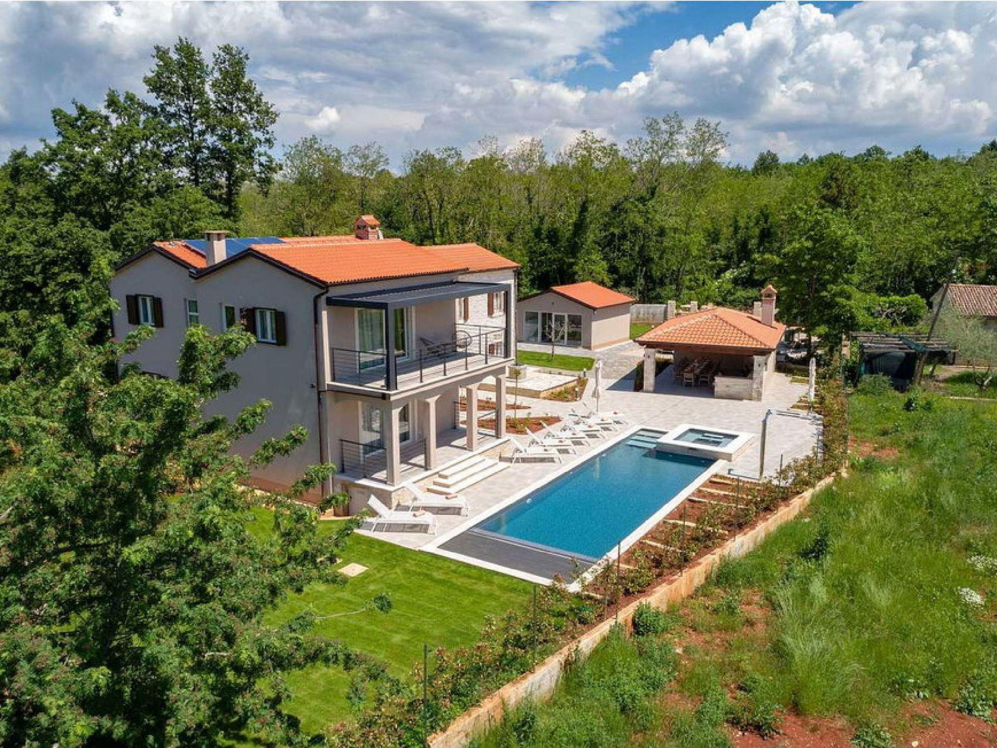 The house is located on the edge of a small village, surrounded by greenery, on a fully fenced 1200sqm manicured garden with a 48sqm saltwater pool, jacuzzi and sun loungers. Next to the pool there is a covered summer kitchen with a large table for 12 people and a charcoal barbecue, a separate house with a pool table and a separate toilet. There are several car parking spaces in the courtyard.