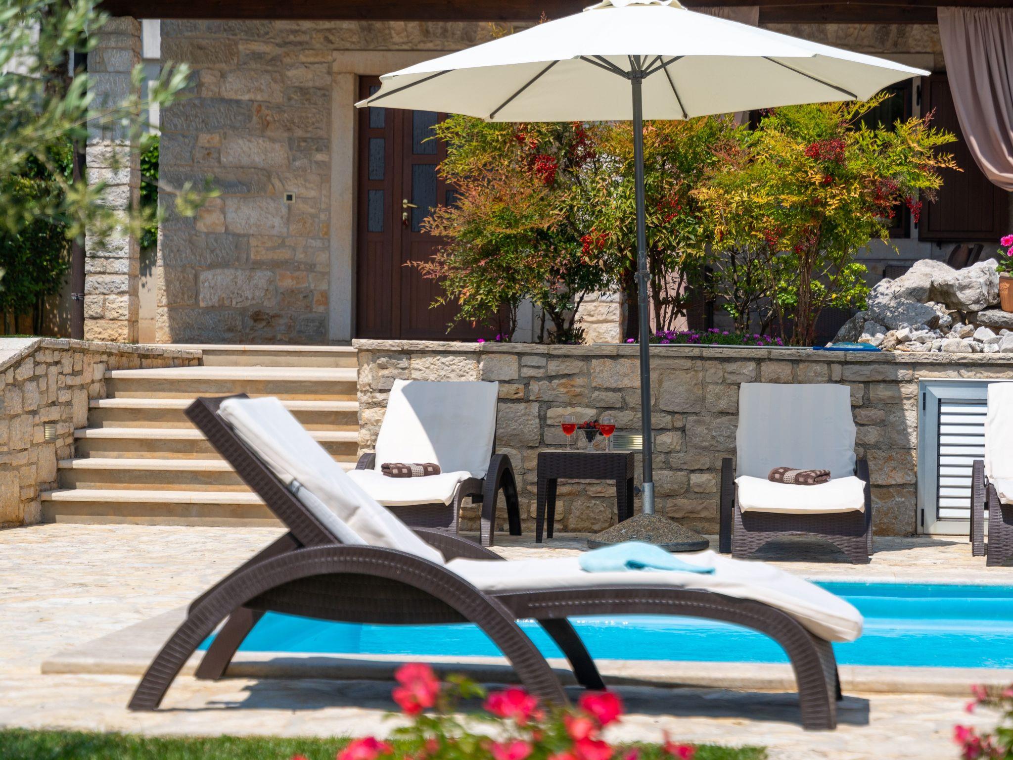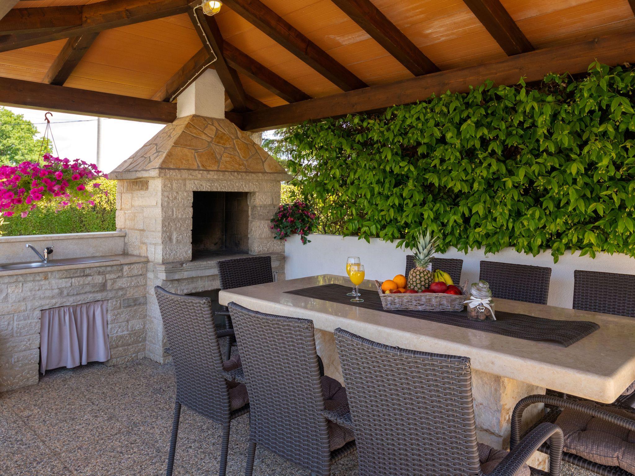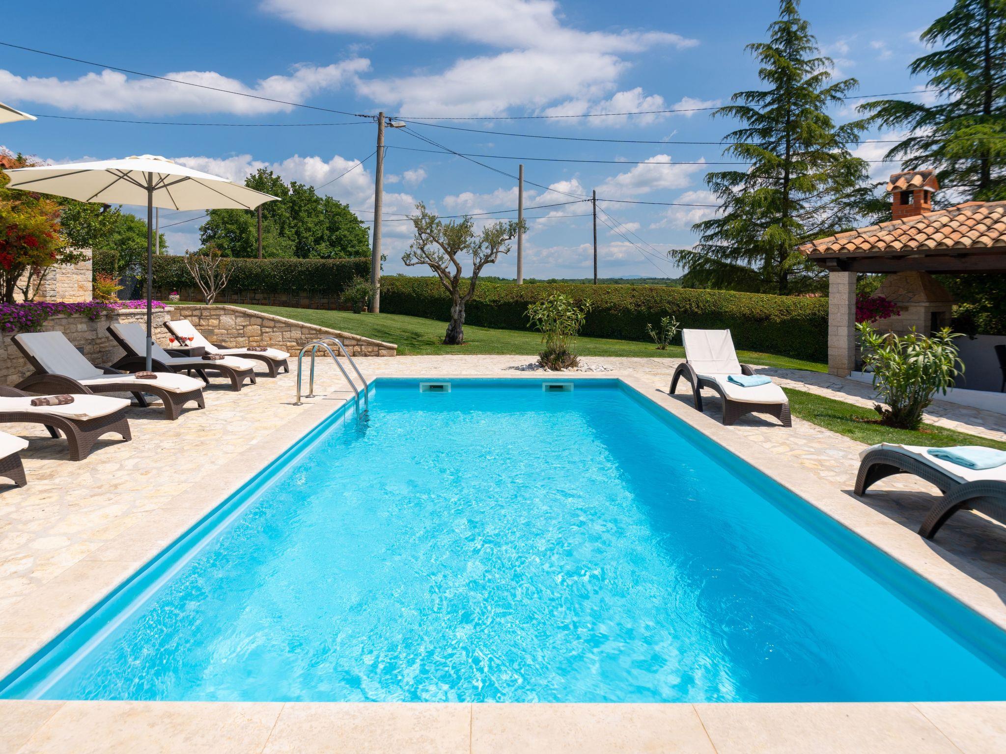 Villa Casa Danijel is located on the edge of the village of Babici, with a panoramic view of Kastelir, greenery and the sea. The house is only a 10-minute drive from the tourist resort Lanterna and the beach, as well sports and entertainment facilities. In the vicinity there are several taverns and restaurants, various wine cellars, shop, a cafe and numerous cycling and hiking trails. In the outdoor area there are: a 24m2 swimming pool with sunbeds, a summer kitchen with a barbecue, covered terrace with a dining table,perfect place for your meals and relaxing outdoors. Thanks to the completely fenced yard of 1000 m2, with a landscaped garden, guests' privacy is guaranteed. Several parking spaces in the yard and four bicycles are available.