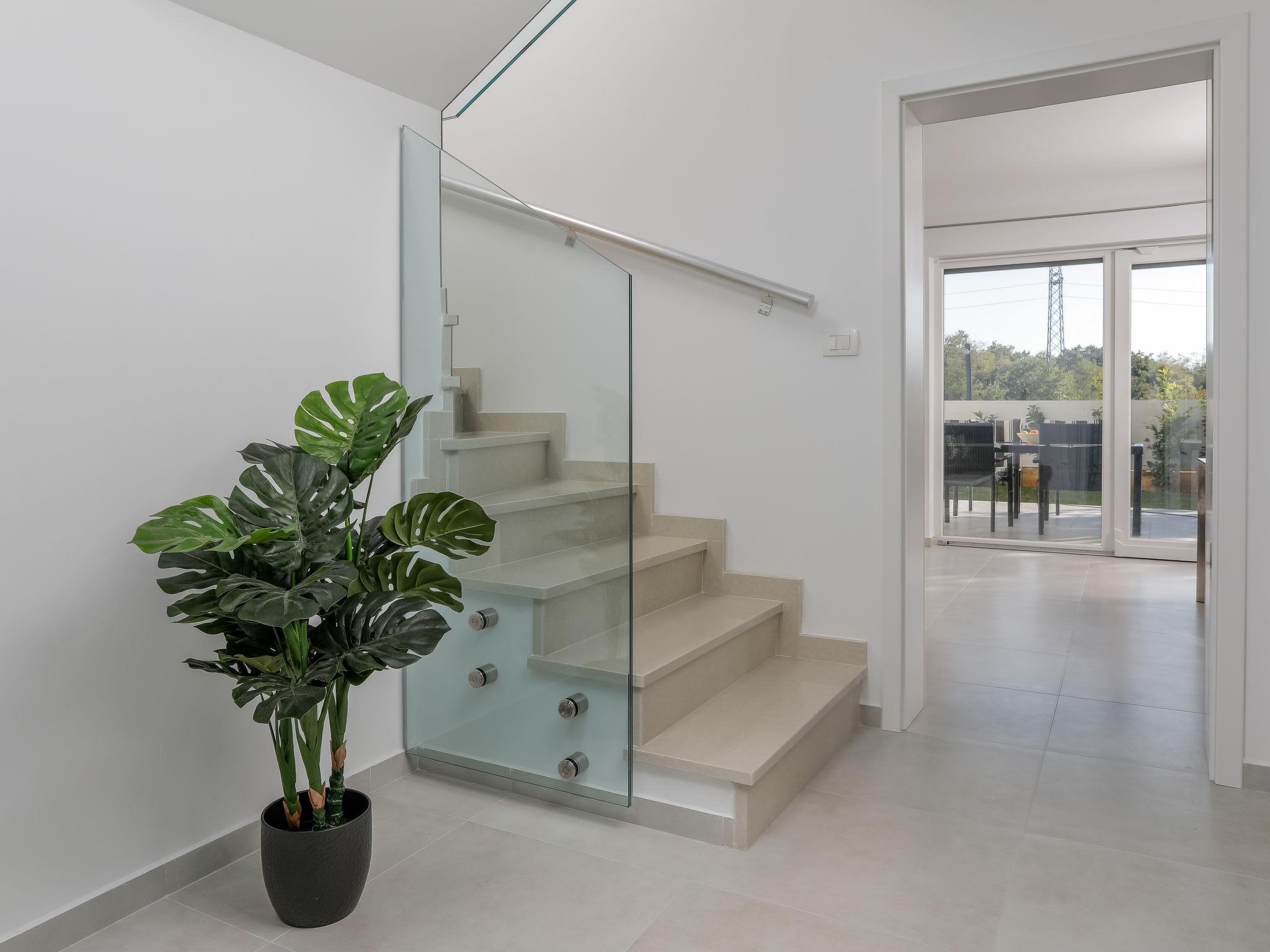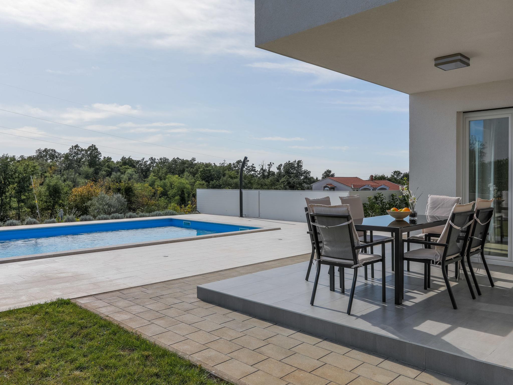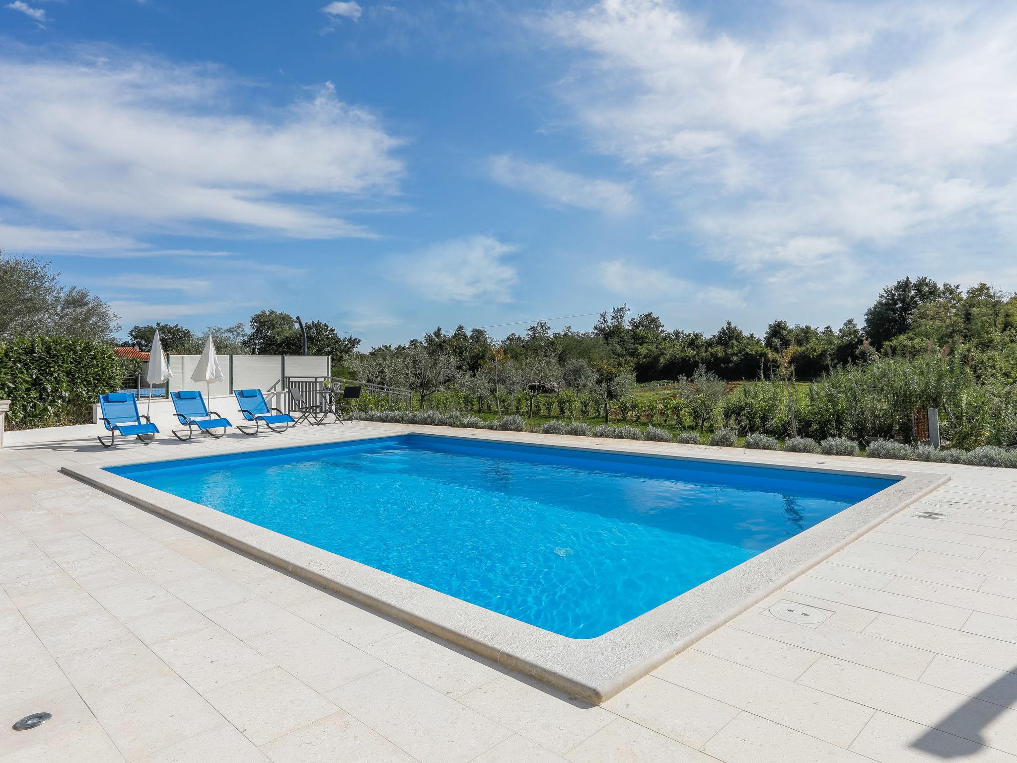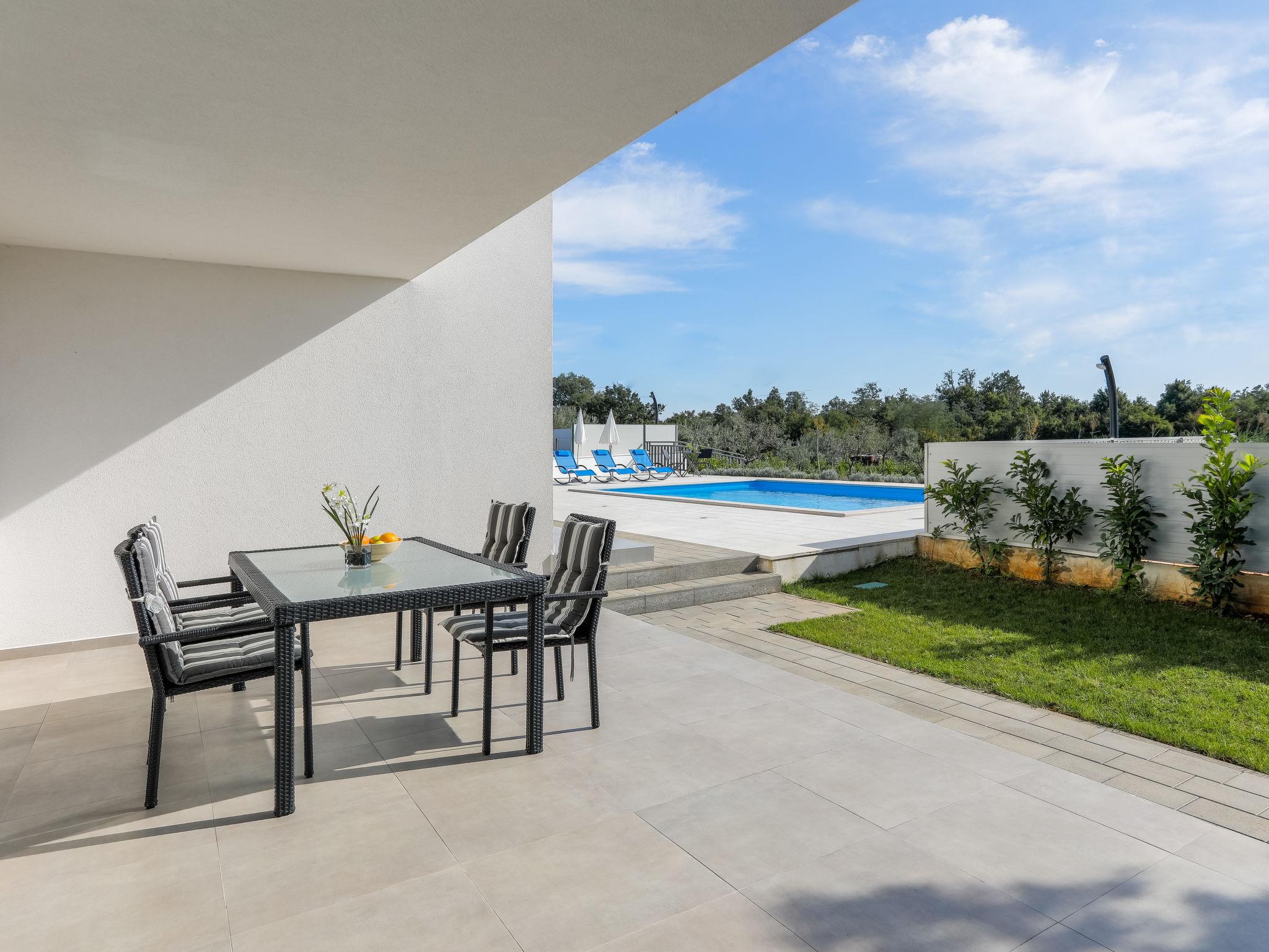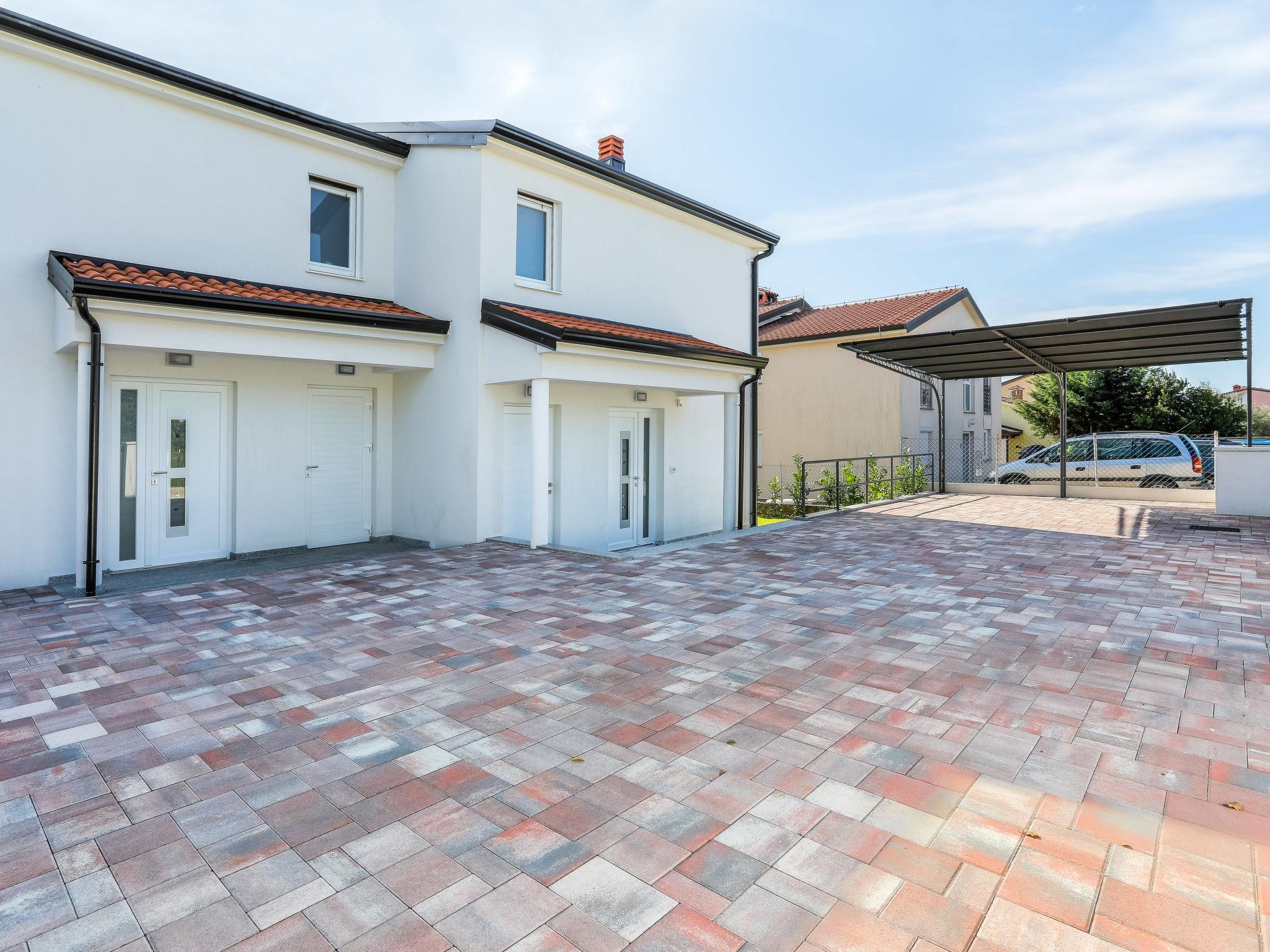 Nova Vas 6 km from Porec: Beautiful single-family house "Villa Tonka", 2 storeys, built in 2019. 500 m from the centre of Nova Vas, in a sunny position, 5 km from the sea. Private: property 1'100 m2 (fenced), garden with lawn, swimming pool angular (10 x 4 m, depth 150 cm, seasonal availability: 01.May. - 15.Oct.) with internal staircase. Outdoor shower, terrace (15 m2), garden furniture, barbecue. In the house: internet access, washing machine. Parking (for 2 cars) at the house on the premises. Supermarket 600 m, restaurant 1 km, pebble beach 5 km, rocky beach 5 km, public bathing area 5 km. Tennis 5 km, riding stable 7 km, walking paths from the house 100 m, cycle lane 150 m. Nearby attractions: aquapark 10 km, amusement park 15 km. Please note: suitable for families. The owner does not accept any youth groups. Organizing a party is not allowed. The unit consists of 2 houses rented as one unit.
