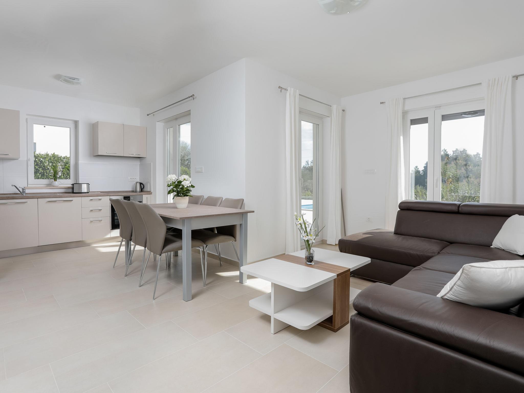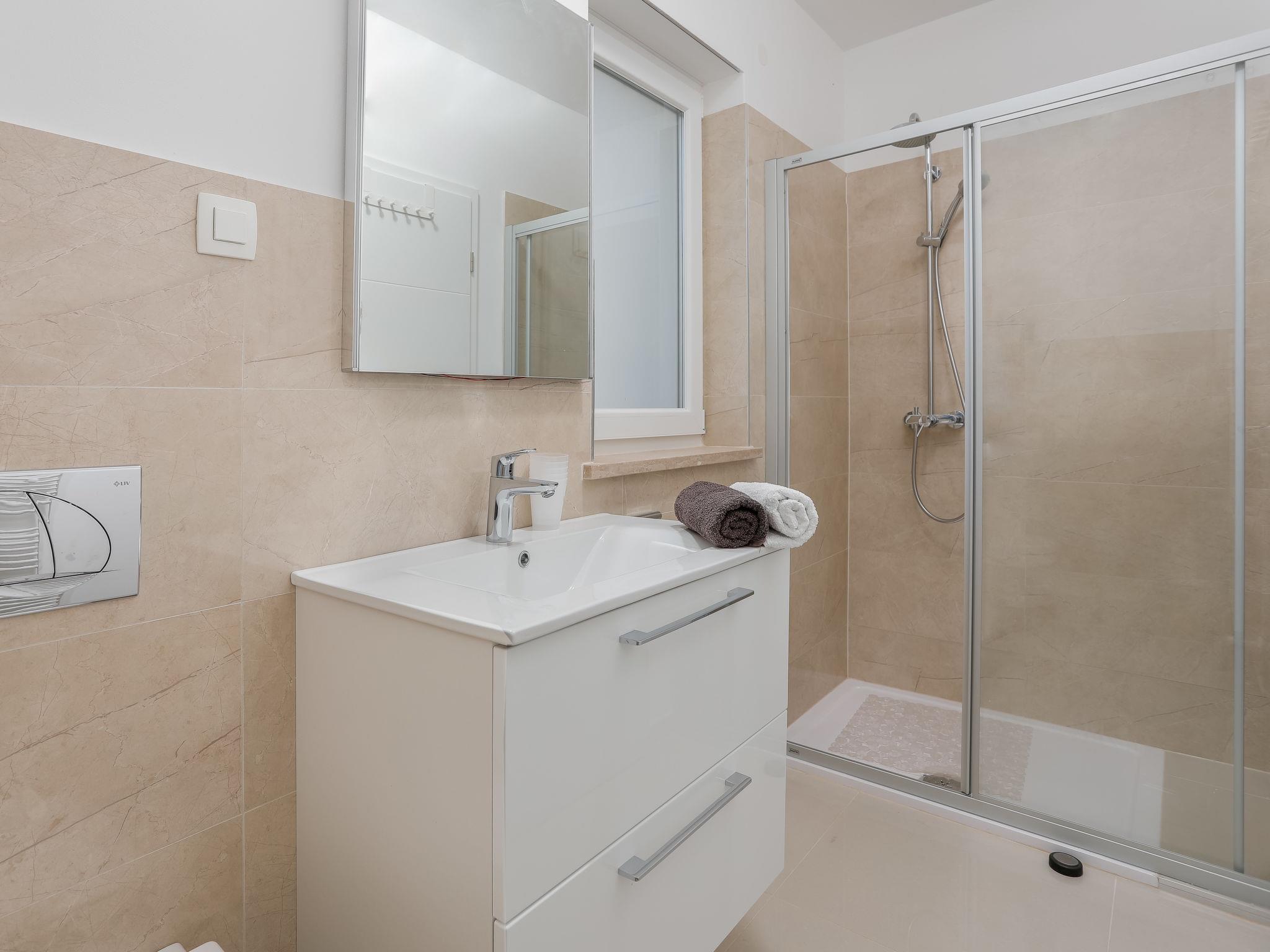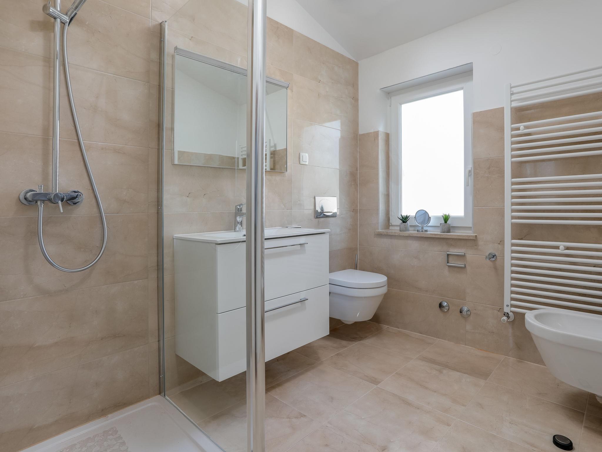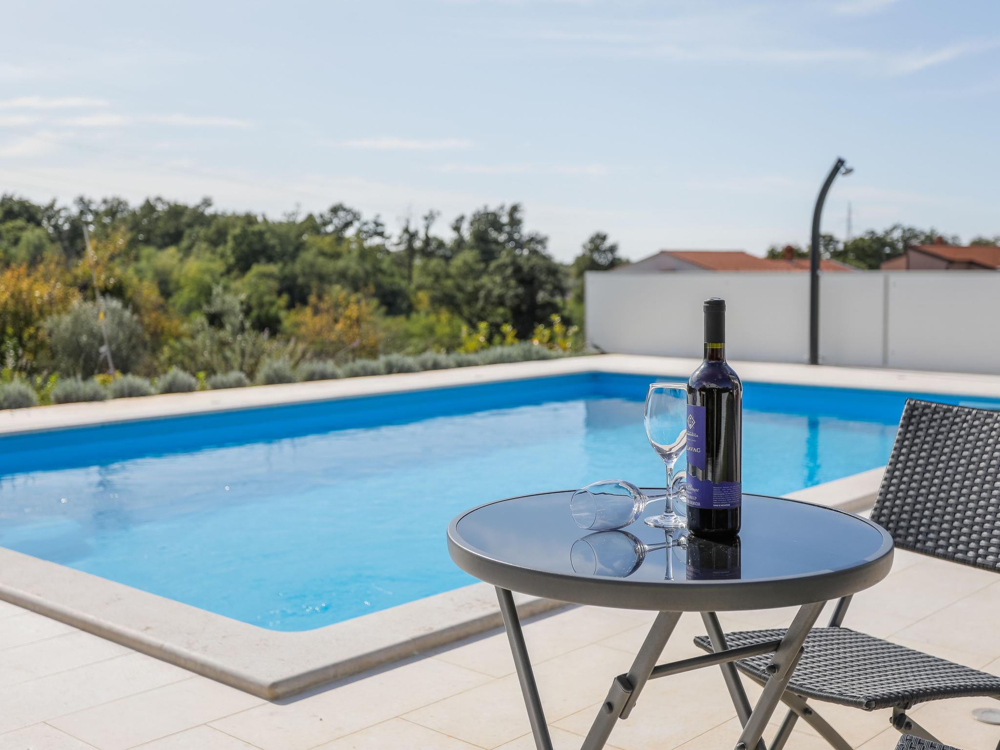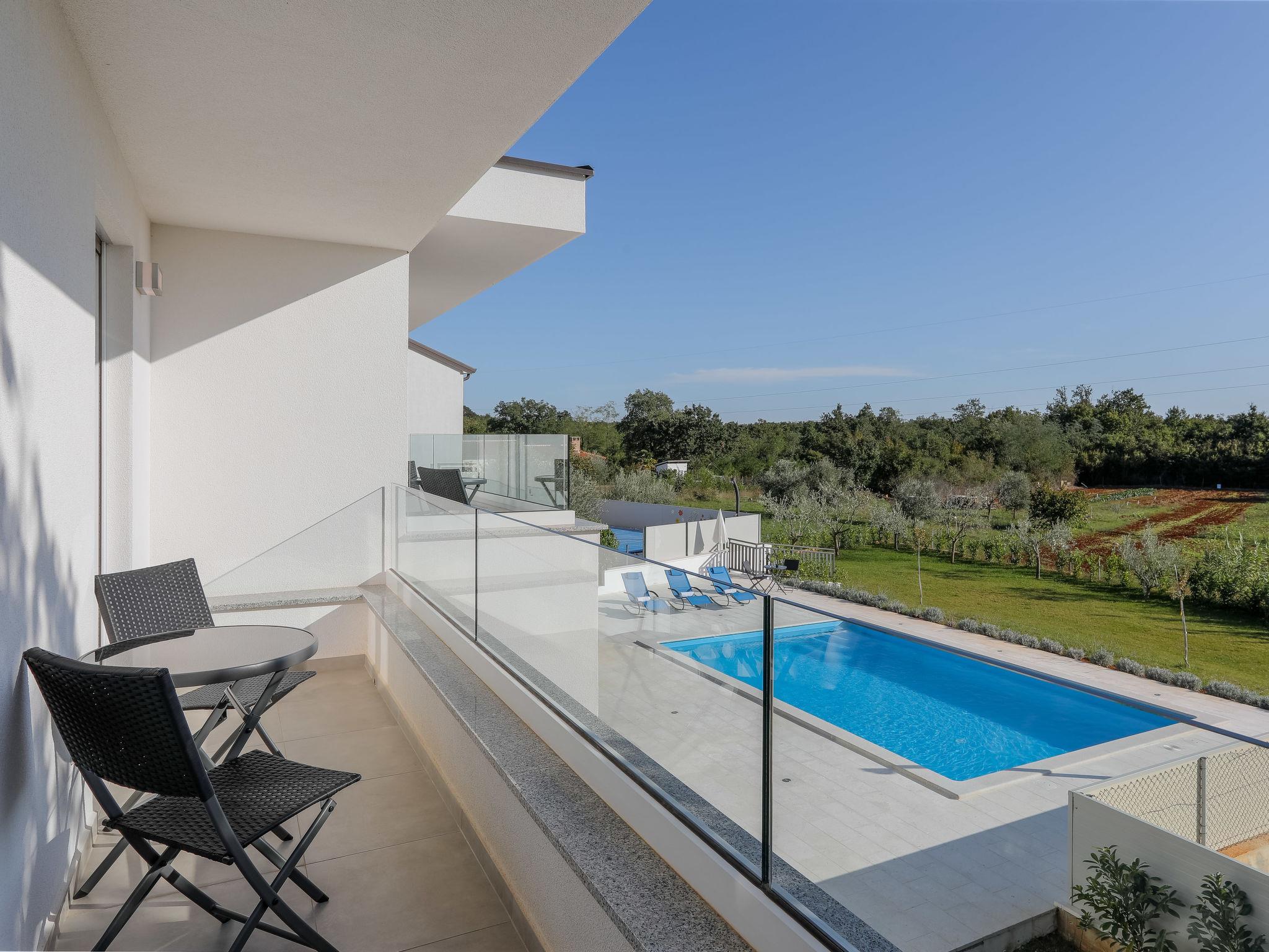 Nova Vas 6 km from Porec: Beautiful single-family house "Villa Tonka", 2 storeys, built in 2019. 500 m from the centre of Nova Vas, in a sunny position, 5 km from the sea. Private: property 1'100 m2 (fenced), garden with lawn, swimming pool angular (10 x 4 m, depth 150 cm, seasonal availability: 01.May. - 15.Oct.) with internal staircase. Outdoor shower, terrace (15 m2), garden furniture, barbecue. In the house: internet access, washing machine. Parking (for 2 cars) at the house on the premises. Supermarket 600 m, restaurant 1 km, pebble beach 5 km, rocky beach 5 km, public bathing area 5 km. Tennis 5 km, riding stable 7 km, walking paths from the house 100 m, cycle lane 150 m. Nearby attractions: aquapark 10 km, amusement park 15 km. Please note: suitable for families. The owner does not accept any youth groups. Organizing a party is not allowed. The unit consists of 2 houses rented as one unit.