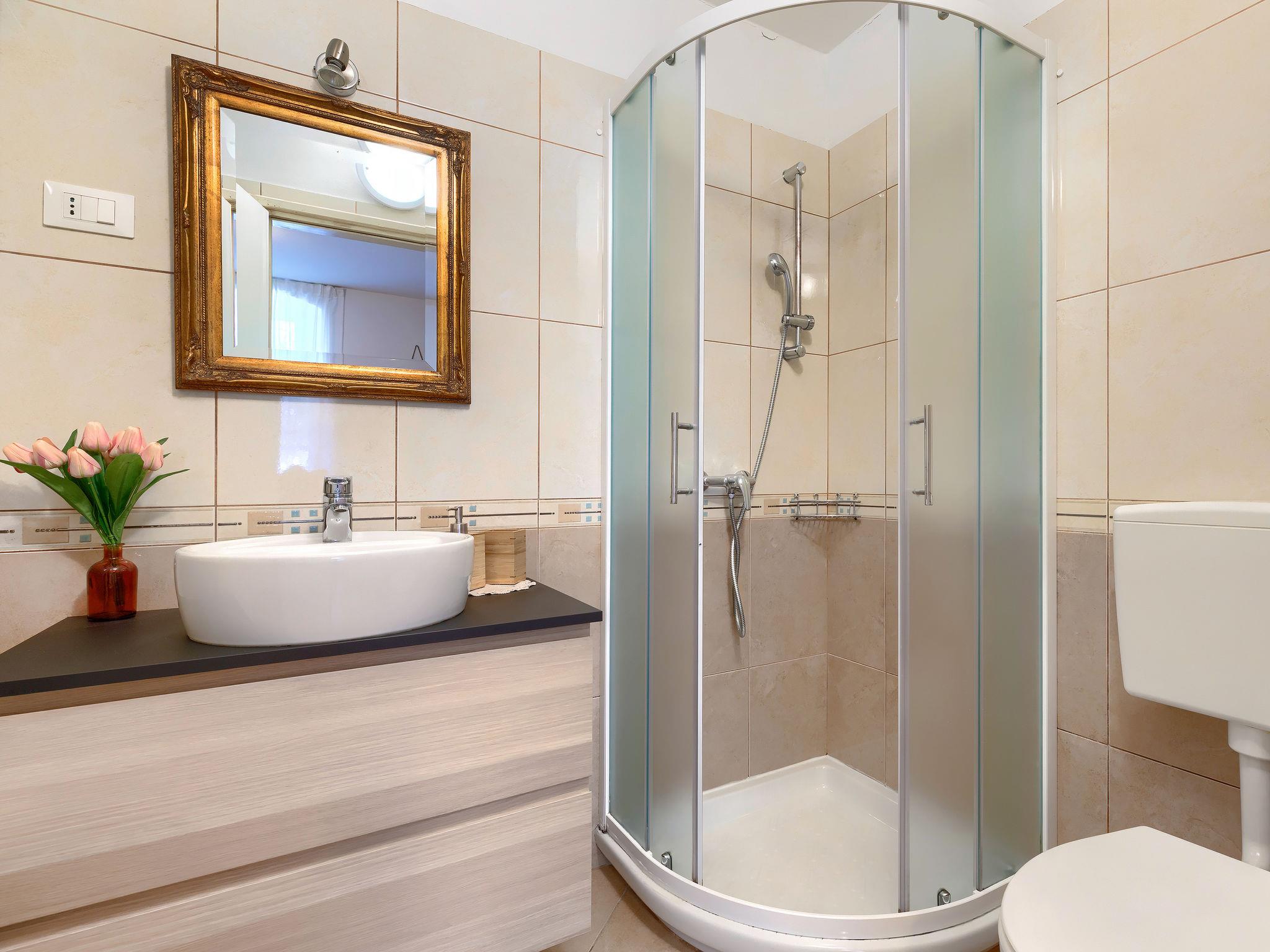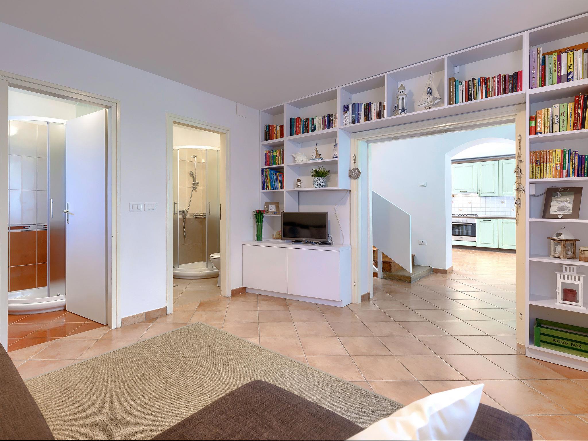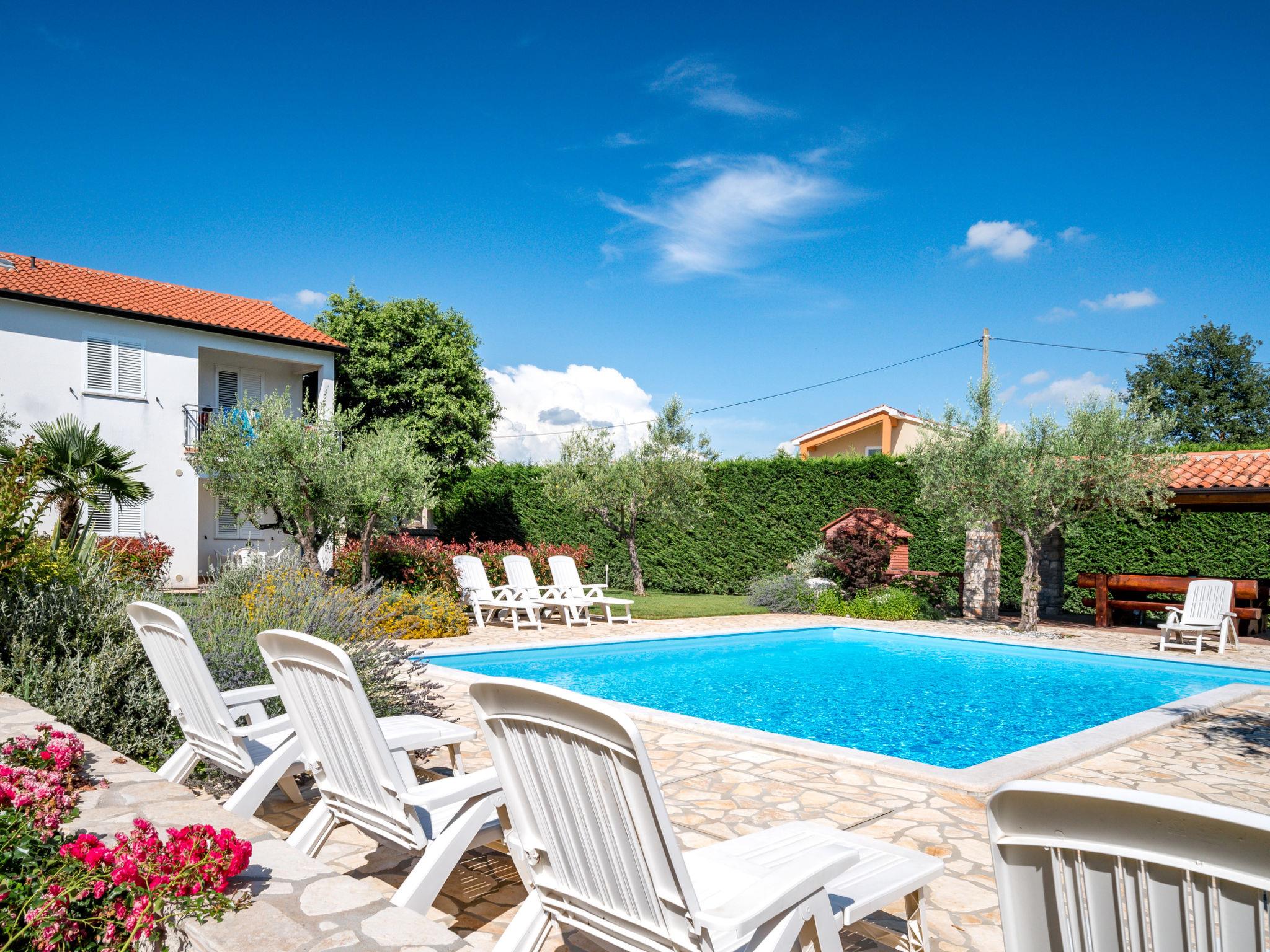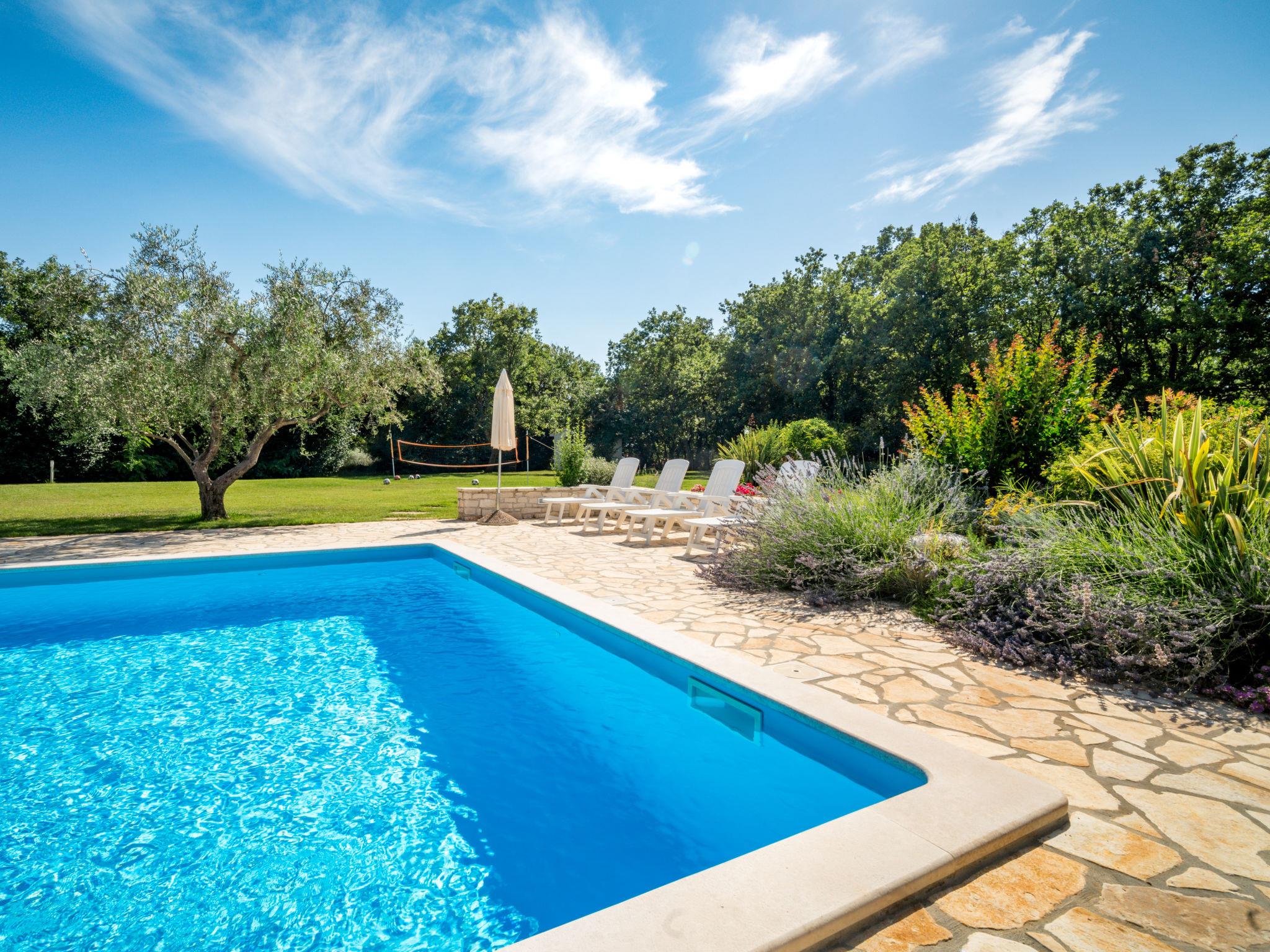 Semi-detached house "Tommy", 2 storeys. In the hamlet Gedici 1 km from the centre of Nova Vas, 5 km from the centre of Porec, in a sunny position, 5 km from the sea. For shared use: property 2'000 m2 (fenced), garden with lawn, swimming pool angular (8 x 6 m, depth 140 cm, seasonal availability: 15.Apr. - 15.Oct.) with internal staircase. Outdoor shower, terrace (20 m2), garden furniture, barbecue, children's playground (swing). Private: property 250 m2, garden with lawn. In the house: internet access, washing machine (for shared use, extra). Parking at the house on the premises. Shop 2 km, restaurant 2 km, bus stop 2.8 km, pebble beach 5 km, rocky beach 5 km. Tennis 6 km, riding stable 3 km, walking paths from the house 100 m, cycle lane 150 m. Nearby attractions: aquapark 11 km. Please note: Property ref. HR2406.201 is situated on the same property.