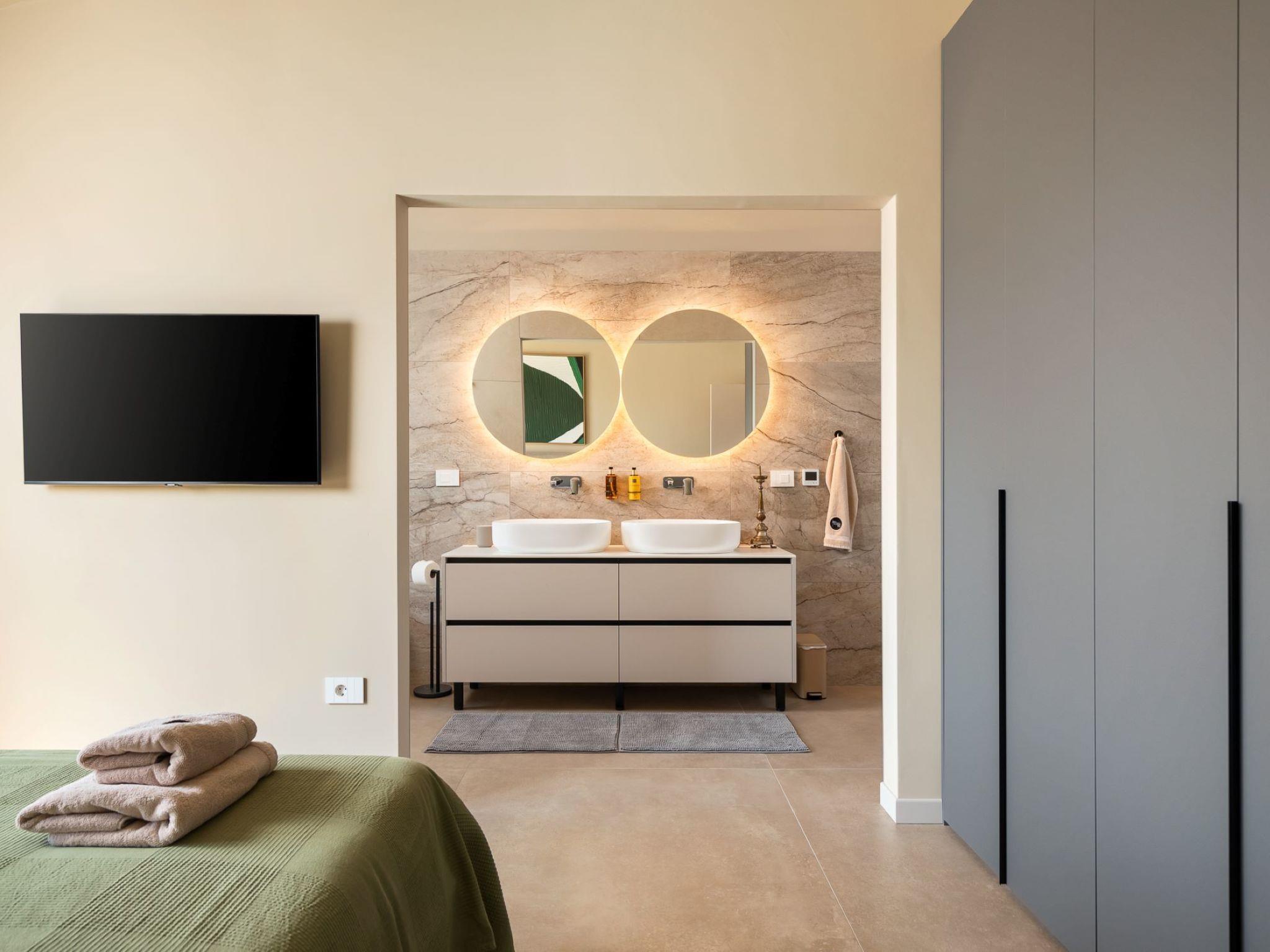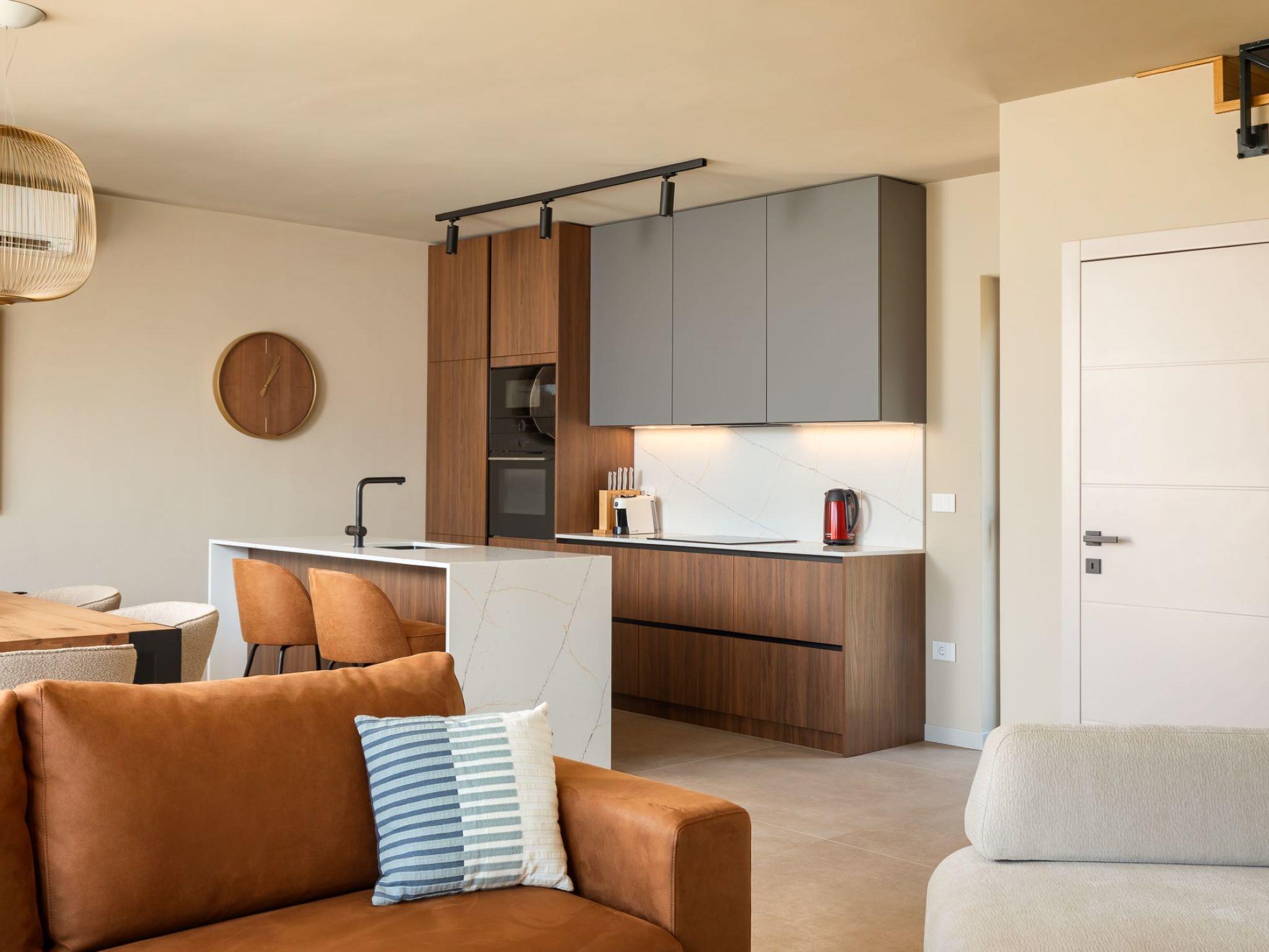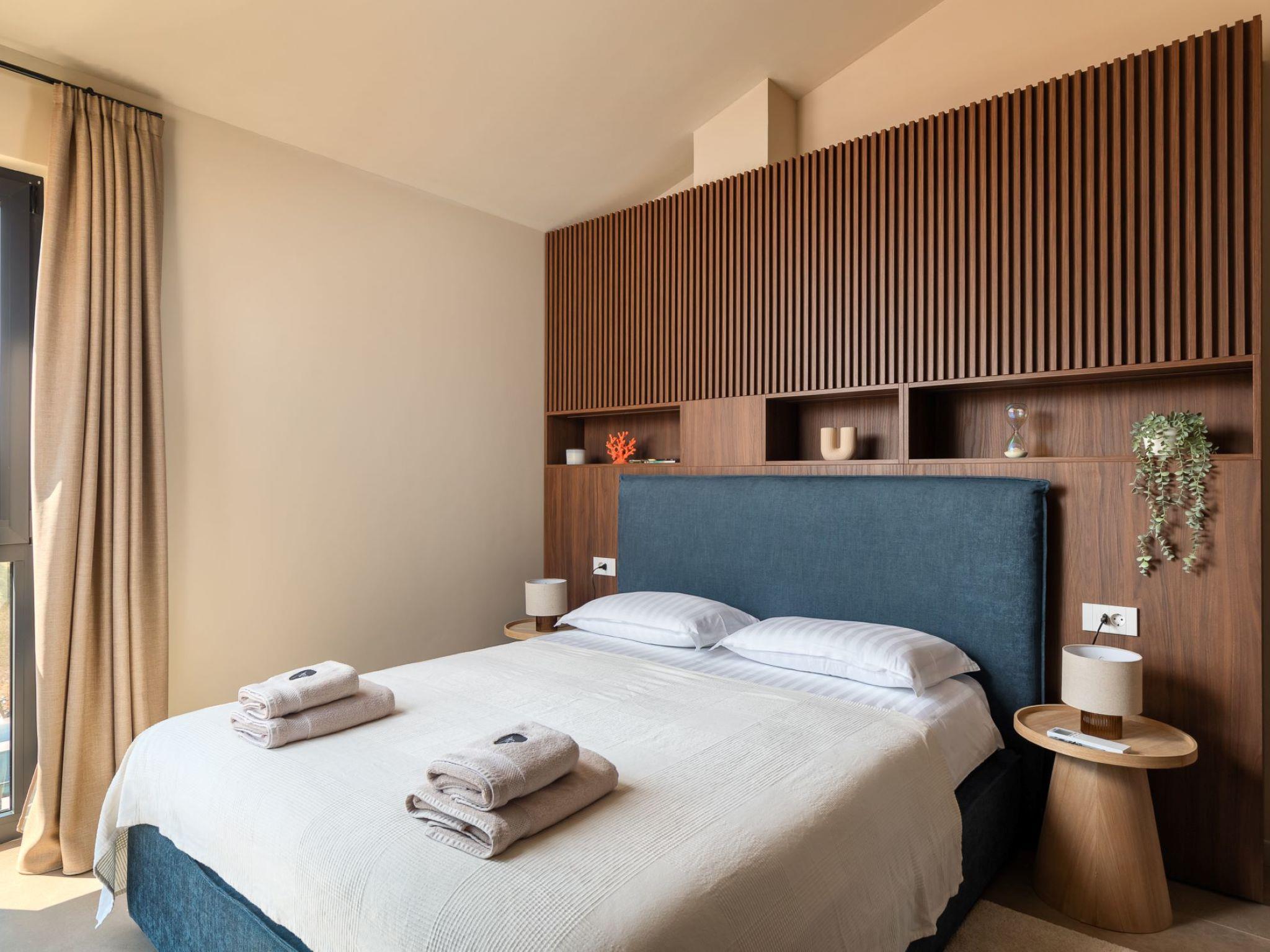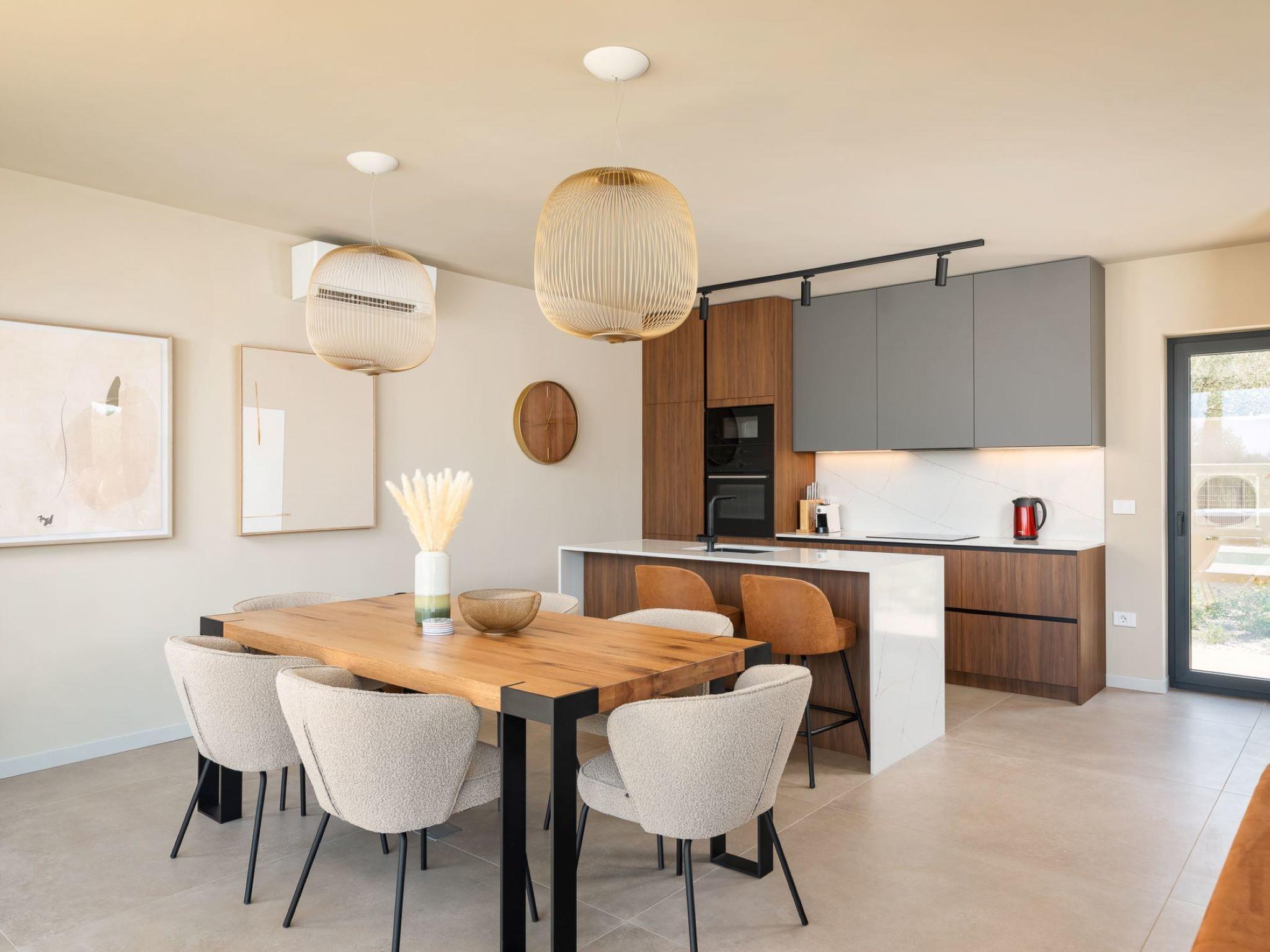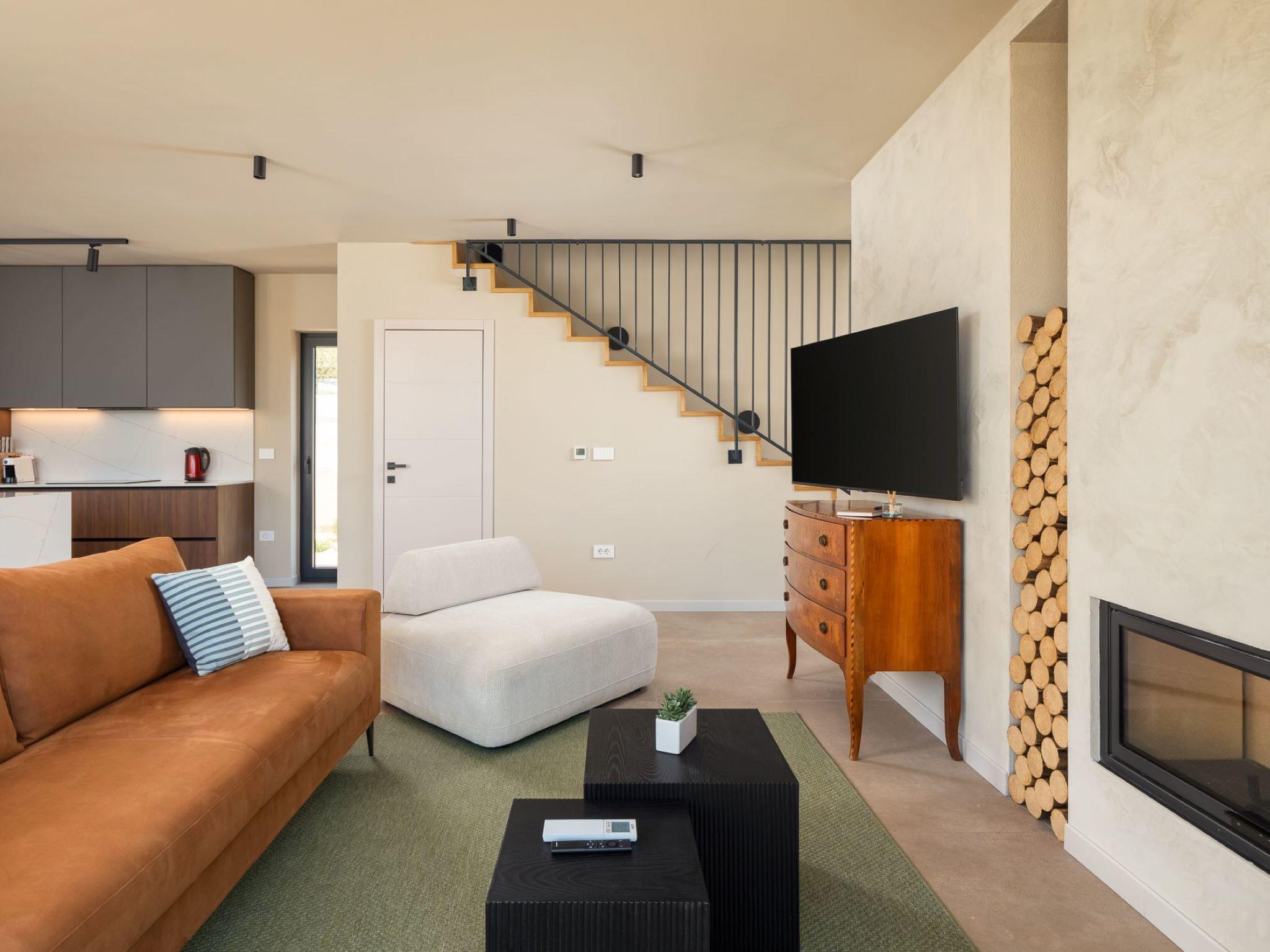 Very beautiful semi-detached house "Tia 2", 2 storeys, built in 2024. In the hamlet Mihatovici 1 km from the centre of Nova Vas, 5 km from the centre of Porec, 4.5 km from the sea, 4.5 km from the beach. Private: property 400 m2 (fenced), garden with lawn, swimming pool angular, heated (7 x 3 m, 21 m2, depth 140 cm, seasonal availability: 01.Apr. - 01.Nov.) with internal staircase and salt-electrolysis pool-cleaning system. Outdoor shower, terrace (20 m2), barbecue. In the house: internet access, sauna, hot tub, washing machine. Parking (for 2 cars) at the house on the premises. Shop 1.5 km, shopping centre 3 km, restaurant 70 m, café 1.5 km, bus stop 2.8 km, pebble beach 4.5 km, rocky beach 4.5 km. Nearby attractions: Aquapark 9 km. Groups of teenagers on request only. Please note: airfield 46 m from the property. Heated swimming pool (extra). It is necessary to notify us 7 days in advance if you wish to have the pool heating turned on.