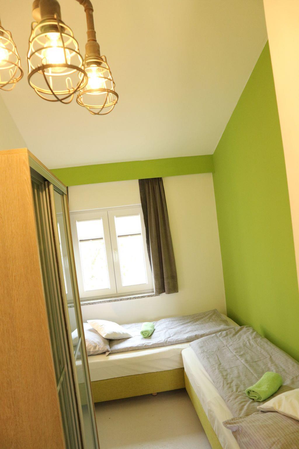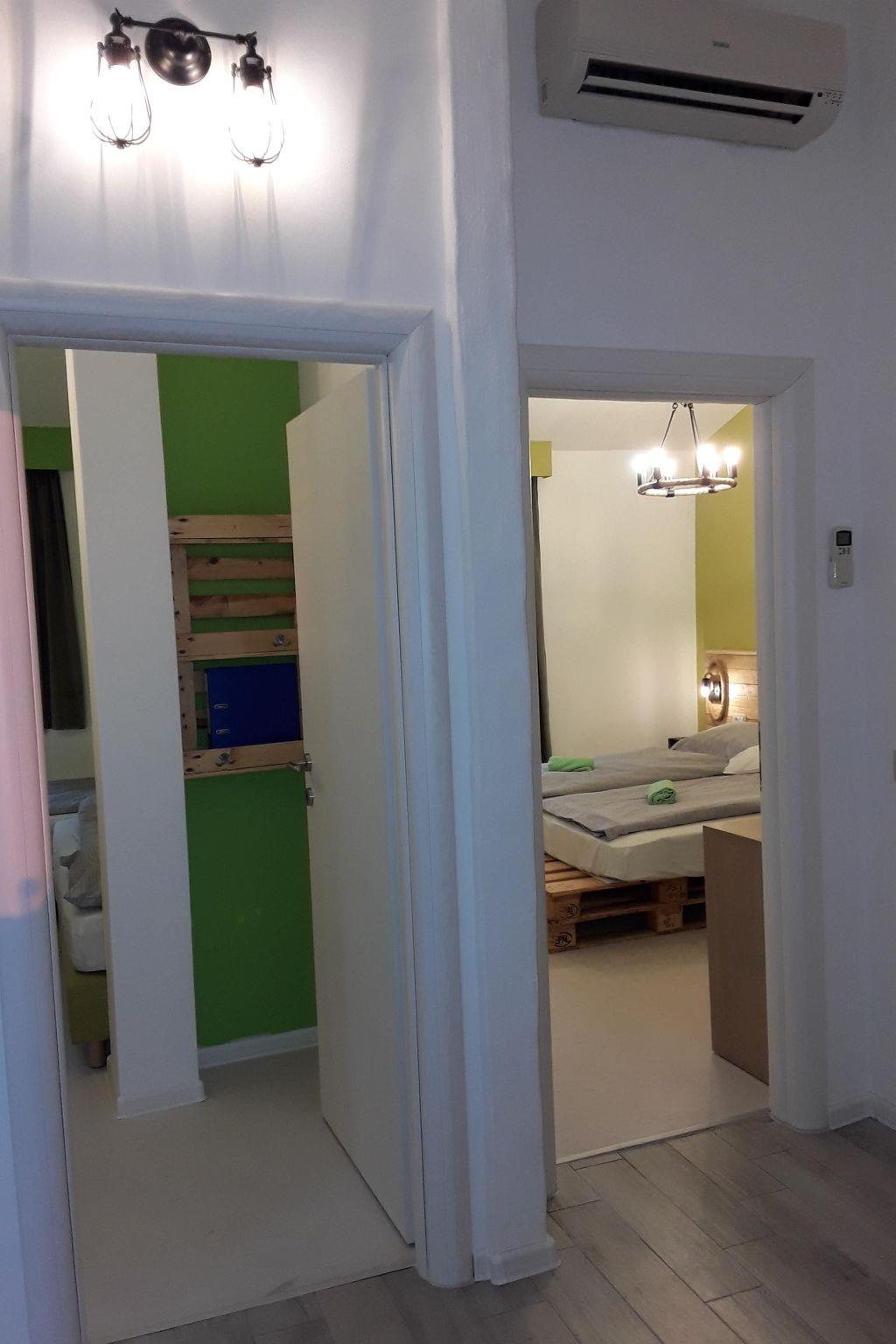 Our apartment Bella is equipped with 1 master bedroom with SAT-TV, 1 children's room with 2 beds, bathroom with DS/WC, fully equipped kitchen with SAT-TV and a balcony with seating.