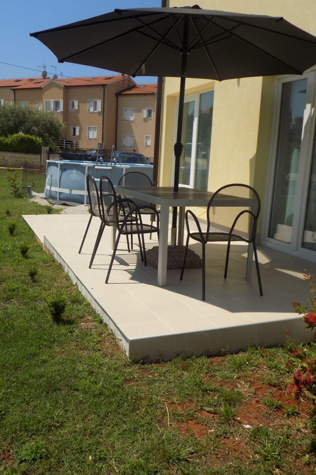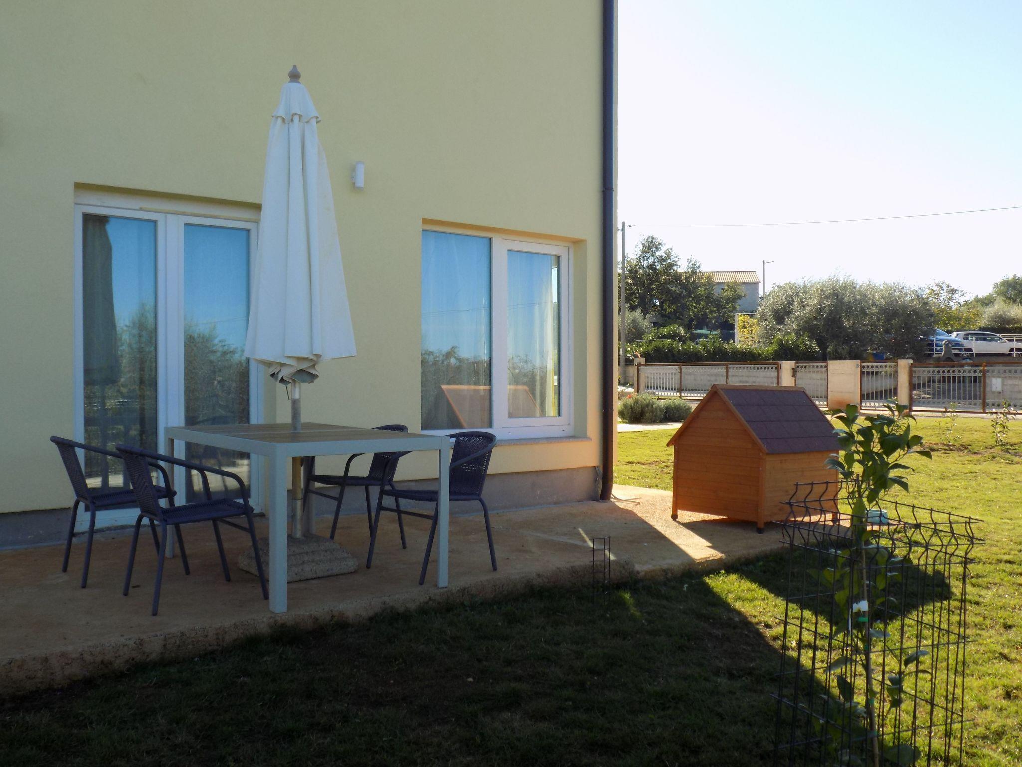 Newly built house in a quiet suburb of Porec, only 6 kilometers from the city center. Brand new apartment with two bathrooms, surrounded by the green colour of olive trees, and in the morning birds singing wakes you up. New and equipped kitchen with all appliances, two bedrooms and a commodious living room. Ideal for families with children, big yard with green grass and private parking. Treat your self to a peaceful and relaxing vacation without the hustle and bustle of the city, and yet when you want to be in the city and on the beach it is just four kilometers away.