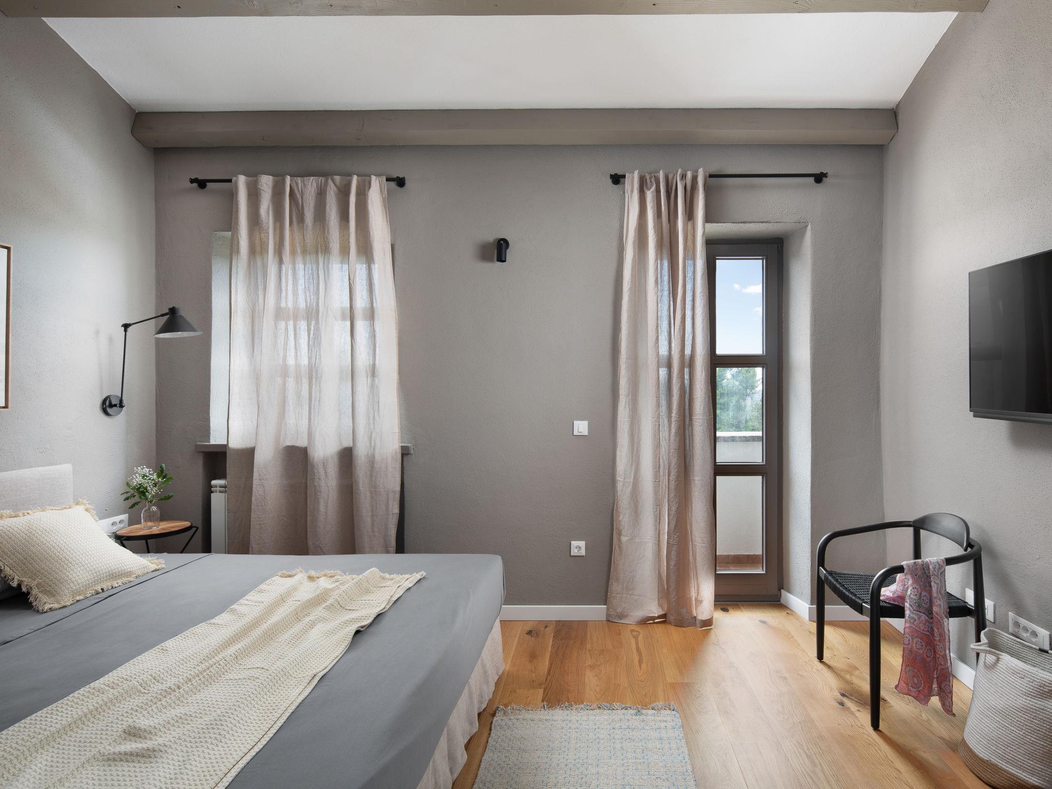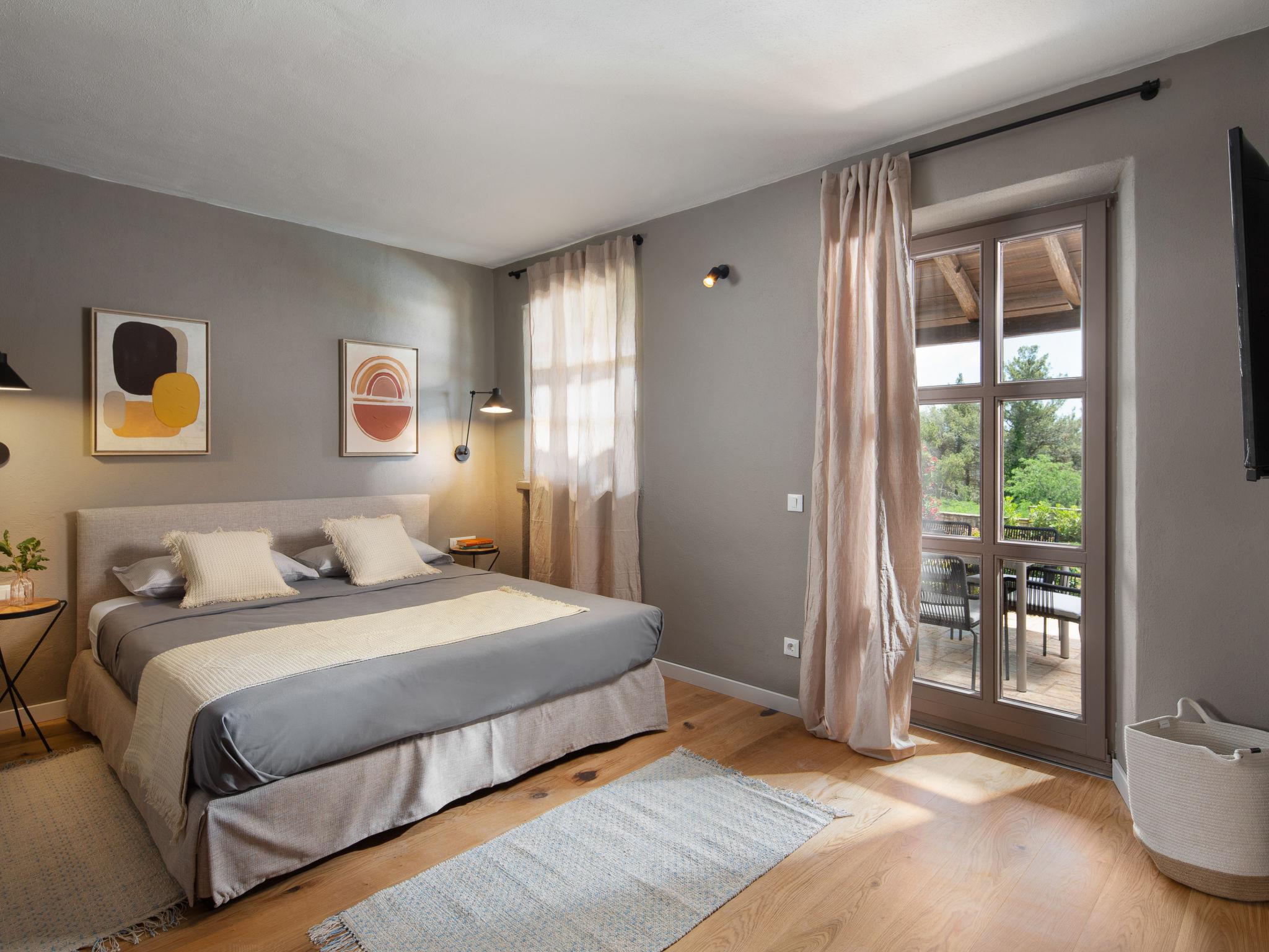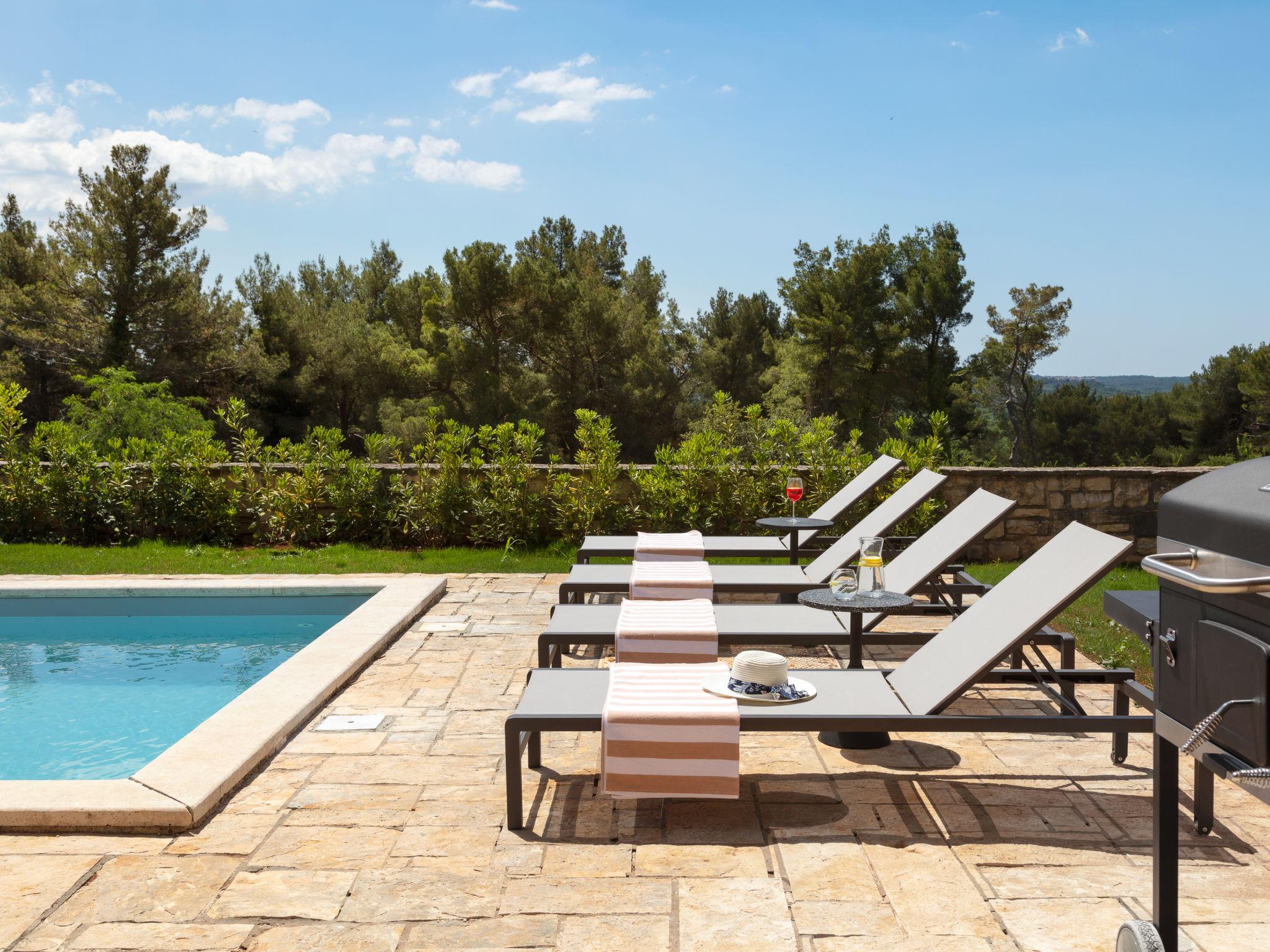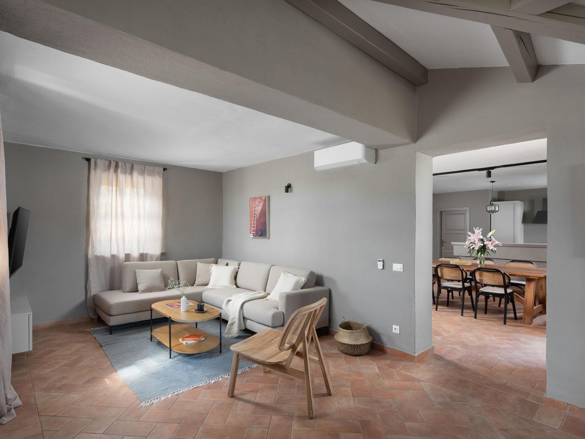 5-room villa 206 m2 on 2 levels. Living/dining room with satellite TV (flat screen), air conditioning. Exit to the swimming pool. 1 room with 1 double bed (2 x 90 cm, length 200 cm), bath/WC and satellite TV (flat screen), air conditioning. Open kitchen (oven, dishwasher, 4 induction hot plates, toaster, kettle, microwave, freezer, electric coffee machine). Sep. WC. Upper floor: 1 room with 2 beds (90 cm, length 200 cm), bath/WC and satellite TV (flat screen), air conditioning. 1 room with 1 double bed (2 x 90 cm, length 200 cm), bath/shower/WC and satellite TV (flat screen), air conditioning. Exit to the terrace. 1 room with 1 double bed (2 x 90 cm, length 200 cm), bath/shower/WC and satellite TV (flat screen), air conditioning. Exit to the terrace. Terrace 10 m2, terrace 10 m2. Terrace furniture, barbecue, deck chairs.