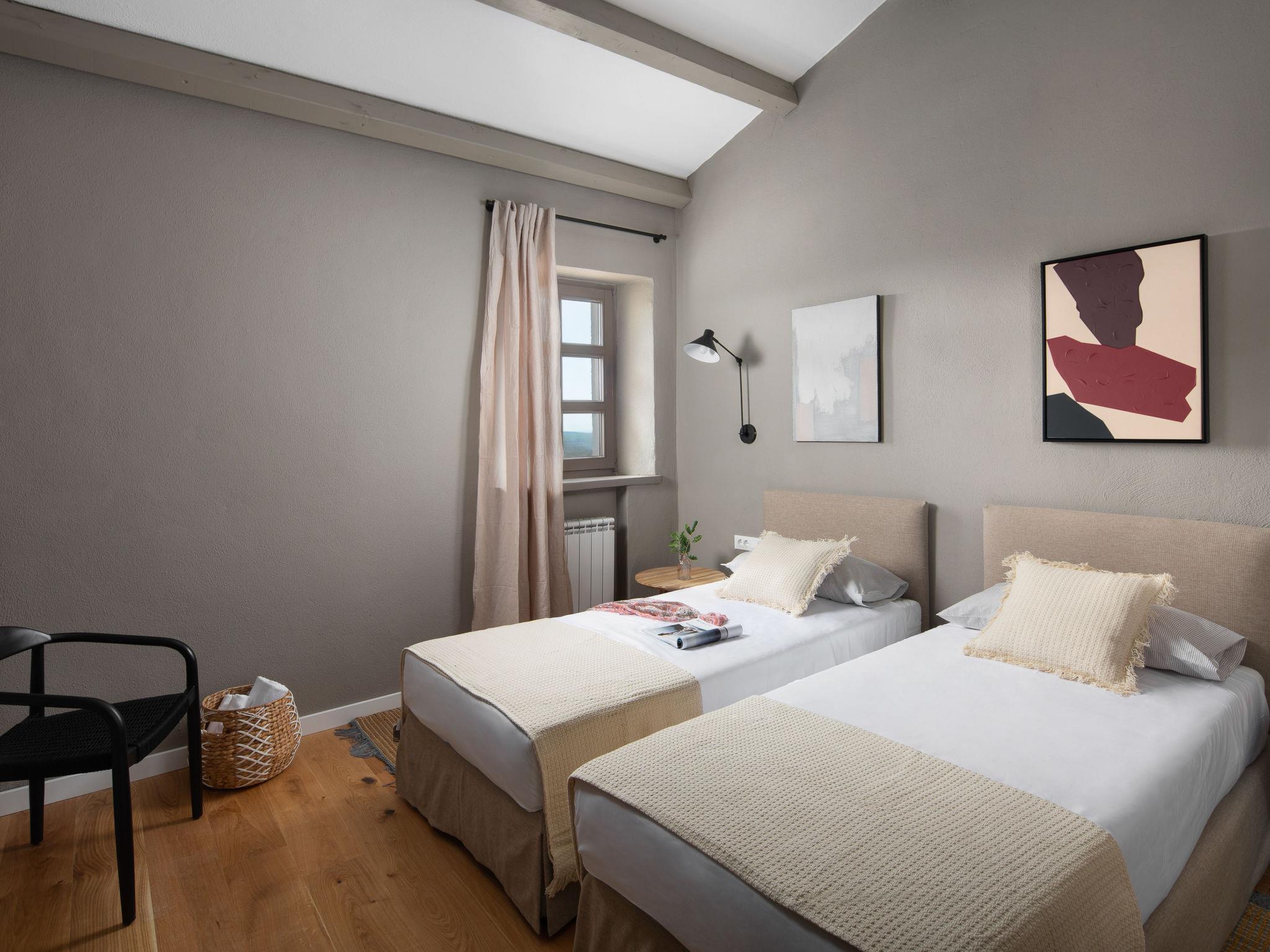 Sveti Lovrec 12 km from Porec: Beautiful villa "Rorripa". 500 m from the centre of Sveti Lovrec, in a sunny position, 8.5 km from the sea. Private: property 852 m2 (fenced) with lawn and wildlife garden, swimming pool angular (8 x 4 m, depth 150 cm, seasonal availability: 01.May. - 01.Oct.) with internal staircase. In the house: internet access, table football, washing machine. Parking (for 2 cars) at the house on the premises. Shop 500 m, supermarket 12 m, restaurant 500 m, bus stop 3.4 km, pebble beach 12 km, rocky beach 12 km. Walking paths from the house 100 m, cycle lane 150 m.