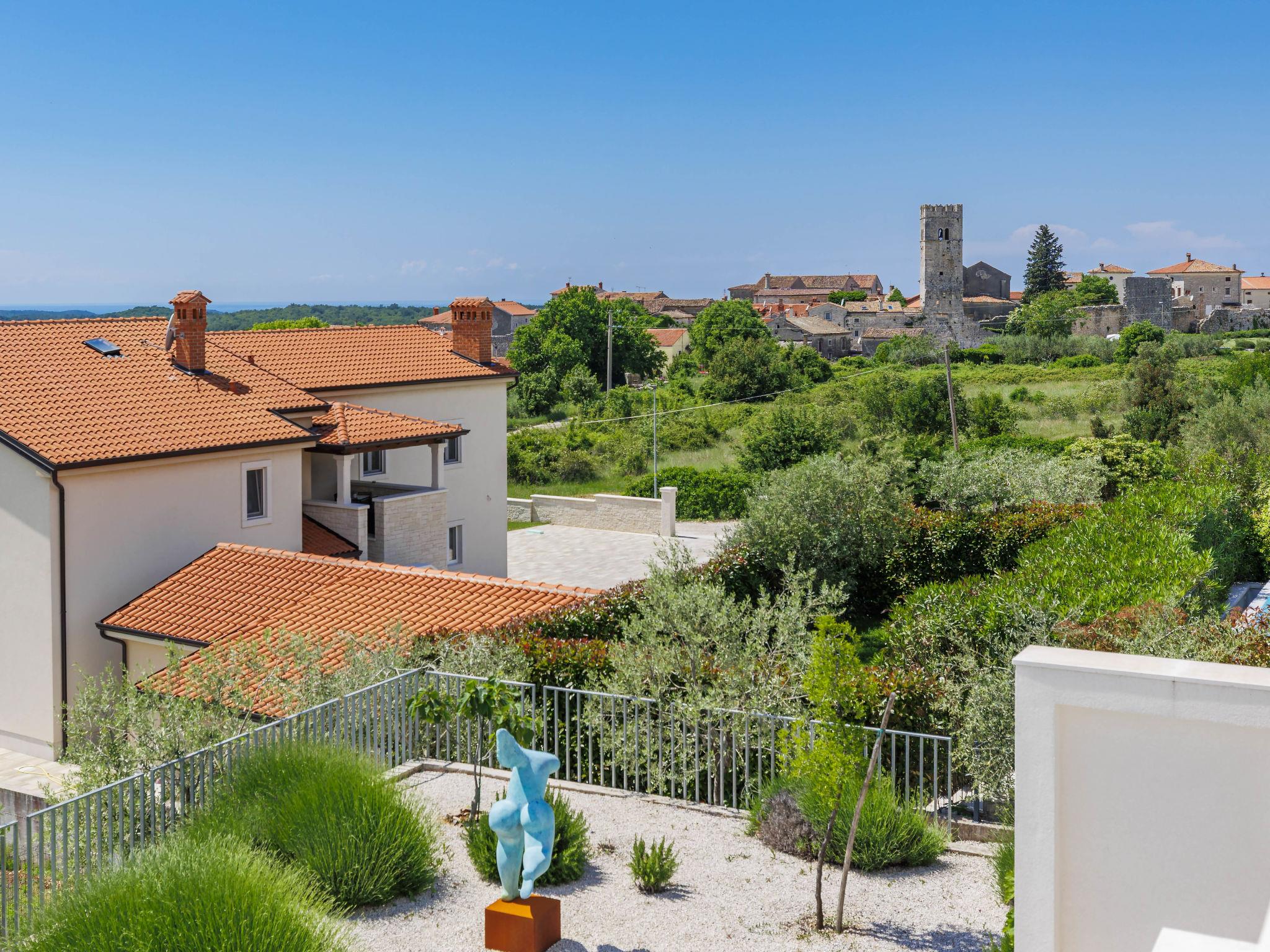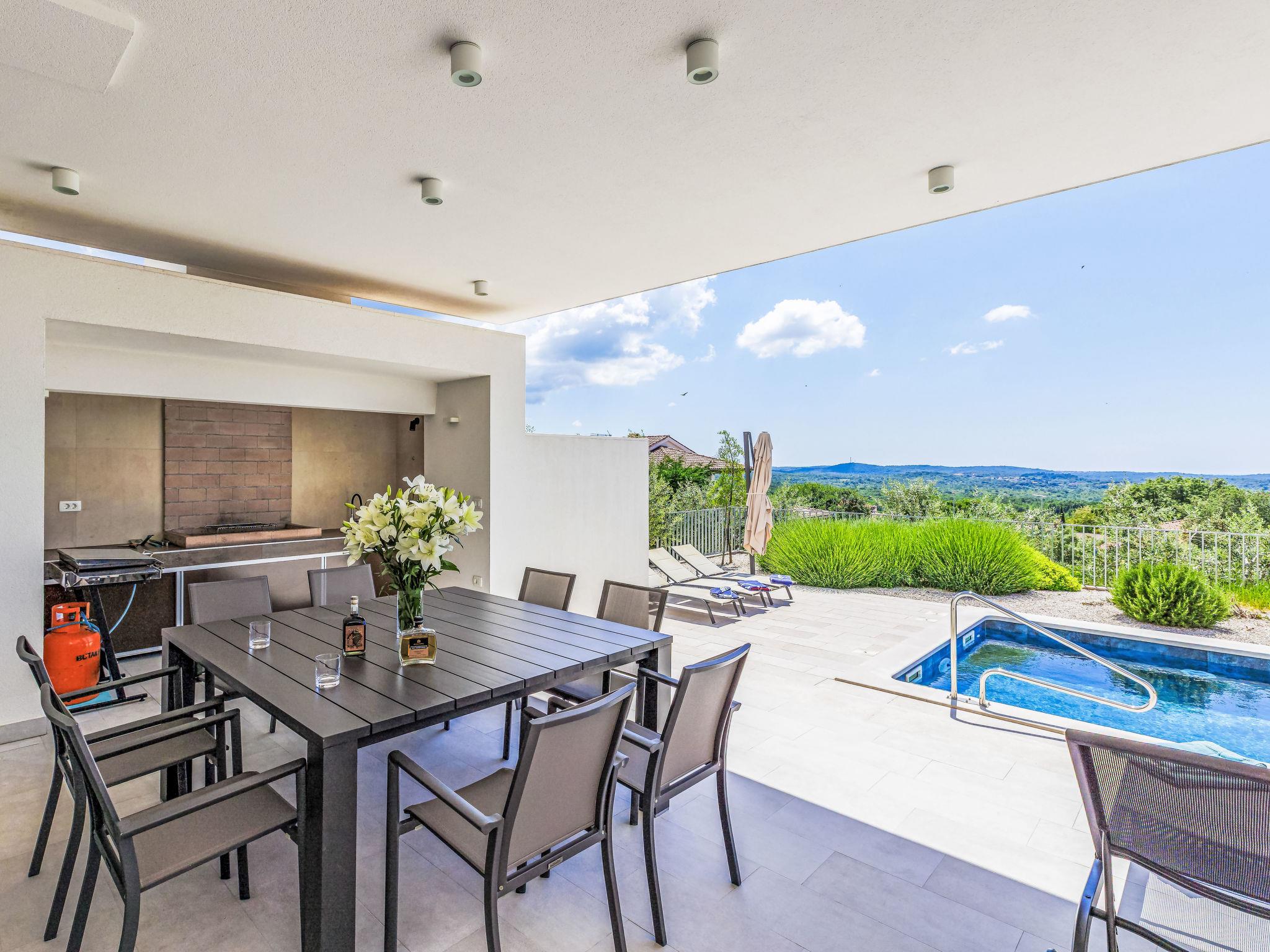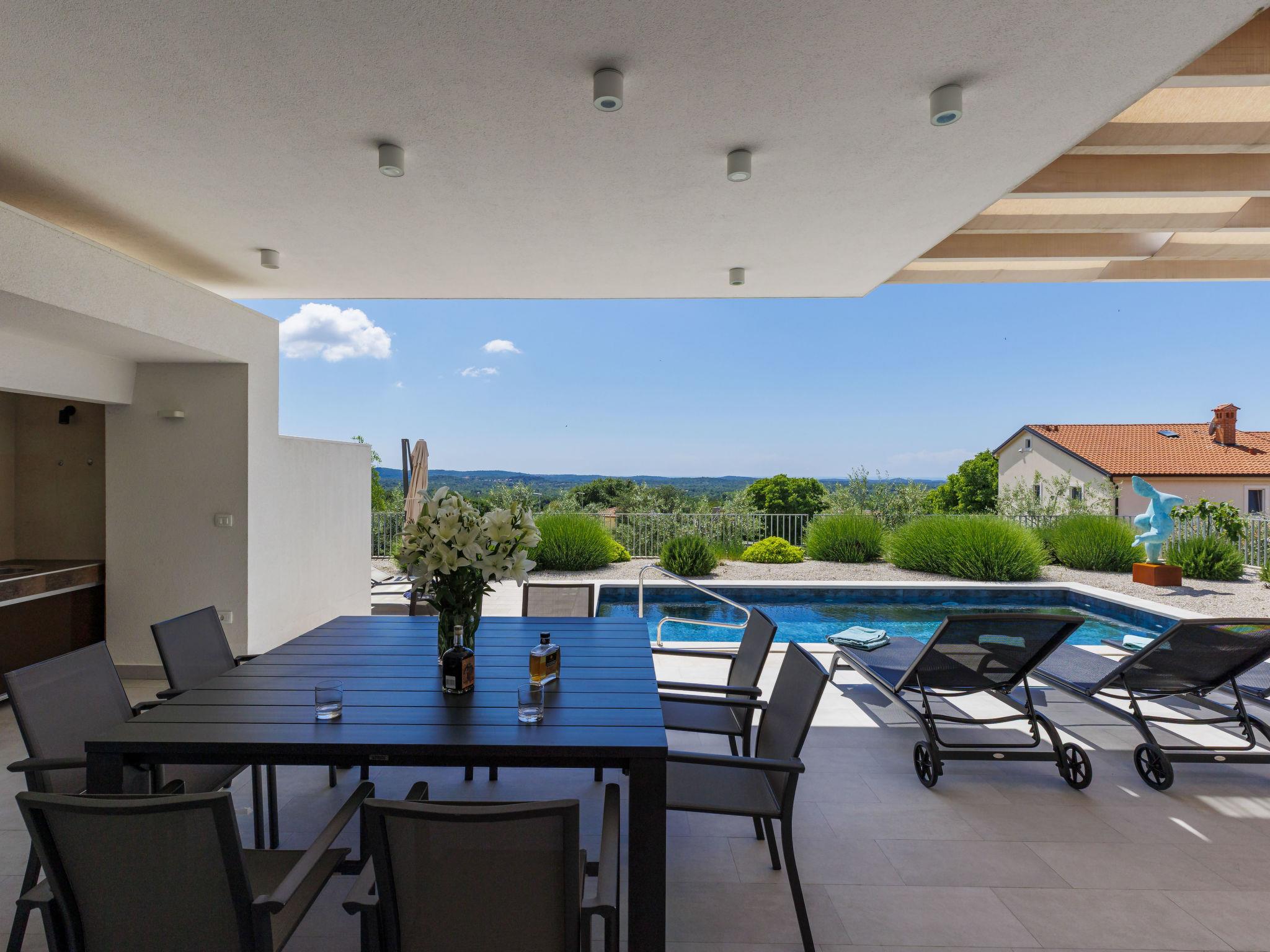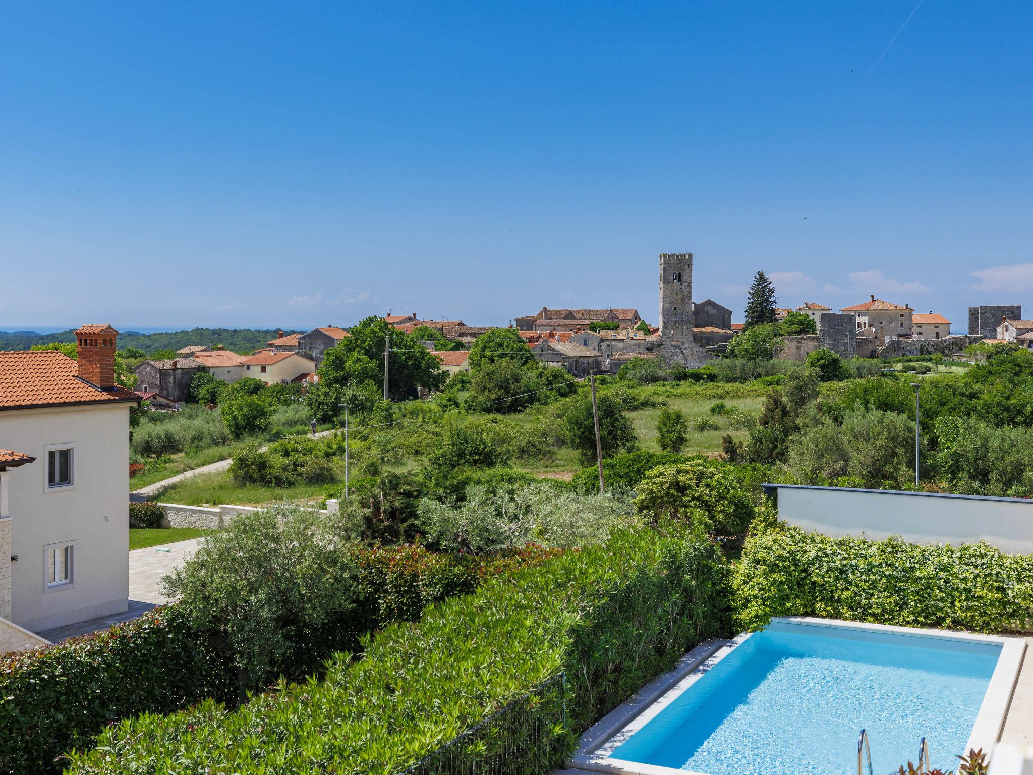 Sveti Lovrec 12 km from Porec: Luxurious villa "Aponia", 3 storeys. 400 m from the centre of Sveti Lovrec, in a sunny position, 8.5 km from the sea. Private: property 750 m2 (fenced) with wildlife garden, swimming pool angular (4 x 8 m, depth 140 cm, seasonal availability: 01.May. - 31.Oct.) with internal staircase. Outdoor shower, terrace (15 m2), garden furniture. In the house: internet access, billiard table, table football, washing machine, tumble dryer. Parking (for 4 cars) at the house on the premises. Shop 500 m, supermarket 12 km, restaurant 300 m, bus stop 500 m, pebble beach 12 km, rocky beach 12 km. Tennis 12 km, walking paths from the house 100 m, cycle lane 150 m. Nearby attractions: Aquapark 12 km. Please note: airfield 40 km from the property. Swimming pool with counterflow.