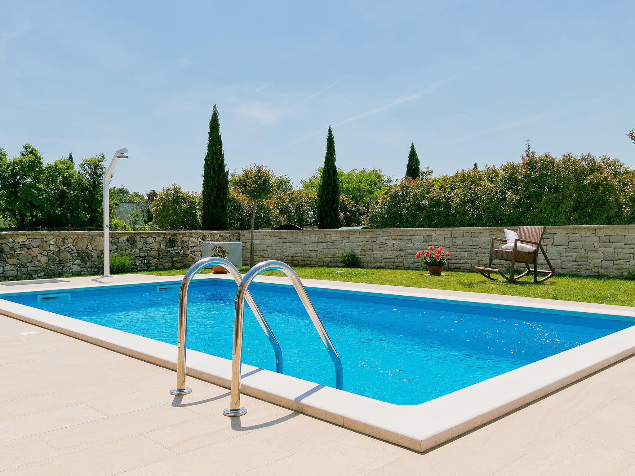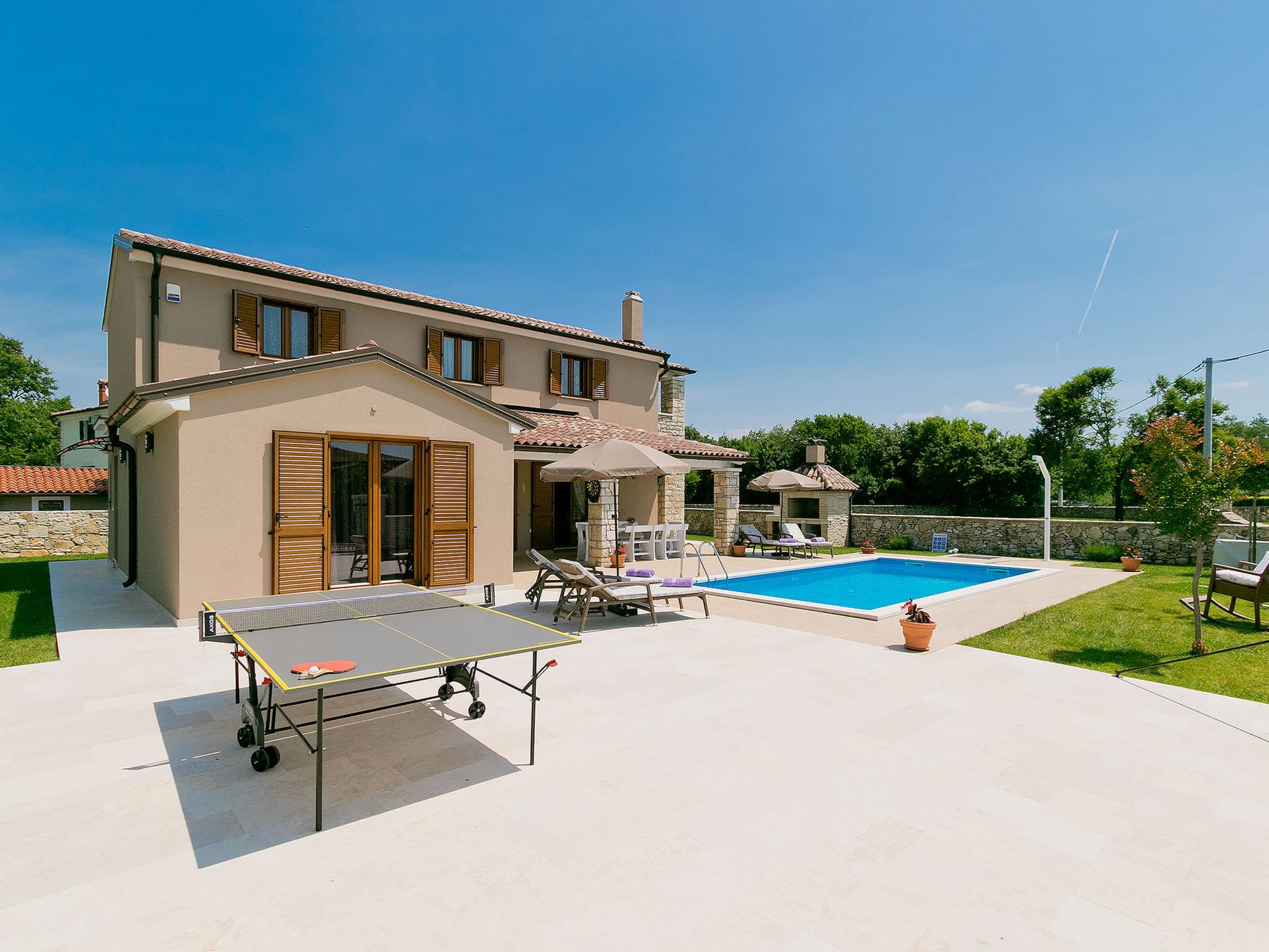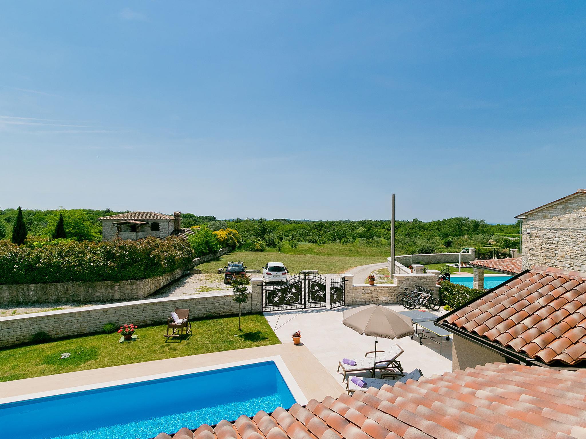 Sv. Lovrec 12 km from Porec: Beautiful villa "Angela", 2 storeys. In the hamlet Ribari 600 m from the centre of Radetici, 5 km from the centre of Sv. Lovrec, in a quiet, sunny position, 14 km from the sea. Private: property 650 m2 (fenced), beautiful garden with lawn and wildlife garden, swimming pool angular, heated (8 x 3 m, depth 150 cm, seasonal availability: 01.Apr. - 30.Oct.). Outdoor shower, table tennis, barbecue. In the house: internet access, washing machine. Available: bicycles (4). Parking at the house on the premises. Shop 5 km, restaurant 5 km, bus stop 7.6 km, pebble beach 14 km. Tennis 14 km, walking paths from the house 100 m, cycle lane 150 m. Swimming pool heated (extra). It is necessary to announce 7 days in advance if the pool heating is required. Youth groups are not allowed.