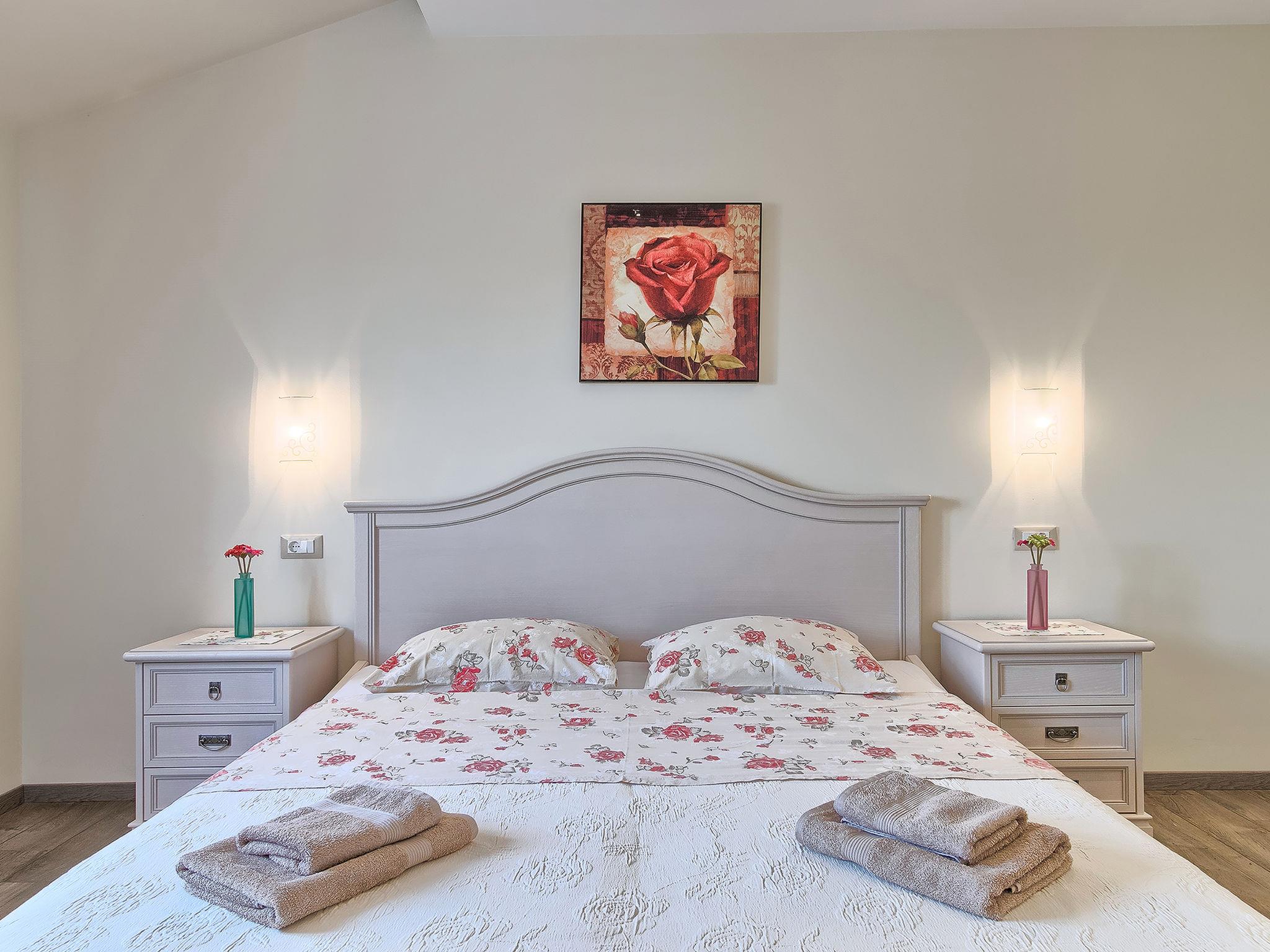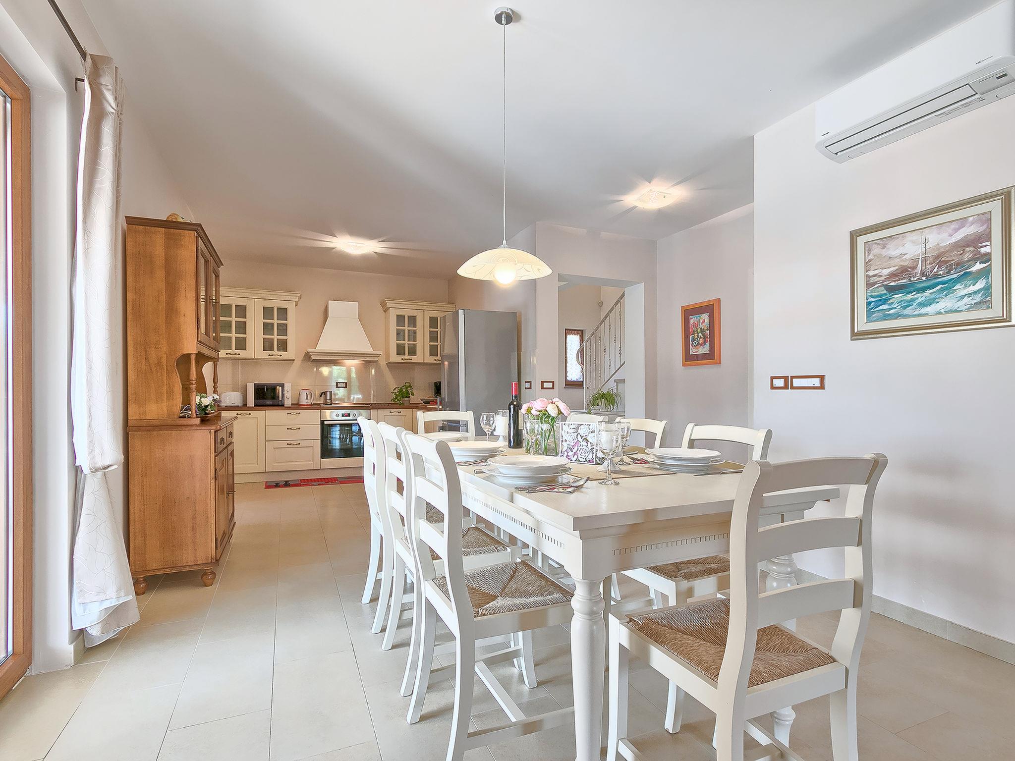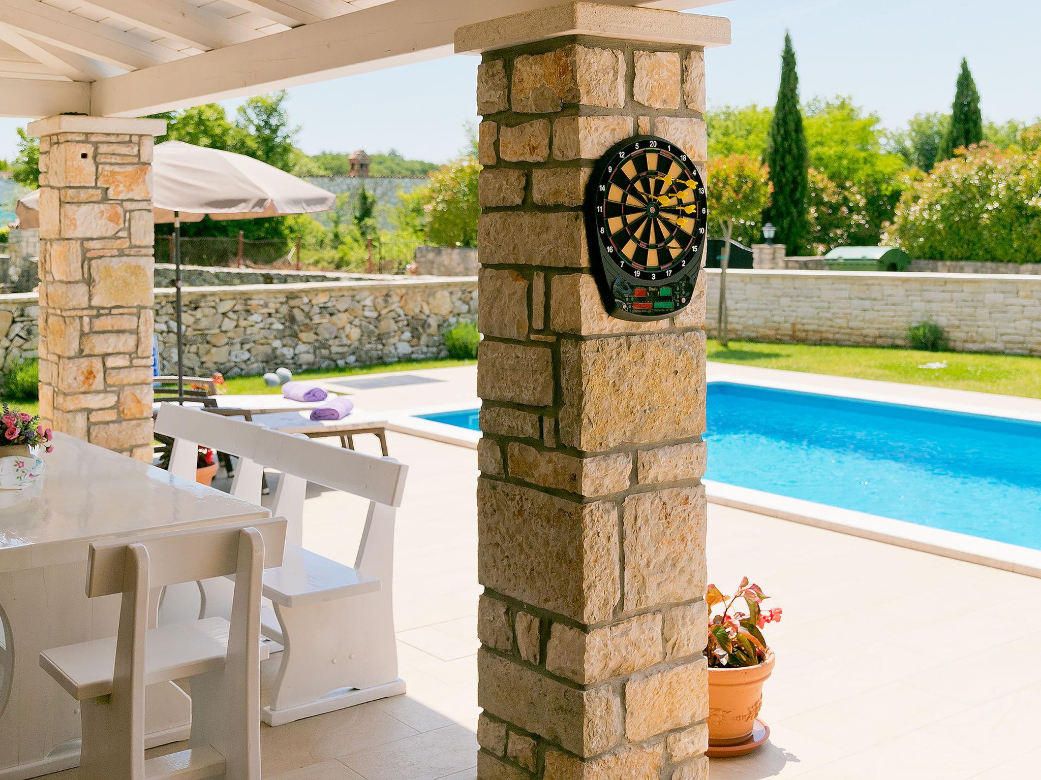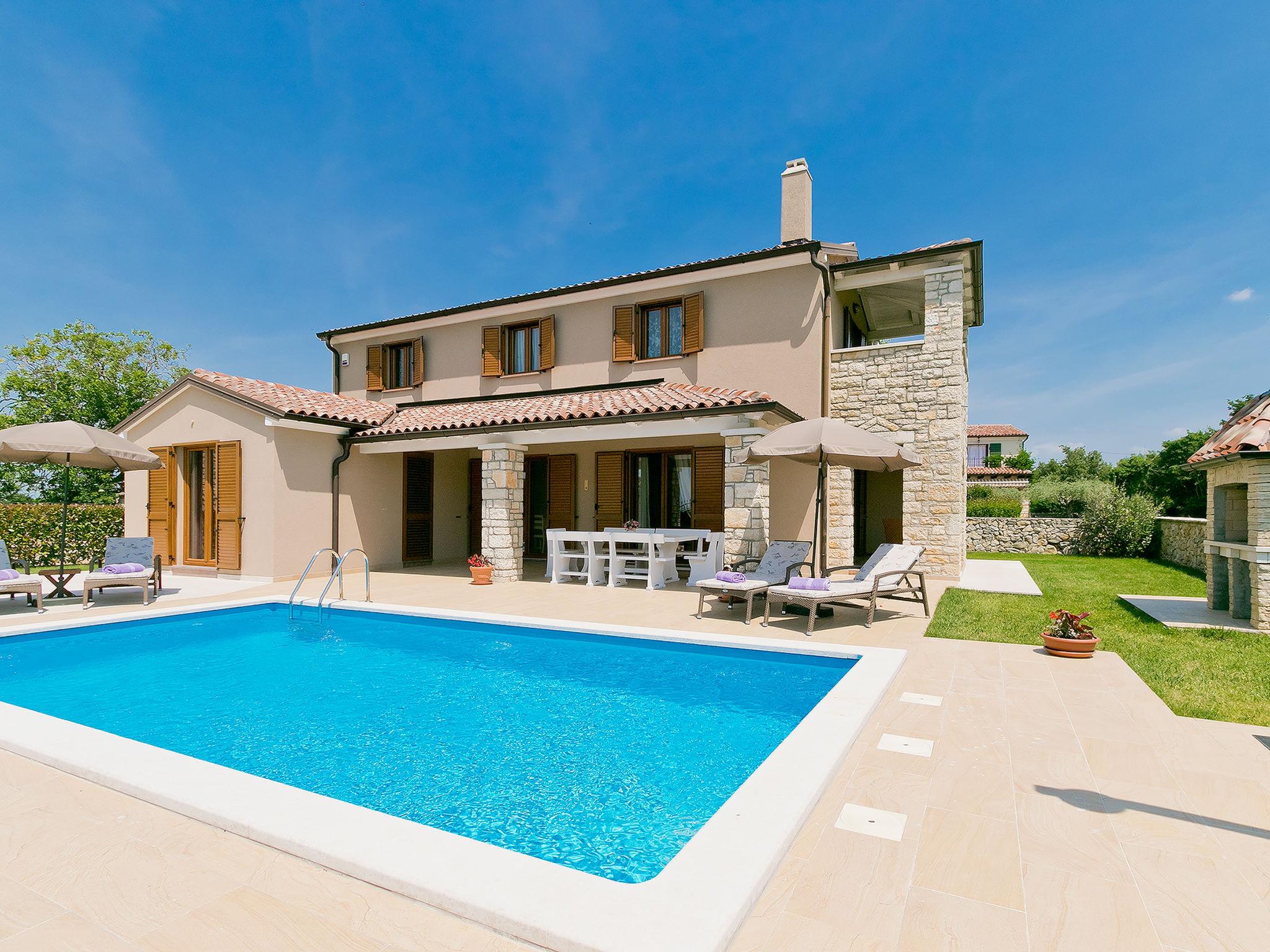 Sv. Lovrec 12 km from Porec: Beautiful villa "Angela", 2 storeys. In the hamlet Ribari 600 m from the centre of Radetici, 5 km from the centre of Sv. Lovrec, in a quiet, sunny position, 14 km from the sea. Private: property 650 m2 (fenced), beautiful garden with lawn and wildlife garden, swimming pool angular, heated (8 x 3 m, depth 150 cm, seasonal availability: 01.Apr. - 30.Oct.). Outdoor shower, table tennis, barbecue. In the house: internet access, washing machine. Available: bicycles (4). Parking at the house on the premises. Shop 5 km, restaurant 5 km, bus stop 7.6 km, pebble beach 14 km. Tennis 14 km, walking paths from the house 100 m, cycle lane 150 m. Swimming pool heated (extra). It is necessary to announce 7 days in advance if the pool heating is required. Youth groups are not allowed.
