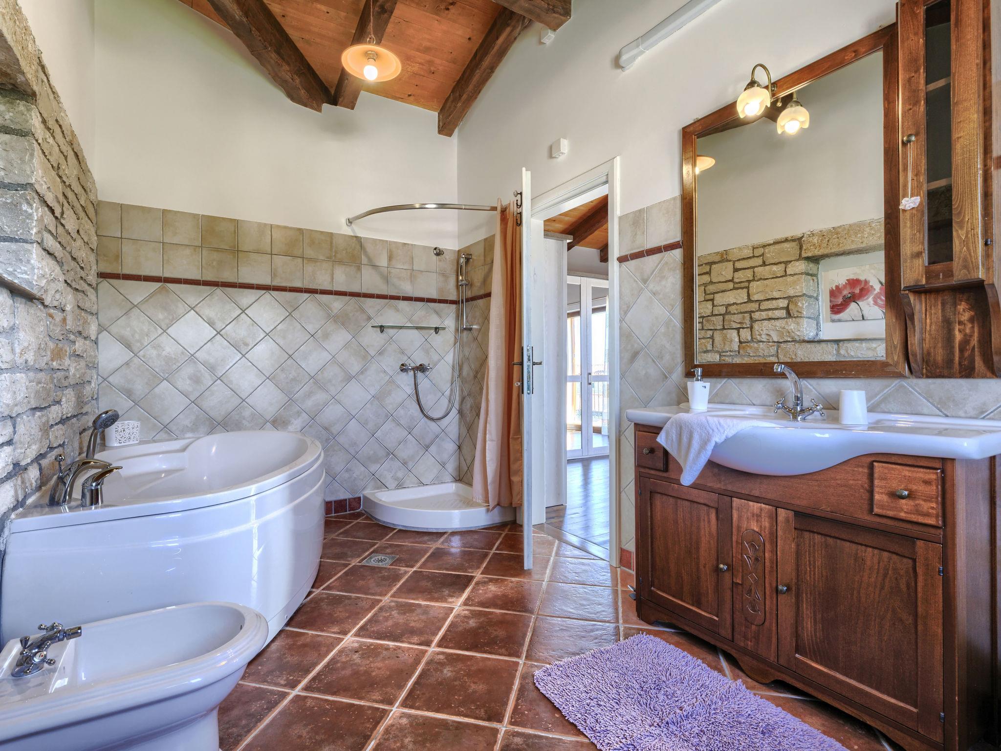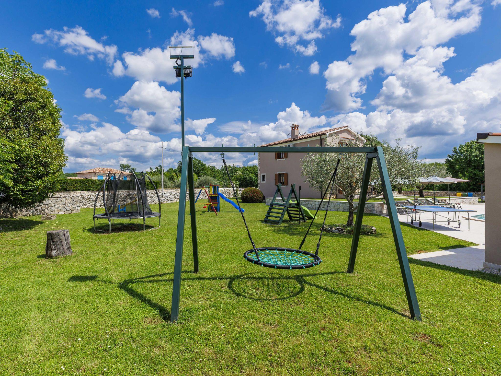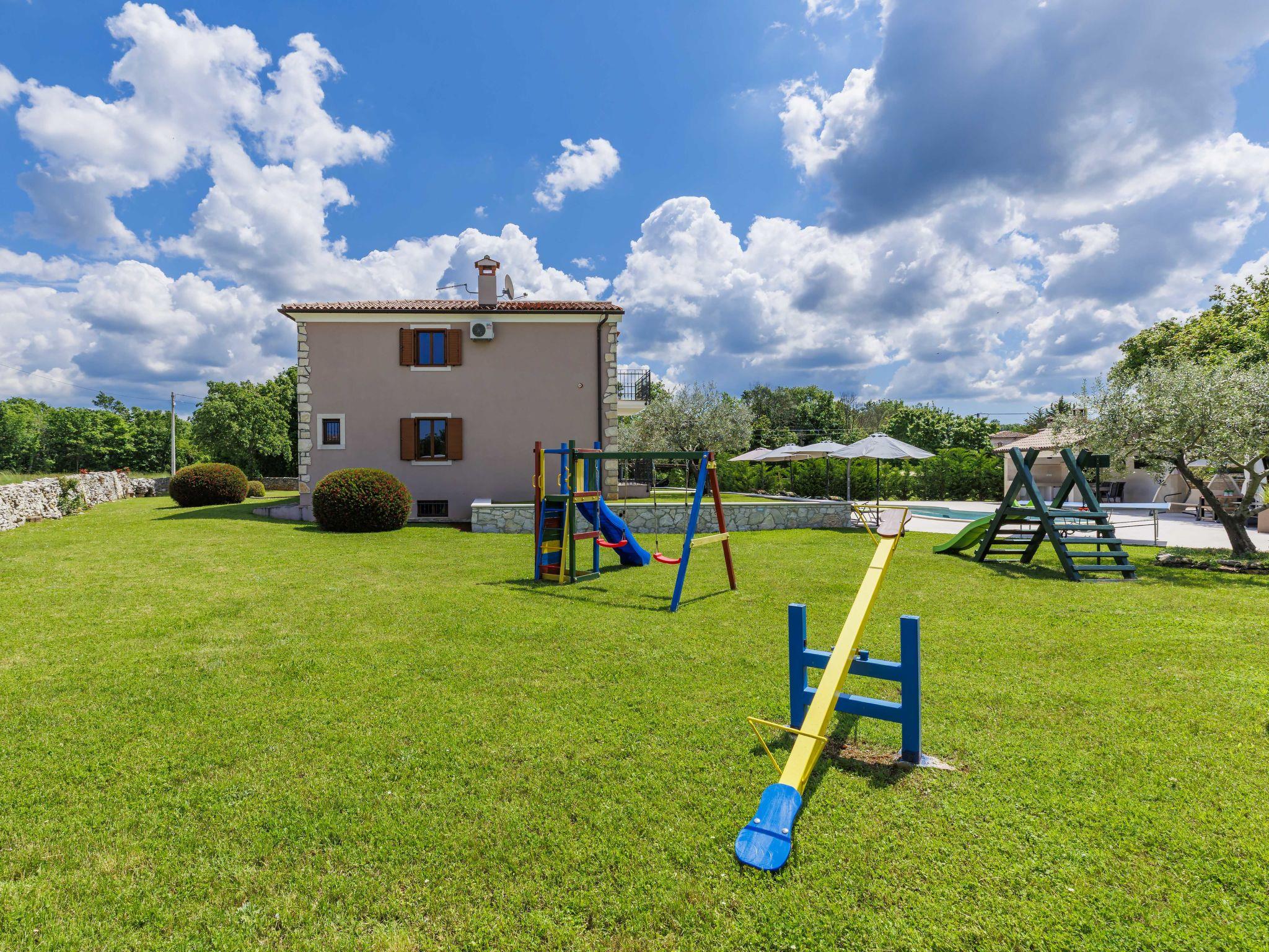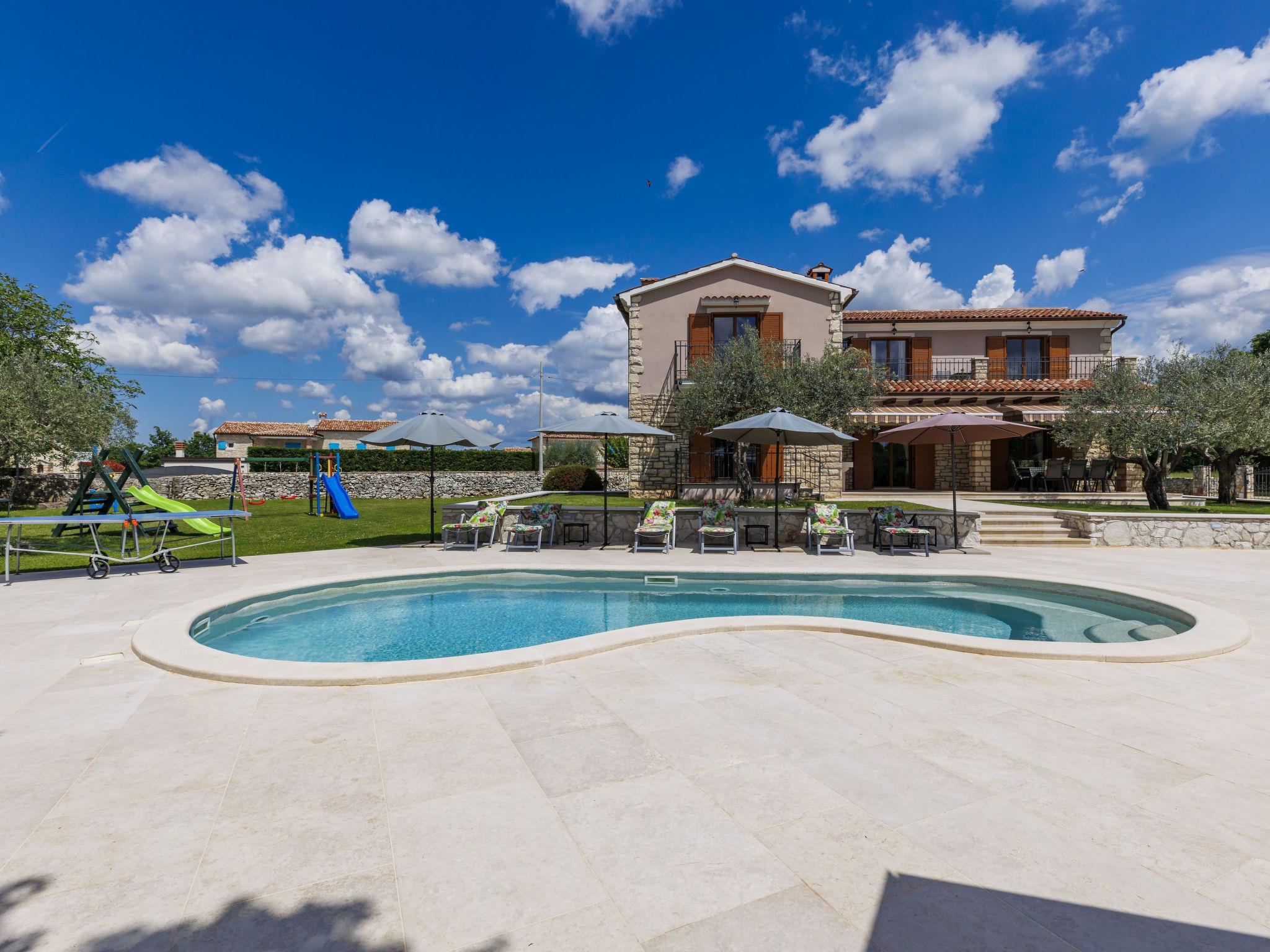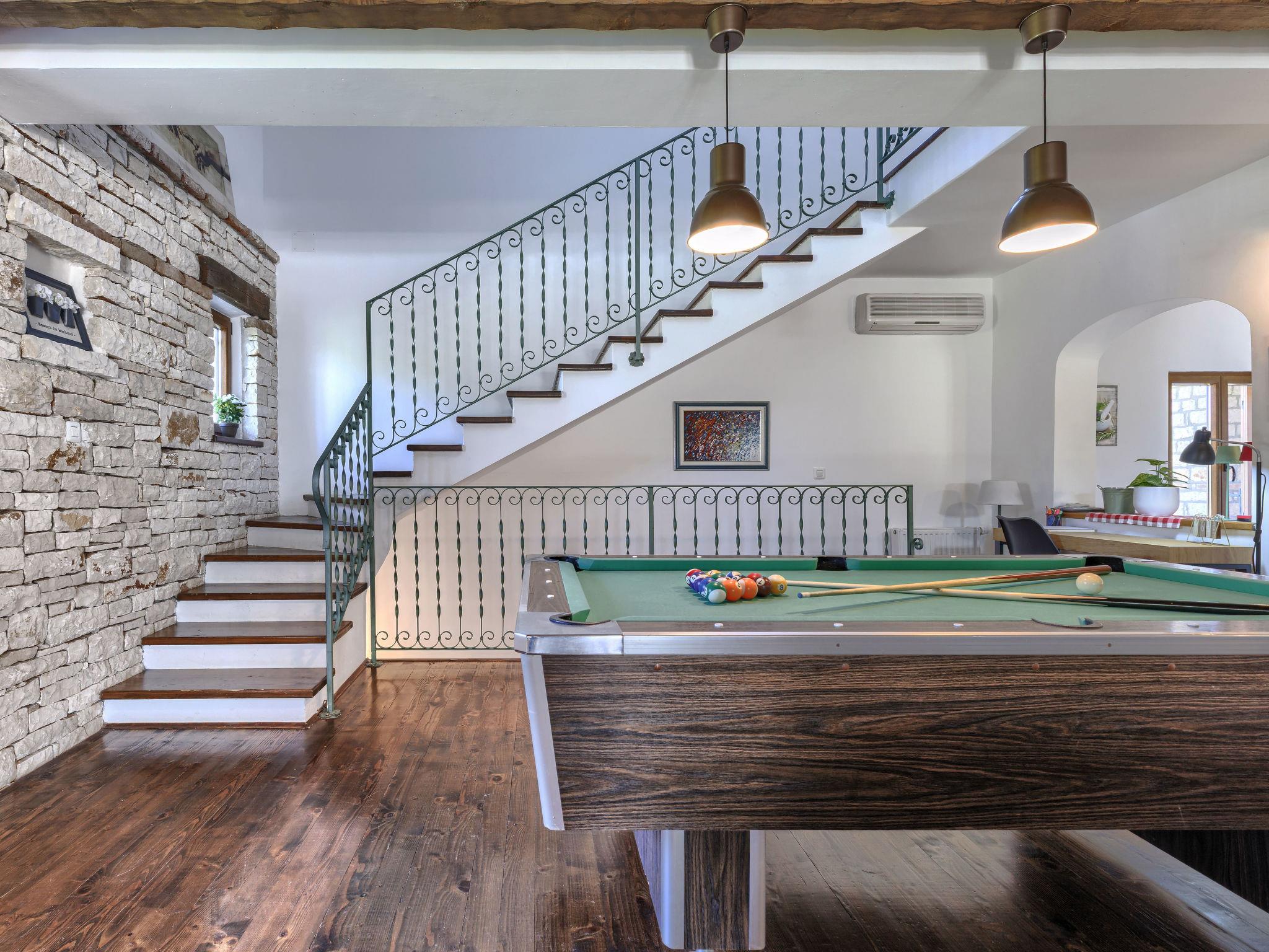 Sv. Lovrec 12 km from Porec: Beautiful villa "Marijanin vrt", 2 storeys. In the hamlet Ribari 600 m from the centre of Radetici, 5 km from the centre of Sv. Lovrec, in a quiet, sunny position, 14 km from the sea. Private: property 3'000 m2 (fenced), beautiful garden with lawn and wildlife garden, swimming pool kidney shaped (36 m2, depth 145 cm, seasonal availability: 01.Apr. - 30.Oct.). Outdoor shower, pool house with fridge, table tennis, barbecue, children's playground (slide, swing). In the house: internet access, fitness room, billiard table, trampoline, washing machine. Roofed, parking (for 2 cars) at the house on the premises. Shop 5 km, restaurant 5 km, bus stop 7.6 km, pebble beach 14 km. Tennis 14 km, walking paths from the house 100 m, cycle lane 150 m. The owner does not accept any youth groups. Please note: airfield 50 km from the property.