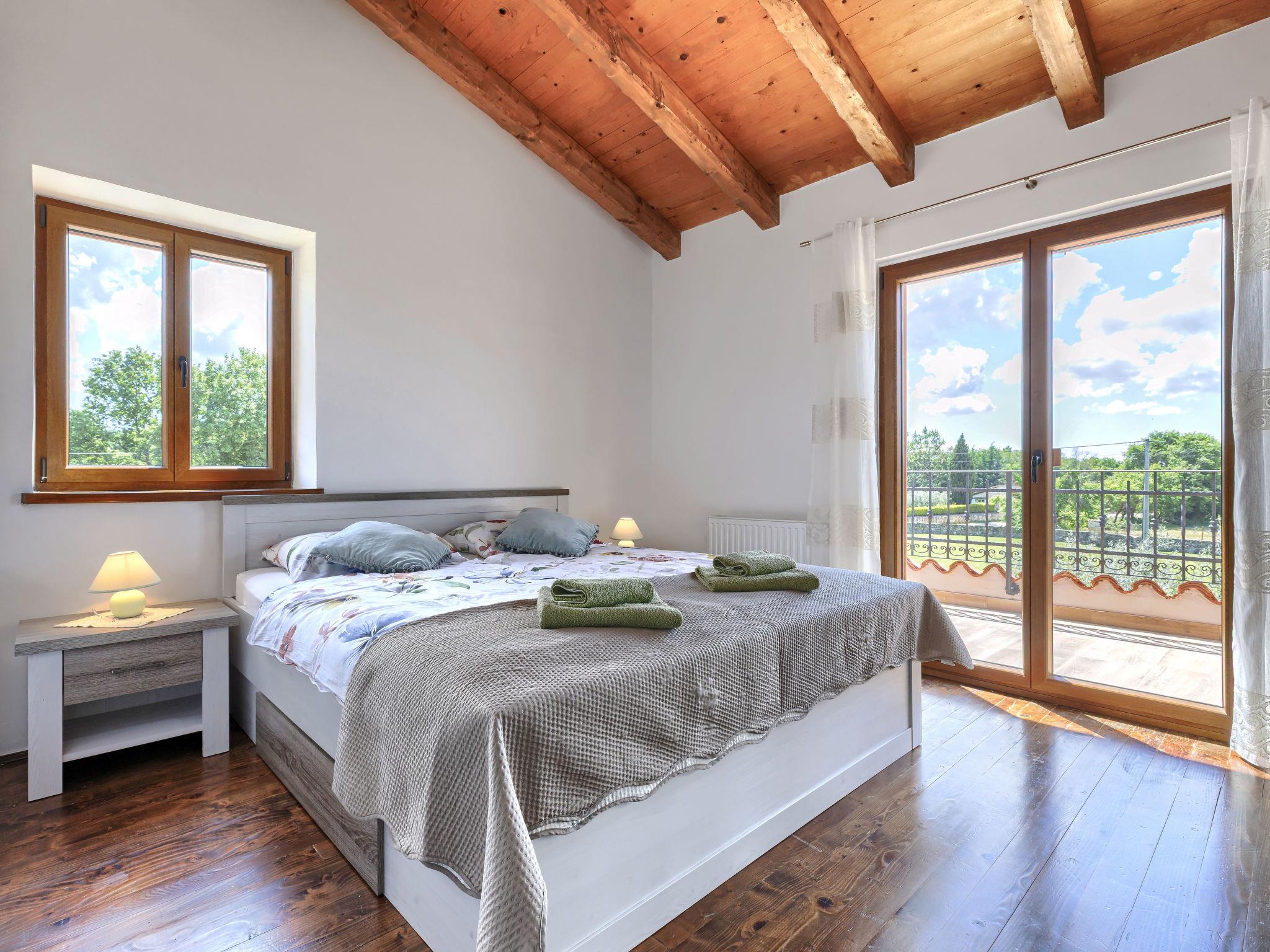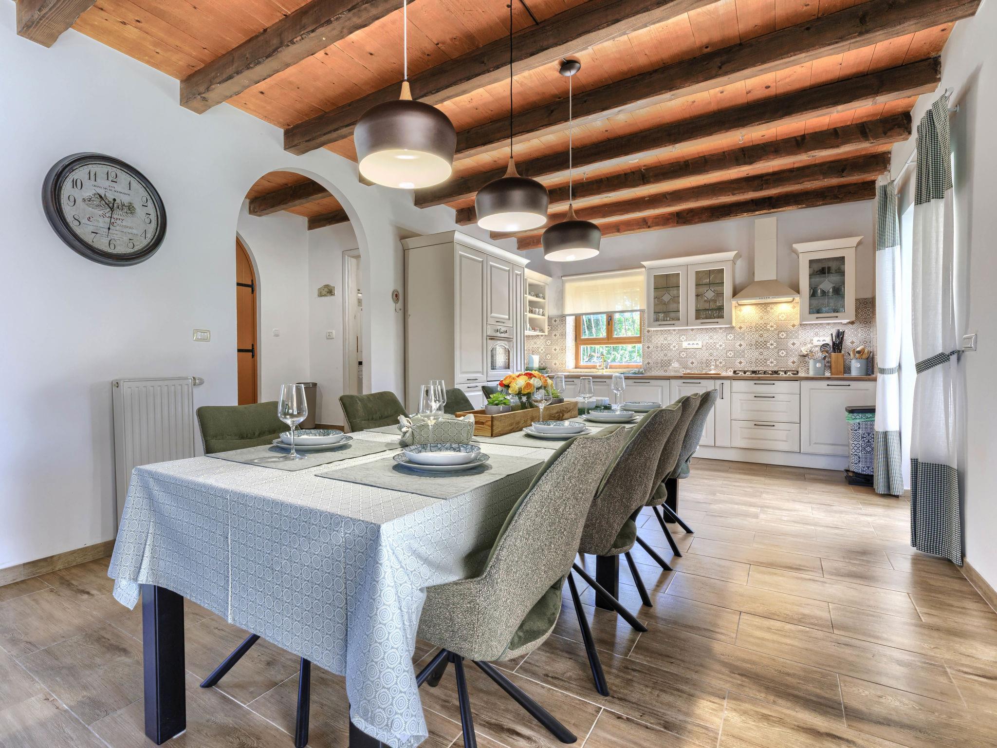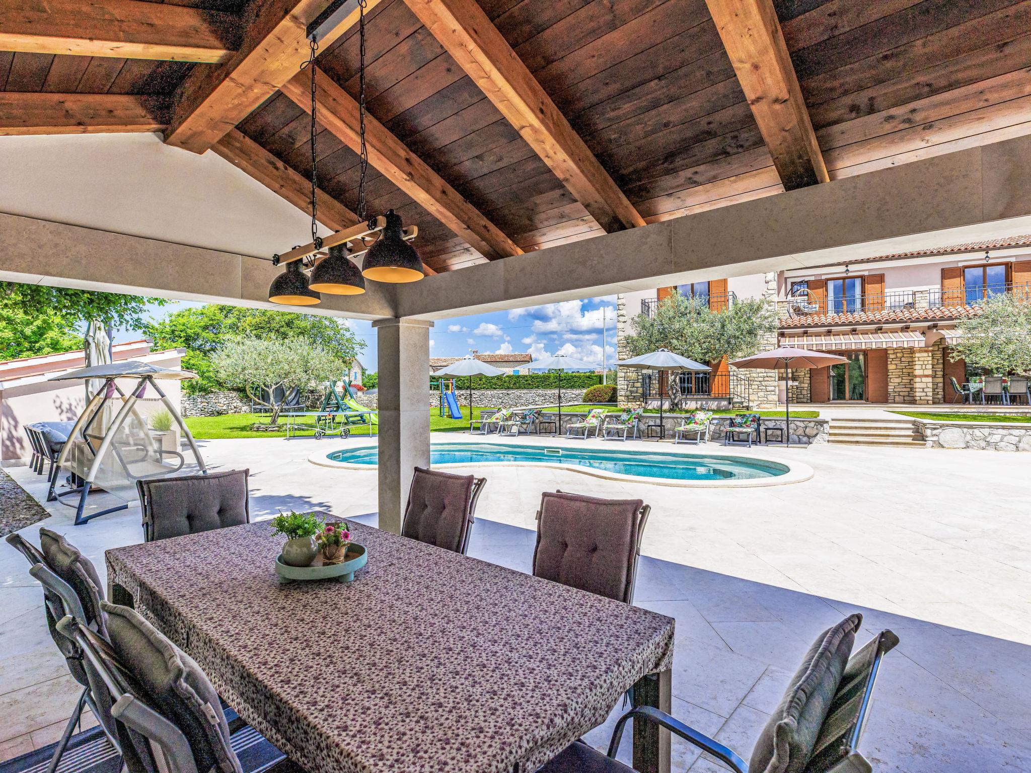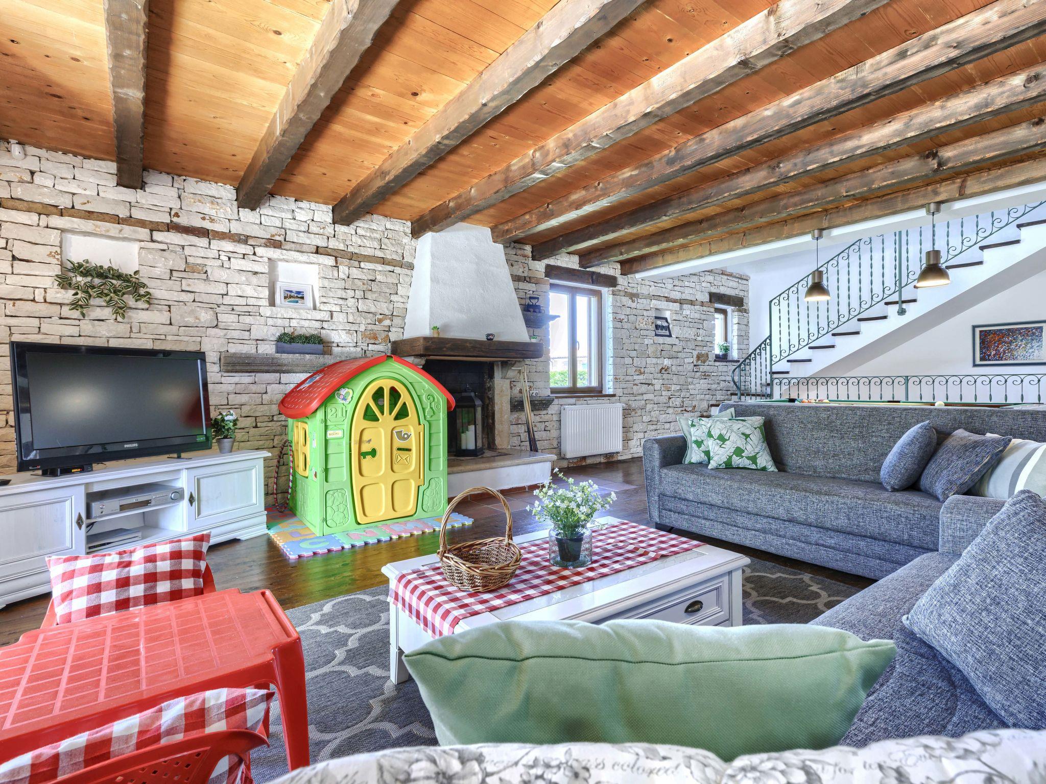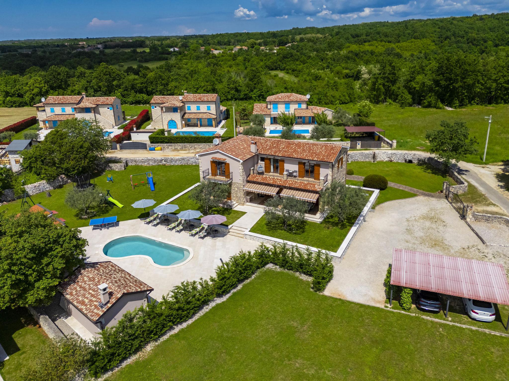 Sv. Lovrec 12 km from Porec: Beautiful villa "Marijanin vrt", 2 storeys. In the hamlet Ribari 600 m from the centre of Radetici, 5 km from the centre of Sv. Lovrec, in a quiet, sunny position, 14 km from the sea. Private: property 3'000 m2 (fenced), beautiful garden with lawn and wildlife garden, swimming pool kidney shaped (36 m2, depth 145 cm, seasonal availability: 01.Apr. - 30.Oct.). Outdoor shower, pool house with fridge, table tennis, barbecue, children's playground (slide, swing). In the house: internet access, fitness room, billiard table, trampoline, washing machine. Roofed, parking (for 2 cars) at the house on the premises. Shop 5 km, restaurant 5 km, bus stop 7.6 km, pebble beach 14 km. Tennis 14 km, walking paths from the house 100 m, cycle lane 150 m. The owner does not accept any youth groups. Please note: airfield 50 km from the property.