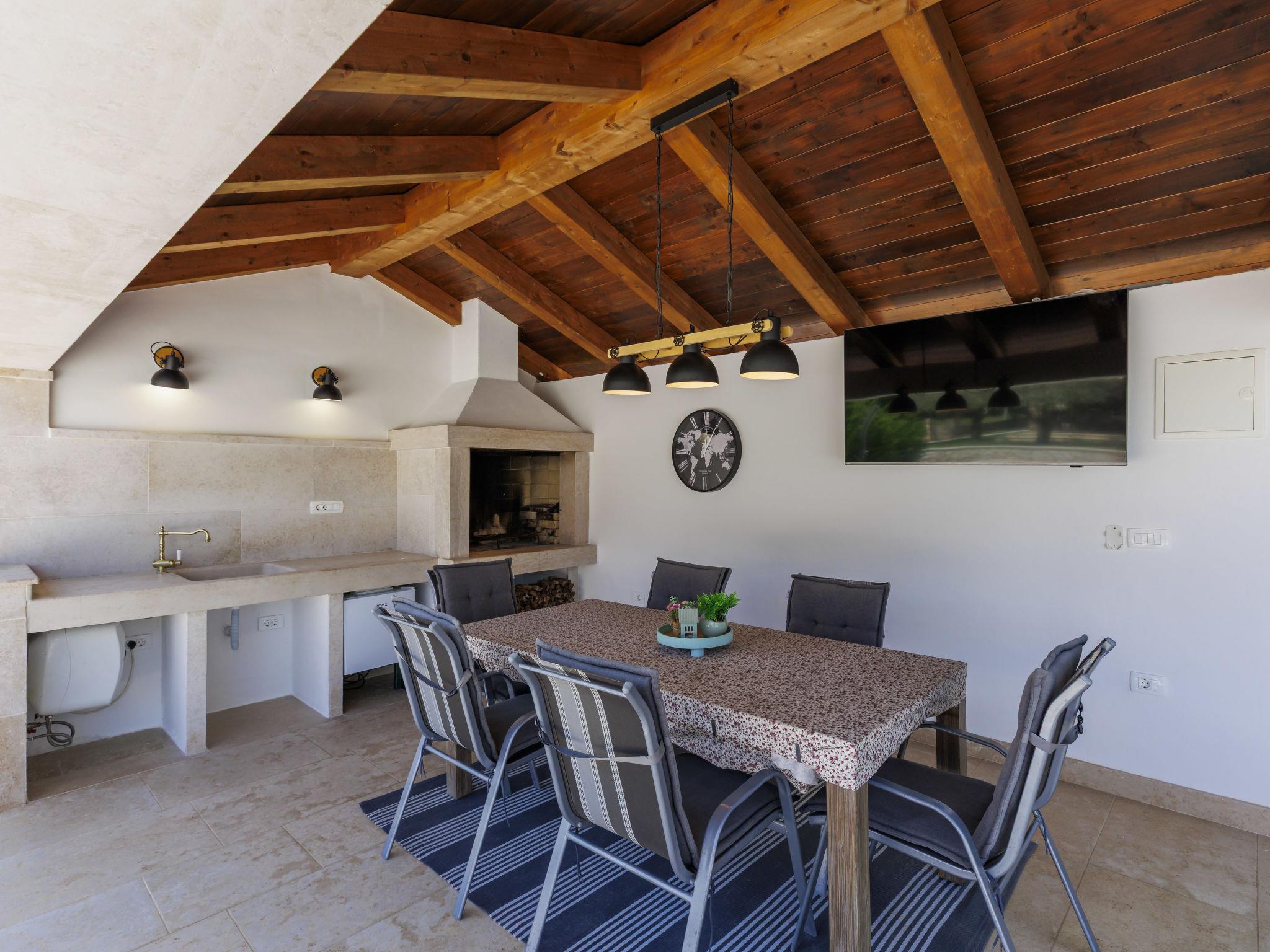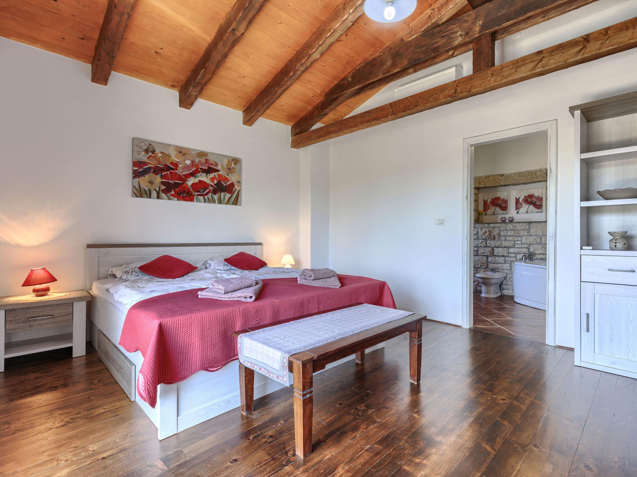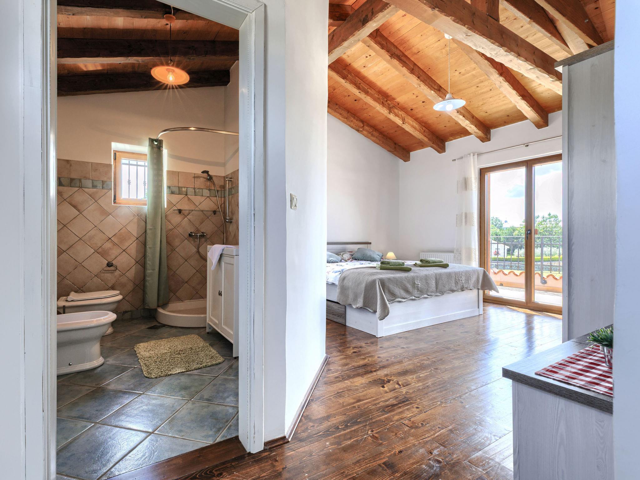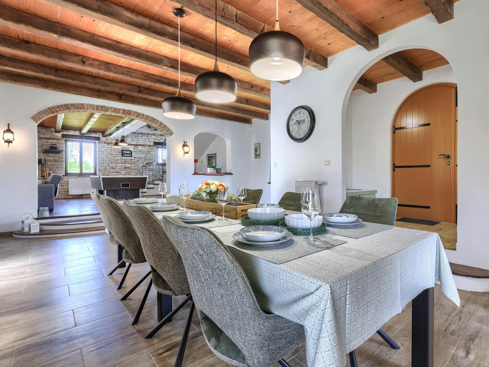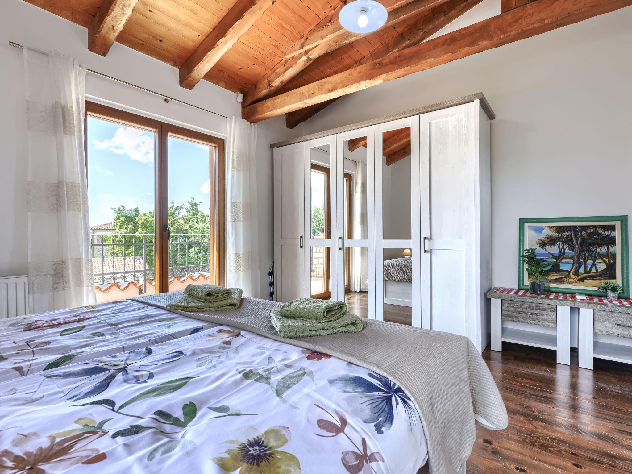 Sv. Lovrec 12 km from Porec: Beautiful villa "Marijanin vrt", 2 storeys. In the hamlet Ribari 600 m from the centre of Radetici, 5 km from the centre of Sv. Lovrec, in a quiet, sunny position, 14 km from the sea. Private: property 3'000 m2 (fenced), beautiful garden with lawn and wildlife garden, swimming pool kidney shaped (36 m2, depth 145 cm, seasonal availability: 01.Apr. - 30.Oct.). Outdoor shower, pool house with fridge, table tennis, barbecue, children's playground (slide, swing). In the house: internet access, fitness room, billiard table, trampoline, washing machine. Roofed, parking (for 2 cars) at the house on the premises. Shop 5 km, restaurant 5 km, bus stop 7.6 km, pebble beach 14 km. Tennis 14 km, walking paths from the house 100 m, cycle lane 150 m. The owner does not accept any youth groups. Please note: airfield 50 km from the property.