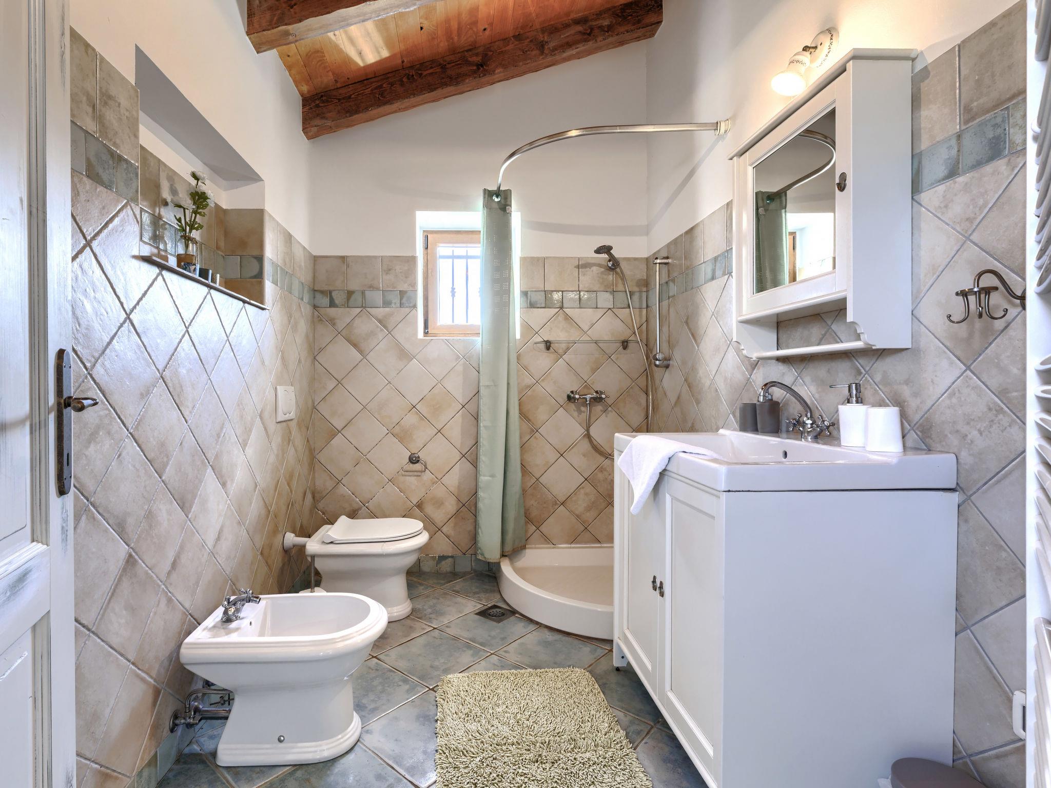 5-room villa 260 m2 on 2 levels. Beautiful furnishings: living/dining room with 2 sofabeds (105 cm, length 190 cm), satellite TV (flat screen), air conditioning. Exit to the terrace. Open kitchen (oven, dishwasher, Gas stove, 4 gas rings, toaster, kettle, microwave, freezer, electric coffee machine). Sep. WC. Upper floor: 1 room with 1 double bed (2 x 90 cm, length 200 cm), bath/shower/WC, bath/shower/bidet/WC and air conditioning. Exit to the balcony. 2 rooms, each room with 1 double bed (2 x 90 cm, length 200 cm), shower/bidet/WC and air conditioning. Exit to the terrace. Forced-air heating. Balcony 2 m2, terrace 35 m2, terrace 16 m2. Terrace furniture, deck chairs. View of the swimming pool and the countryside. Facilities: children's high chair, baby cot, hair dryer. Internet (WiFi, free). Please note: suitable for families. Non-smoking house.